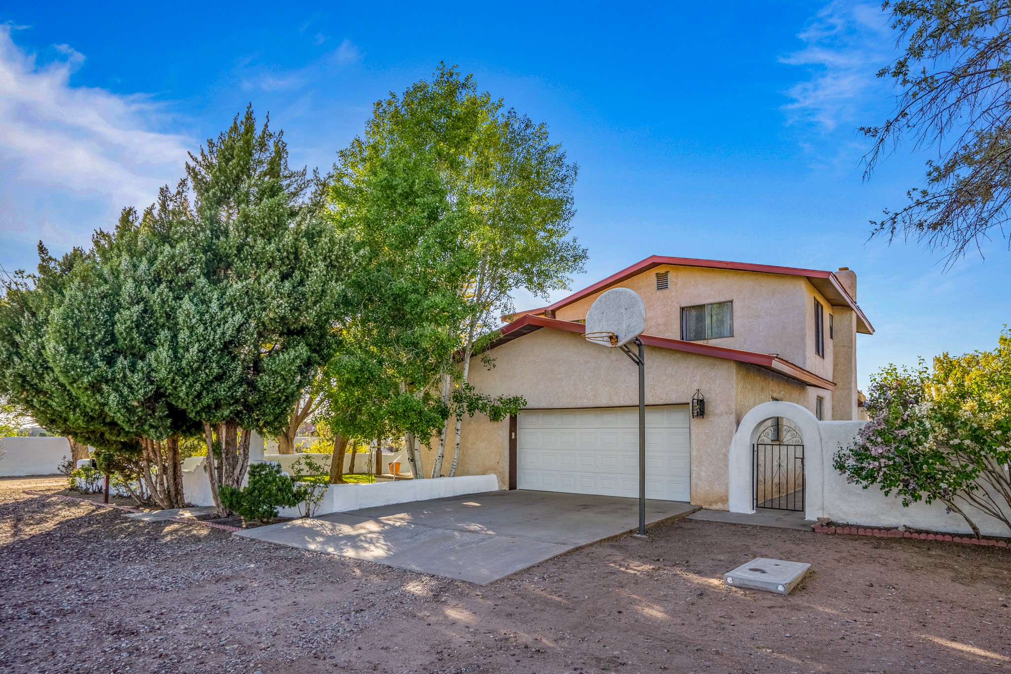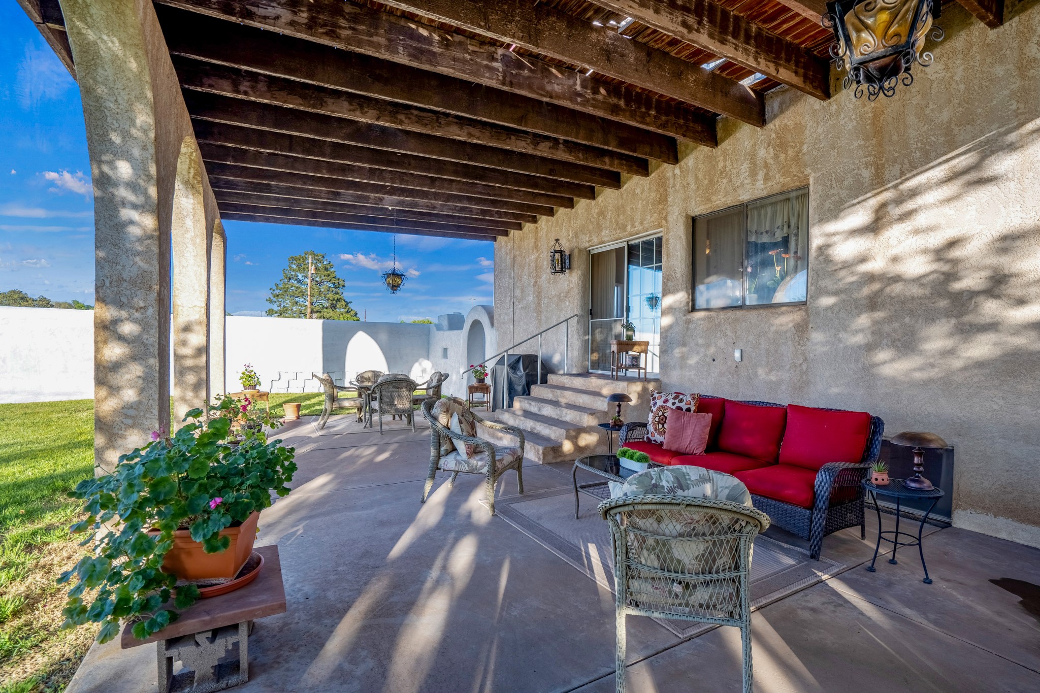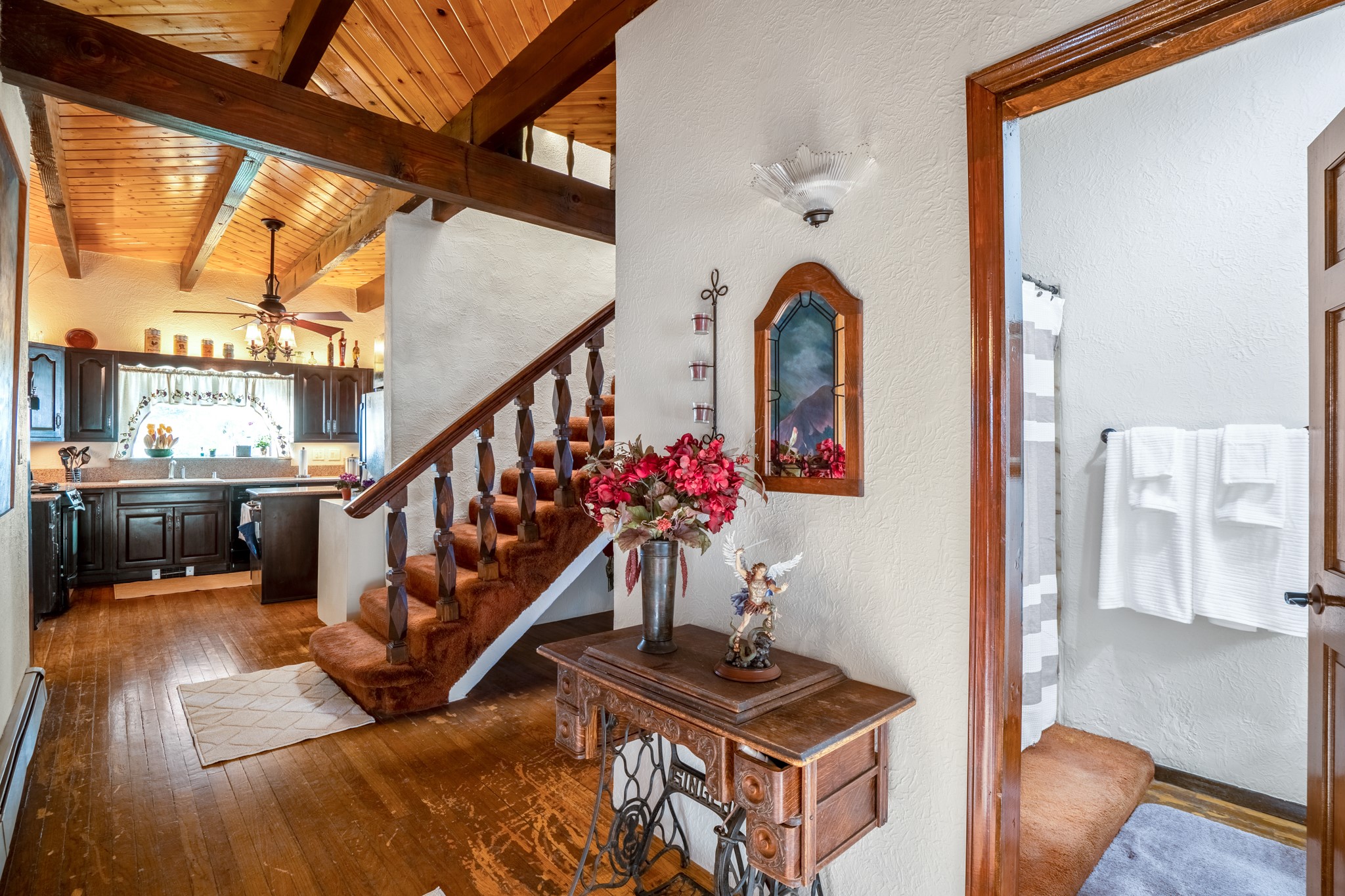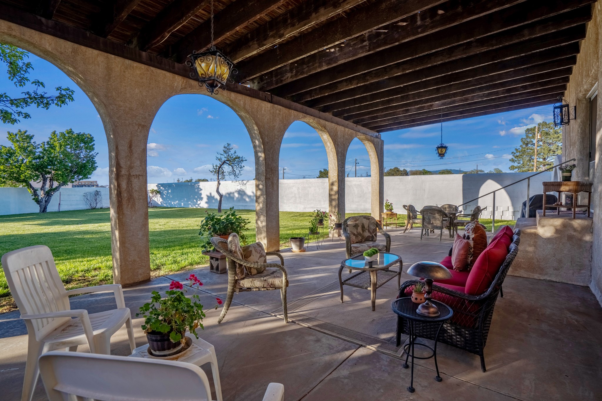 Seller Financing Considered. Main home and 5 rental units on a long 1.48 acre lot backing up to the Santa Fe River. NEW CITY SEWER LINE AND AGUA FRIA VILLAGE WATER LINE FOR THE WHOLE PROPERTY JUST INSTALLED, AN OVER $100K IMPROVEMENT. Existing well for watering the landscaping with 4 spickets in various spots. The main home features three levels with four bedrooms, three baths, two living rooms, dining room, finished basement, a two car garage, walled backyard, front yard, side patio, and a large redwood deck off the master bedroom that was just rebuilt. The interior features skylights, beams, tongue and groove ceilings in a herringbone pattern, and custom carved wood staircases. The finished basement contains a huge family room with a kiva fireplace, windows all around, one bedroom with a sitting area and stairwell to access the backyard. The large backyard has lush grass, grape vines, and fruit trees including peach, cherry, green apple, red apple, apricot. Duplex with matching 2 bed 1 bath units with front yard and fireplace. The triplex consists of a 1 bed 1 bath unit with a front yard, a 1 bed 1 bath unit with a balcony, and a 2 bed 1 bath with a two car a garage. On the property there is also a separate detached oversized one car garage. Main house is approximately 3,226 sq ft. Units in the duplex are approximately 987 sq ft each. The triplex has two 936 sq ft units and one 1,033 sq ft unit. All square footages are according to an appraisal done in 1996, buyer to verify. This property has character, large square footage, and high-income producing potential!