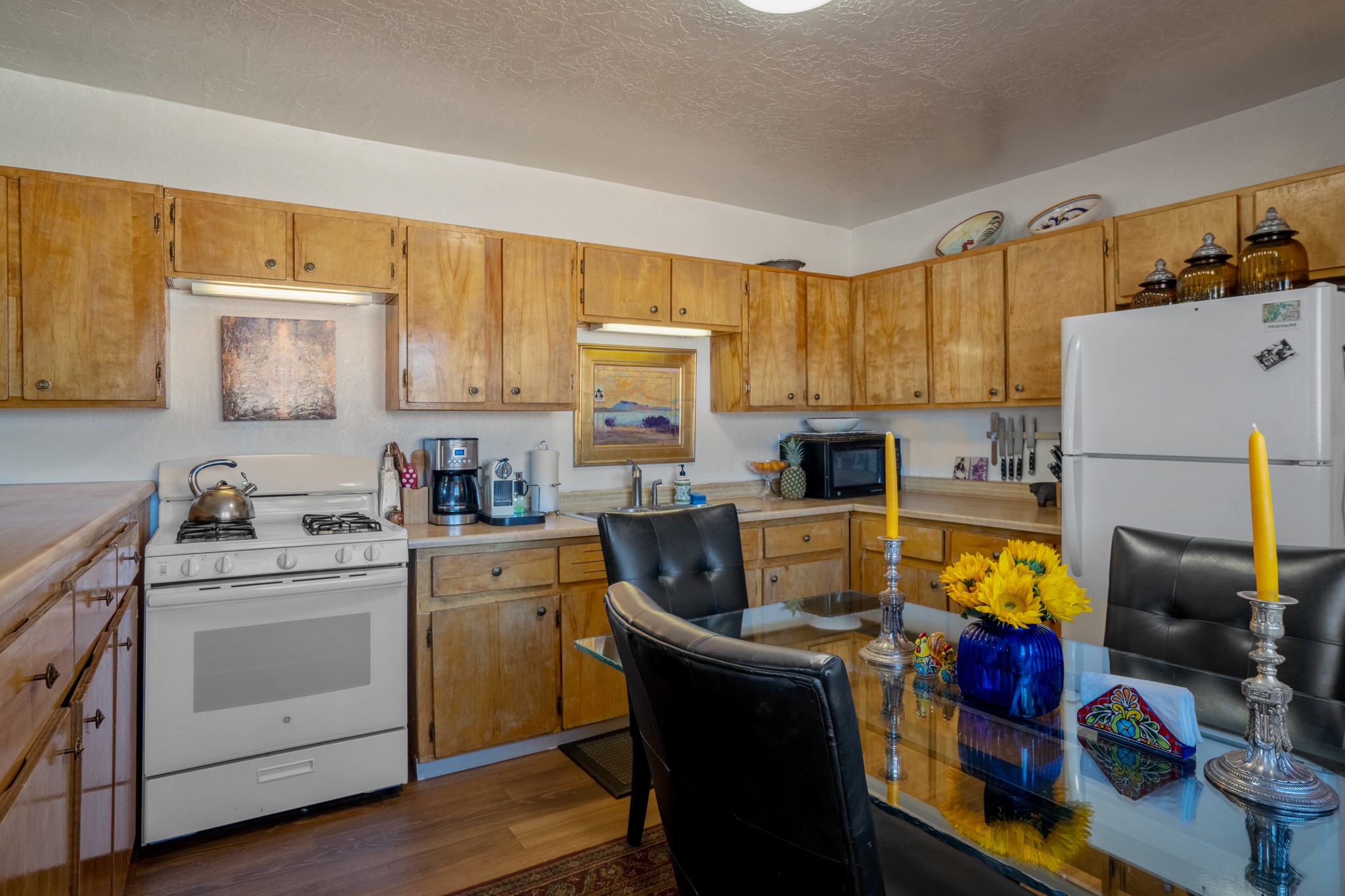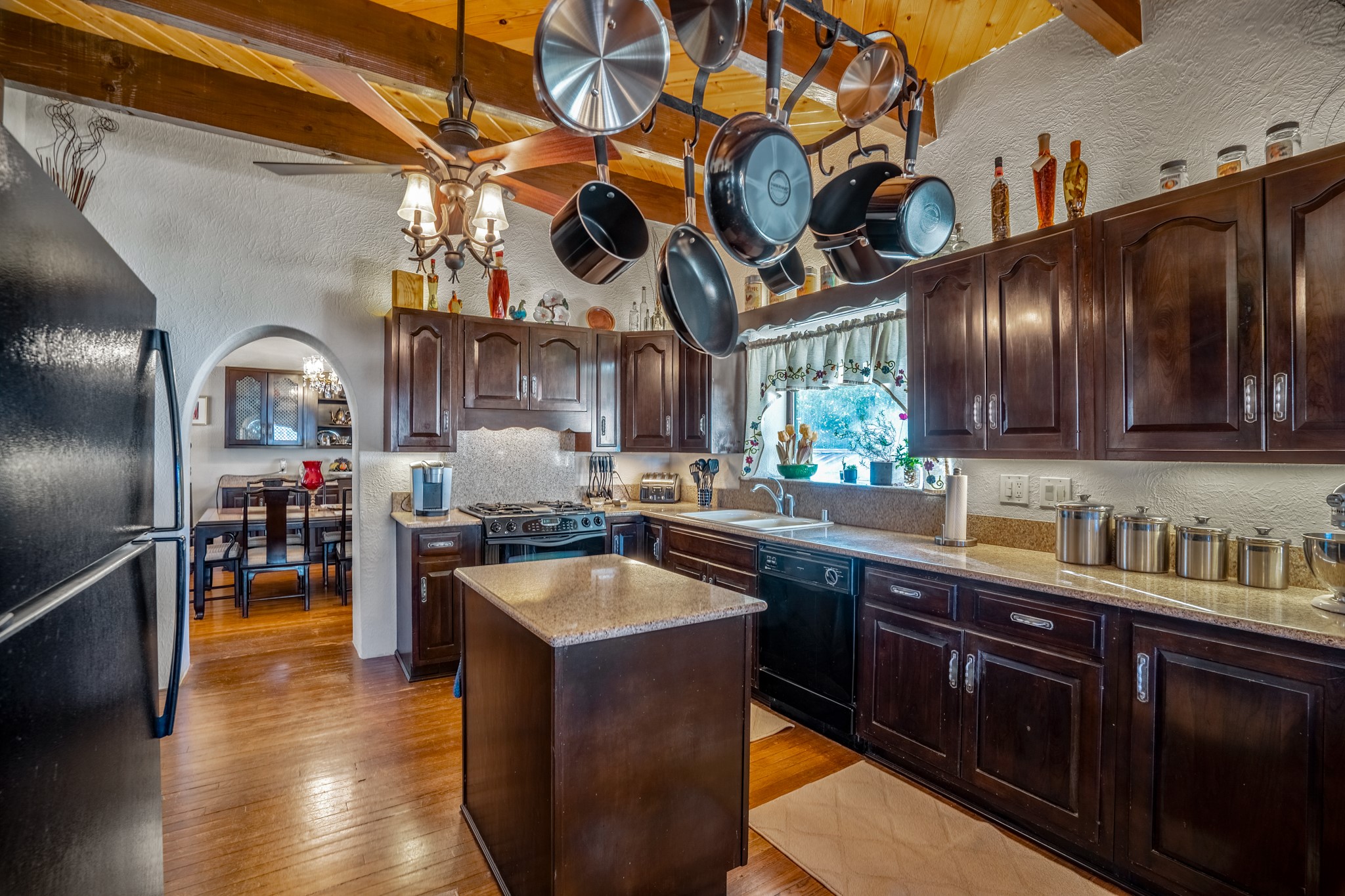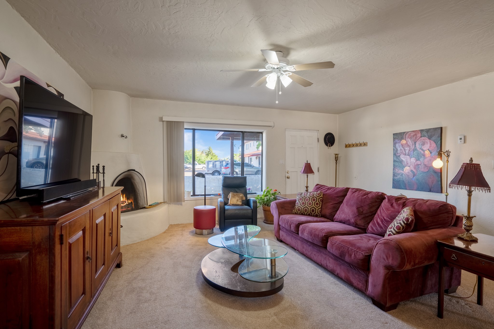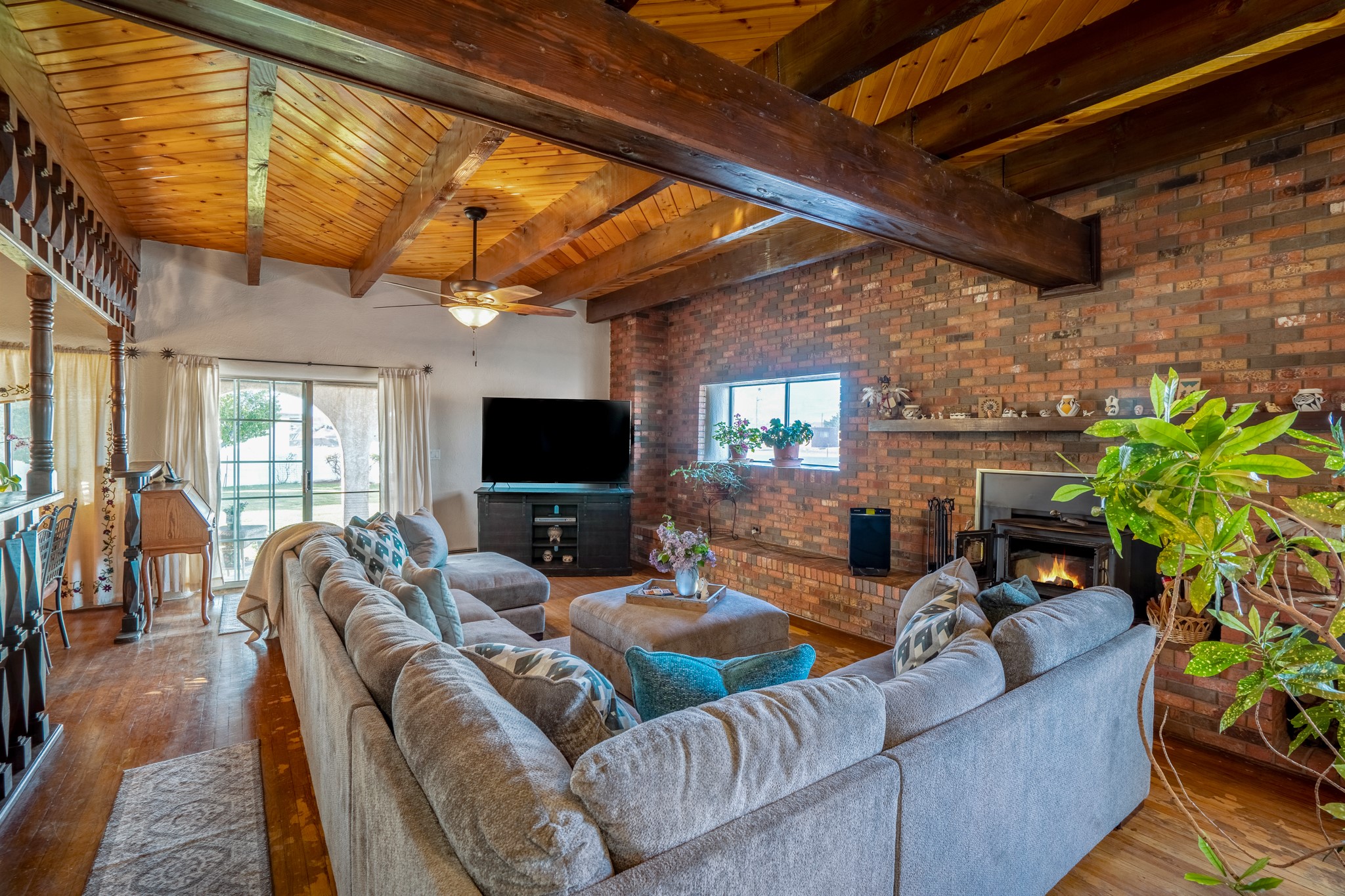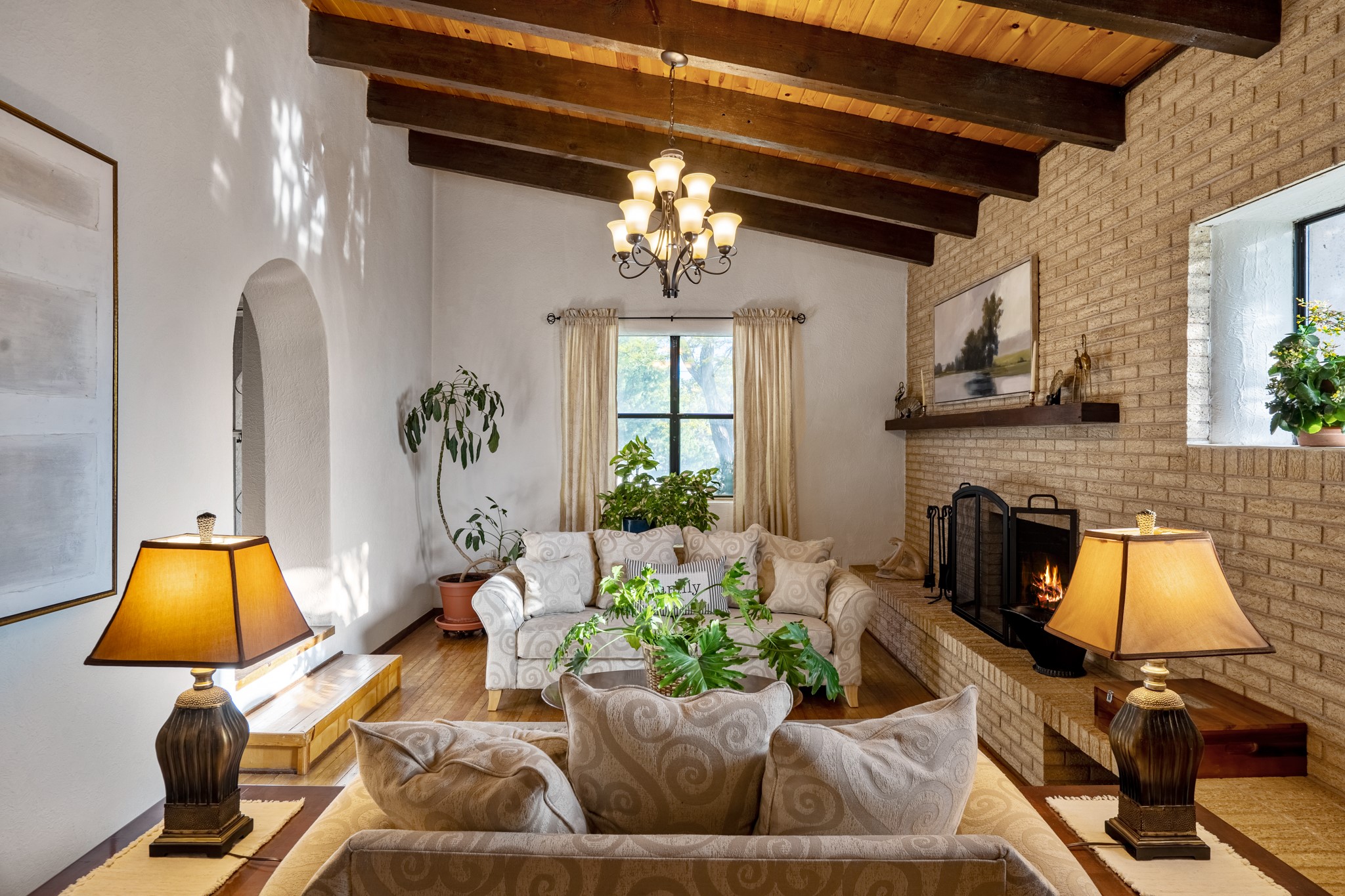 Seller Financing Considered. Main home and 5 rental units on a long 1.48 acre lot backing up to the Santa Fe River. NEW CITY SEWER LINE AND AGUA FRIA VILLAGE WATER LINE FOR THE WHOLE PROPERTY JUST INSTALLED, AN OVER $100K IMPROVEMENT. Existing well for watering the landscaping with 4 spickets in various spots. The main home features three levels with four bedrooms, three baths, two living rooms, dining room, finished basement, a two car garage, walled backyard, front yard, side patio, and a large redwood deck off the master bedroom that was just rebuilt. The interior features skylights, beams, tongue and groove ceilings in a herringbone pattern, and custom carved wood staircases. The finished basement contains a huge family room with a kiva fireplace, windows all around, one bedroom with a sitting area and stairwell to access the backyard. The large backyard has lush grass, grape vines, and fruit trees including peach, cherry, green apple, red apple, apricot. Duplex with matching 2 bed 1 bath units with front yard and fireplace. The triplex consists of a 1 bed 1 bath unit with a front yard, a 1 bed 1 bath unit with a balcony, and a 2 bed 1 bath with a two car a garage. On the property there is also a separate detached oversized one car garage. Main house is approximately 3,226 sq ft. Units in the duplex are approximately 987 sq ft each. The triplex has two 936 sq ft units and one 1,033 sq ft unit. All square footages are according to an appraisal done in 1996, buyer to verify. This property has character, large square footage, and high-income producing potential!