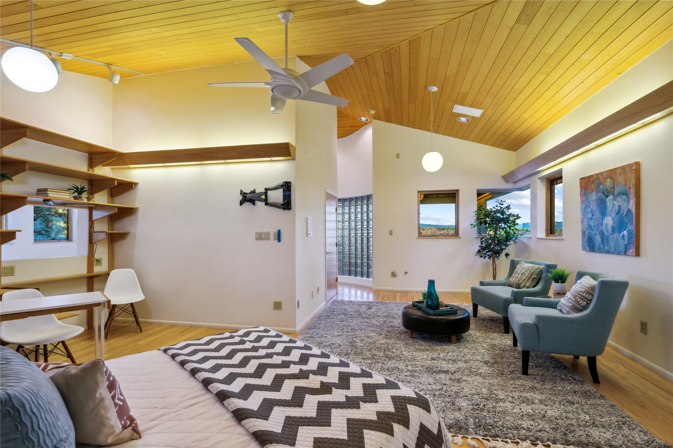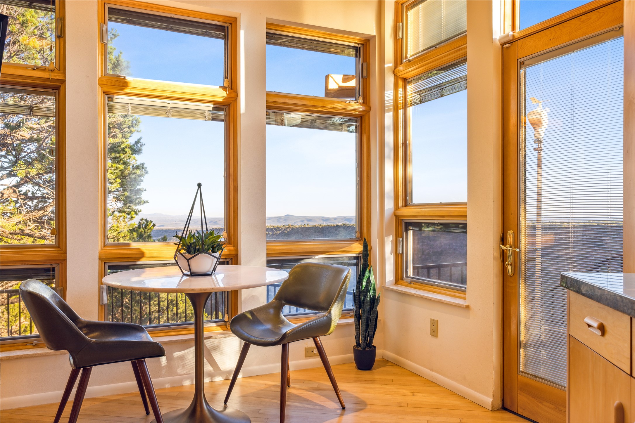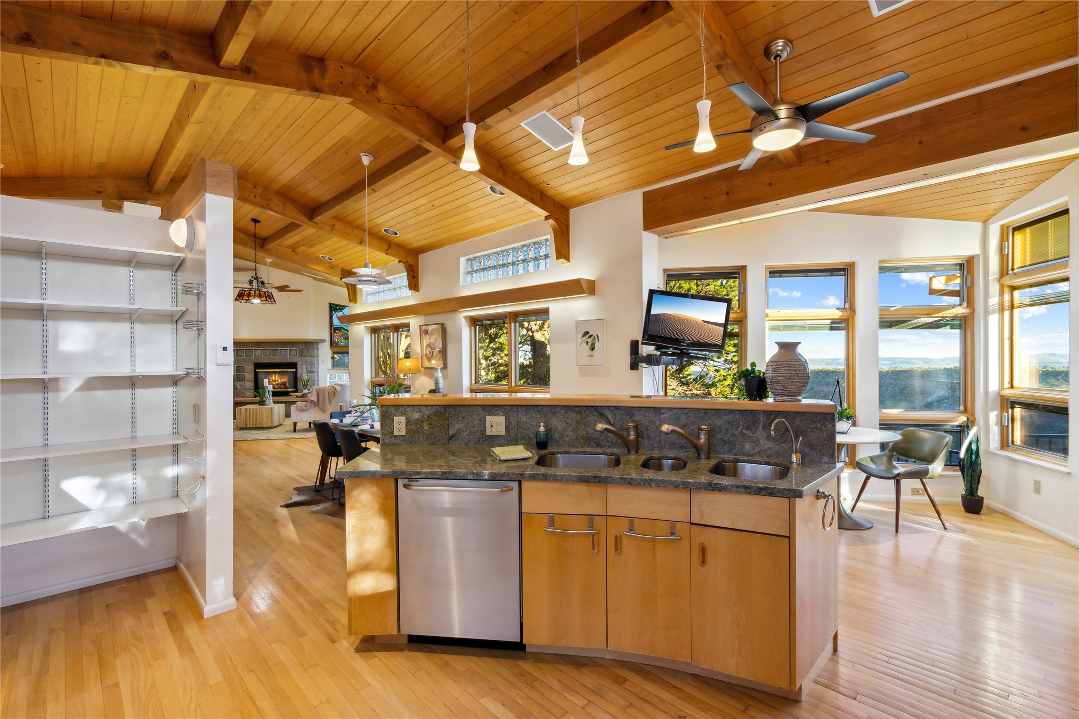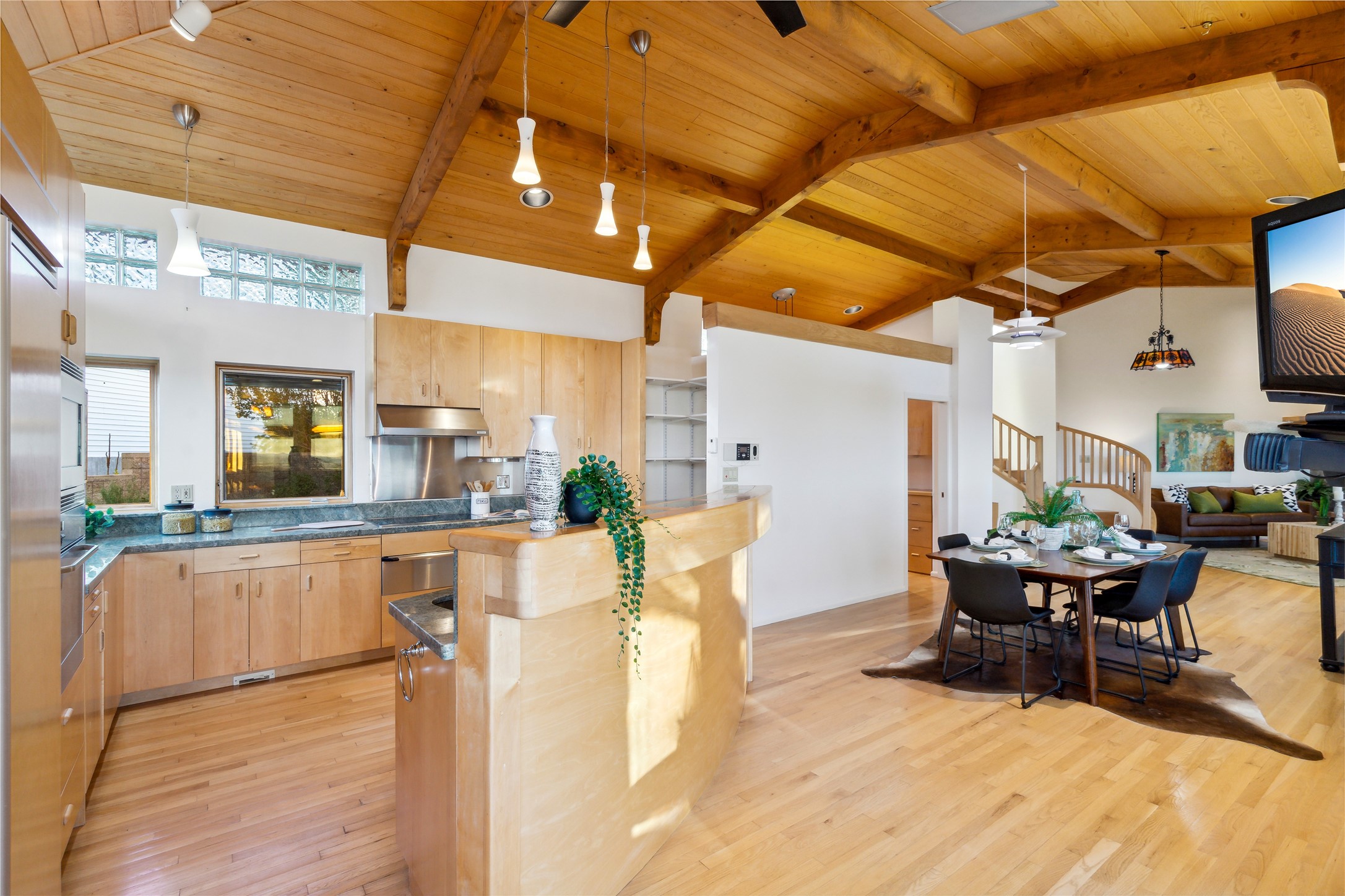Welcome to your dream home in Los Alamos - a custom-built masterpiece perched on the canyon's rim, offering a unique blend of architectural brilliance and seamless integration into the natural landscape of the neighborhood. This stunning three-bedroom, four-bathroom residence is a rare find, boasting unobstructed views to the north and south and a wealth of luxurious features that make it a true haven for those seeking the pinnacle of comfort and style.Situated on one of the few lots with unrestricted vistas, this home offers a front-row seat to the breathtaking canyons on both sides of Los Pueblos Street. Watch as the colors of the landscape change with the seasons, all from the comfort of your own home.The property is adorned with lush ornamental and fruit trees, creating a tranquil atmosphere that invites relaxation. The soothing sound of a deck-side water feature adds to the ambiance, making it the perfect spot for unwinding after a long day. Automotive aficionados will appreciate the spacious, attached three-car garage, complete with an office and washroom. Whether you're a collector or just need extra storage space, this feature is sure to impress.This home was thoughtfully designed by its original owners and it's now making its debut on the market. Warm wood tones harmonize with the natural light that streams in from all directions, creating an inviting and cozy atmosphere despite its generous size.Multiple living areas and workspaces ensure there's room for everyone to spread out and pursue their passions. The open kitchen is a chef's delight, equipped with stainless steel appliances and natural stone countertops, perfect for entertaining guests.This home offers a unique opportunity to experience luxury living in Los Alamos. Don't miss your chance to make this remarkable property your own. Contact your Realtor today to schedule a private showing and experience the epitome of warmth and elegance on Los Pueblos Street.