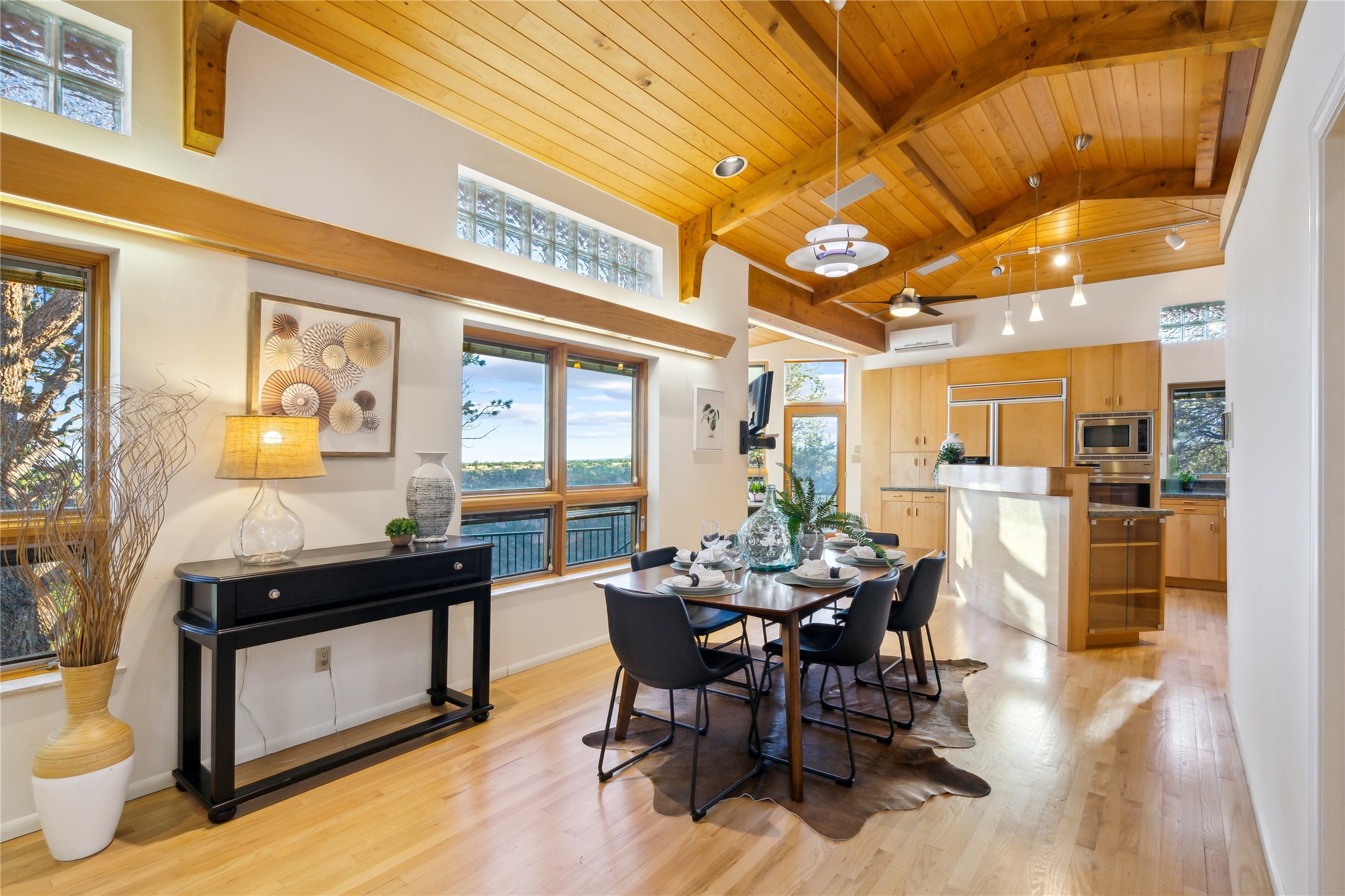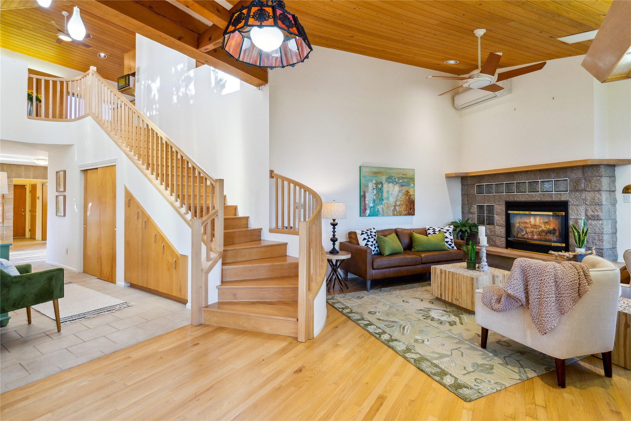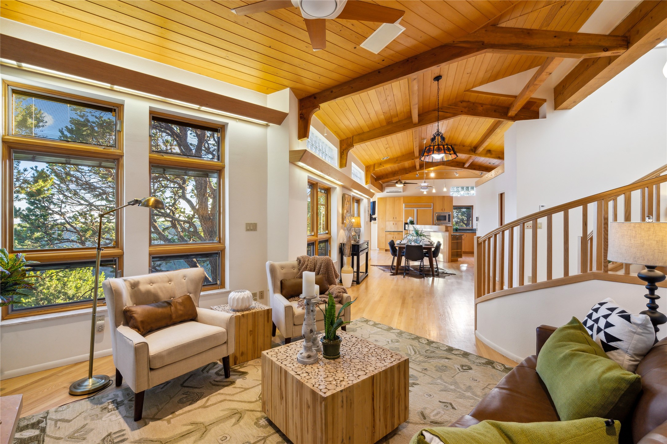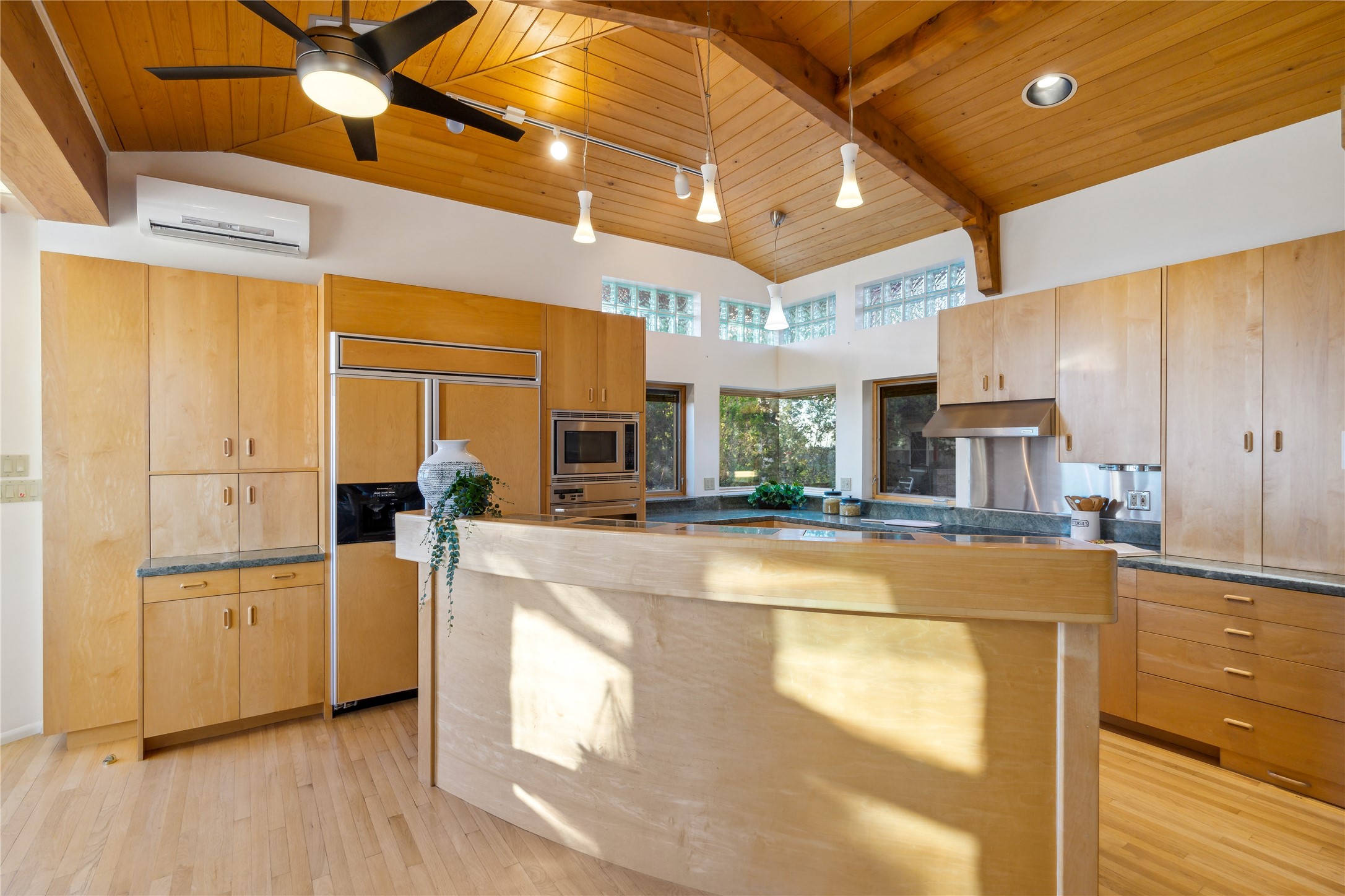 Welcome to your dream home in Los Alamos - a custom-built masterpiece perched on the canyon's rim, offering a unique blend of architectural brilliance and seamless integration into the natural landscape of the neighborhood. This stunning three-bedroom, four-bathroom residence is a rare find, boasting unobstructed views to the north and south and a wealth of luxurious features that make it a true haven for those seeking the pinnacle of comfort and style.Situated on one of the few lots with unrestricted vistas, this home offers a front-row seat to the breathtaking canyons on both sides of Los Pueblos Street. Watch as the colors of the landscape change with the seasons, all from the comfort of your own home.The property is adorned with lush ornamental and fruit trees, creating a tranquil atmosphere that invites relaxation. The soothing sound of a deck-side water feature adds to the ambiance, making it the perfect spot for unwinding after a long day. Automotive aficionados will appreciate the spacious, attached three-car garage, complete with an office and washroom. Whether you're a collector or just need extra storage space, this feature is sure to impress.This home was thoughtfully designed by its original owners and it's now making its debut on the market. Warm wood tones harmonize with the natural light that streams in from all directions, creating an inviting and cozy atmosphere despite its generous size.Multiple living areas and workspaces ensure there's room for everyone to spread out and pursue their passions. The open kitchen is a chef's delight, equipped with stainless steel appliances and natural stone countertops, perfect for entertaining guests.This home offers a unique opportunity to experience luxury living in Los Alamos. Don't miss your chance to make this remarkable property your own. Contact your Realtor today to schedule a private showing and experience the epitome of warmth and elegance on Los Pueblos Street.