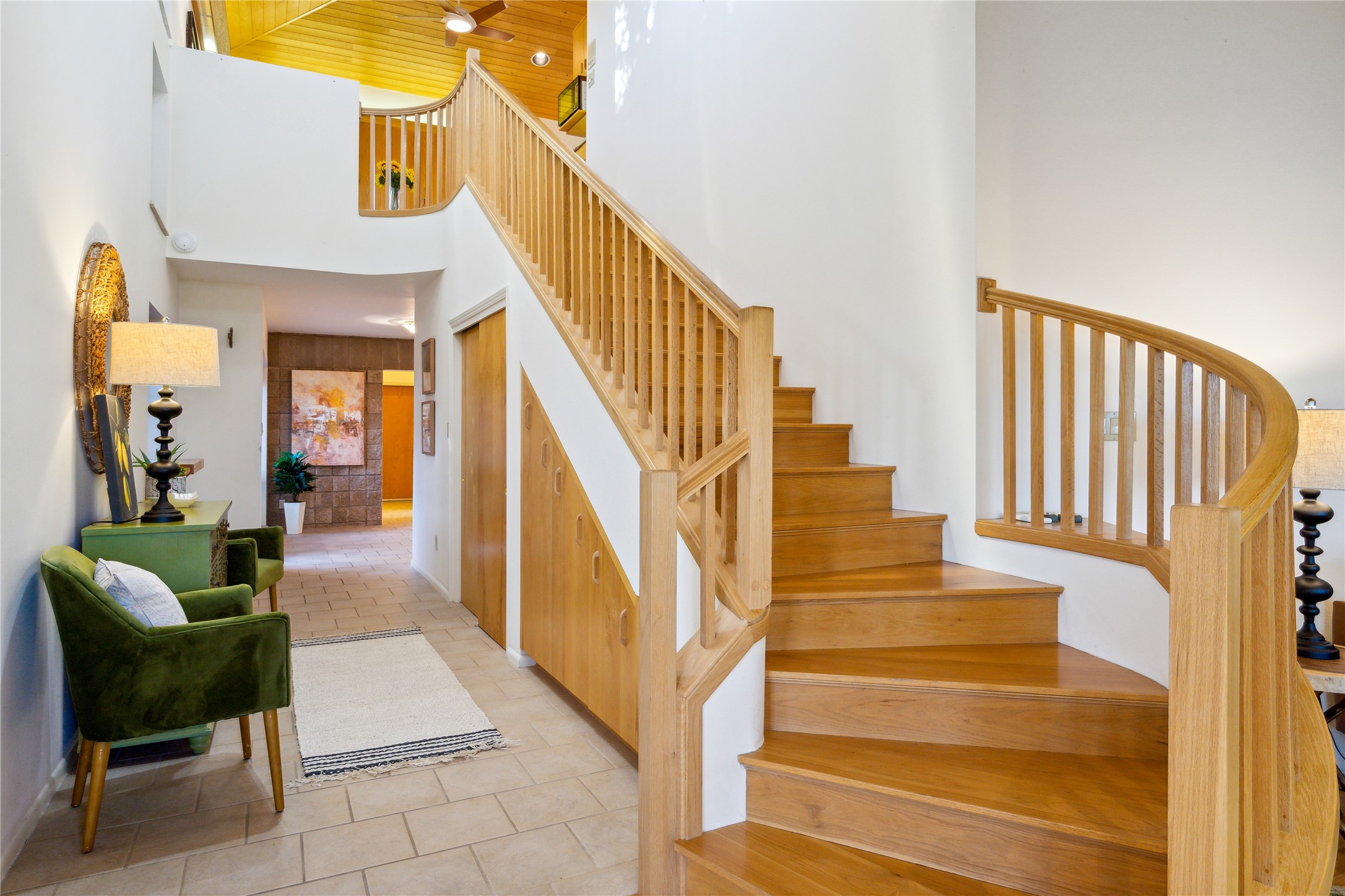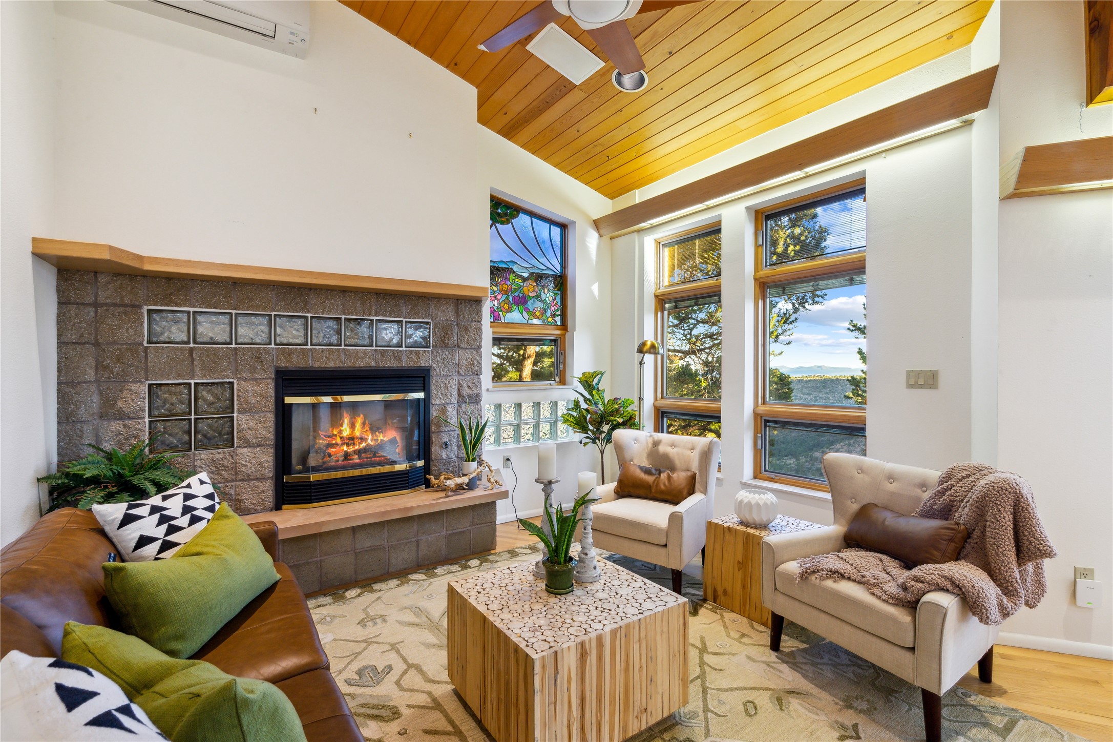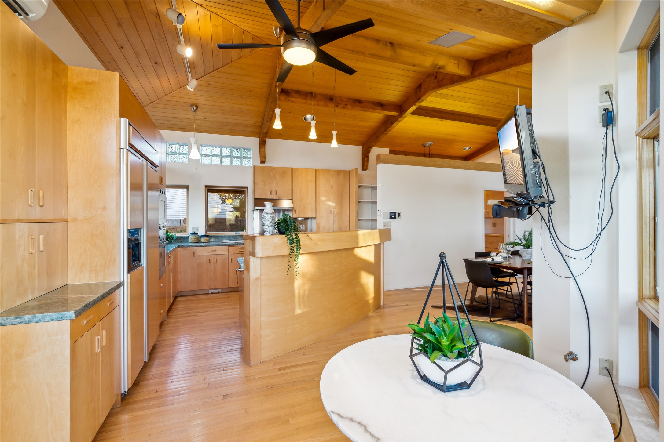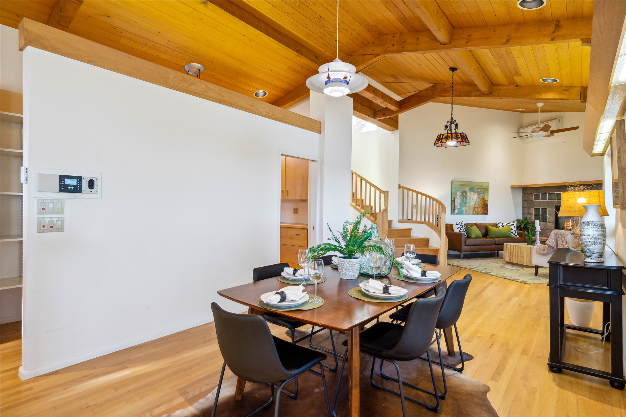 Welcome to your dream home in Los Alamos - a custom-built masterpiece perched on the canyon's rim, offering a unique blend of architectural brilliance and seamless integration into the natural landscape of the neighborhood. This stunning three-bedroom, four-bathroom residence is a rare find, boasting unobstructed views to the north and south and a wealth of luxurious features that make it a true haven for those seeking the pinnacle of comfort and style.Situated on one of the few lots with unrestricted vistas, this home offers a front-row seat to the breathtaking canyons on both sides of Los Pueblos Street. Watch as the colors of the landscape change with the seasons, all from the comfort of your own home.The property is adorned with lush ornamental and fruit trees, creating a tranquil atmosphere that invites relaxation. The soothing sound of a deck-side water feature adds to the ambiance, making it the perfect spot for unwinding after a long day. Automotive aficionados will appreciate the spacious, attached three-car garage, complete with an office and washroom. Whether you're a collector or just need extra storage space, this feature is sure to impress.This home was thoughtfully designed by its original owners and it's now making its debut on the market. Warm wood tones harmonize with the natural light that streams in from all directions, creating an inviting and cozy atmosphere despite its generous size.Multiple living areas and workspaces ensure there's room for everyone to spread out and pursue their passions. The open kitchen is a chef's delight, equipped with stainless steel appliances and natural stone countertops, perfect for entertaining guests.This home offers a unique opportunity to experience luxury living in Los Alamos. Don't miss your chance to make this remarkable property your own. Contact your Realtor today to schedule a private showing and experience the epitome of warmth and elegance on Los Pueblos Street.