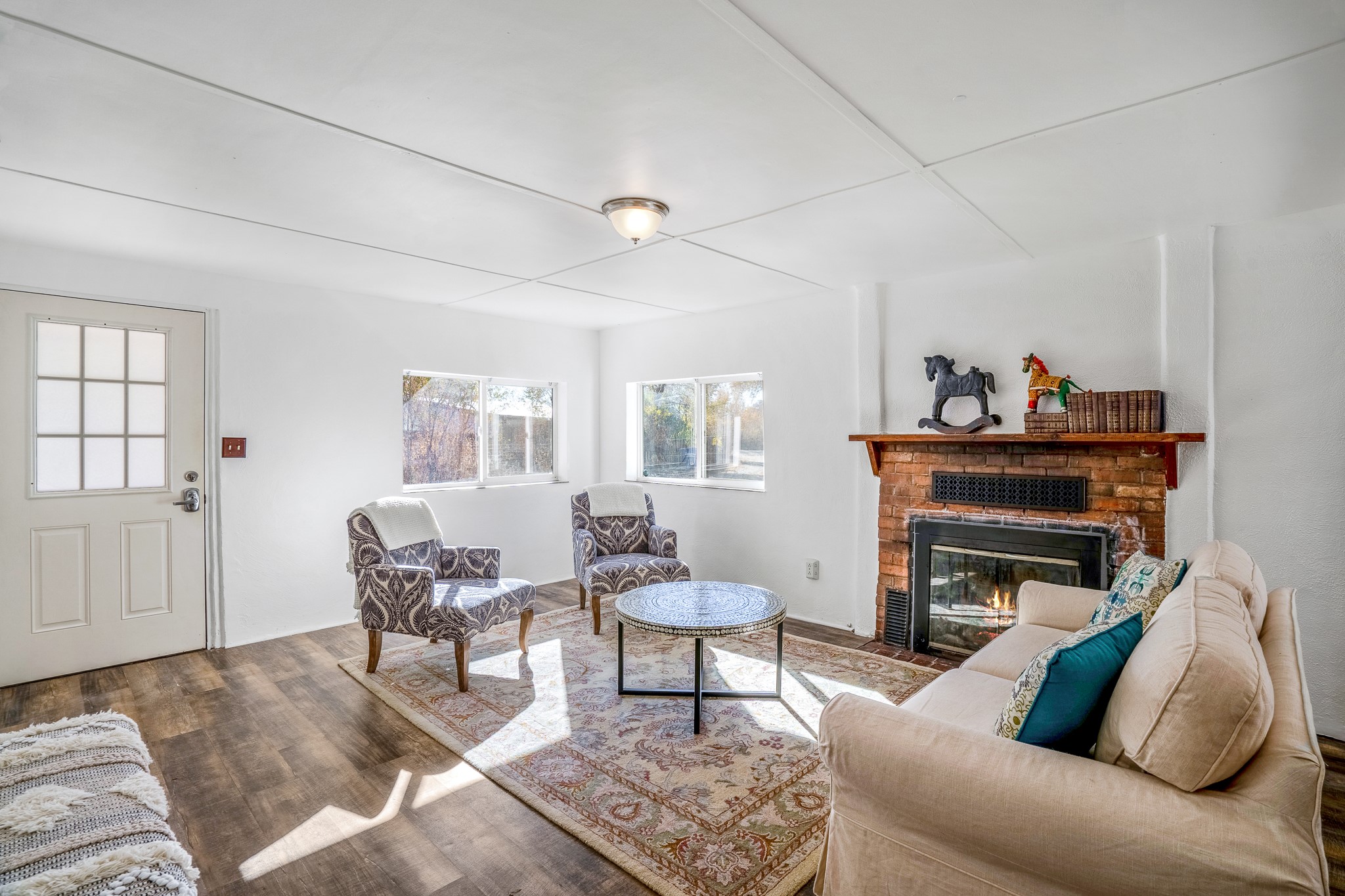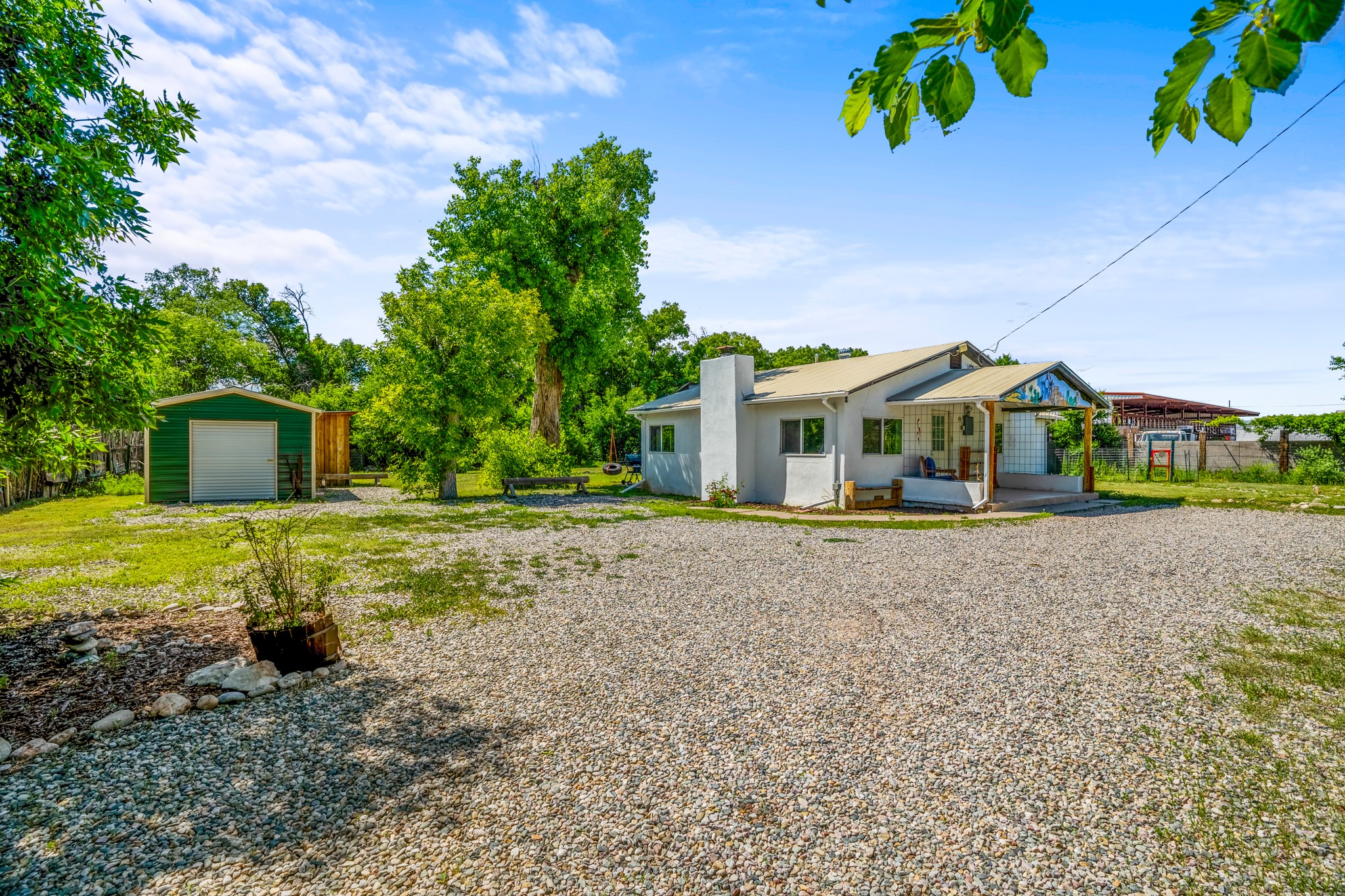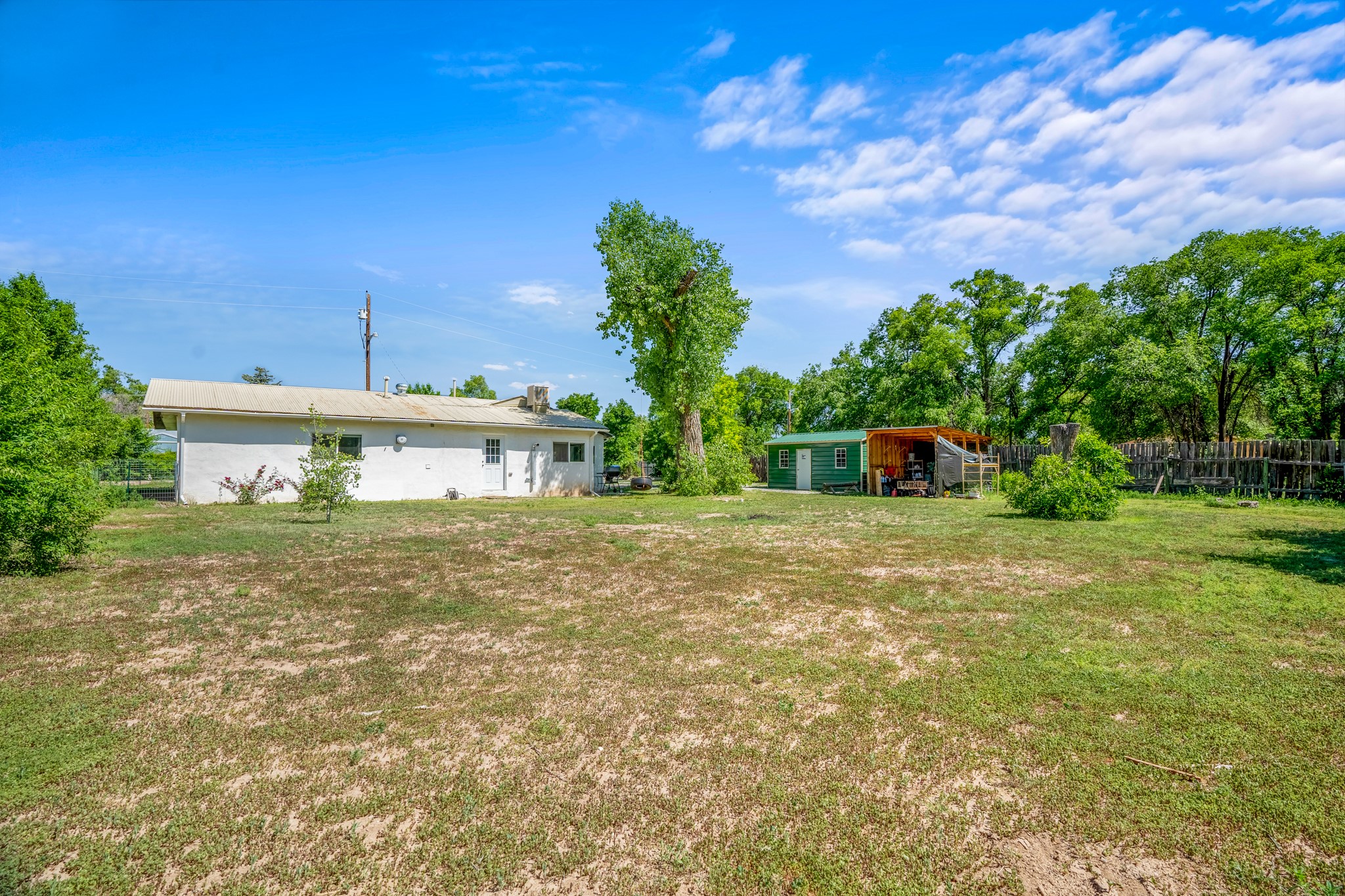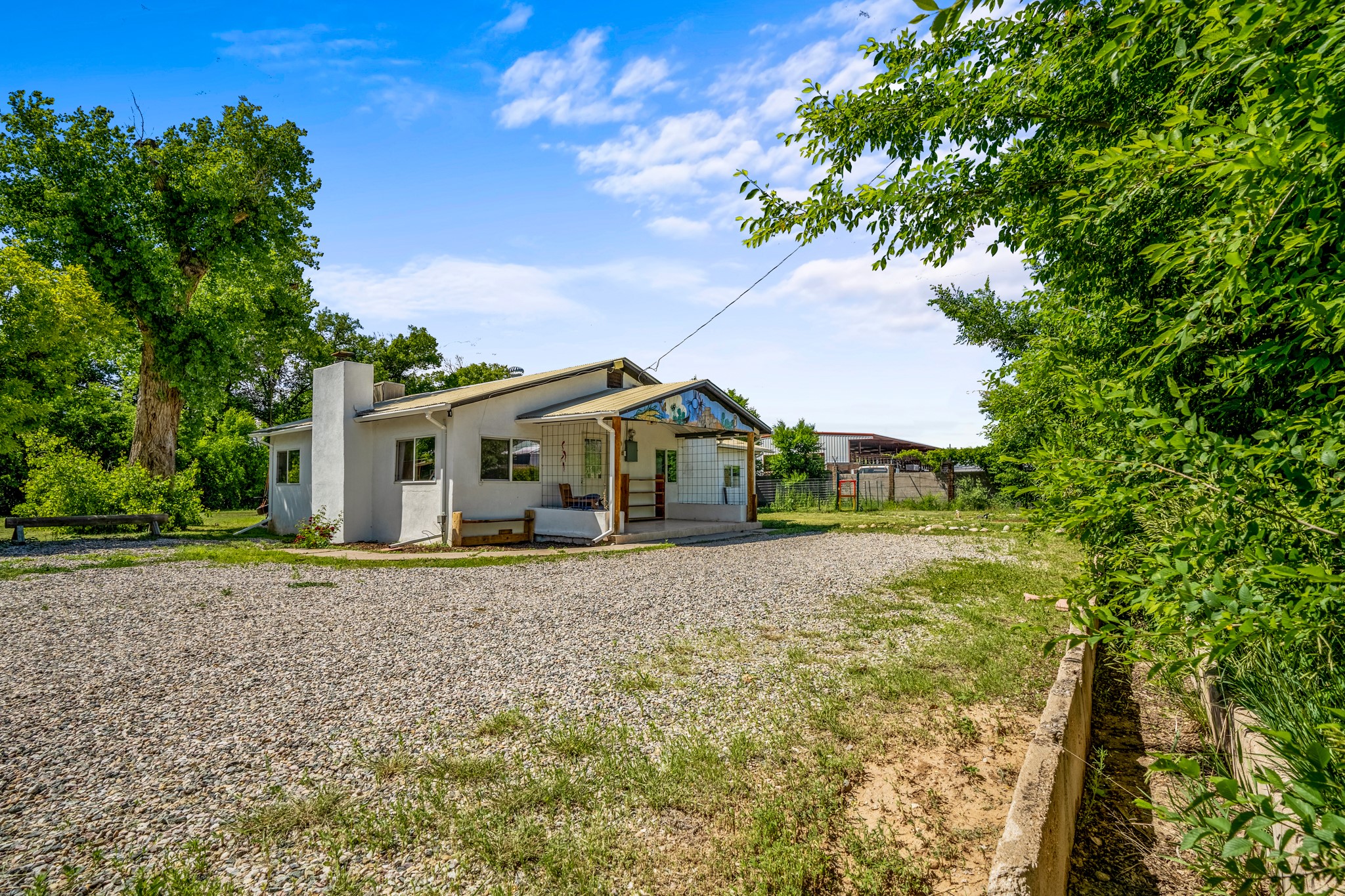 Price Reduction and Move-in ready, WOW! Mature trees surround the sweet home for privacy. With over 1700+/- square feet, three bedrooms, two baths, plenty of storage, a woodburning fireplace, and a pellet stove, this home is move-in ready, with public utilities, acequia water rights, and plenty of room for gardening and outdoor enjoyment. This is genuinely a lovely lot. The backyard backs to Hacienda Home Improvement Center, and bob-wire fencing between the two properties is a plus for security. The home needs some updating. The heating source is the pellet stove in the kitchen. This home's location is very desirable. The time to buy is now! Schedule a showing today. The home is being sold "as is."