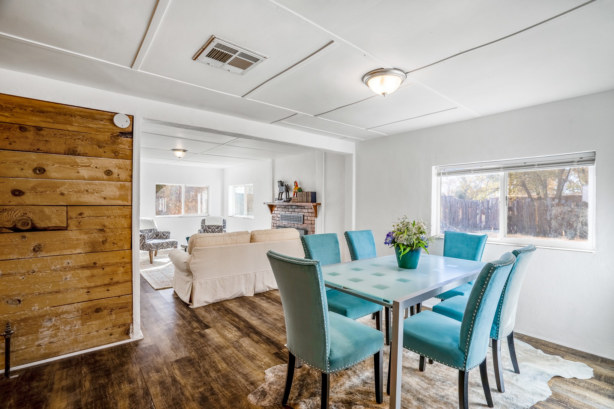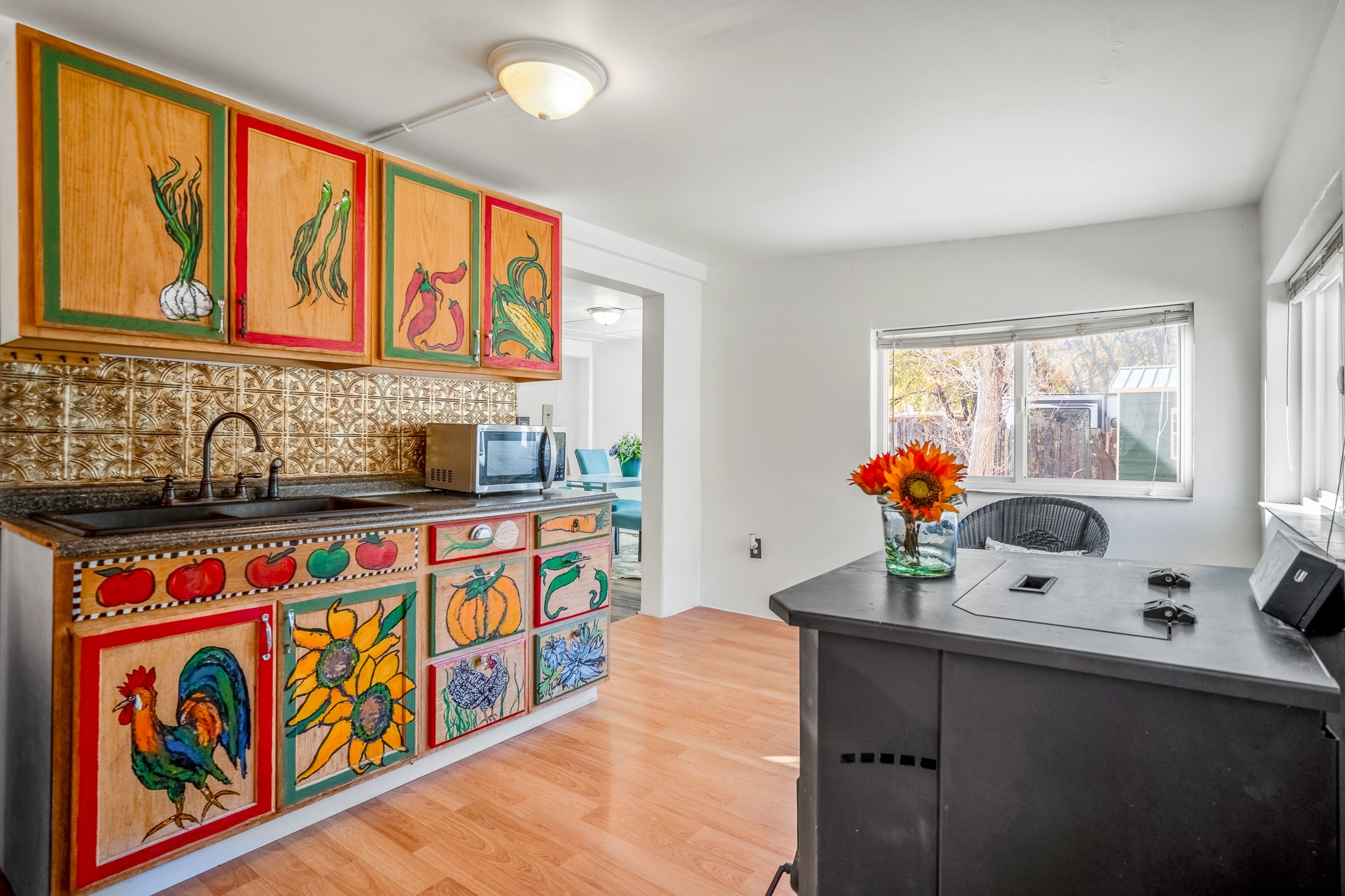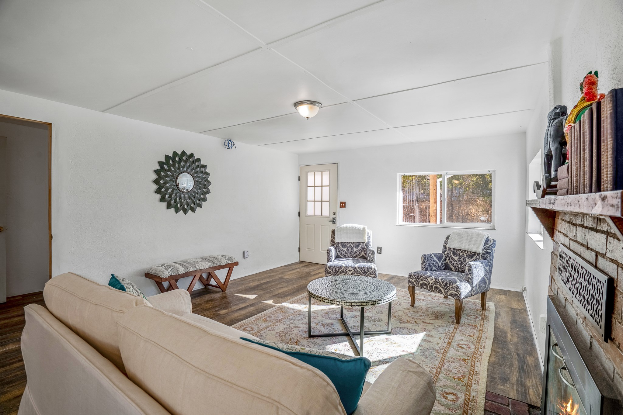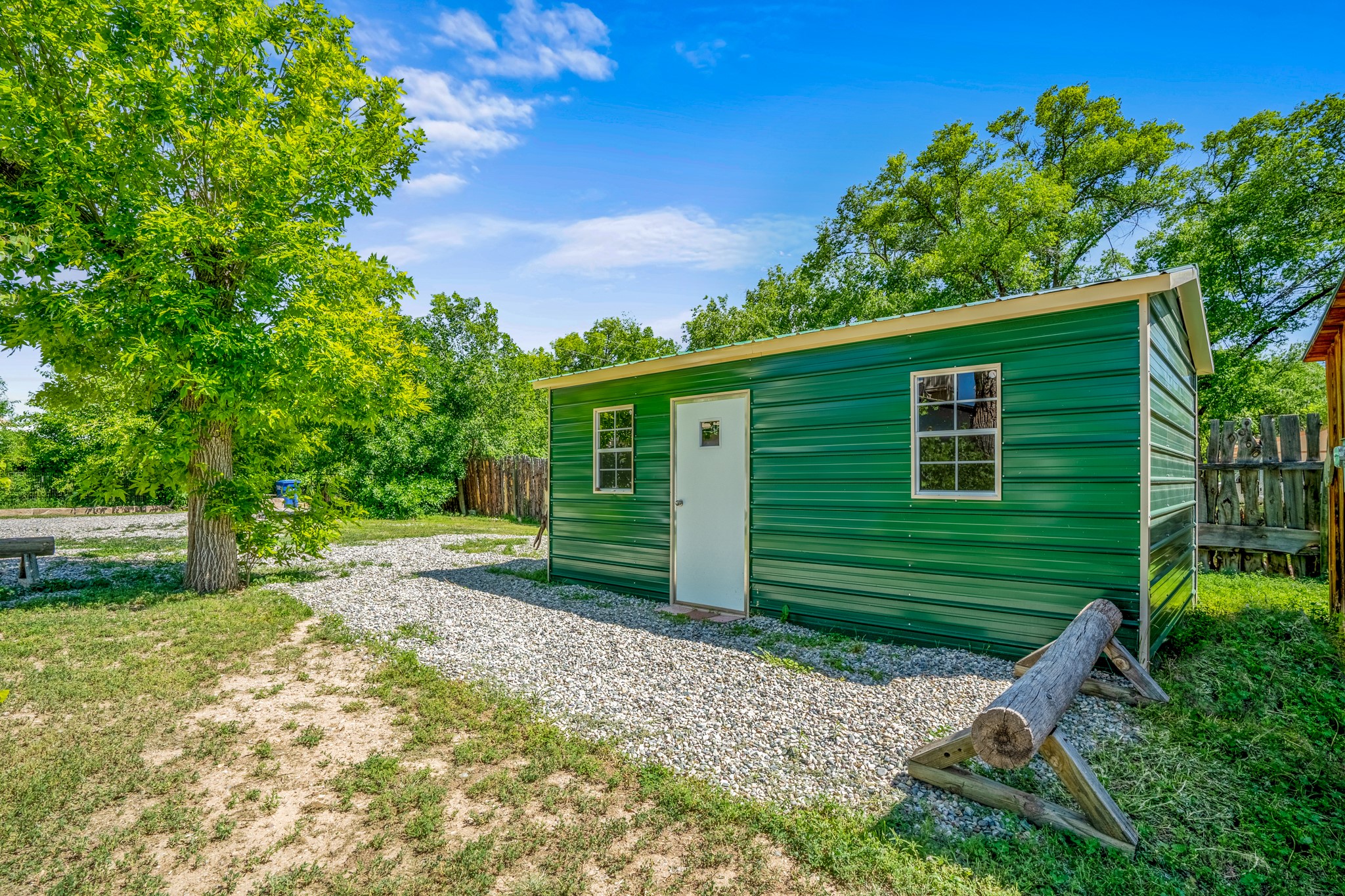 Price Reduction and Move-in ready, WOW! Mature trees surround the sweet home for privacy. With over 1700+/- square feet, three bedrooms, two baths, plenty of storage, a woodburning fireplace, and a pellet stove, this home is move-in ready, with public utilities, acequia water rights, and plenty of room for gardening and outdoor enjoyment. This is genuinely a lovely lot. The backyard backs to Hacienda Home Improvement Center, and bob-wire fencing between the two properties is a plus for security. The home needs some updating. The heating source is the pellet stove in the kitchen. This home's location is very desirable. The time to buy is now! Schedule a showing today. The home is being sold "as is."