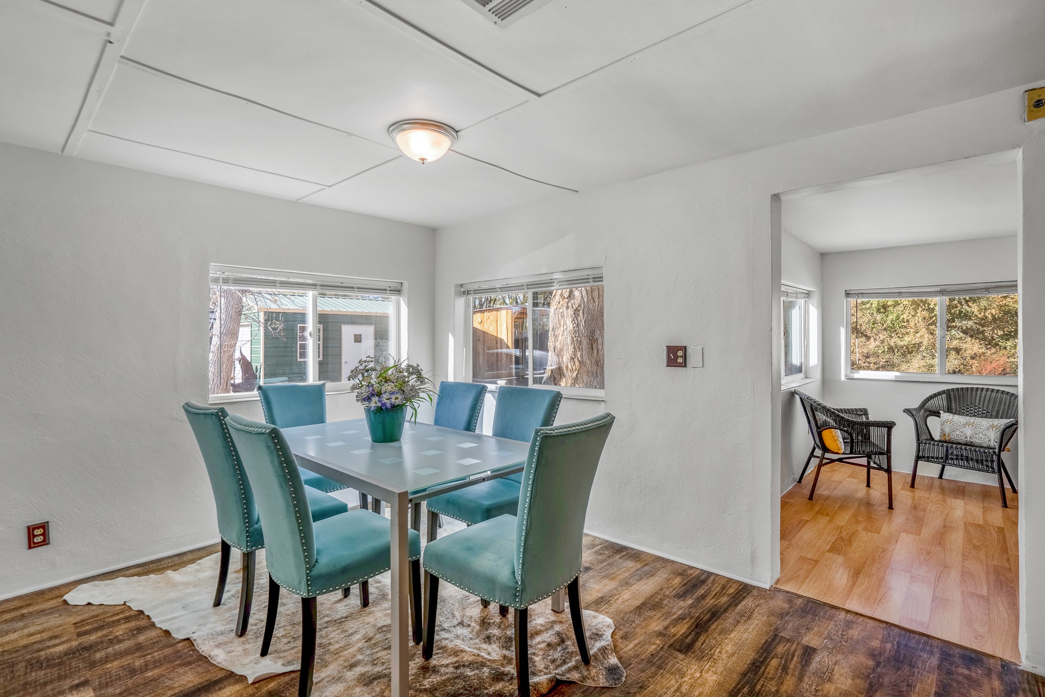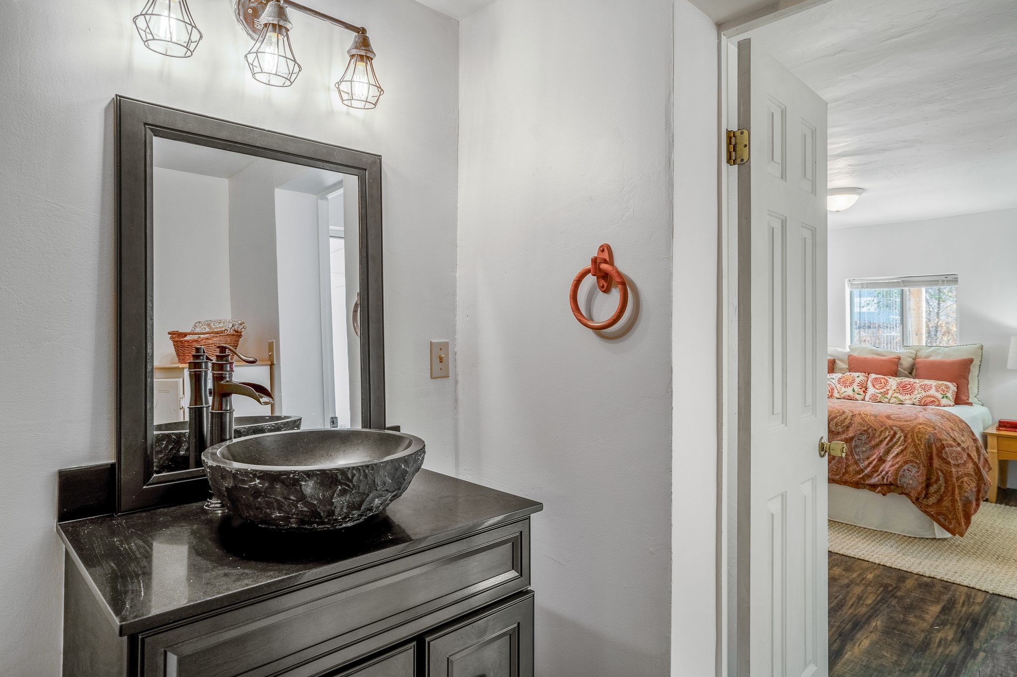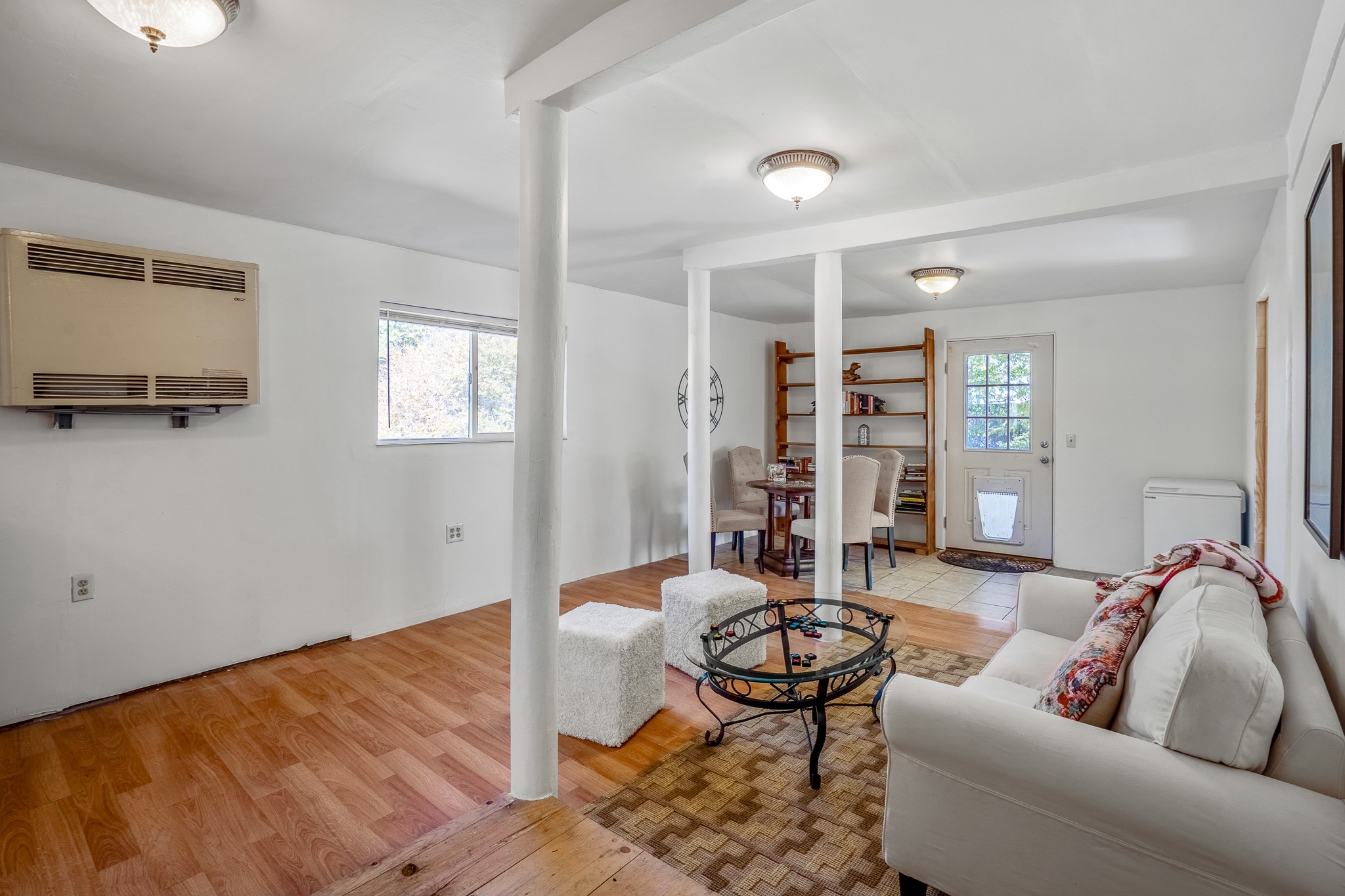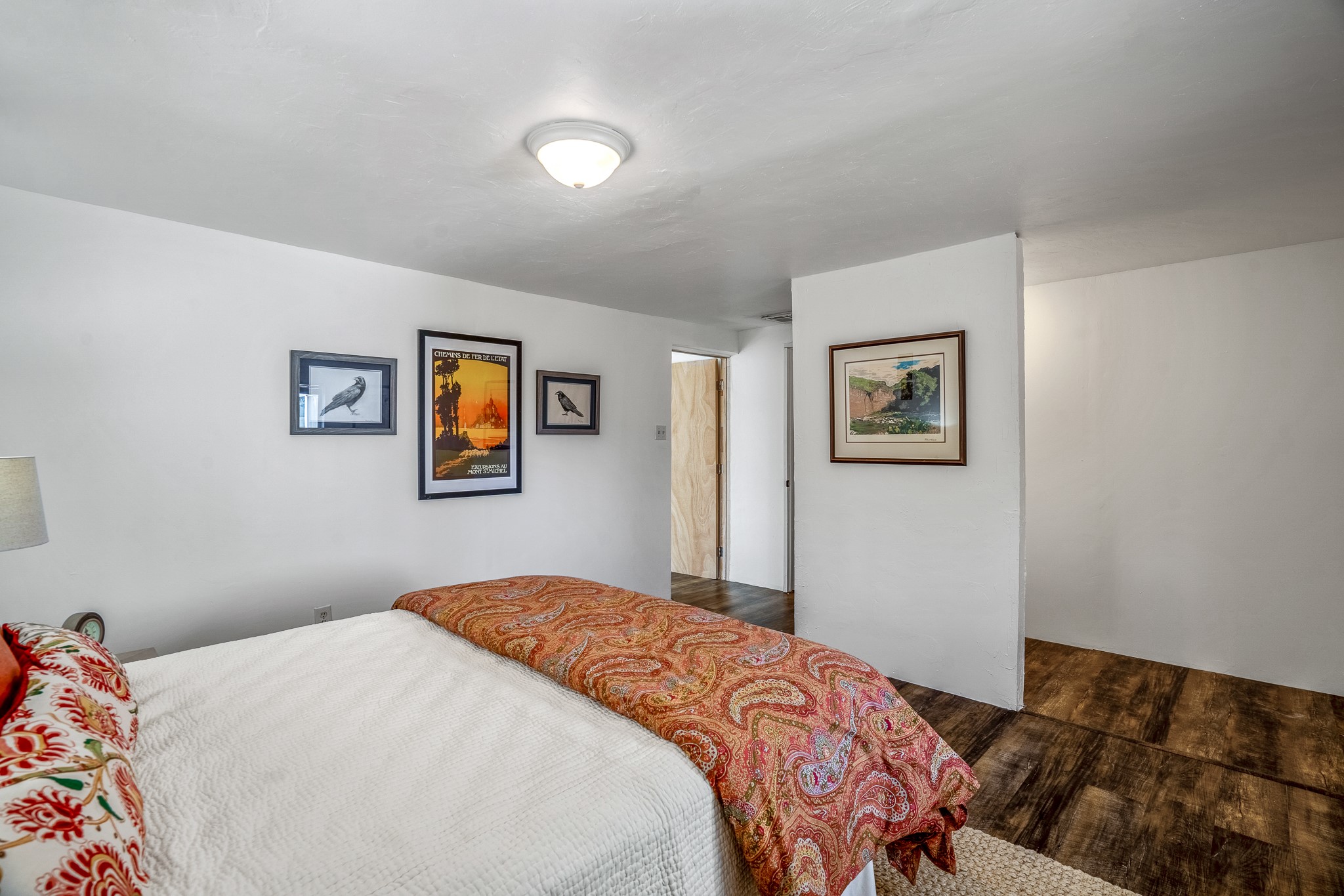 Price Reduction and Move-in ready, WOW! Mature trees surround the sweet home for privacy. With over 1700+/- square feet, three bedrooms, two baths, plenty of storage, a woodburning fireplace, and a pellet stove, this home is move-in ready, with public utilities, acequia water rights, and plenty of room for gardening and outdoor enjoyment. This is genuinely a lovely lot. The backyard backs to Hacienda Home Improvement Center, and bob-wire fencing between the two properties is a plus for security. The home needs some updating. The heating source is the pellet stove in the kitchen. This home's location is very desirable. The time to buy is now! Schedule a showing today. The home is being sold "as is."