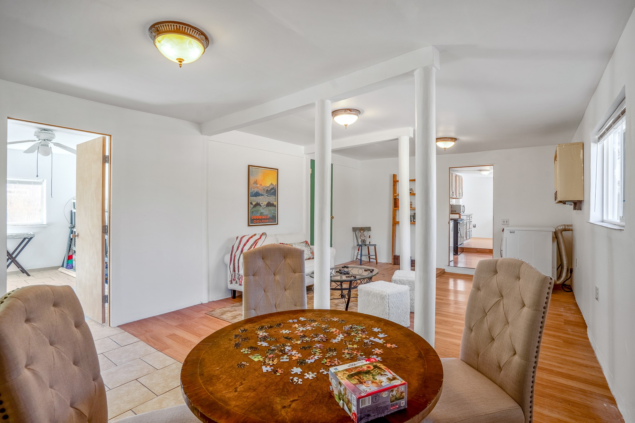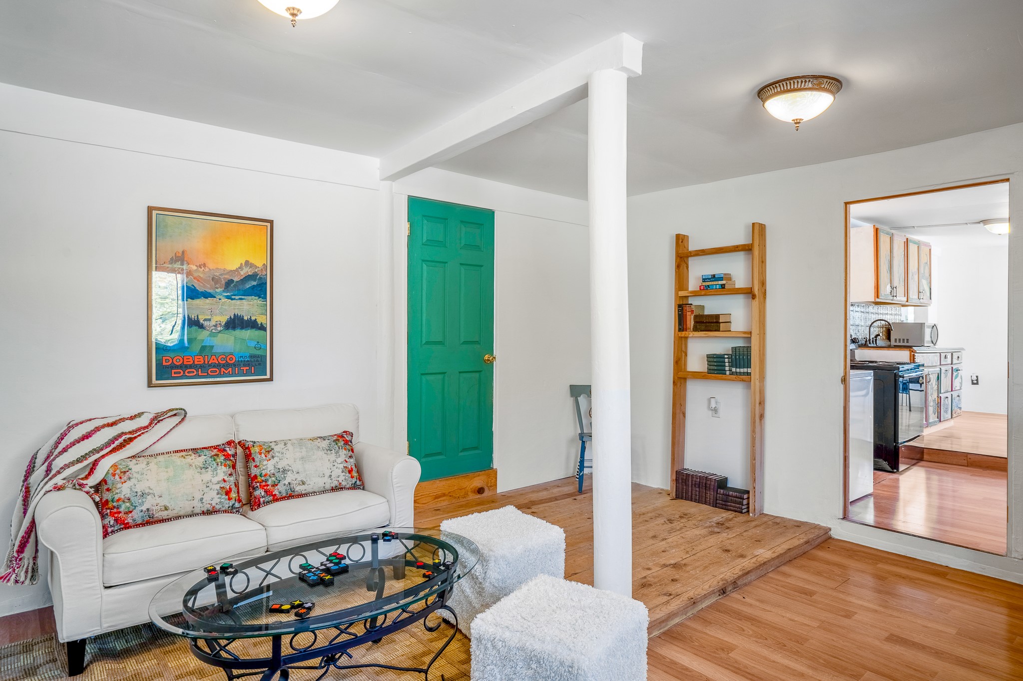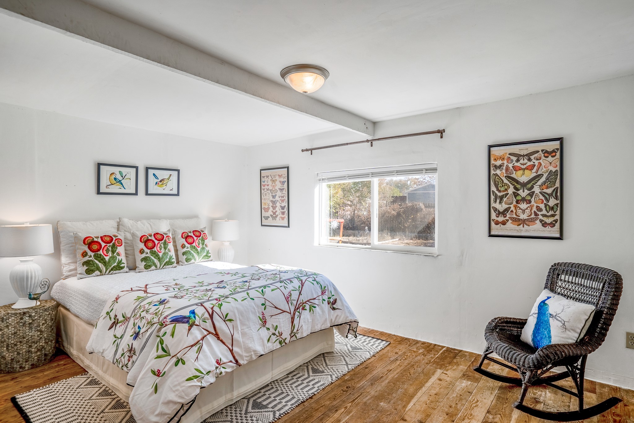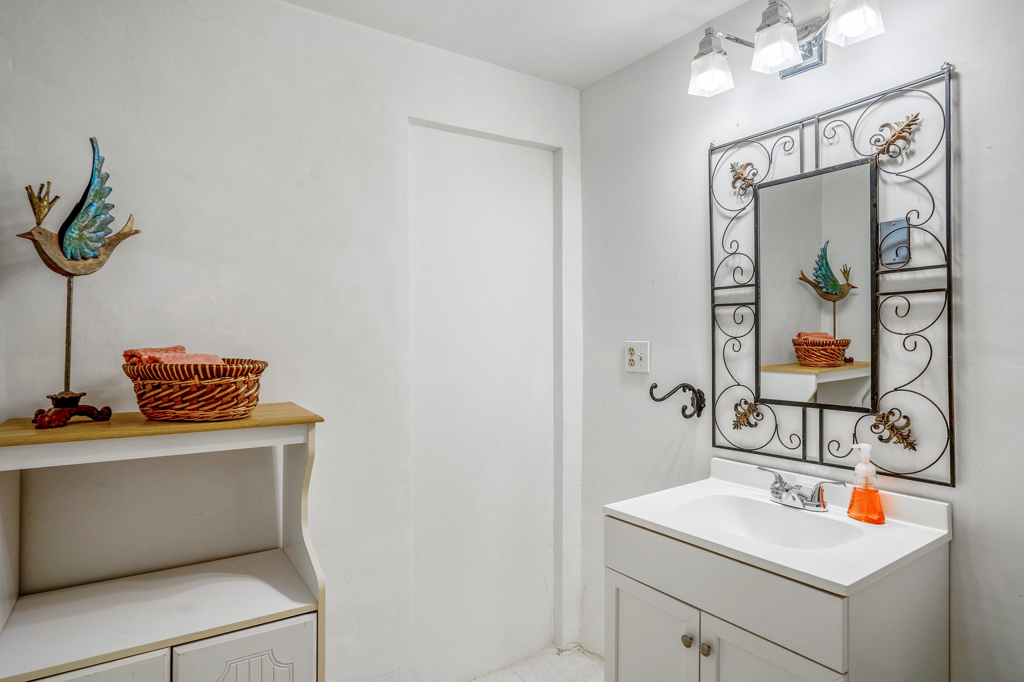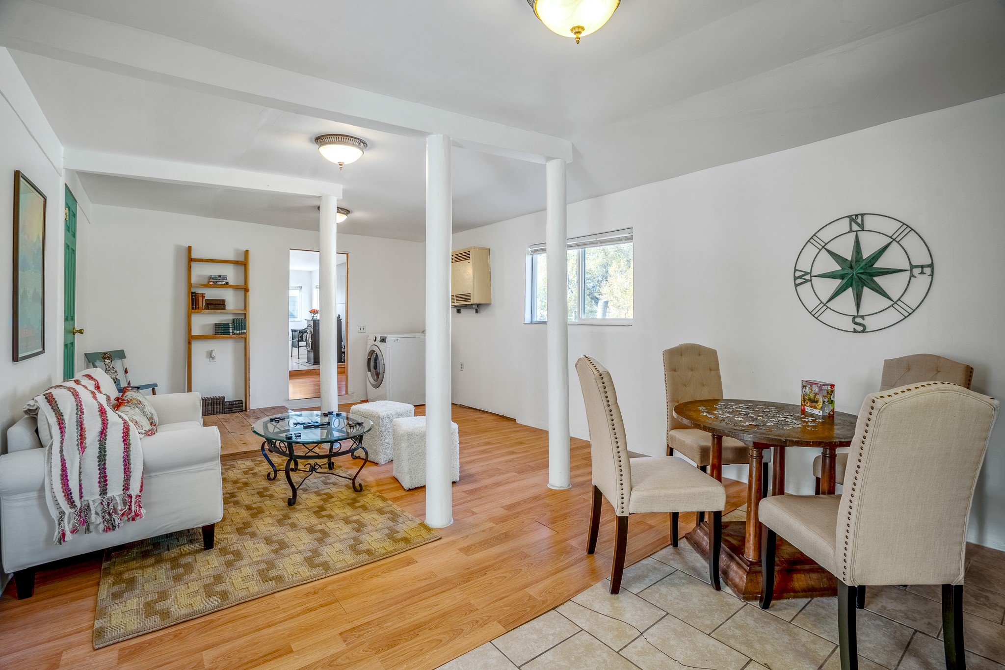 Price Reduction and Move-in ready, WOW! Mature trees surround the sweet home for privacy. With over 1700+/- square feet, three bedrooms, two baths, plenty of storage, a woodburning fireplace, and a pellet stove, this home is move-in ready, with public utilities, acequia water rights, and plenty of room for gardening and outdoor enjoyment. This is genuinely a lovely lot. The backyard backs to Hacienda Home Improvement Center, and bob-wire fencing between the two properties is a plus for security. The home needs some updating. The heating source is the pellet stove in the kitchen. This home's location is very desirable. The time to buy is now! Schedule a showing today. The home is being sold "as is."