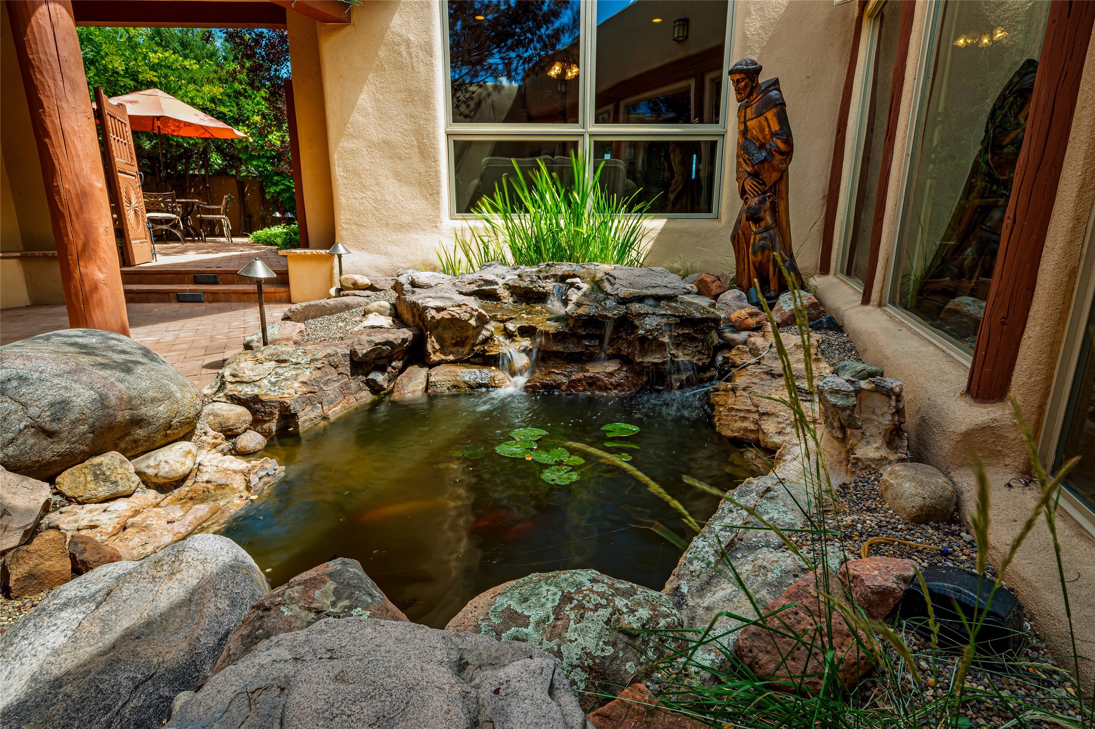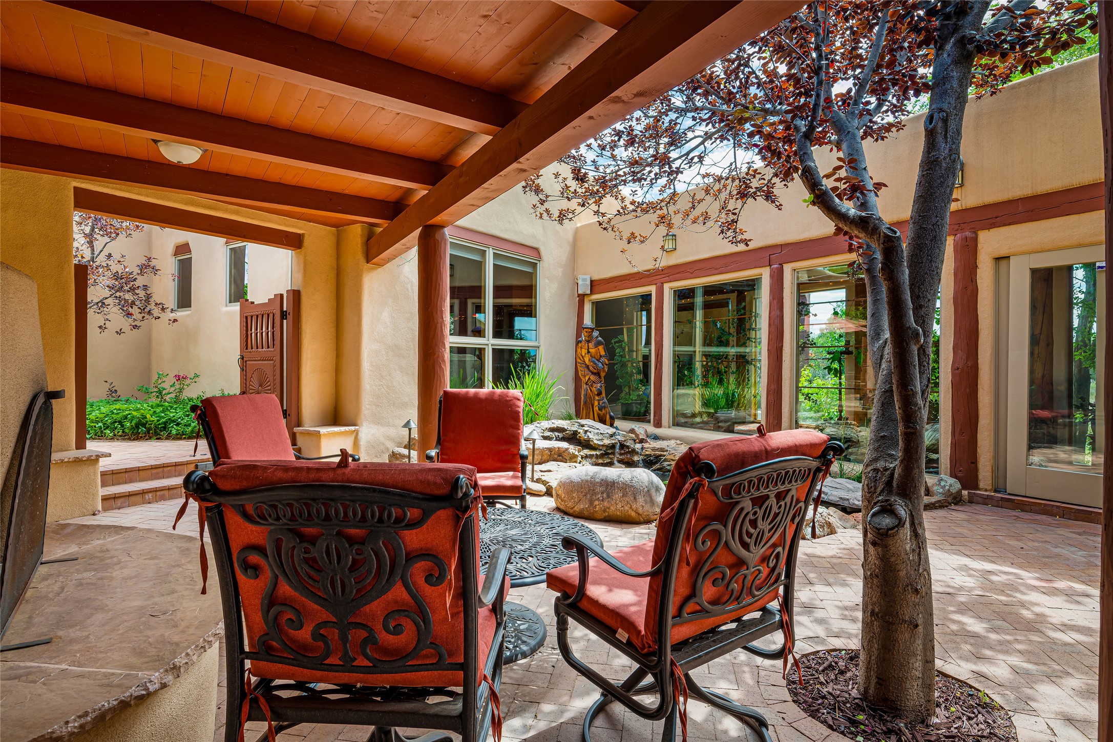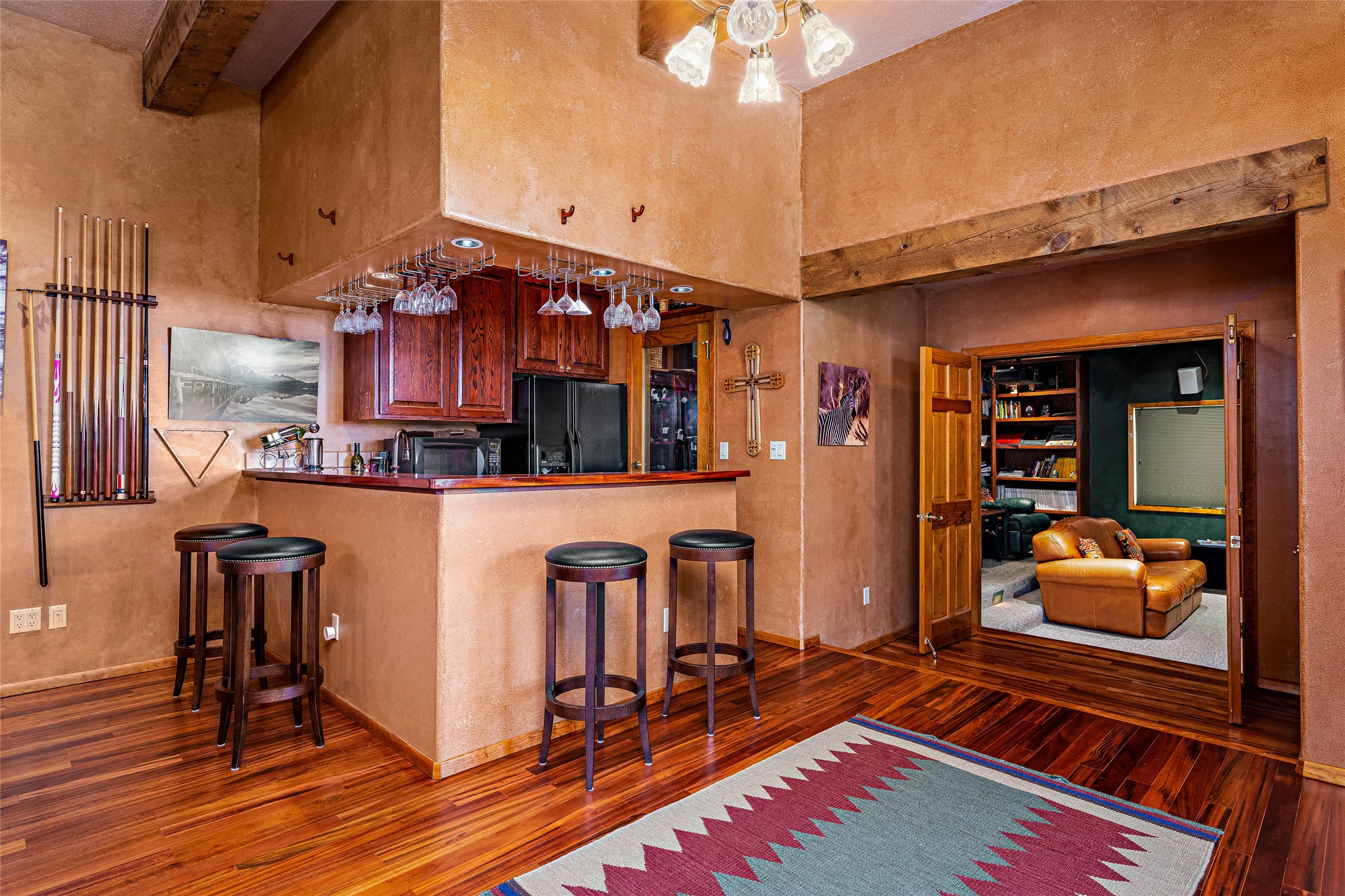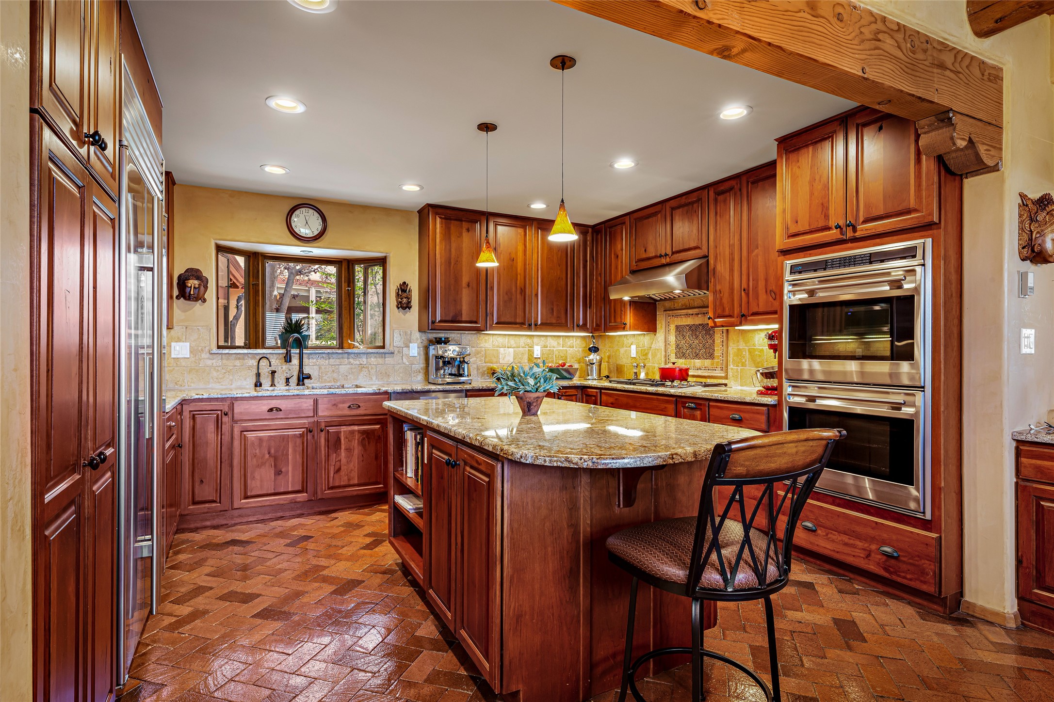 Beautiful well cared-for home offers lots of spaces for almost every function one might need! Charming comfortable living room with kiva fireplace, formal dining room, casual dining in remodeled kitchen, big den with wet bar and wine cellar, fabulous media room is the real deal, five bedrooms, three full baths, and delightful outdoor living areas include a patio with rock waterfall and Koi pond, portal with kiva fireplace, and a lovely patio dining area. There are five bays in three finished garages, one of which is currently a studio/workshop. Play volleyball in an officially sized sand court or toss some horseshoes! Two brand new modern-efficiency evaporative air conditioners, recently serviced boilers for two radiant heating systems, two hot water tanks, new stucco, and roof is well-maintained in good condition. Electricity is totally supplied by an owned, rooftop-mounted, solar photovoltaic system. An exceptional Eldorado home!