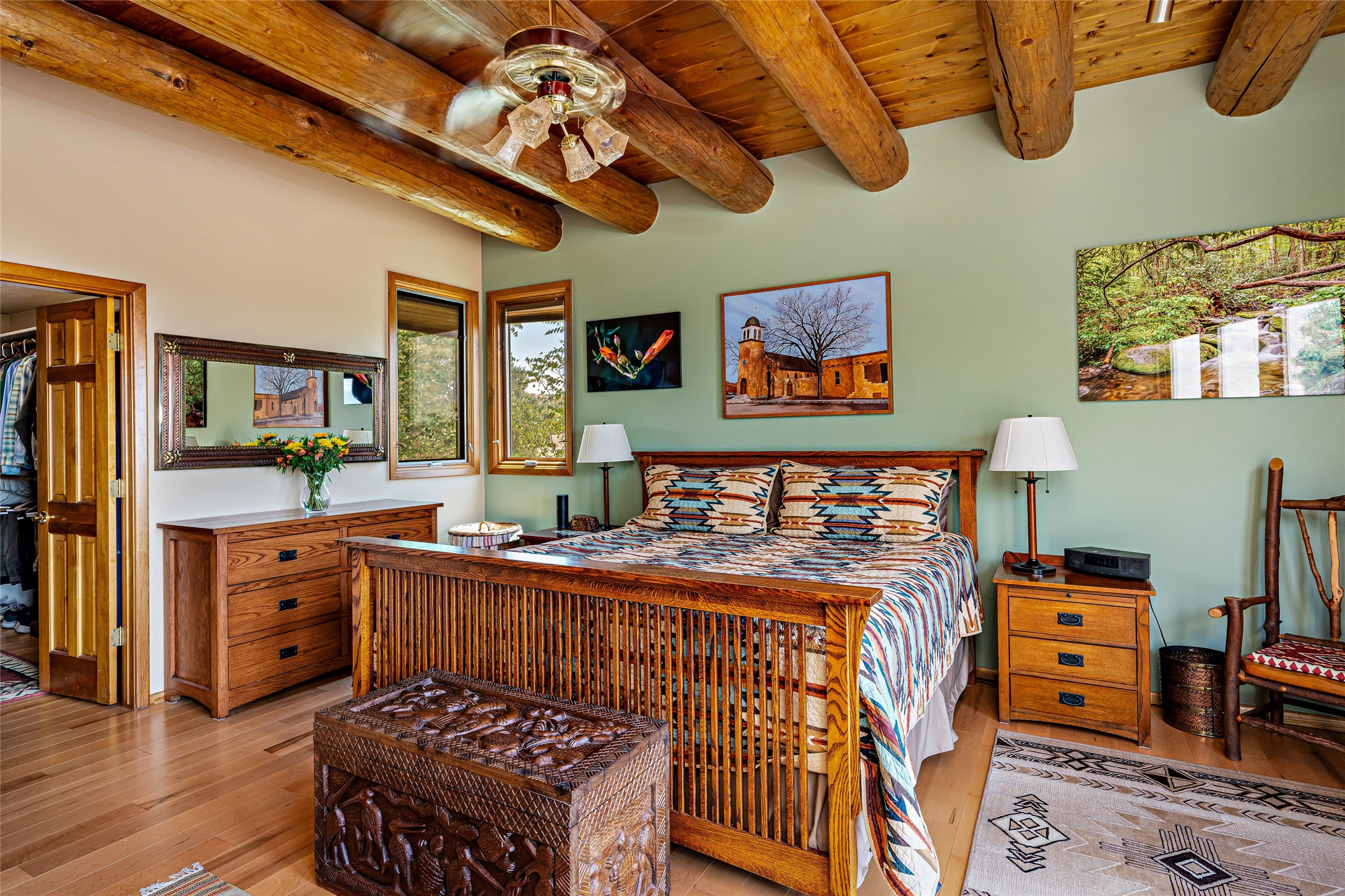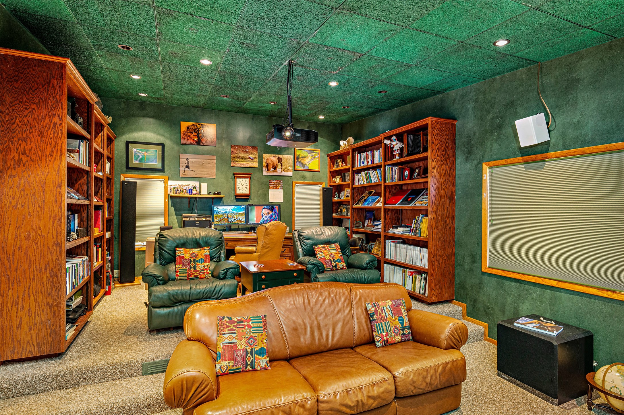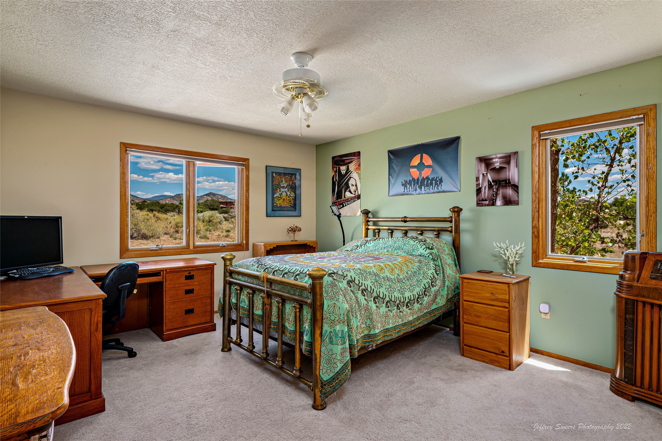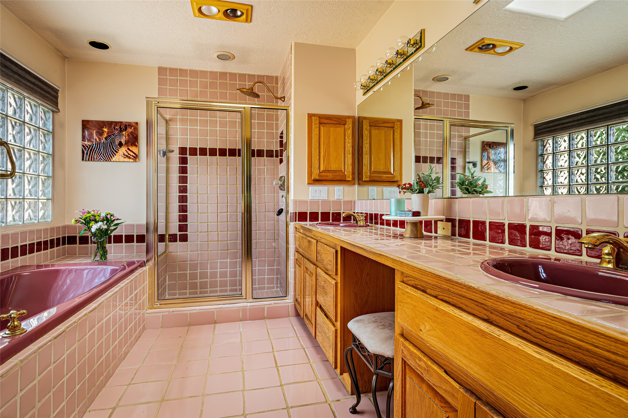 Beautiful well cared-for home offers lots of spaces for almost every function one might need! Charming comfortable living room with kiva fireplace, formal dining room, casual dining in remodeled kitchen, big den with wet bar and wine cellar, fabulous media room is the real deal, five bedrooms, three full baths, and delightful outdoor living areas include a patio with rock waterfall and Koi pond, portal with kiva fireplace, and a lovely patio dining area. There are five bays in three finished garages, one of which is currently a studio/workshop. Play volleyball in an officially sized sand court or toss some horseshoes! Two brand new modern-efficiency evaporative air conditioners, recently serviced boilers for two radiant heating systems, two hot water tanks, new stucco, and roof is well-maintained in good condition. Electricity is totally supplied by an owned, rooftop-mounted, solar photovoltaic system. An exceptional Eldorado home!