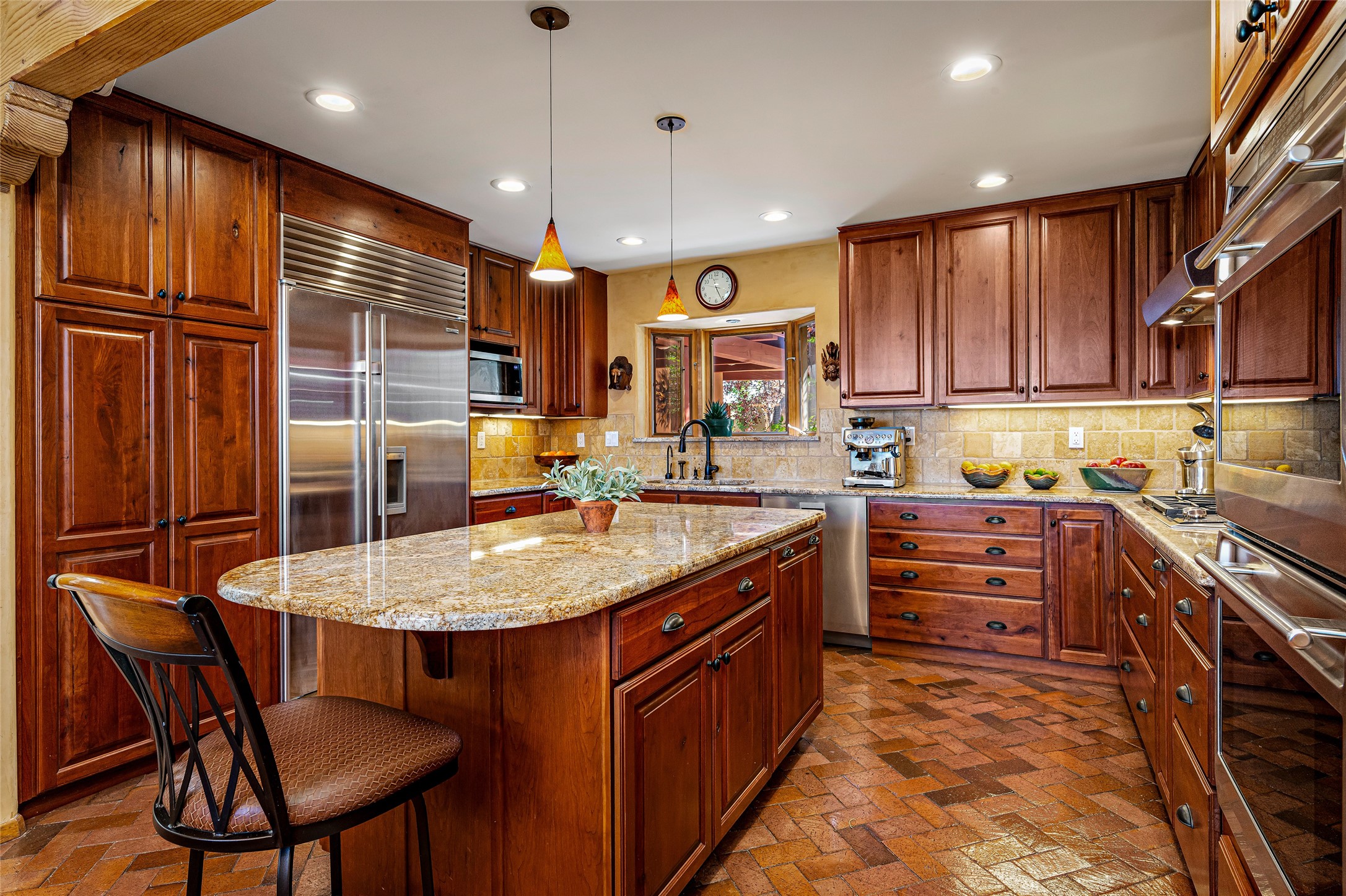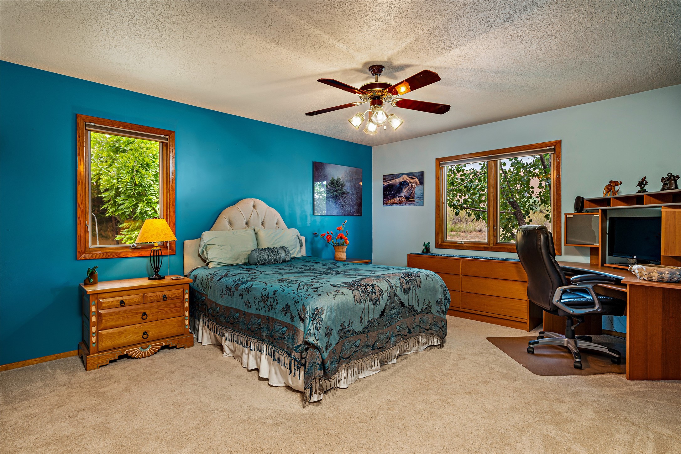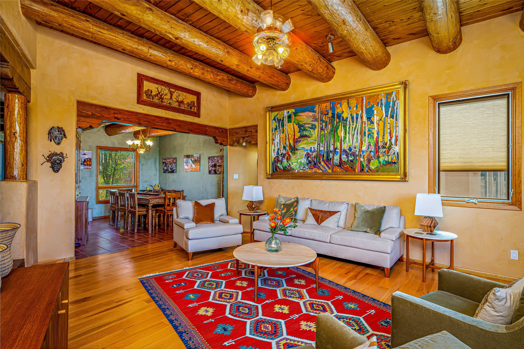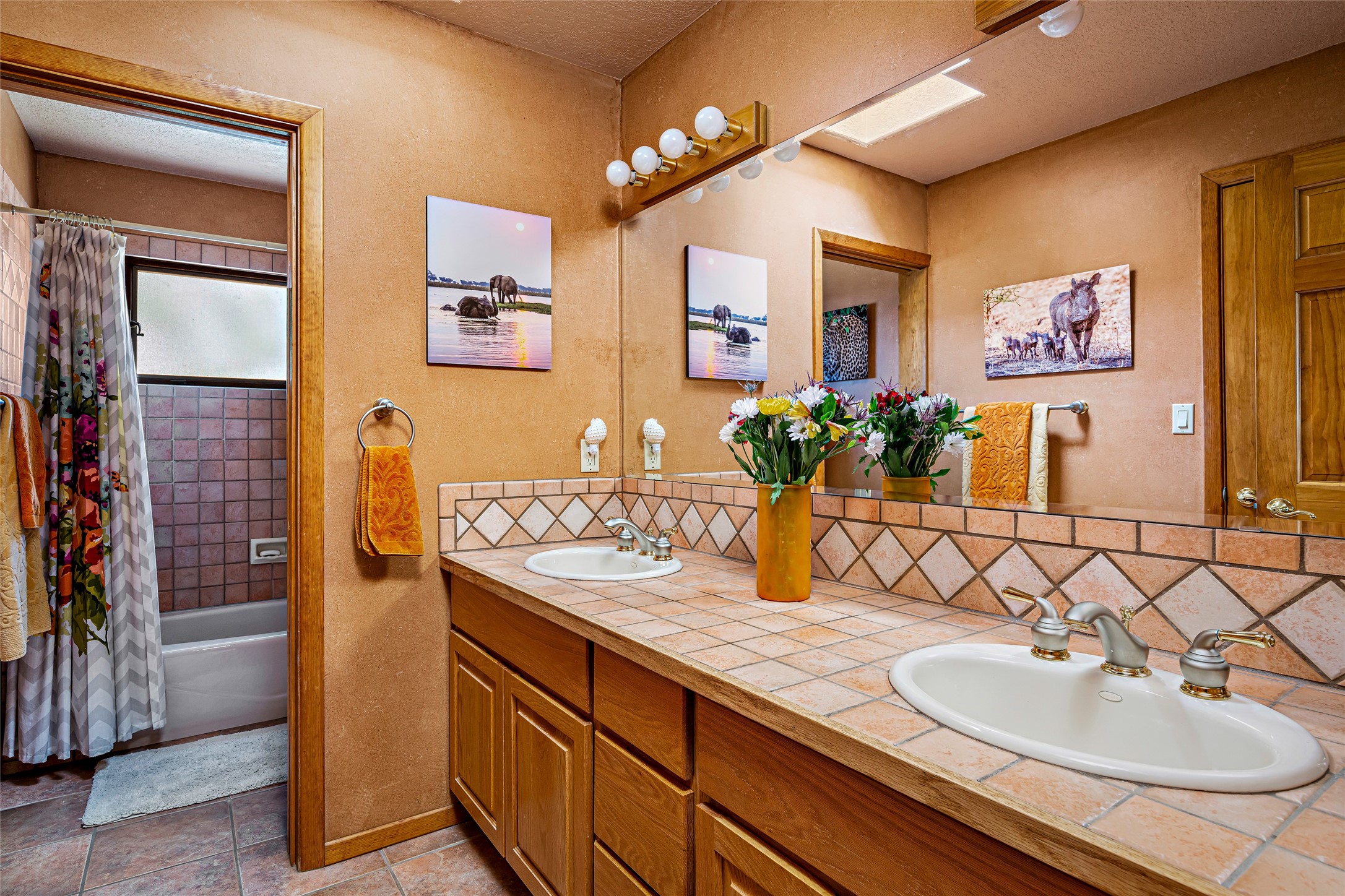 Beautiful well cared-for home offers lots of spaces for almost every function one might need! Charming comfortable living room with kiva fireplace, formal dining room, casual dining in remodeled kitchen, big den with wet bar and wine cellar, fabulous media room is the real deal, five bedrooms, three full baths, and delightful outdoor living areas include a patio with rock waterfall and Koi pond, portal with kiva fireplace, and a lovely patio dining area. There are five bays in three finished garages, one of which is currently a studio/workshop. Play volleyball in an officially sized sand court or toss some horseshoes! Two brand new modern-efficiency evaporative air conditioners, recently serviced boilers for two radiant heating systems, two hot water tanks, new stucco, and roof is well-maintained in good condition. Electricity is totally supplied by an owned, rooftop-mounted, solar photovoltaic system. An exceptional Eldorado home!