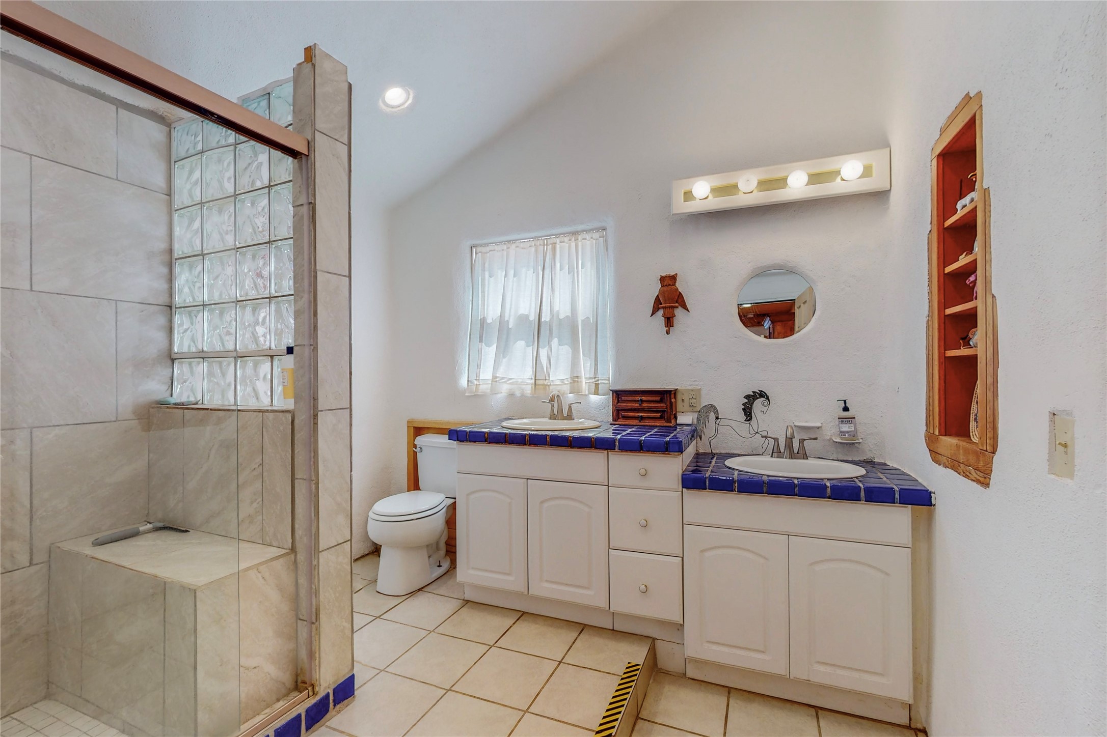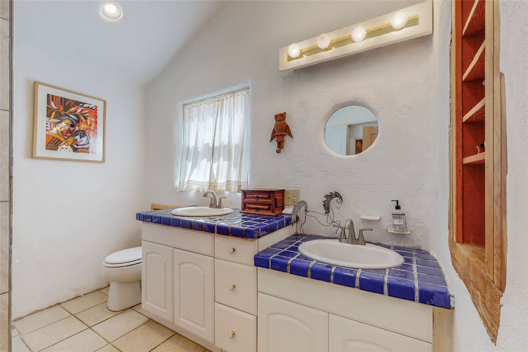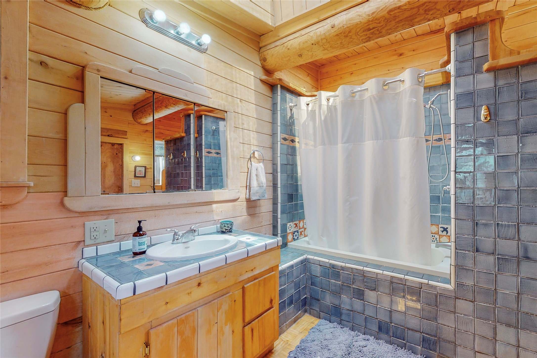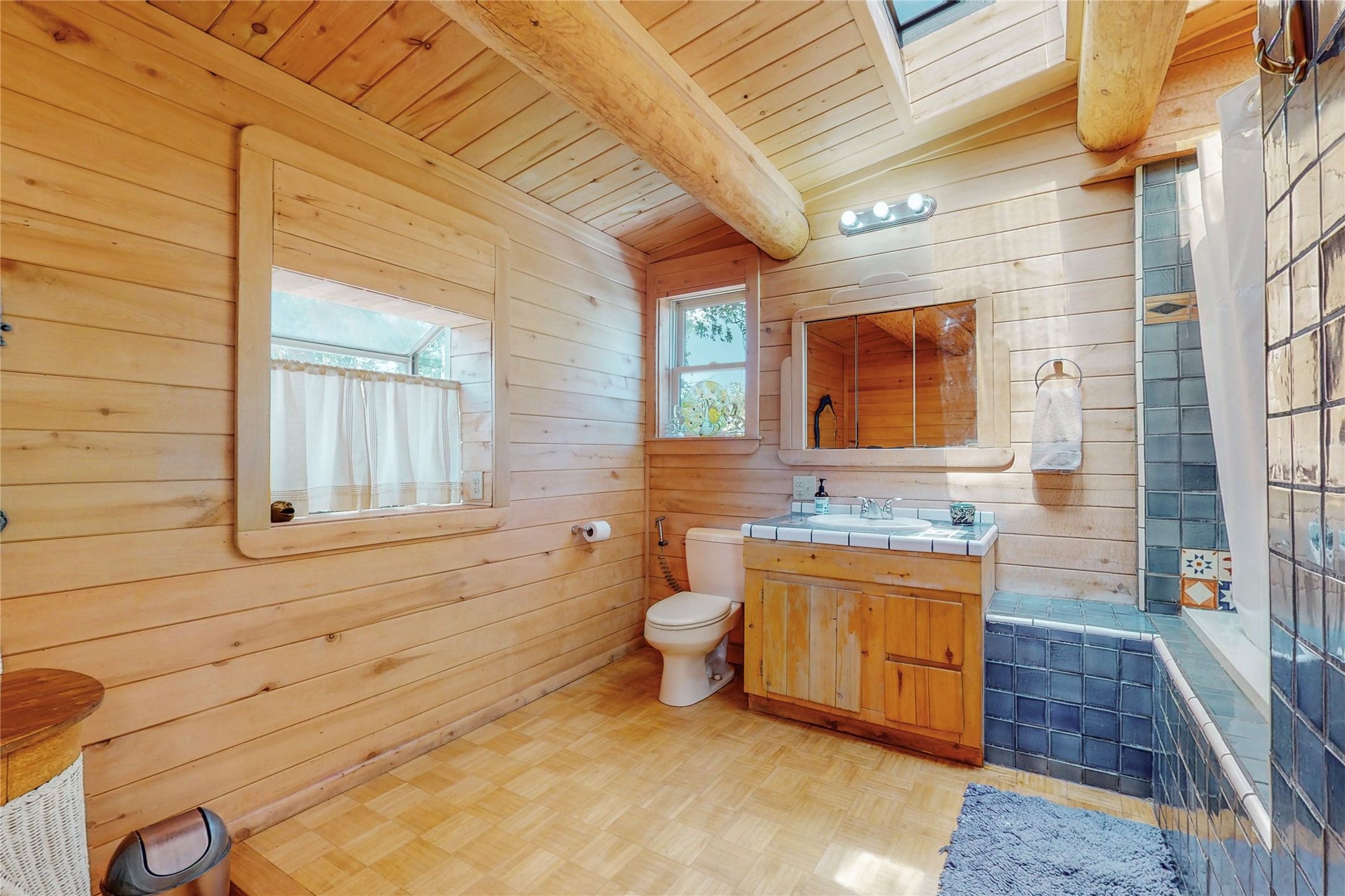 What an incredible find! This beautiful Madrid home is an artist's dream, offering both residential and commercial potential on two side by side lots. The charming home sits up high, right on the Turquoise Trail. The large deck out front offers great entertainment potential with wonderful views and lots of privacy. This home offers an open floorplan, including a large kitchen, a bedroom and office downstairs, and a large master suite with a walk in closet upstairs. There is plenty of natural light, as well as a whole home water filtration system, including reverse osmosis under the kitchen sink. The large side yard is tastefully landscaped and has a small outbuilding, perfect for an artist studio or gallery. Access and offstreet parking is available off of Ice House Rd.