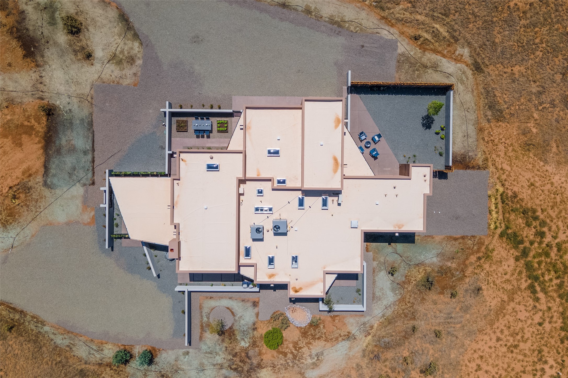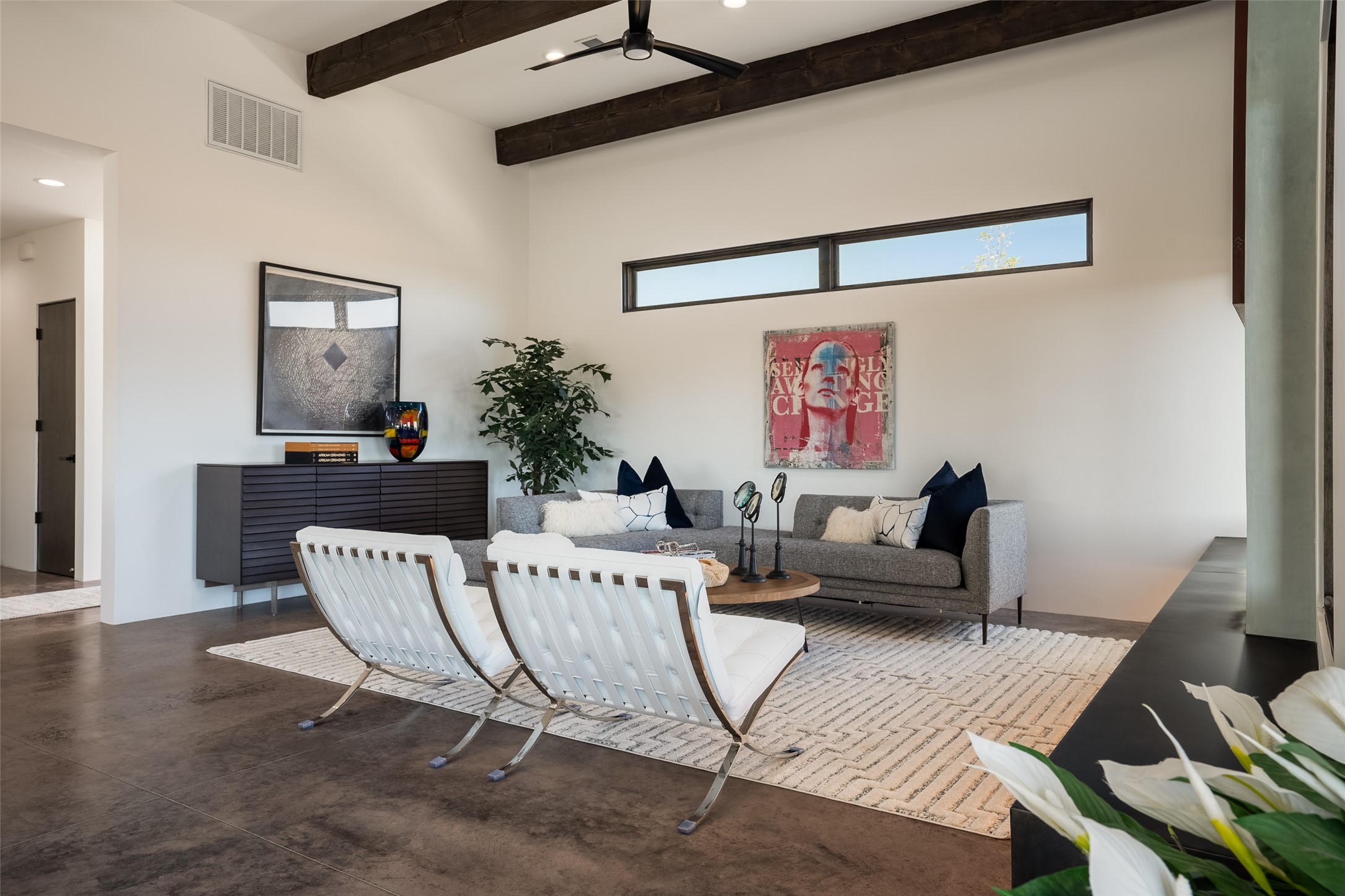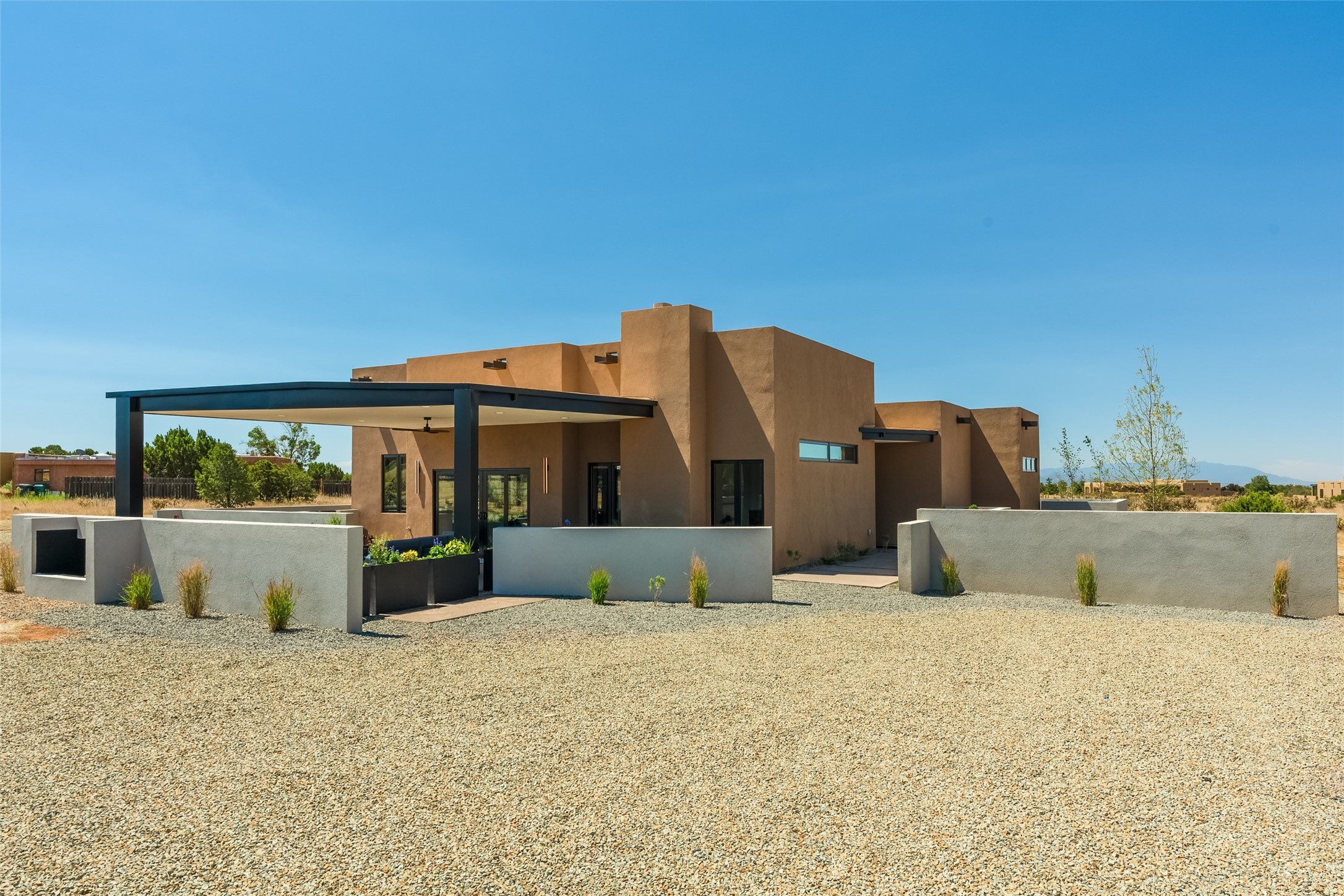 *2023 Haciendas Parade of Homes "President's Award for Excellence" WINNER* Exceptional New Construction in Eldorado! Pueblo Contemporary, recently completed (mid August 2023) by local building team, Acacia Builders. Perfectly sited to capture mountain views in every direction, this 3,050 sqft +/- residence is the ultimate example of what Acacia Builders does best: Sleek contemporary style, thoughtful details, unique concrete accents, versatile spaces, and green built amenities. Every room is bathed in natural light and polished with luxurious finishes. A bonus RV garage or studio is the "little something extra" you didn't know you were looking for. An amazing find in one of the most beautiful backdrops Santa Fe has to offer.