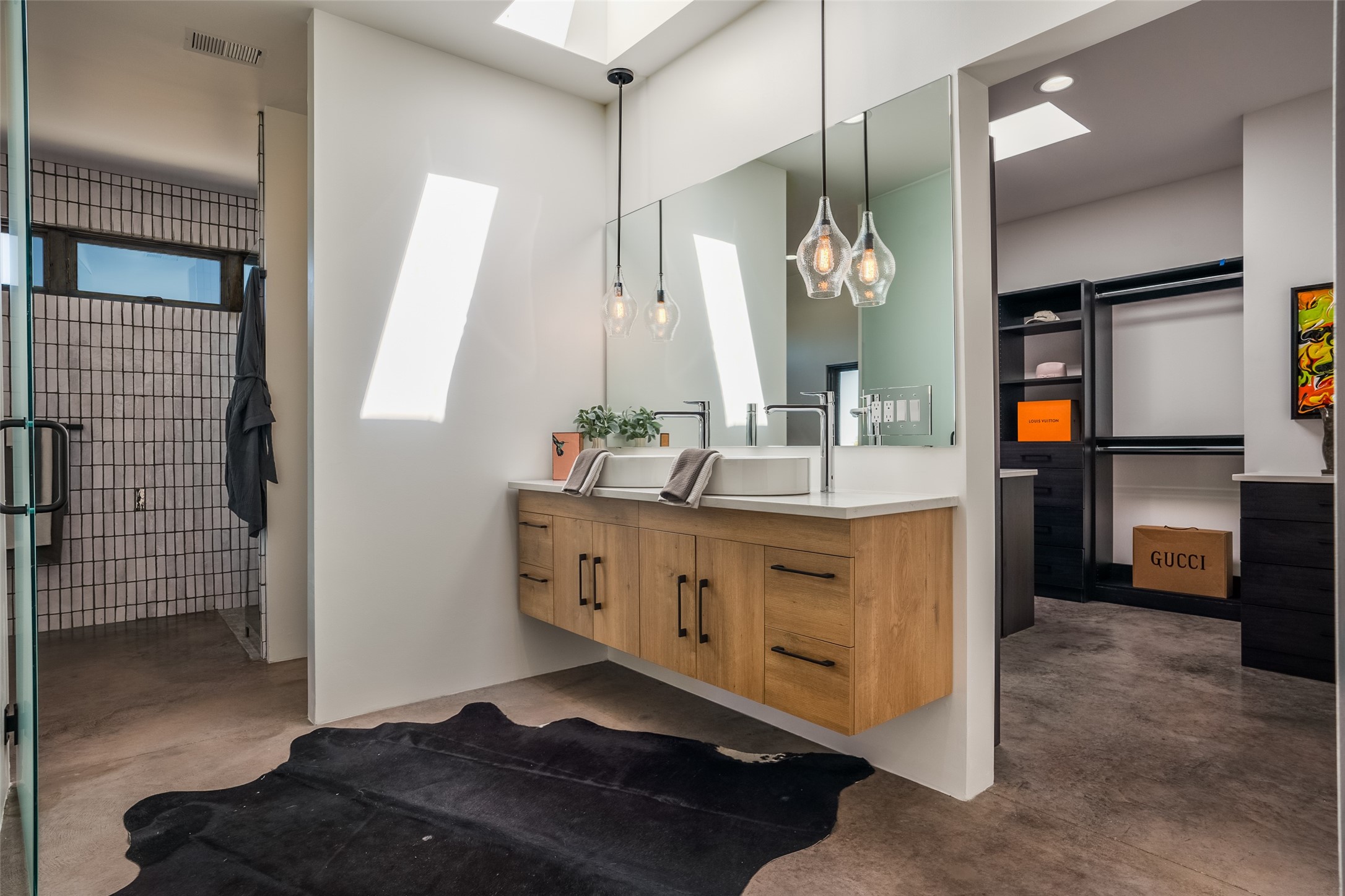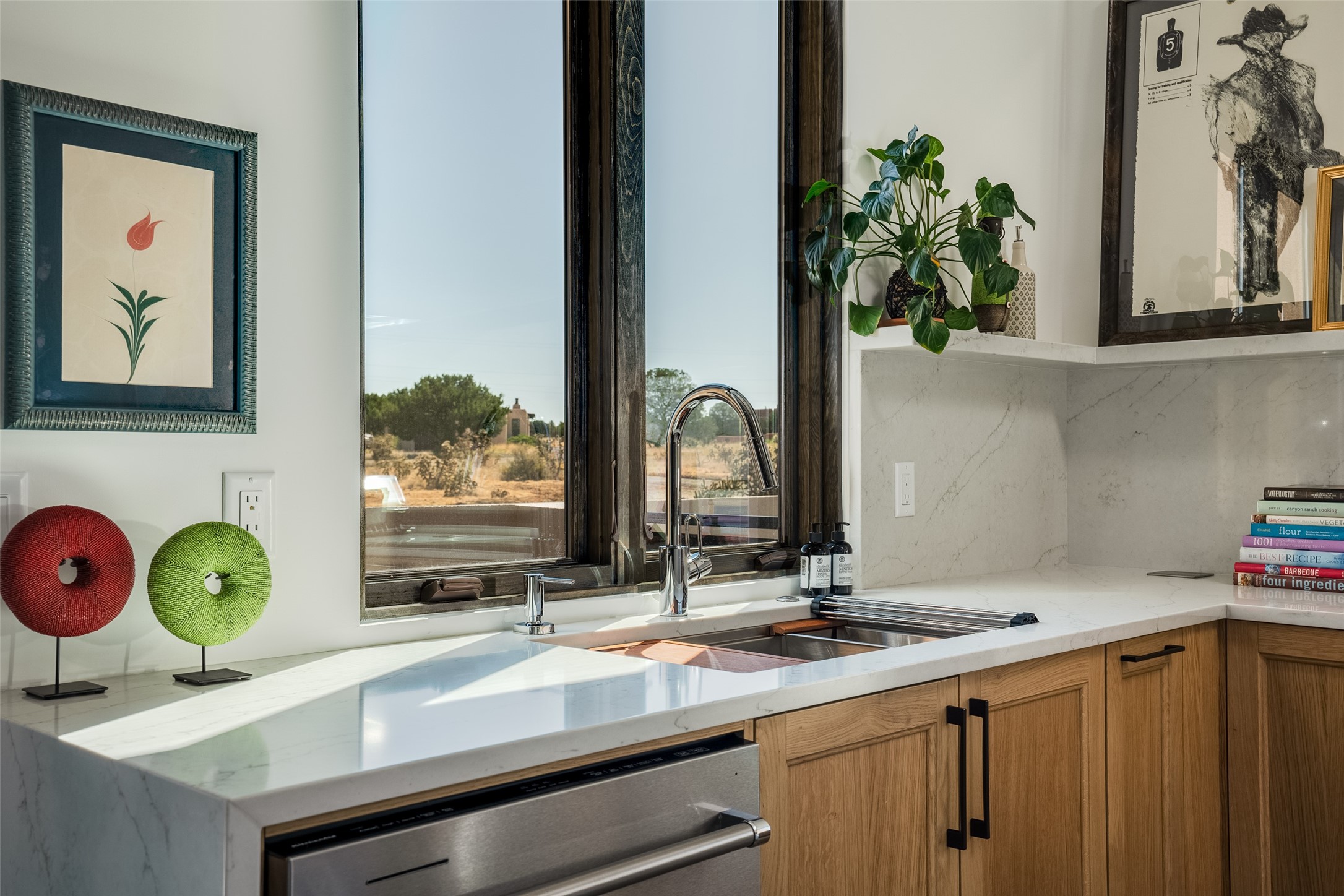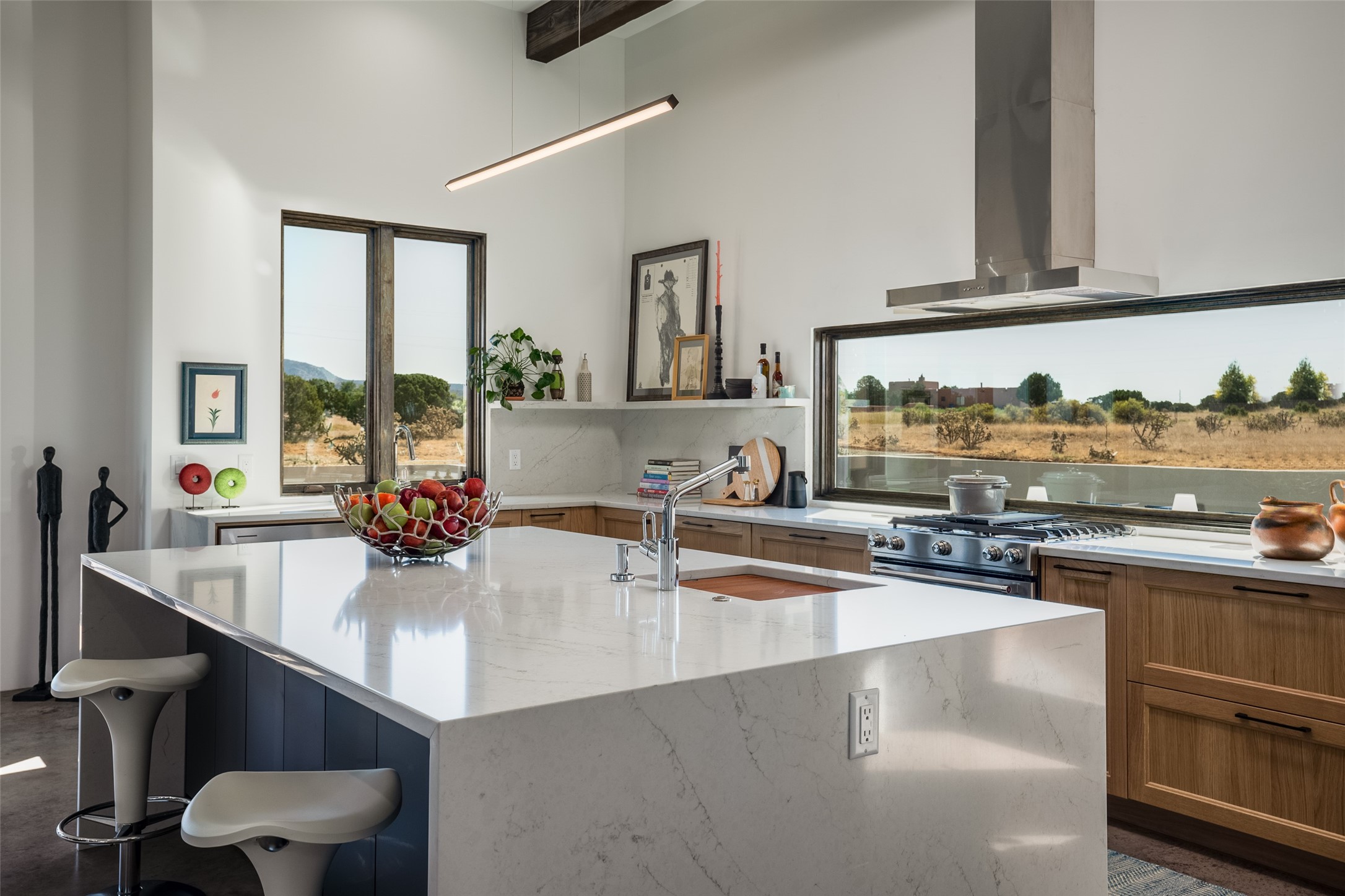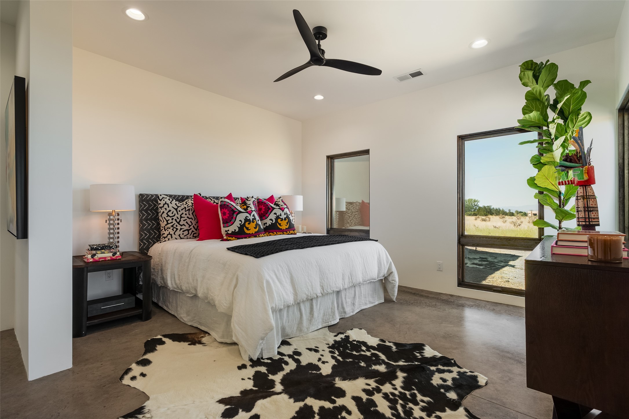 *2023 Haciendas Parade of Homes "President's Award for Excellence" WINNER* Exceptional New Construction in Eldorado! Pueblo Contemporary, recently completed (mid August 2023) by local building team, Acacia Builders. Perfectly sited to capture mountain views in every direction, this 3,050 sqft +/- residence is the ultimate example of what Acacia Builders does best: Sleek contemporary style, thoughtful details, unique concrete accents, versatile spaces, and green built amenities. Every room is bathed in natural light and polished with luxurious finishes. A bonus RV garage or studio is the "little something extra" you didn't know you were looking for. An amazing find in one of the most beautiful backdrops Santa Fe has to offer.
