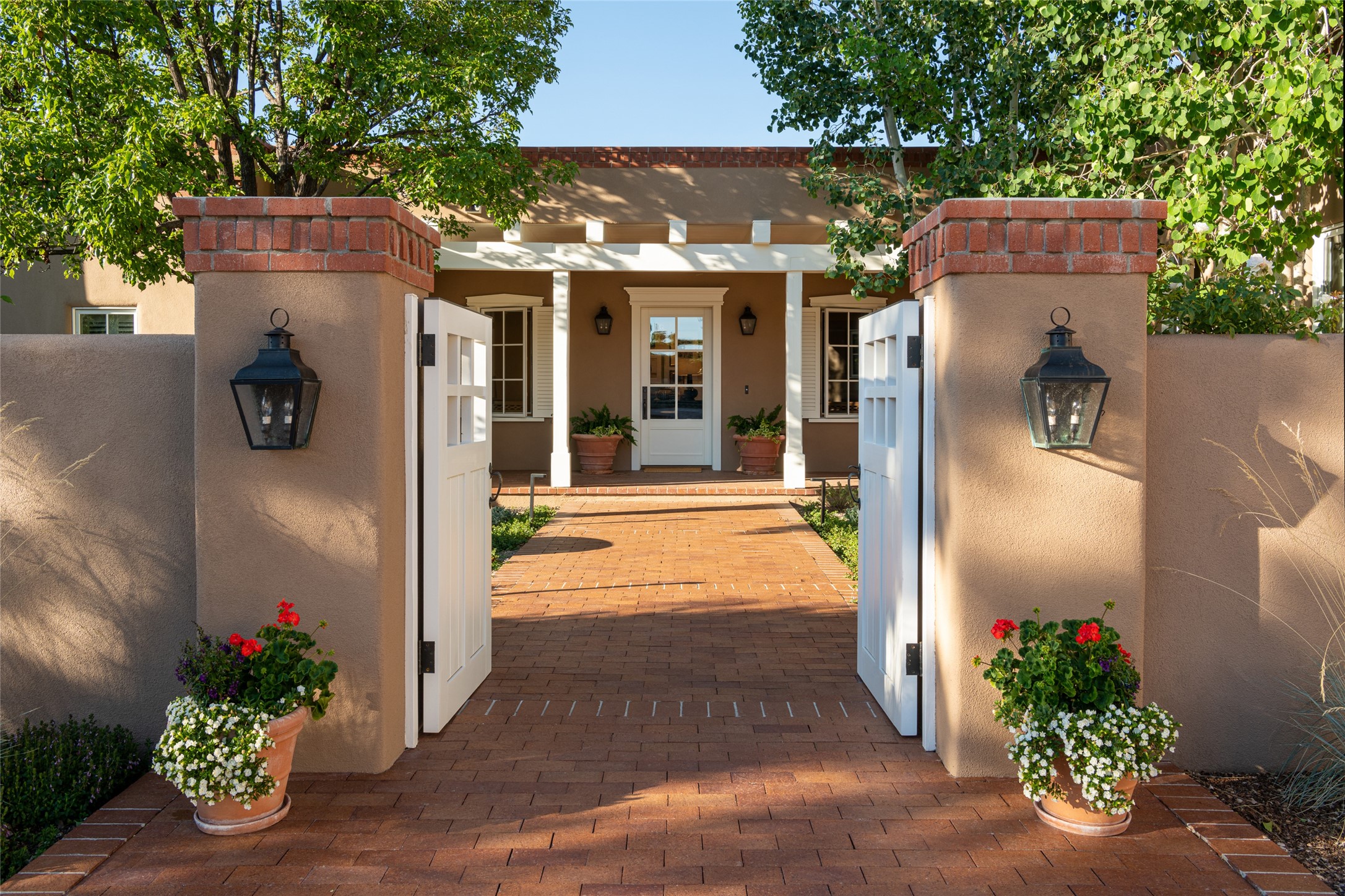Said to have been built in 1920 as a Hollywood actor's getaway, this stunning Territorial Style gated estate is arguably one of Santa Fe's finest. A remarkable property, it features a 2 bedroom main residence, a 2 bedroom guesthouse and a second guesthouse used as a gym and with a Murphy Bed. A sparkling, refreshing swimming pool is adjacent and surrounded by gorgeous landscaping. Located on the prestigious northside and only 5 minutes to downtown, the 3.13 acre lot offers complete privacy and views in all directions. The main residence was recently meticulously remodeled by the esteemed team of architect Lorn Tryk, Woods Design Builders and interior design by Violante and Rochford. All on one level, highlights include an elegant living room, a large well-equipped kitchen in the main house, a full kitchen in the guesthouse and a kitchenette in the gym. The kitchen appliances are Wolf and Subzero. Perfect for today's lifestyle, the main house has 2 offices as well as 2 outdoor portals for dining and taking in the magnificent views of the Sangre de Cristo and Jemez mountains. Finishes in the main house include diamond finish plaster walls and ceilings, walnut stained oak floors, viga ceilings, 7 fireplaces and a flowing, gracious floor plan. Outside the grounds are landscaped and include Japanese and Cactus Gardens and native plants, fruit trees, perennial flower gardens and meandering nature trails. Rarely does one encounter such an impeccably designed and maintained property as this northside gem.
