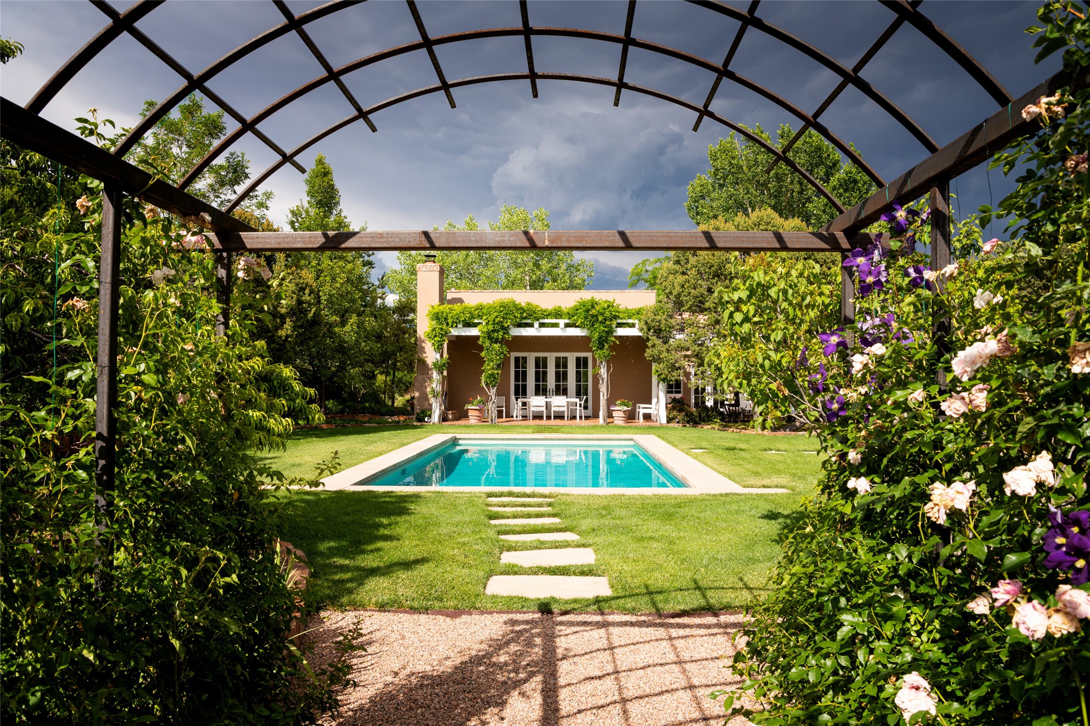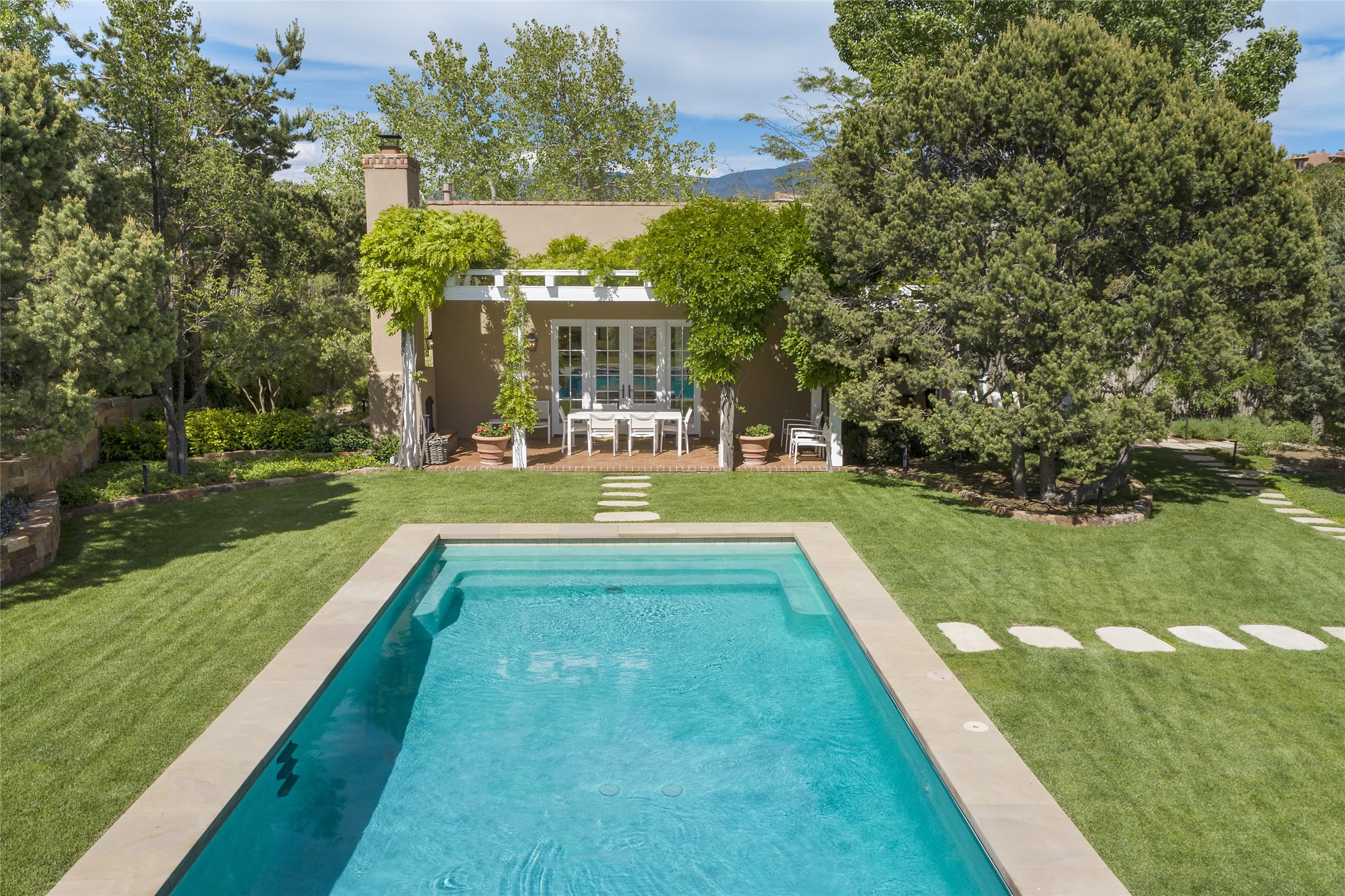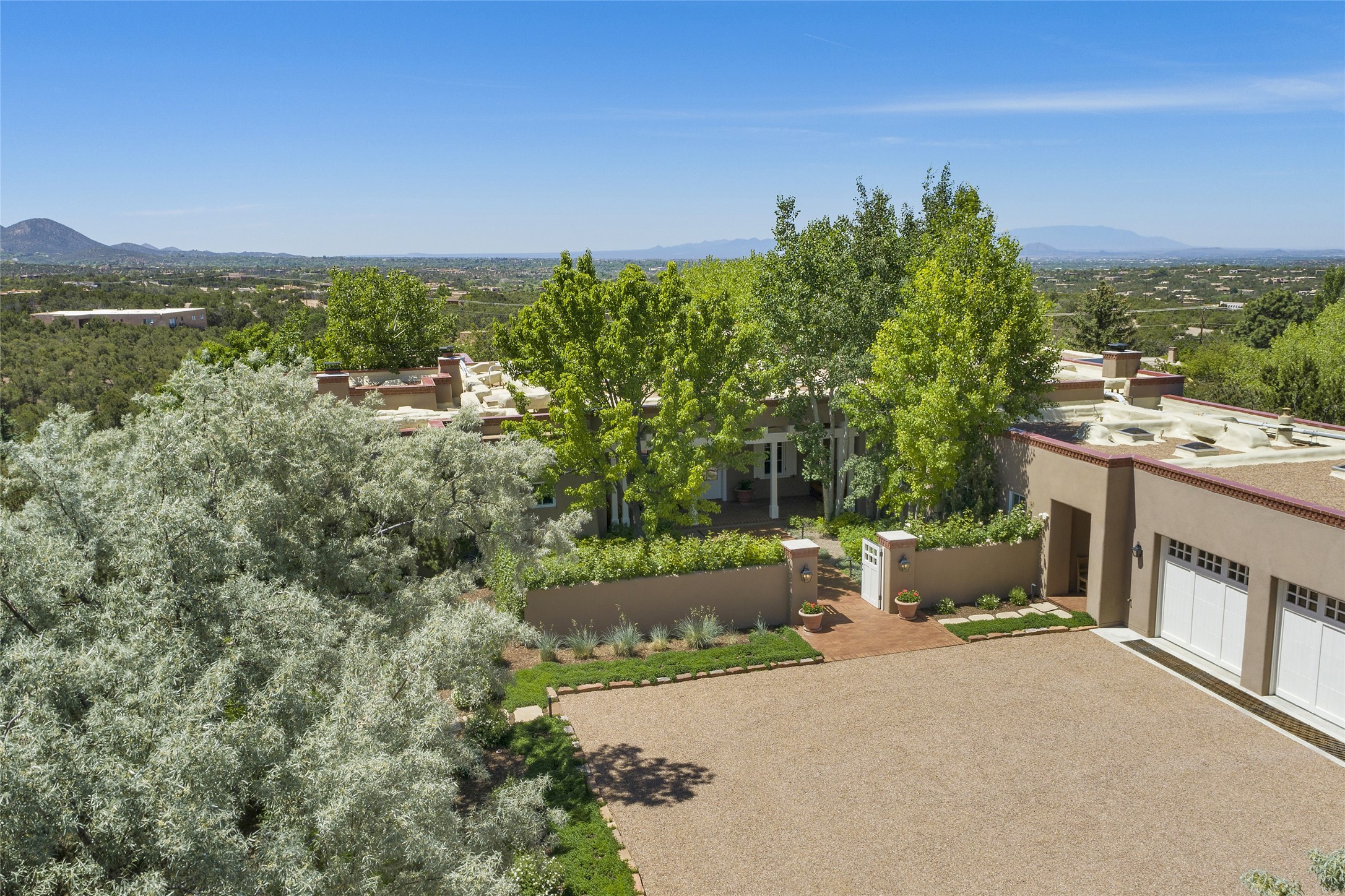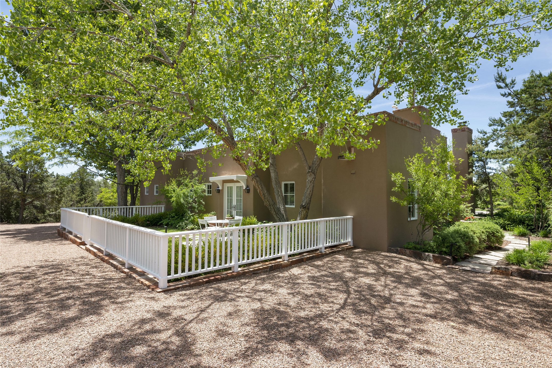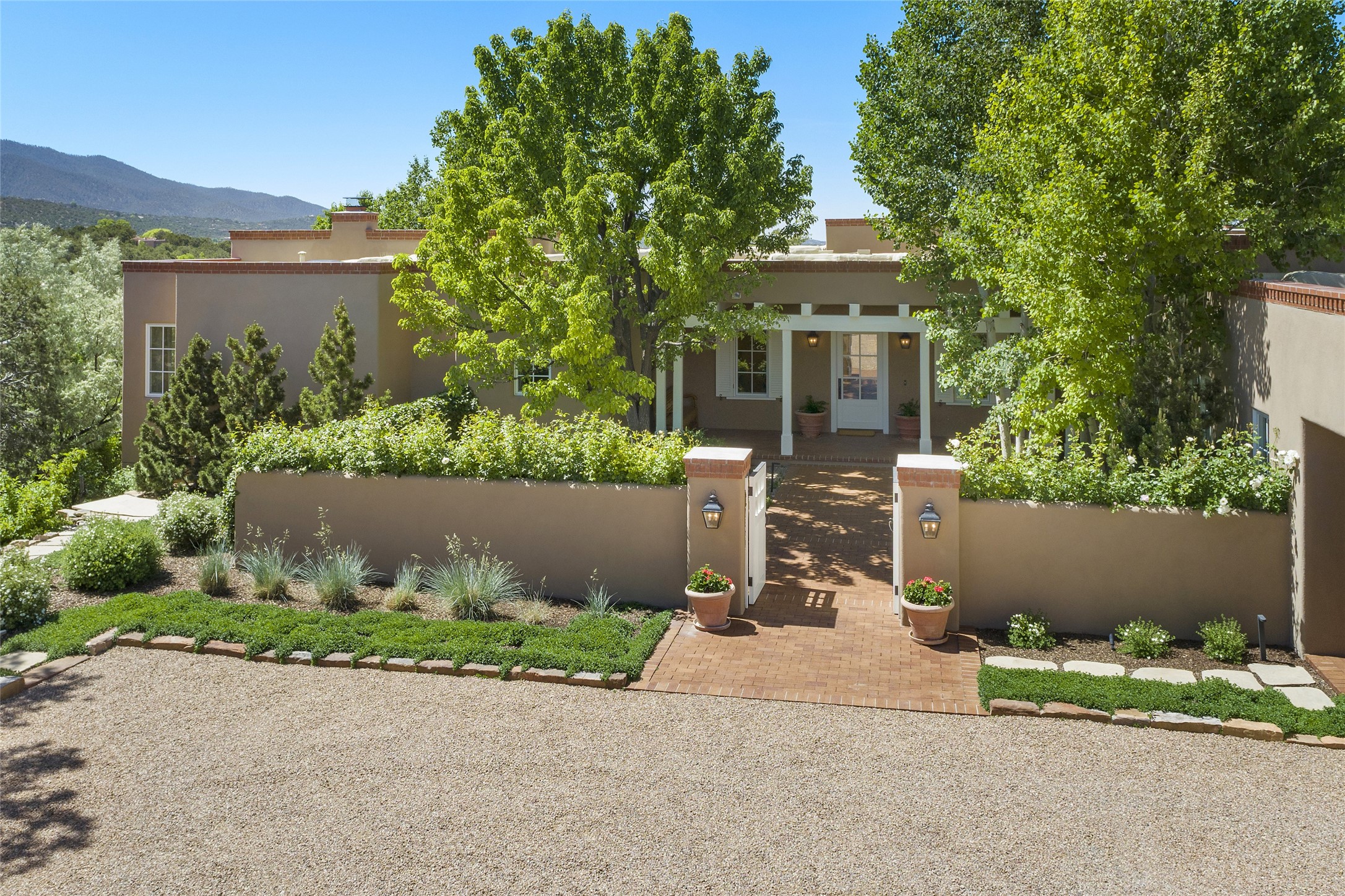 Said to have been built in 1920 as a Hollywood actor's getaway, this stunning Territorial Style gated estate is arguably one of Santa Fe's finest. A remarkable property, it features a 2 bedroom main residence, a 2 bedroom guesthouse and a second guesthouse used as a gym and with a Murphy Bed. A sparkling, refreshing swimming pool is adjacent and surrounded by gorgeous landscaping. Located on the prestigious northside and only 5 minutes to downtown, the 3.13 acre lot offers complete privacy and views in all directions. The main residence was recently meticulously remodeled by the esteemed team of architect Lorn Tryk, Woods Design Builders and interior design by Violante and Rochford. All on one level, highlights include an elegant living room, a large well-equipped kitchen in the main house, a full kitchen in the guesthouse and a kitchenette in the gym. The kitchen appliances are Wolf and Subzero. Perfect for today's lifestyle, the main house has 2 offices as well as 2 outdoor portals for dining and taking in the magnificent views of the Sangre de Cristo and Jemez mountains. Finishes in the main house include diamond finish plaster walls and ceilings, walnut stained oak floors, viga ceilings, 7 fireplaces and a flowing, gracious floor plan. Outside the grounds are landscaped and include Japanese and Cactus Gardens and native plants, fruit trees, perennial flower gardens and meandering nature trails. Rarely does one encounter such an impeccably designed and maintained property as this northside gem.