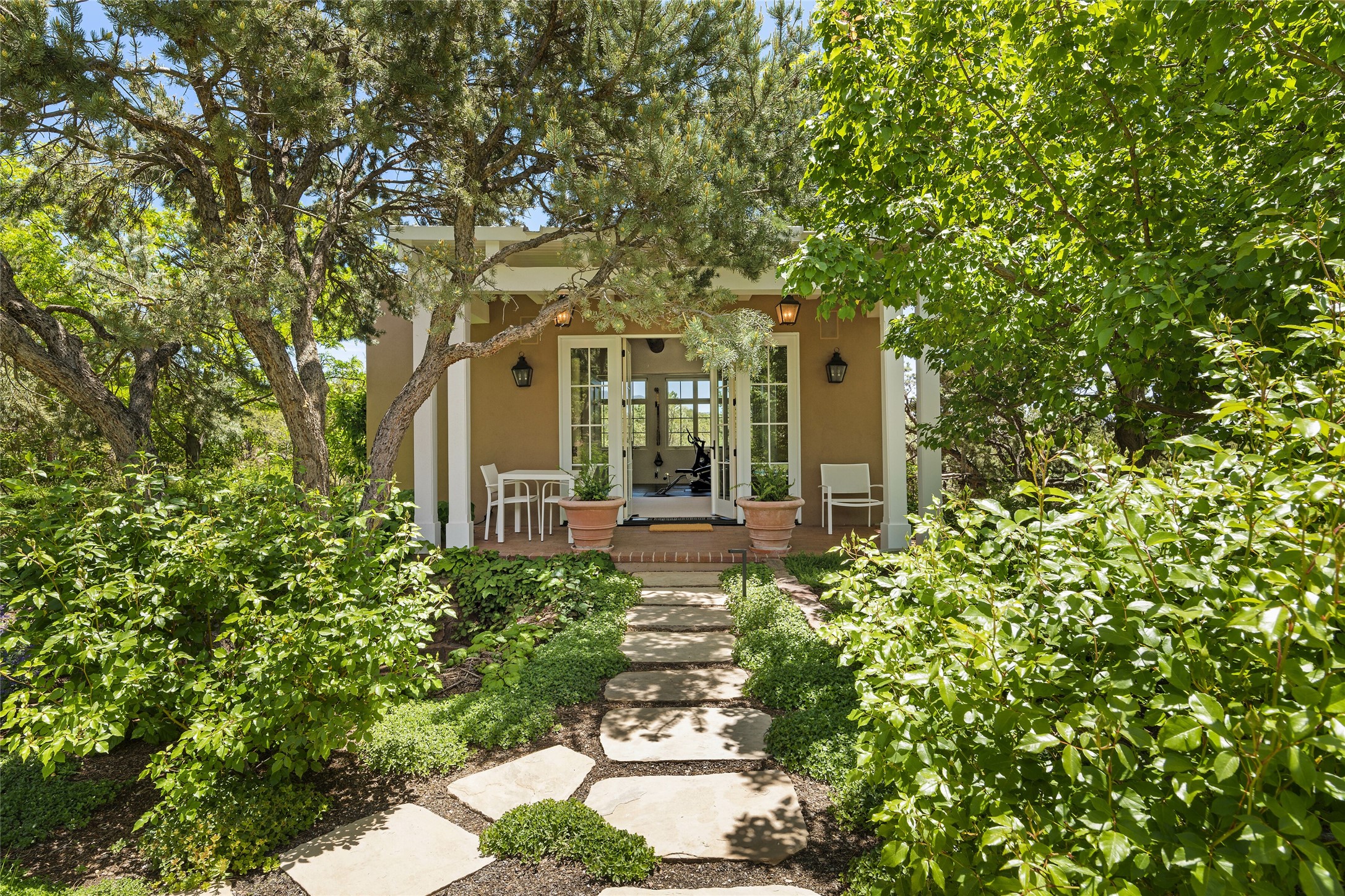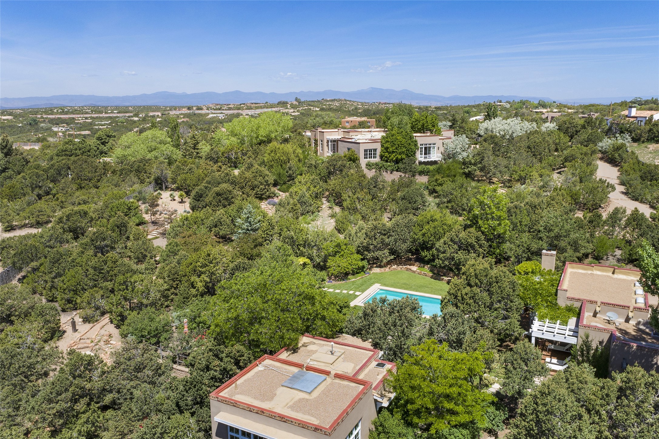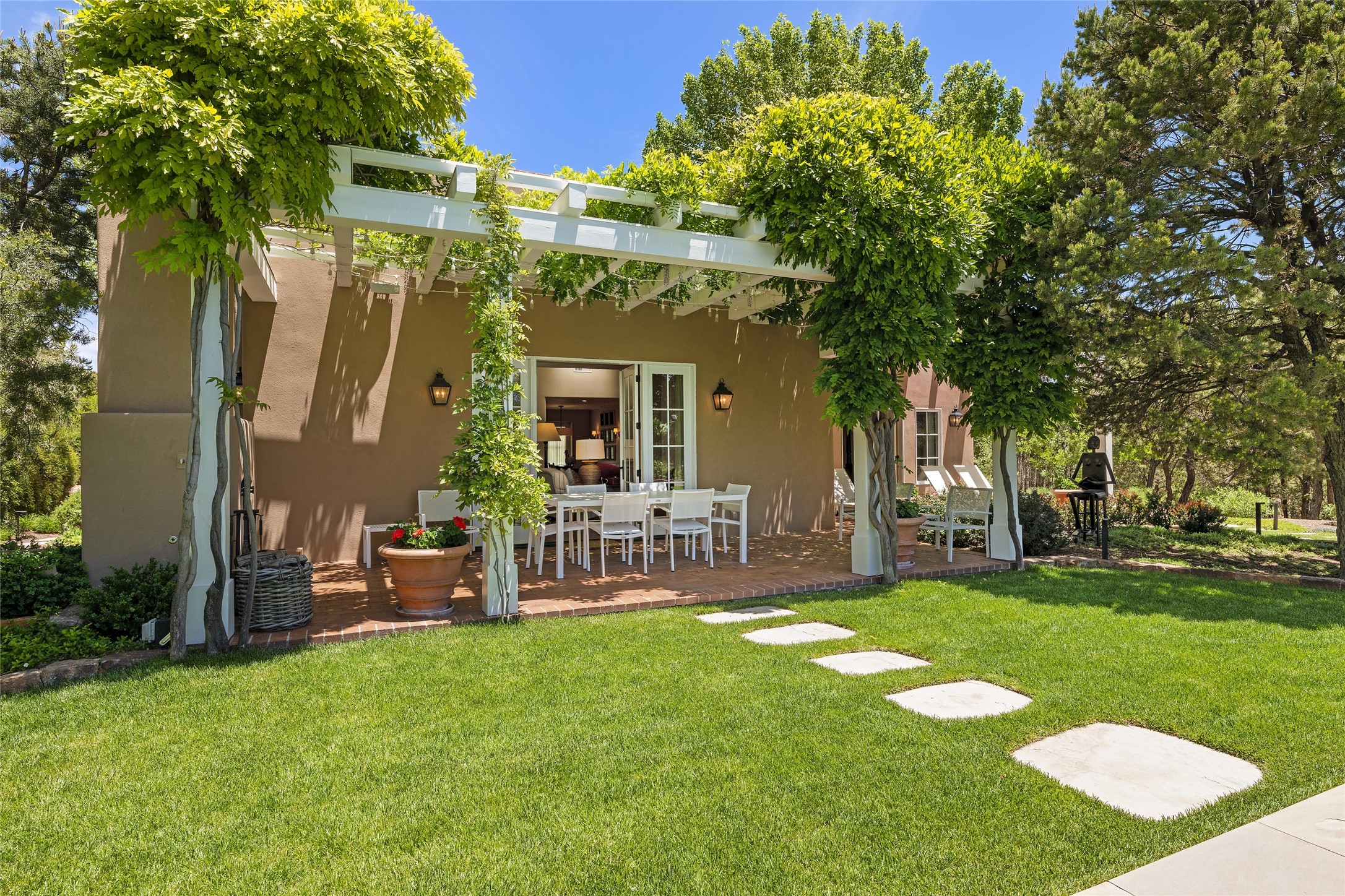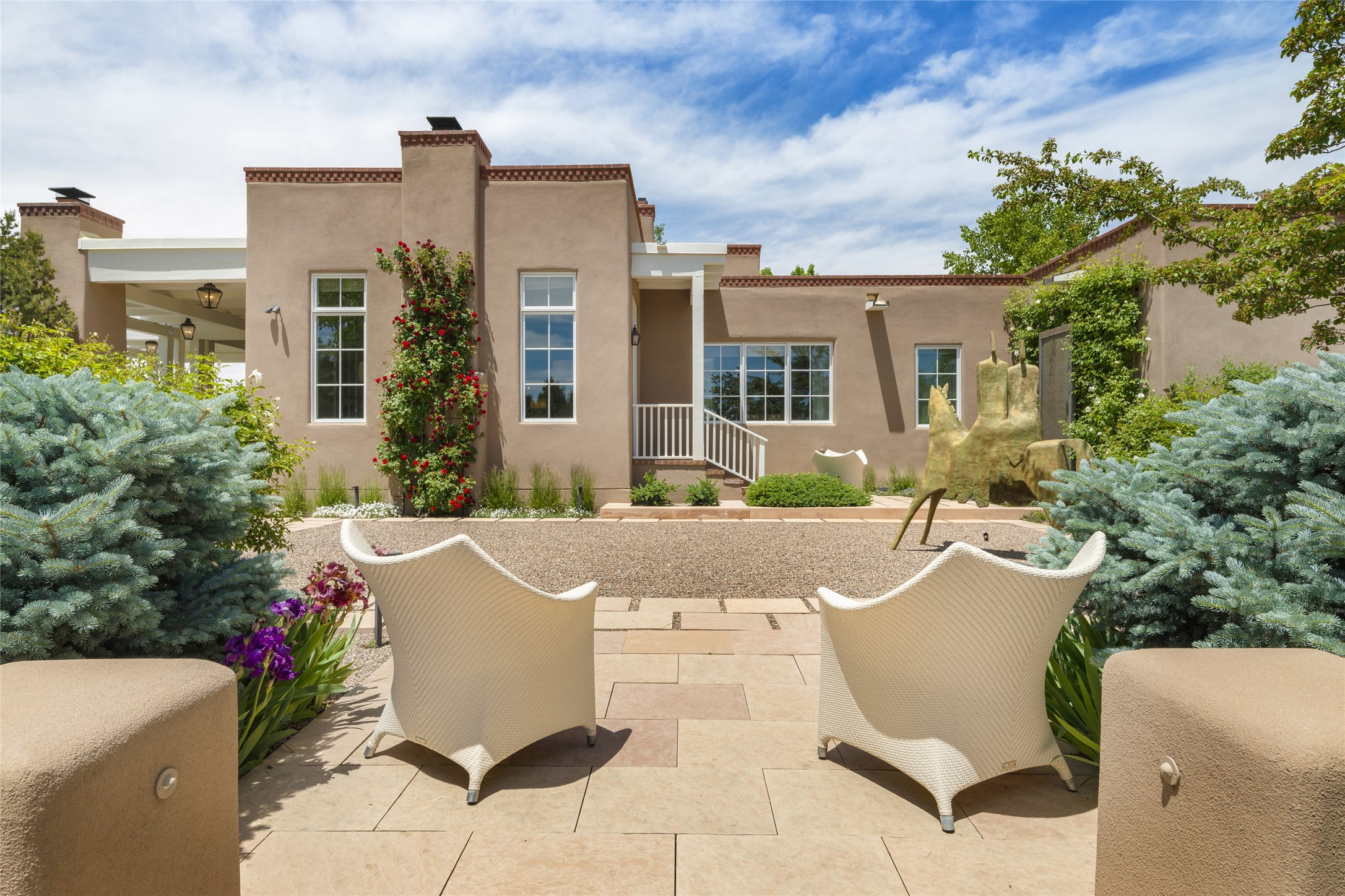 Said to have been built in 1920 as a Hollywood actor's getaway, this stunning Territorial Style gated estate is arguably one of Santa Fe's finest. A remarkable property, it features a 2 bedroom main residence, a 2 bedroom guesthouse and a second guesthouse used as a gym and with a Murphy Bed. A sparkling, refreshing swimming pool is adjacent and surrounded by gorgeous landscaping. Located on the prestigious northside and only 5 minutes to downtown, the 3.13 acre lot offers complete privacy and views in all directions. The main residence was recently meticulously remodeled by the esteemed team of architect Lorn Tryk, Woods Design Builders and interior design by Violante and Rochford. All on one level, highlights include an elegant living room, a large well-equipped kitchen in the main house, a full kitchen in the guesthouse and a kitchenette in the gym. The kitchen appliances are Wolf and Subzero. Perfect for today's lifestyle, the main house has 2 offices as well as 2 outdoor portals for dining and taking in the magnificent views of the Sangre de Cristo and Jemez mountains. Finishes in the main house include diamond finish plaster walls and ceilings, walnut stained oak floors, viga ceilings, 7 fireplaces and a flowing, gracious floor plan. Outside the grounds are landscaped and include Japanese and Cactus Gardens and native plants, fruit trees, perennial flower gardens and meandering nature trails. Rarely does one encounter such an impeccably designed and maintained property as this northside gem.