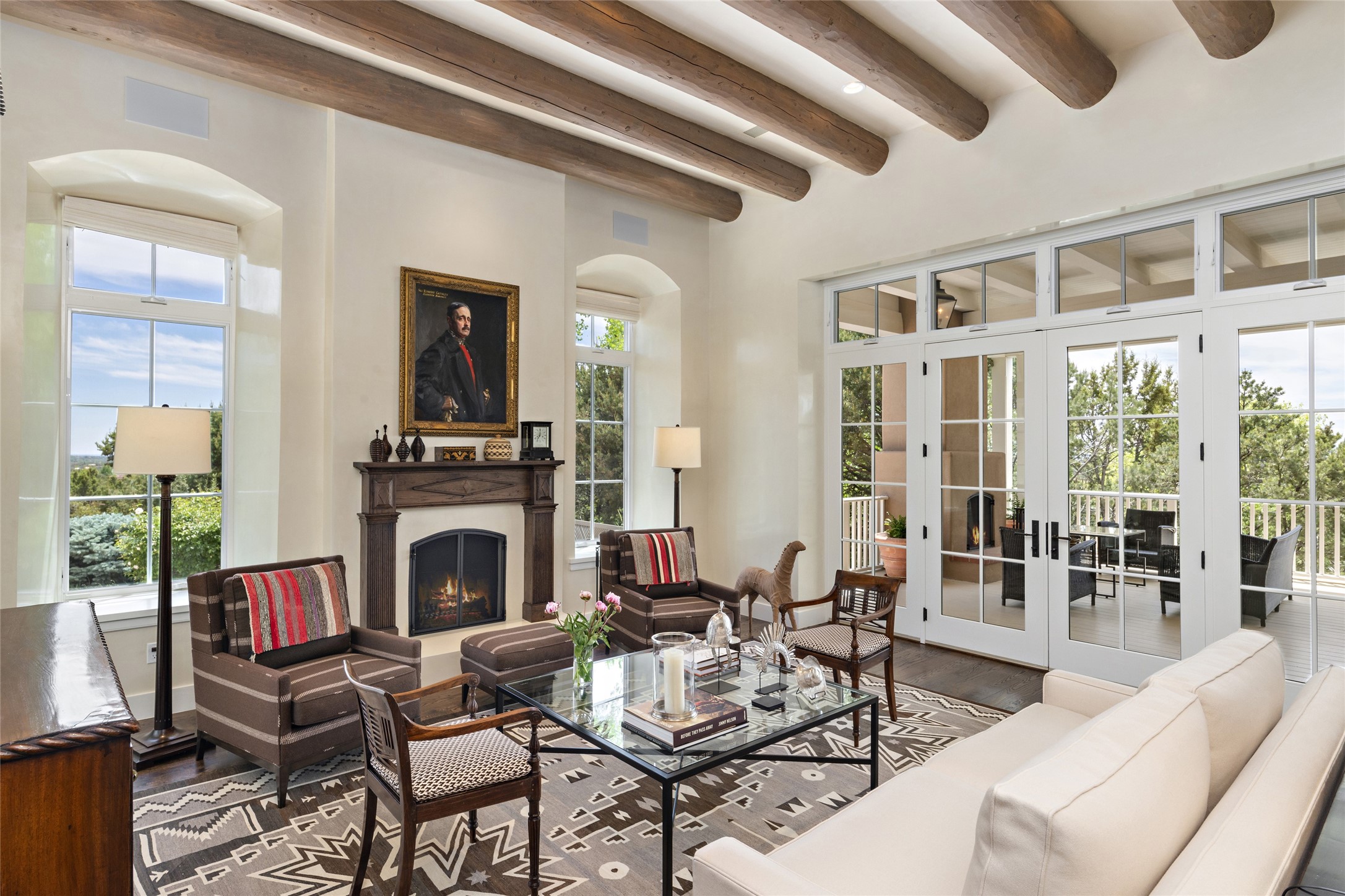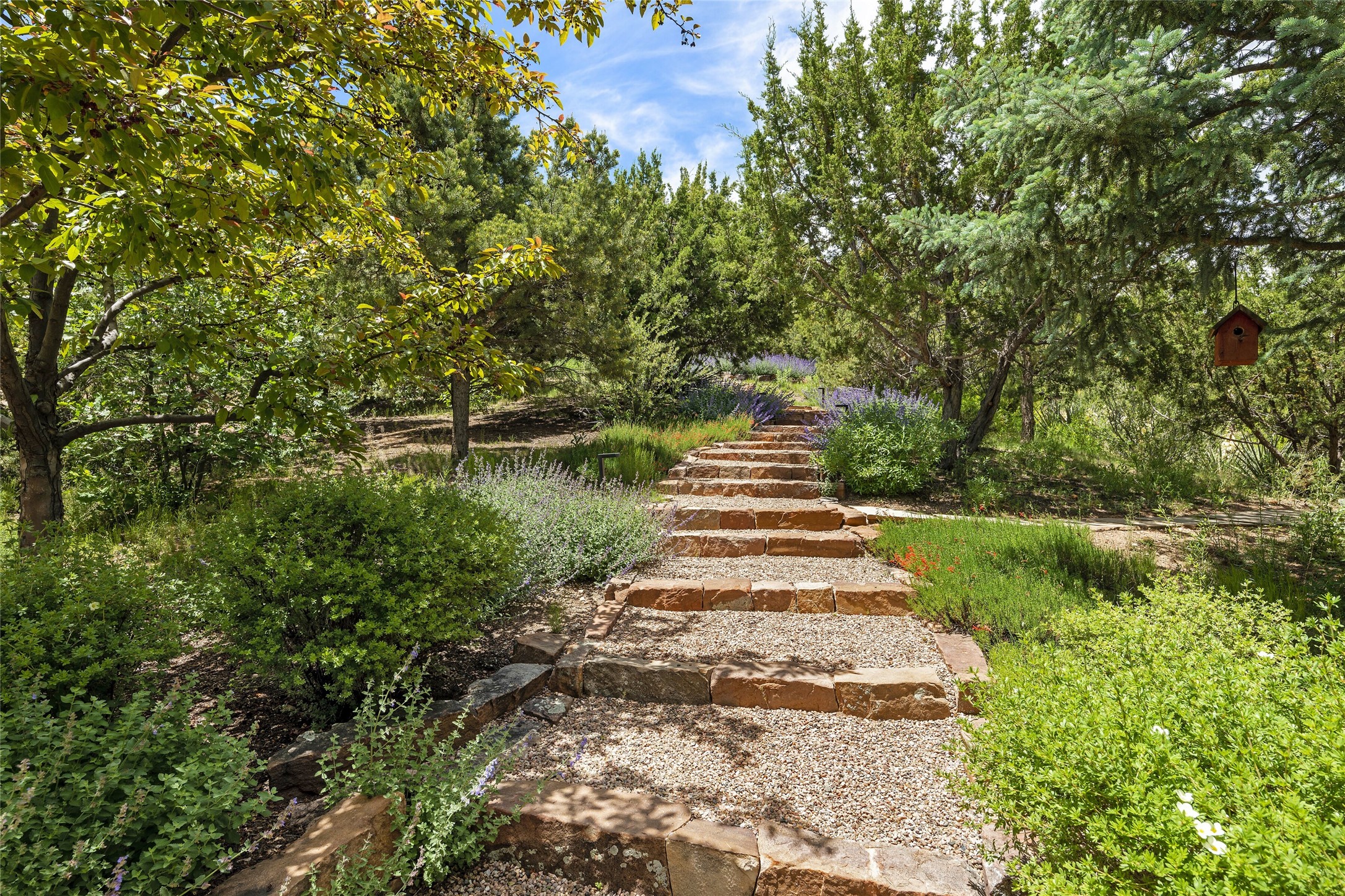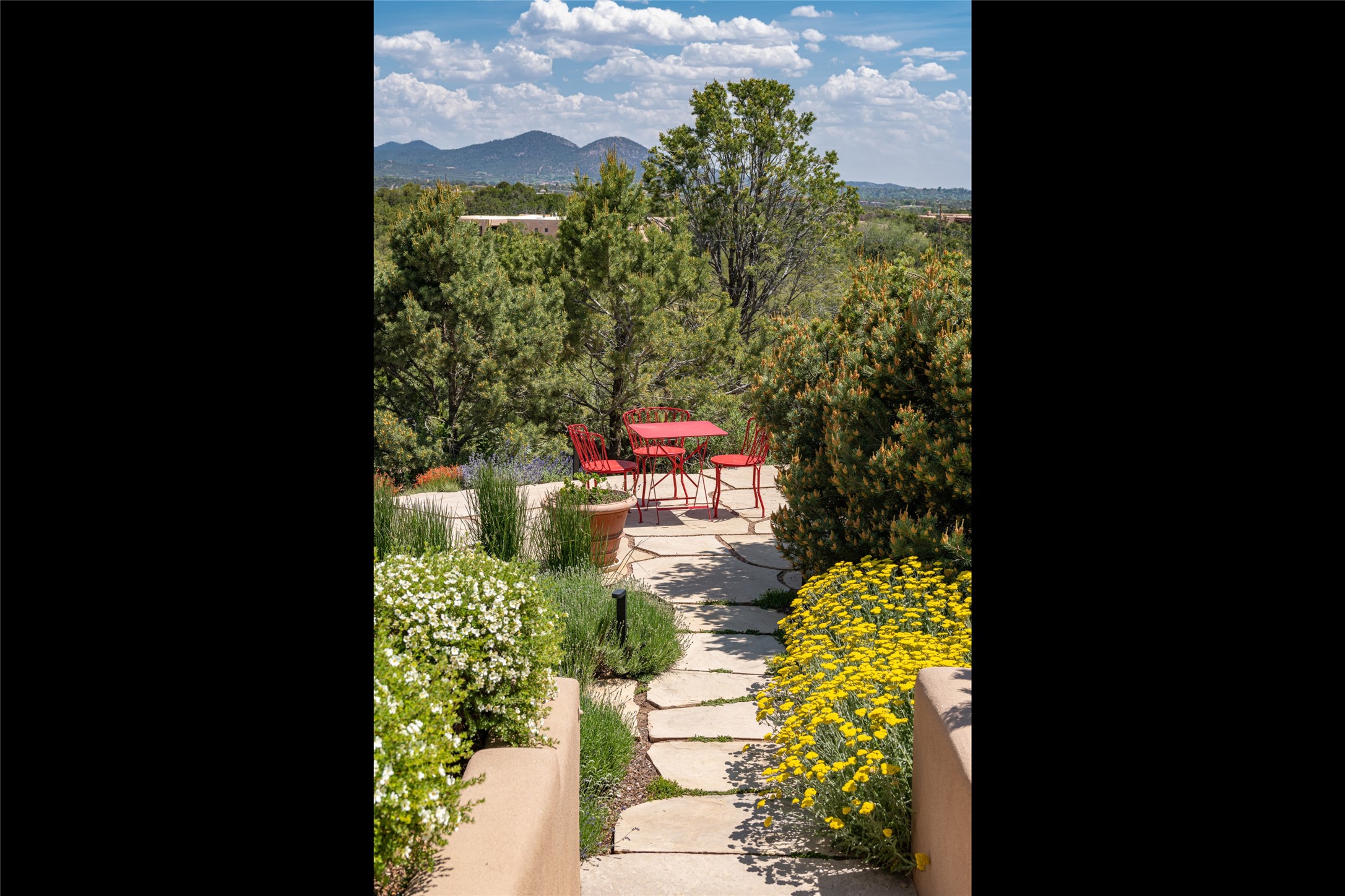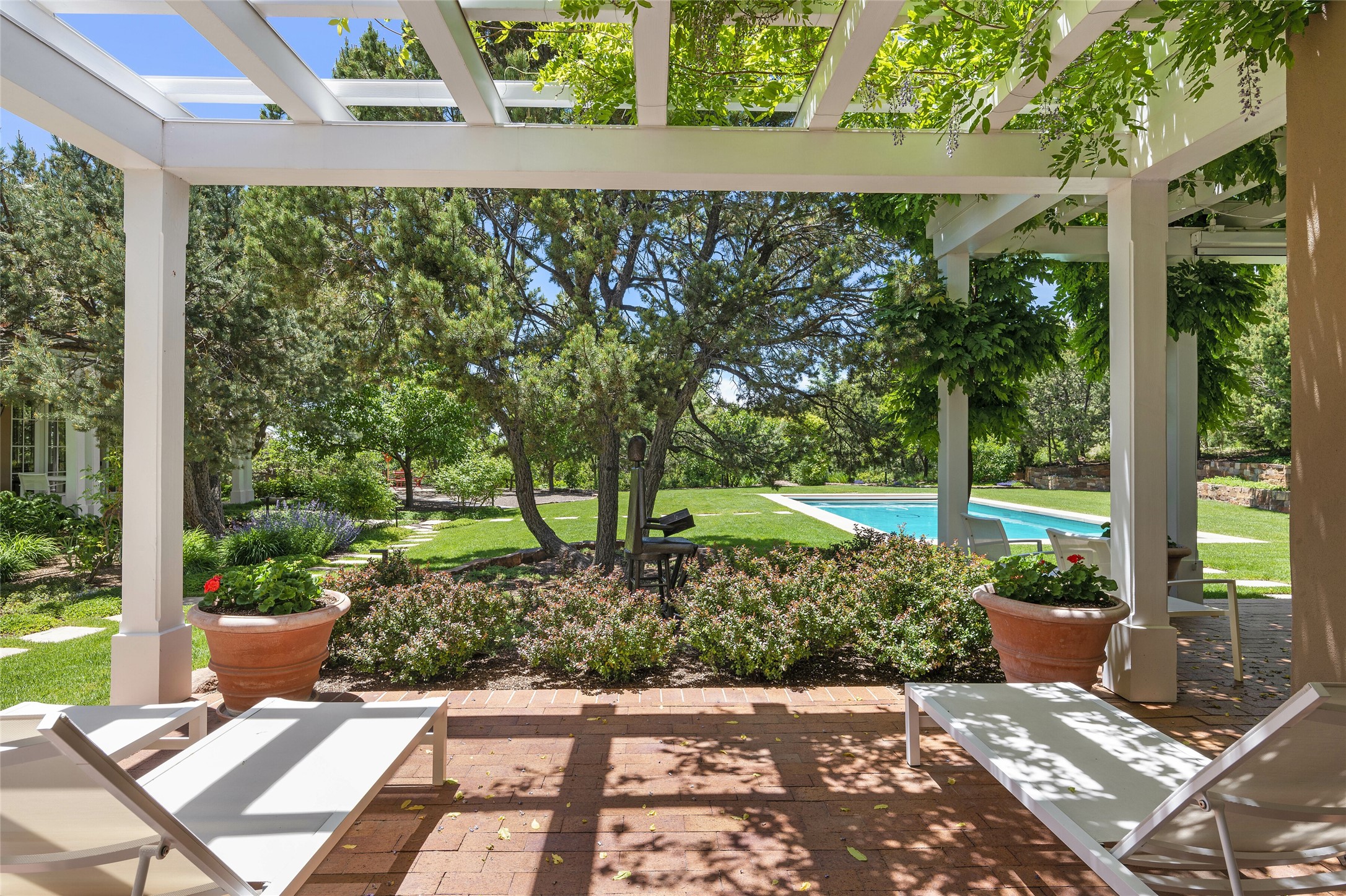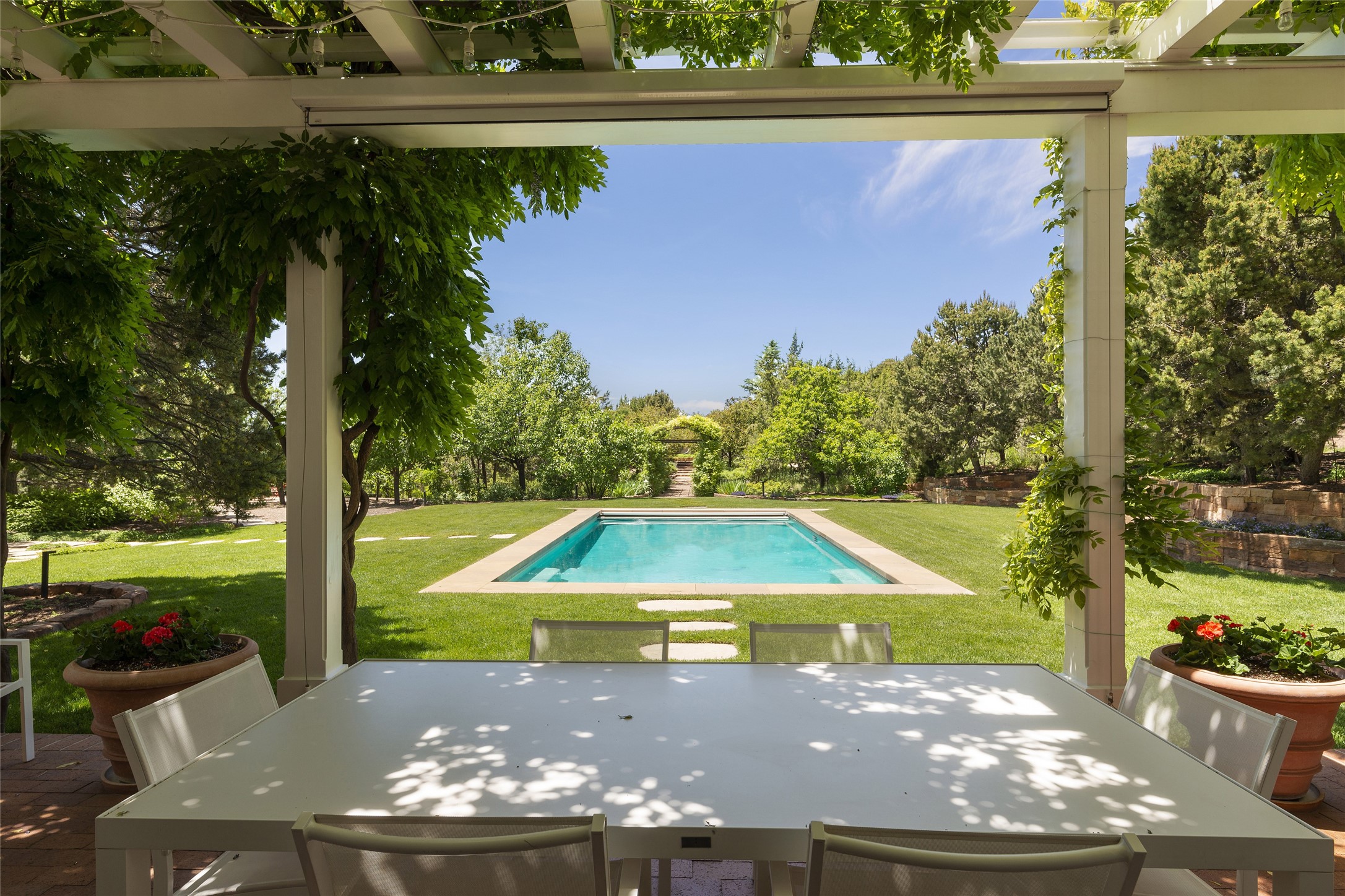 Said to have been built in 1920 as a Hollywood actor's getaway, this stunning Territorial Style gated estate is arguably one of Santa Fe's finest. A remarkable property, it features a 2 bedroom main residence, a 2 bedroom guesthouse and a second guesthouse used as a gym and with a Murphy Bed. A sparkling, refreshing swimming pool is adjacent and surrounded by gorgeous landscaping. Located on the prestigious northside and only 5 minutes to downtown, the 3.13 acre lot offers complete privacy and views in all directions. The main residence was recently meticulously remodeled by the esteemed team of architect Lorn Tryk, Woods Design Builders and interior design by Violante and Rochford. All on one level, highlights include an elegant living room, a large well-equipped kitchen in the main house, a full kitchen in the guesthouse and a kitchenette in the gym. The kitchen appliances are Wolf and Subzero. Perfect for today's lifestyle, the main house has 2 offices as well as 2 outdoor portals for dining and taking in the magnificent views of the Sangre de Cristo and Jemez mountains. Finishes in the main house include diamond finish plaster walls and ceilings, walnut stained oak floors, viga ceilings, 7 fireplaces and a flowing, gracious floor plan. Outside the grounds are landscaped and include Japanese and Cactus Gardens and native plants, fruit trees, perennial flower gardens and meandering nature trails. Rarely does one encounter such an impeccably designed and maintained property as this northside gem.