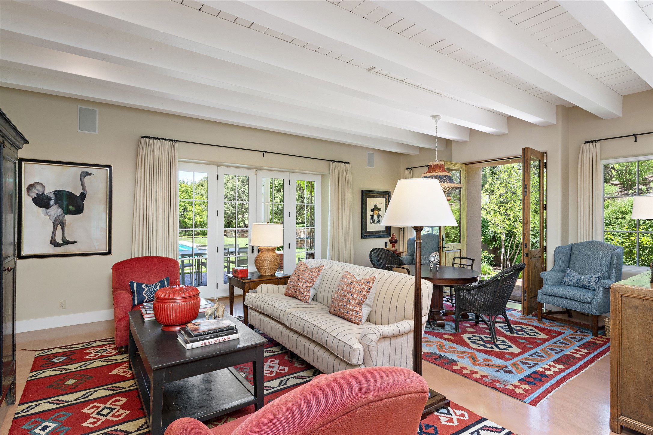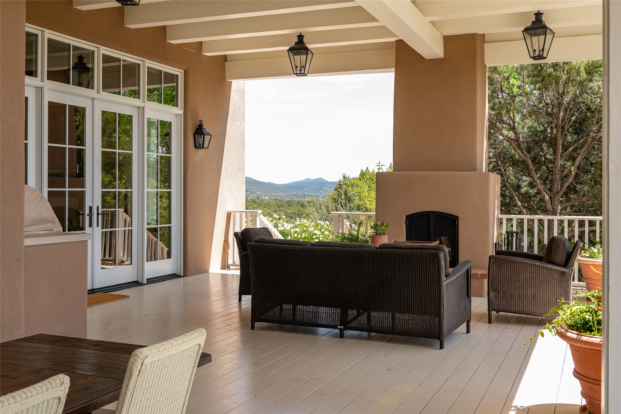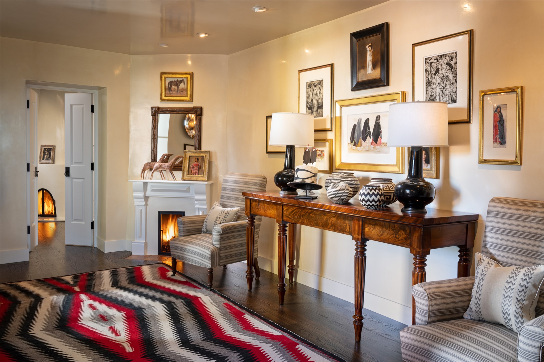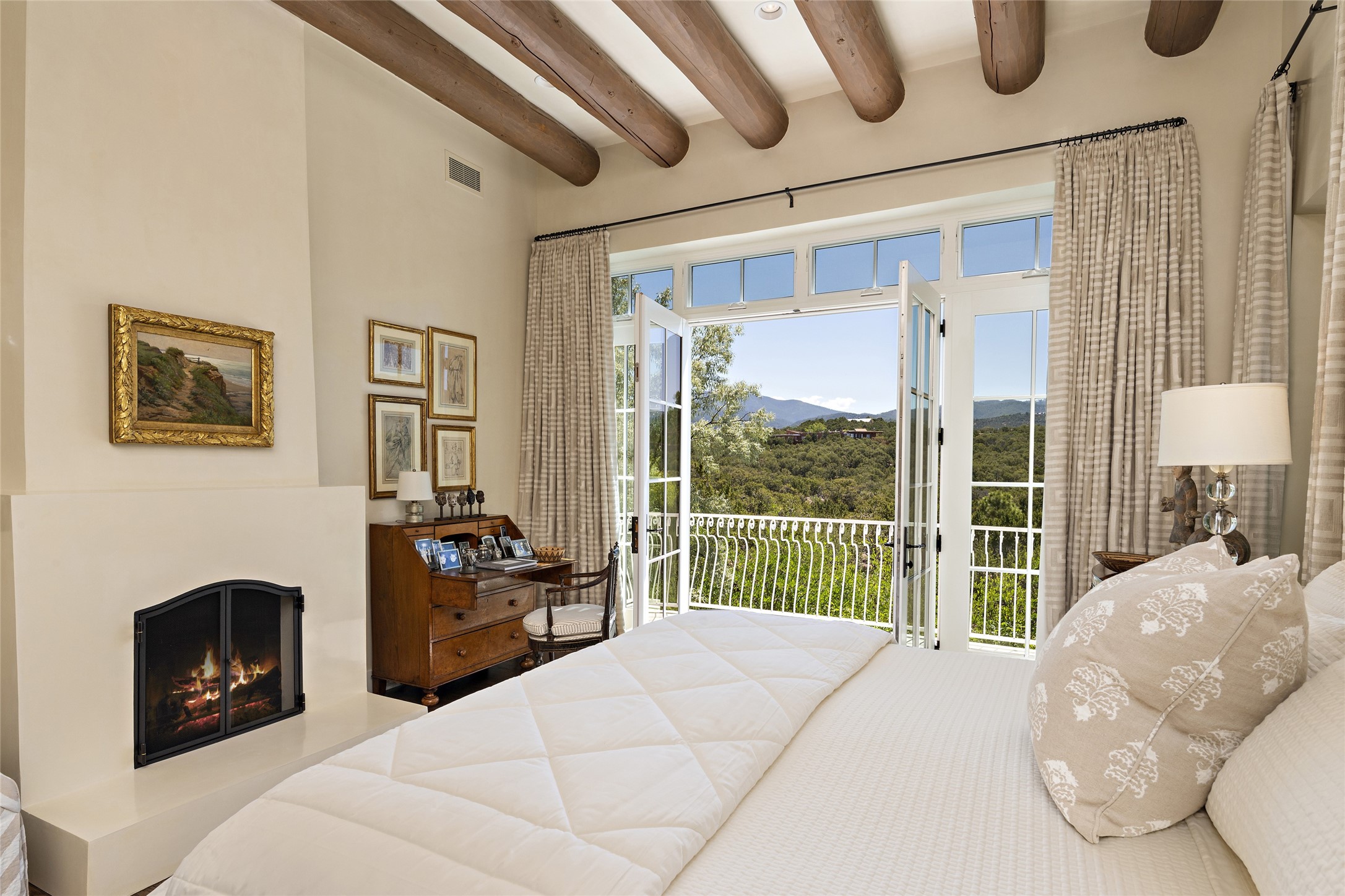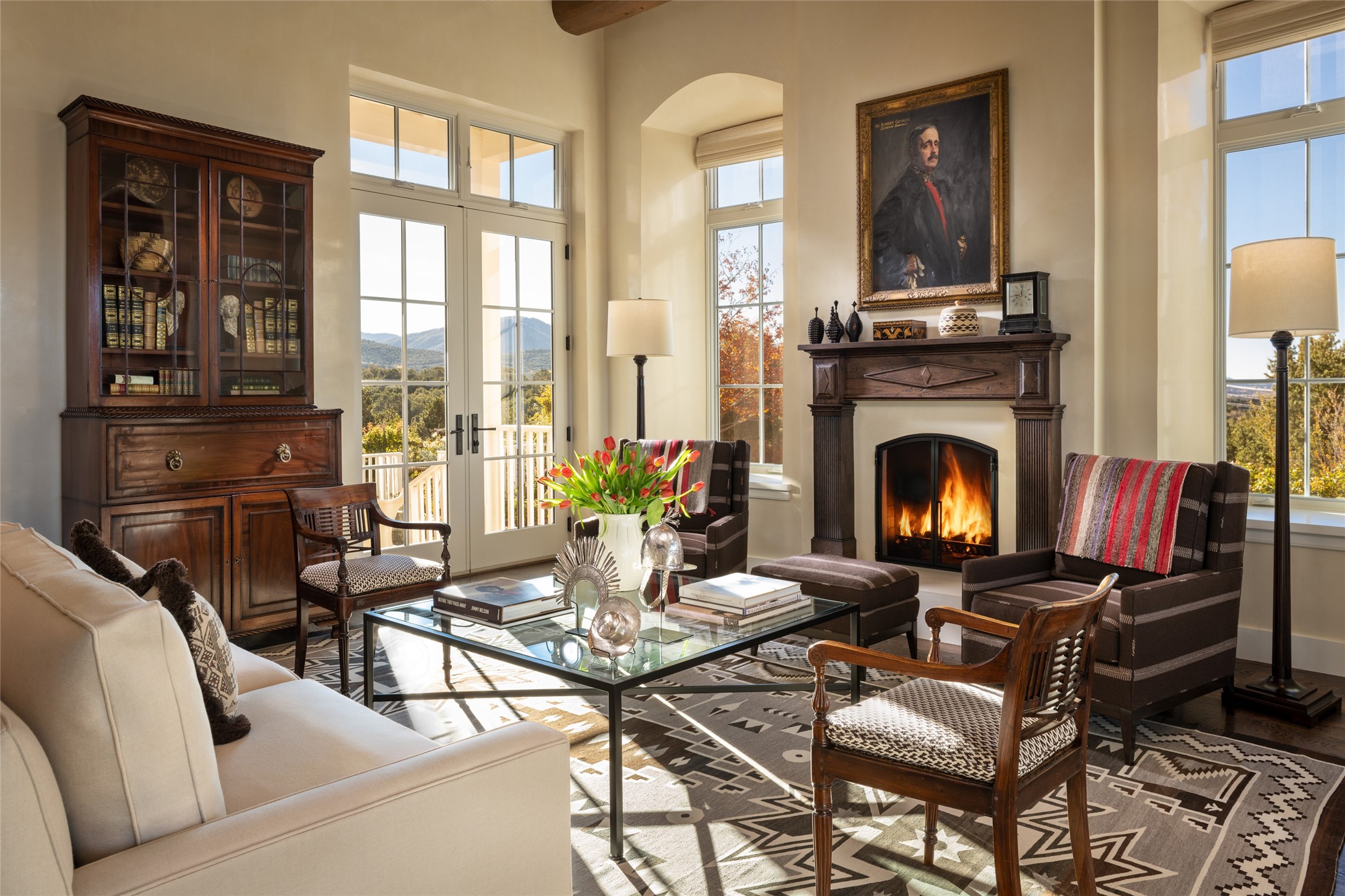 Said to have been built in 1920 as a Hollywood actor's getaway, this stunning Territorial Style gated estate is arguably one of Santa Fe's finest. A remarkable property, it features a 2 bedroom main residence, a 2 bedroom guesthouse and a second guesthouse used as a gym and with a Murphy Bed. A sparkling, refreshing swimming pool is adjacent and surrounded by gorgeous landscaping. Located on the prestigious northside and only 5 minutes to downtown, the 3.13 acre lot offers complete privacy and views in all directions. The main residence was recently meticulously remodeled by the esteemed team of architect Lorn Tryk, Woods Design Builders and interior design by Violante and Rochford. All on one level, highlights include an elegant living room, a large well-equipped kitchen in the main house, a full kitchen in the guesthouse and a kitchenette in the gym. The kitchen appliances are Wolf and Subzero. Perfect for today's lifestyle, the main house has 2 offices as well as 2 outdoor portals for dining and taking in the magnificent views of the Sangre de Cristo and Jemez mountains. Finishes in the main house include diamond finish plaster walls and ceilings, walnut stained oak floors, viga ceilings, 7 fireplaces and a flowing, gracious floor plan. Outside the grounds are landscaped and include Japanese and Cactus Gardens and native plants, fruit trees, perennial flower gardens and meandering nature trails. Rarely does one encounter such an impeccably designed and maintained property as this northside gem.