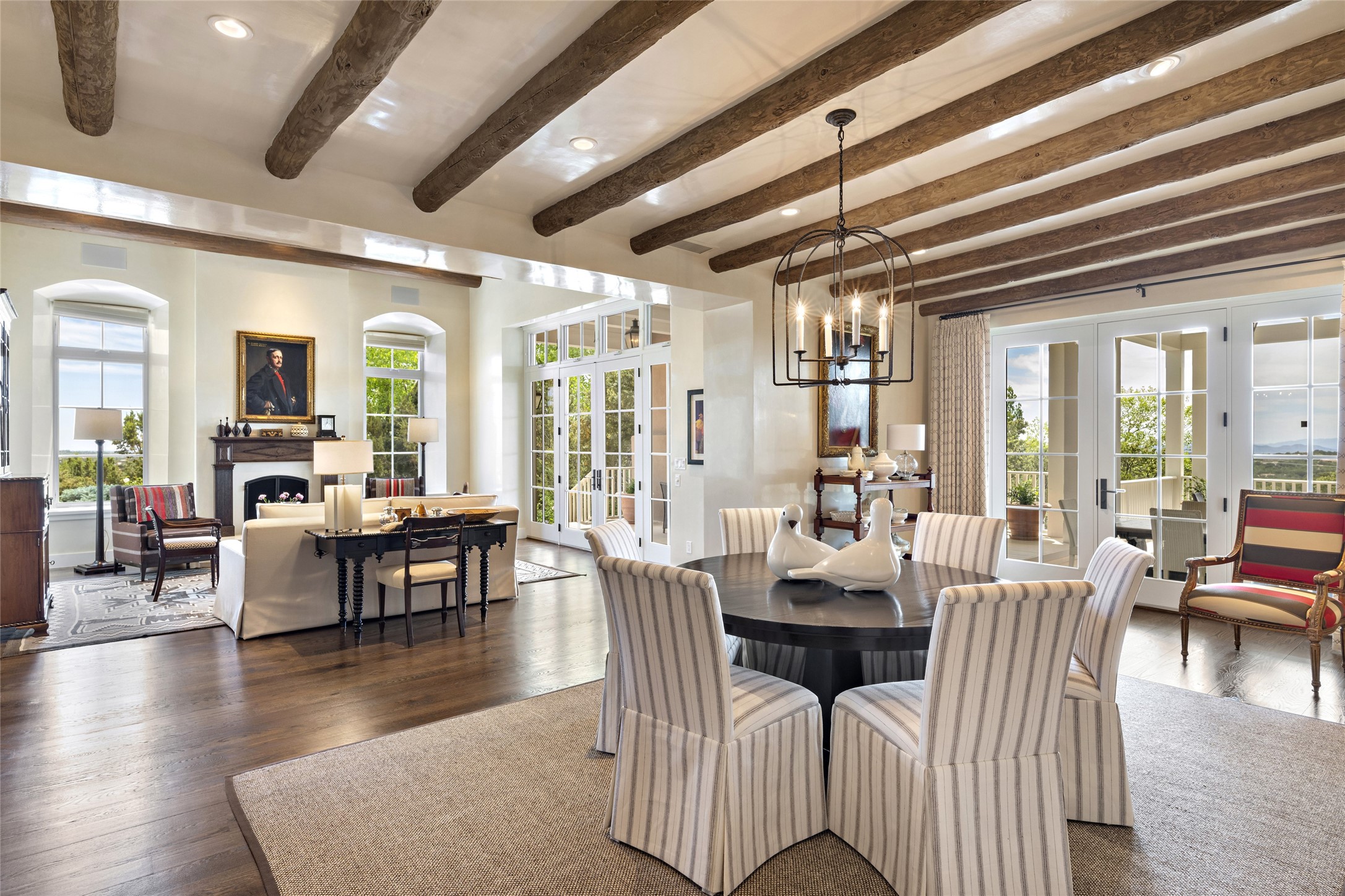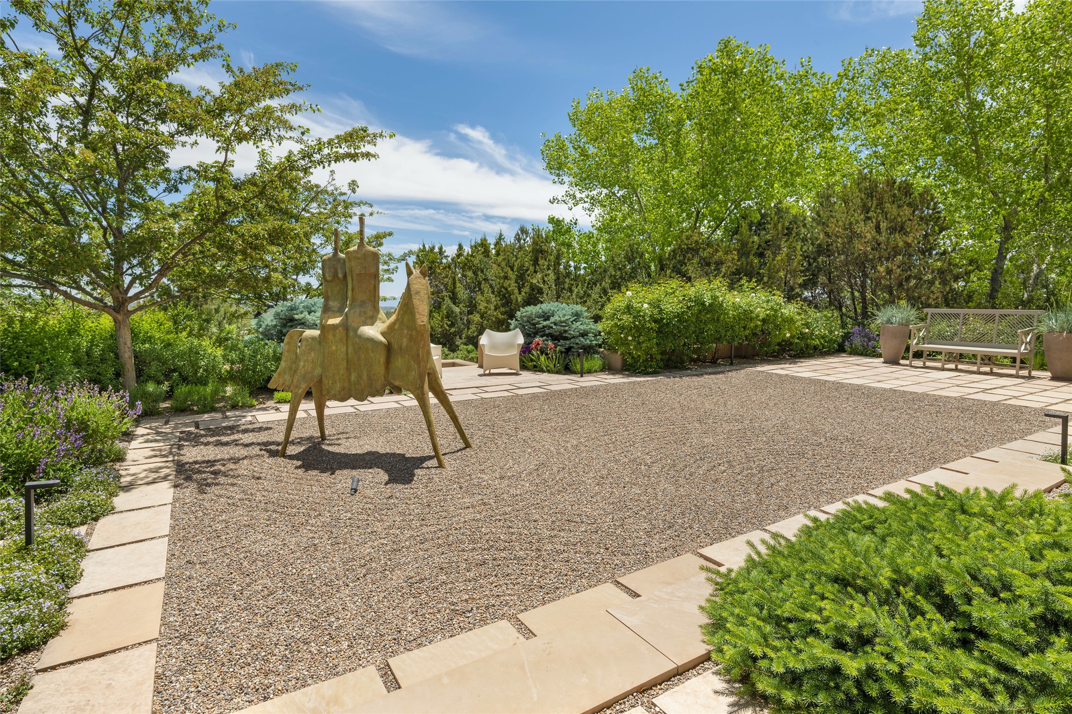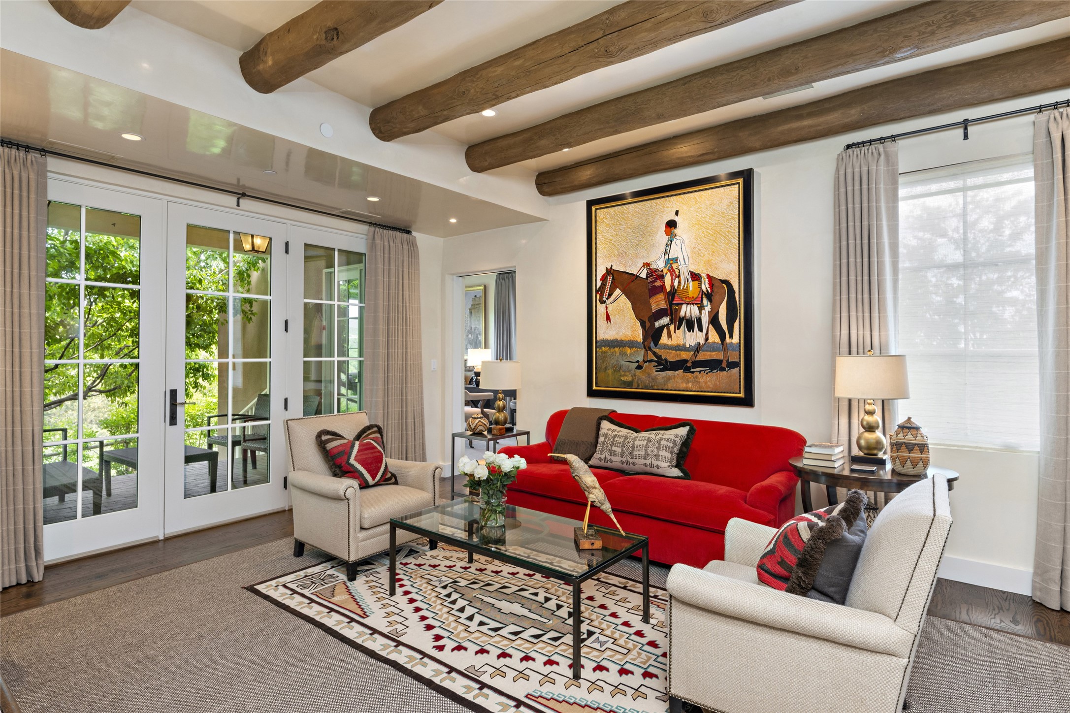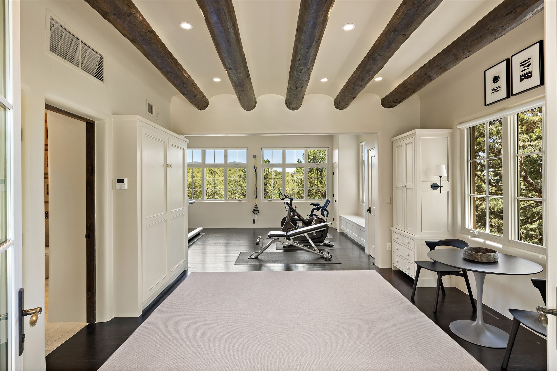 Said to have been built in 1920 as a Hollywood actor's getaway, this stunning Territorial Style gated estate is arguably one of Santa Fe's finest. A remarkable property, it features a 2 bedroom main residence, a 2 bedroom guesthouse and a second guesthouse used as a gym and with a Murphy Bed. A sparkling, refreshing swimming pool is adjacent and surrounded by gorgeous landscaping. Located on the prestigious northside and only 5 minutes to downtown, the 3.13 acre lot offers complete privacy and views in all directions. The main residence was recently meticulously remodeled by the esteemed team of architect Lorn Tryk, Woods Design Builders and interior design by Violante and Rochford. All on one level, highlights include an elegant living room, a large well-equipped kitchen in the main house, a full kitchen in the guesthouse and a kitchenette in the gym. The kitchen appliances are Wolf and Subzero. Perfect for today's lifestyle, the main house has 2 offices as well as 2 outdoor portals for dining and taking in the magnificent views of the Sangre de Cristo and Jemez mountains. Finishes in the main house include diamond finish plaster walls and ceilings, walnut stained oak floors, viga ceilings, 7 fireplaces and a flowing, gracious floor plan. Outside the grounds are landscaped and include Japanese and Cactus Gardens and native plants, fruit trees, perennial flower gardens and meandering nature trails. Rarely does one encounter such an impeccably designed and maintained property as this northside gem.