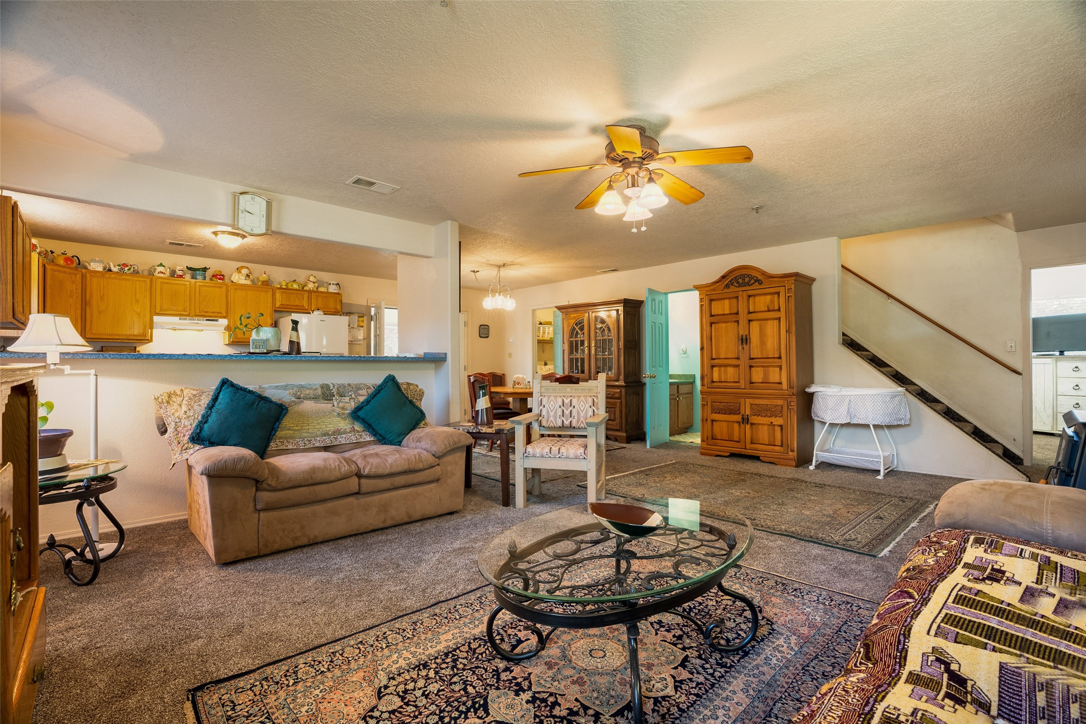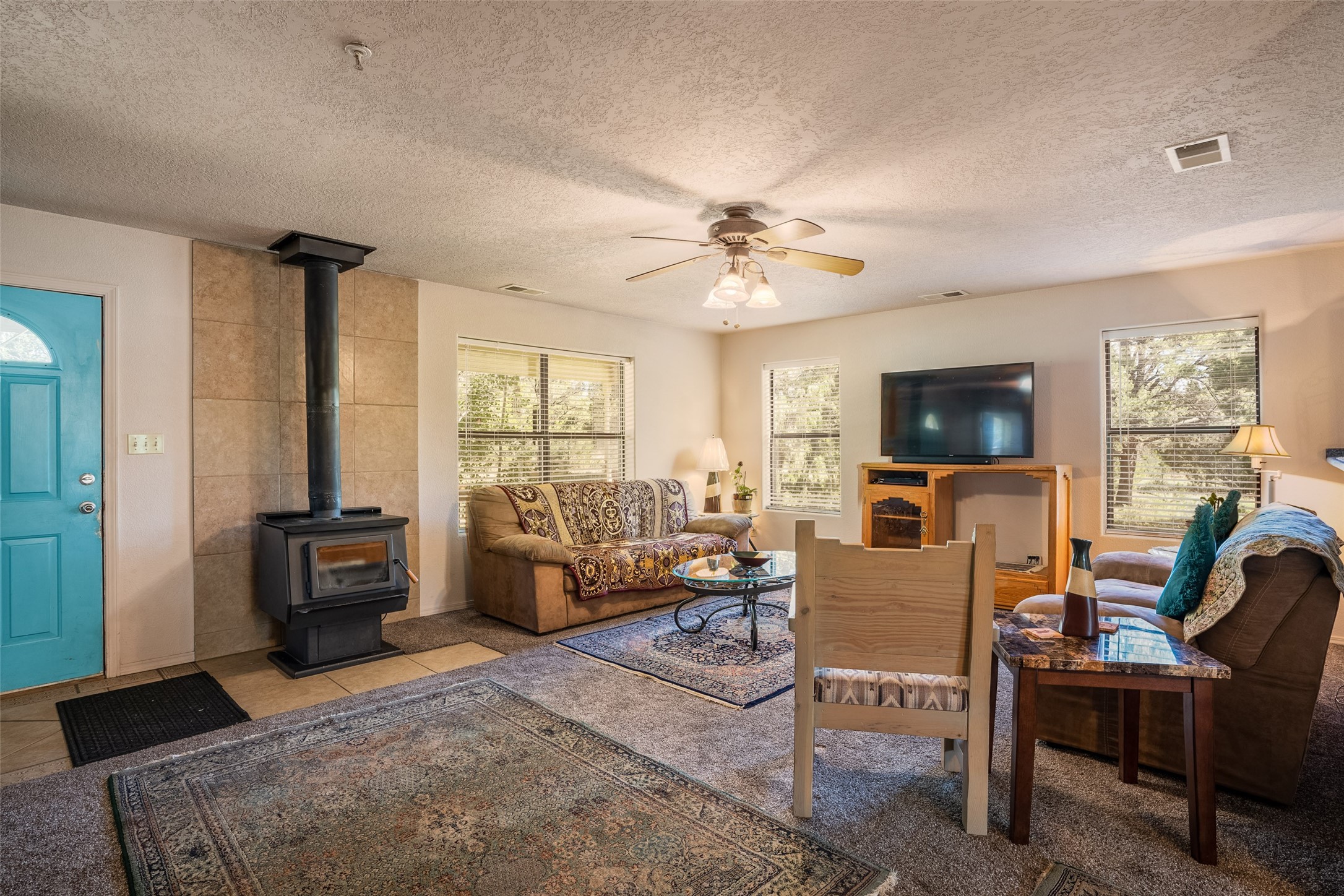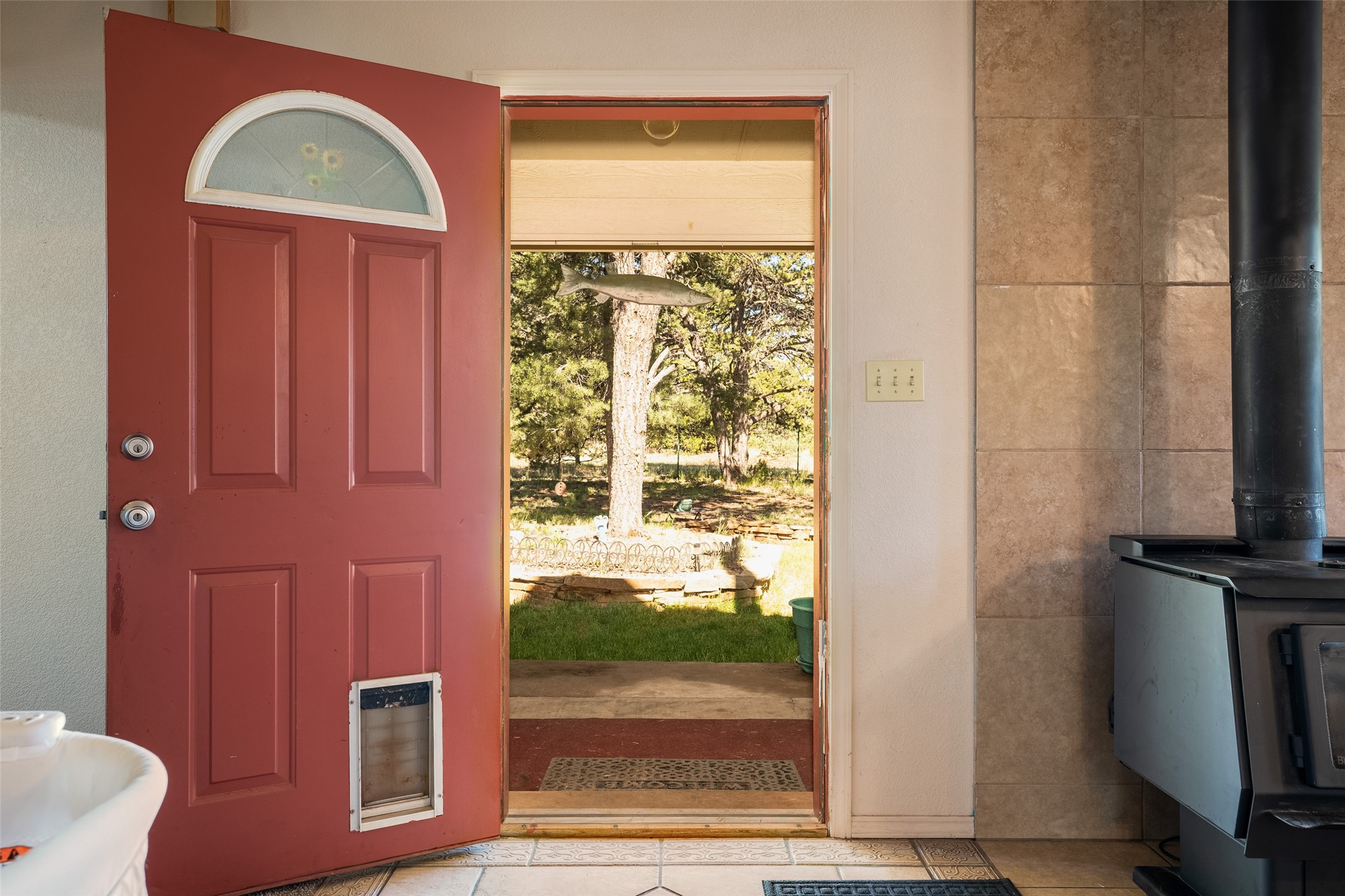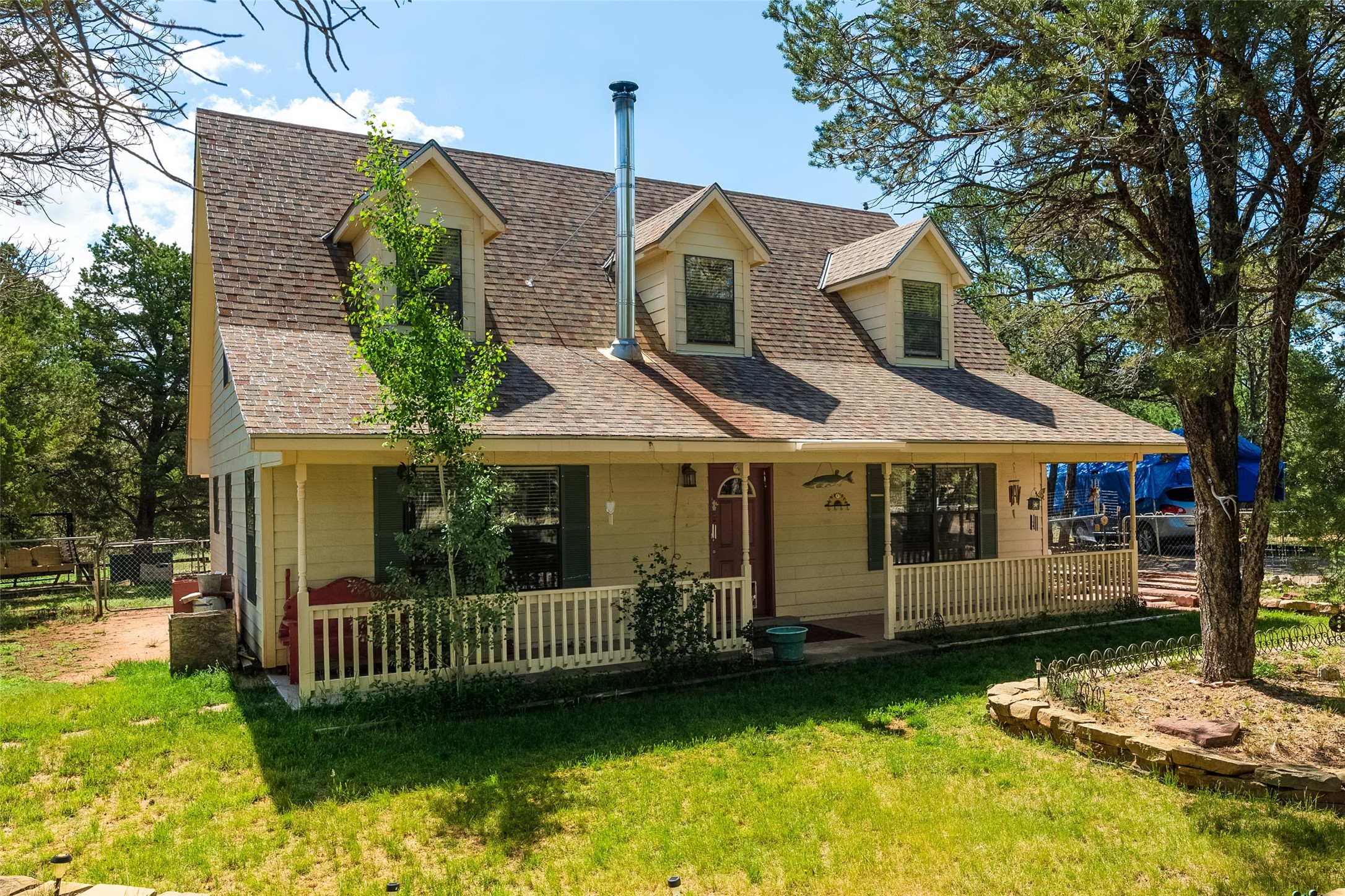 Great house just off Hwy 50 before Pecos. 3 bedrooms, 3 baths, 1753 +/- sq ft, with 38' covered porch. Landscaped 1.27 +/- ac lot that affords strong Sangre views. Dog friendly fenced yard (7,400 +/- sqft), Grass terraced front yard, open concept Living/Dining/Kitchen. Master on main, 2 beds & full bath upstairs. Ample storage. 16'x10' Tuff shed, sprinkler system for interior fire proofing, New roof installed June 19, 2023. 30 minutes to Old Pecos Trail in Santa Fe.