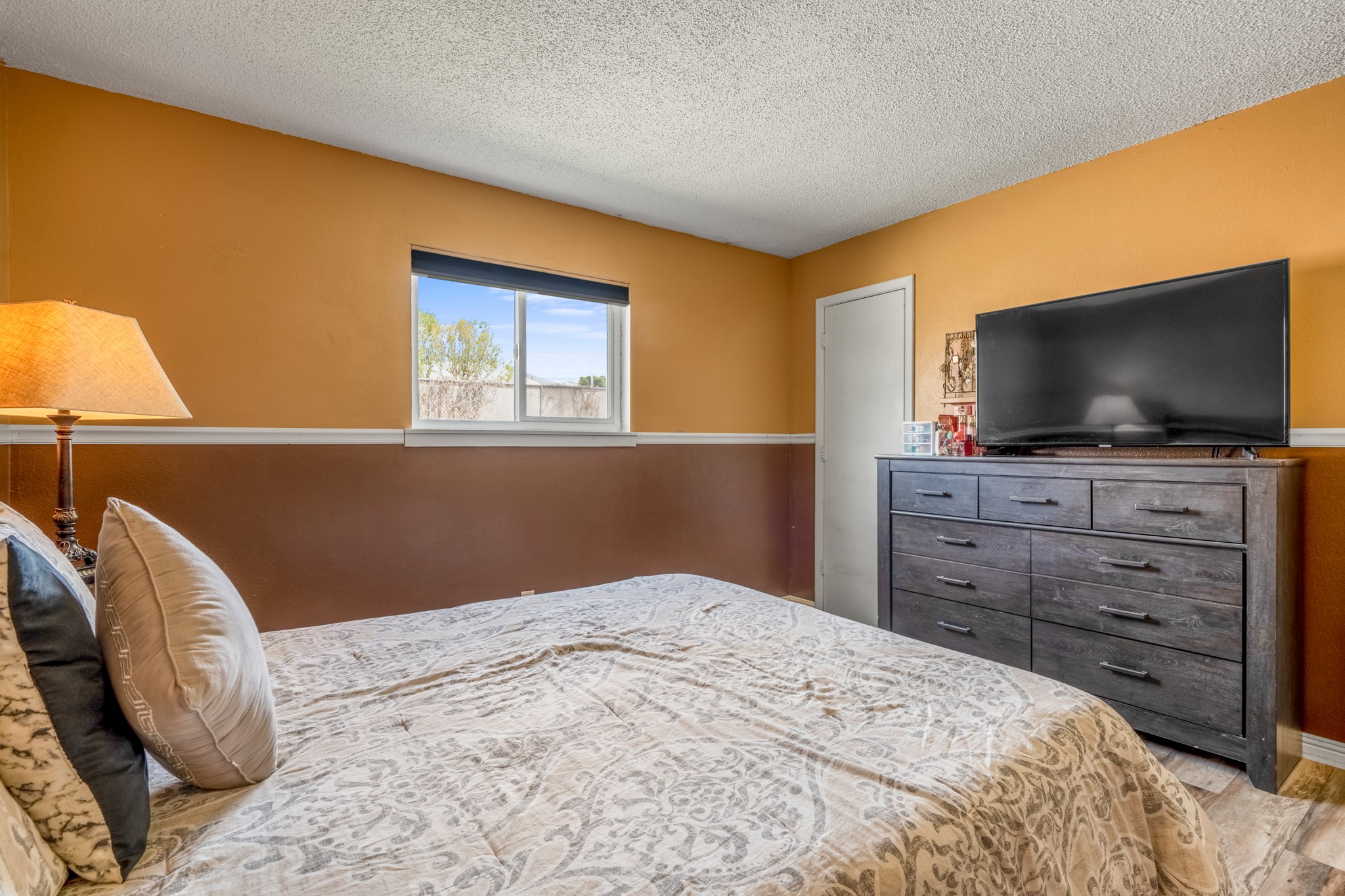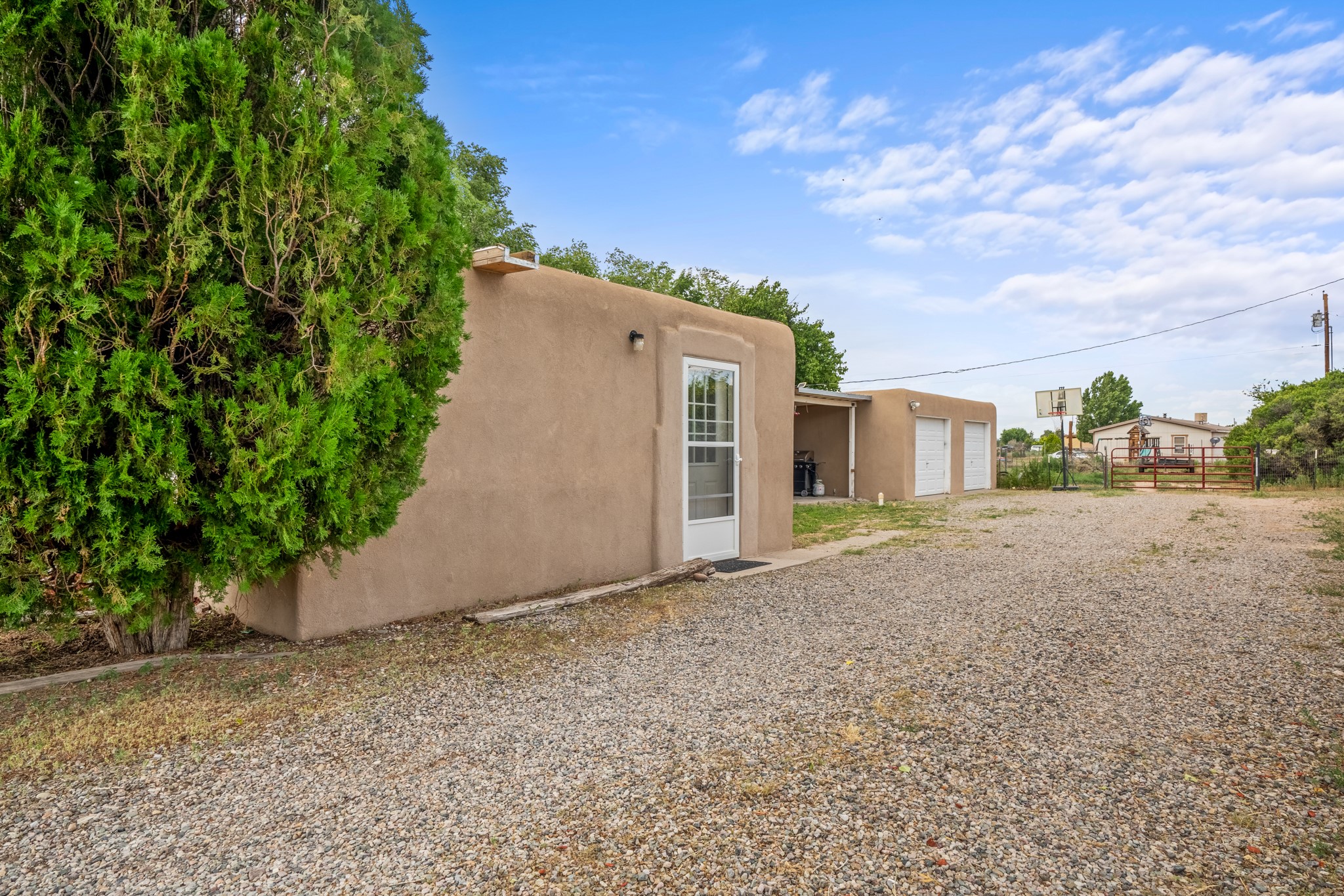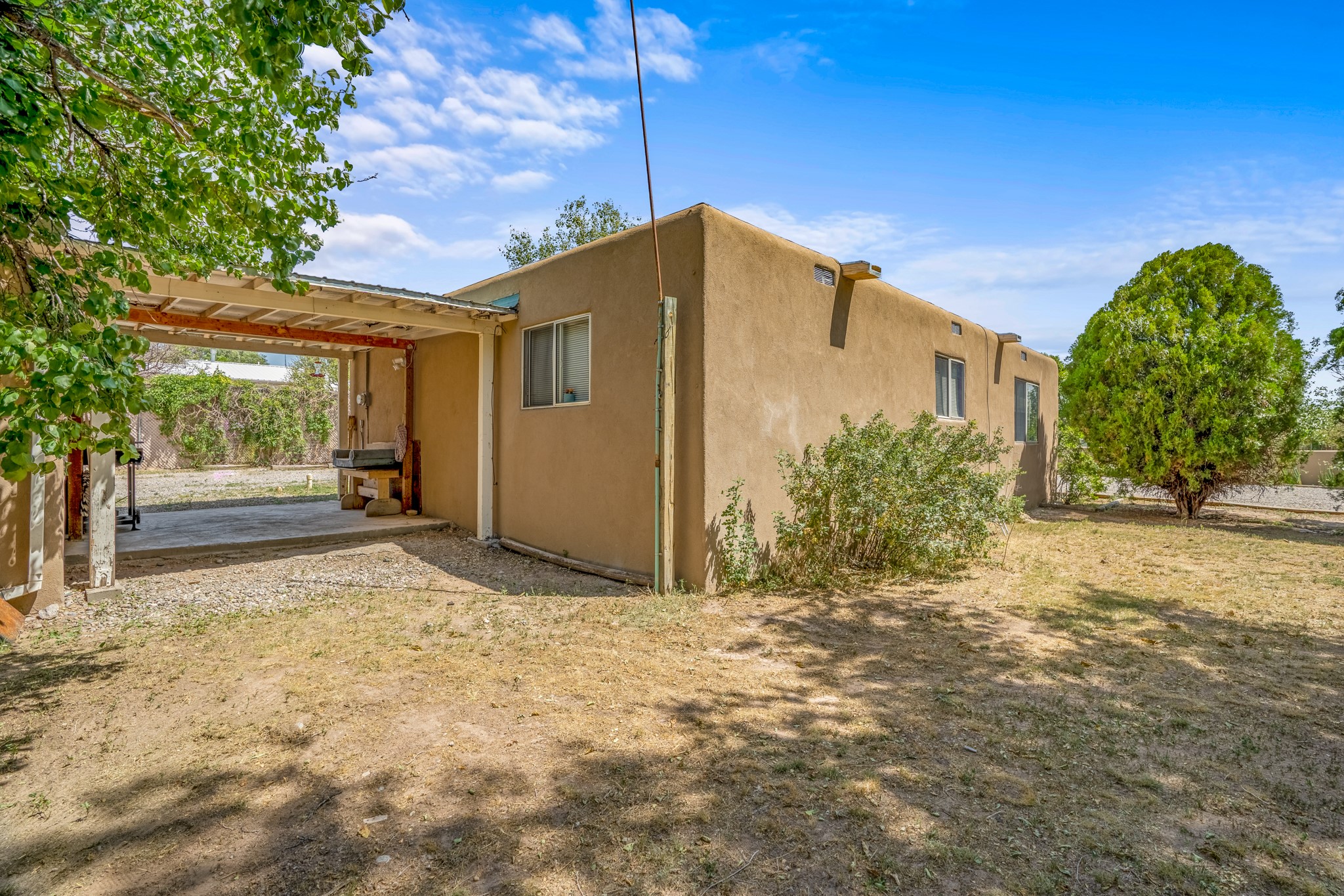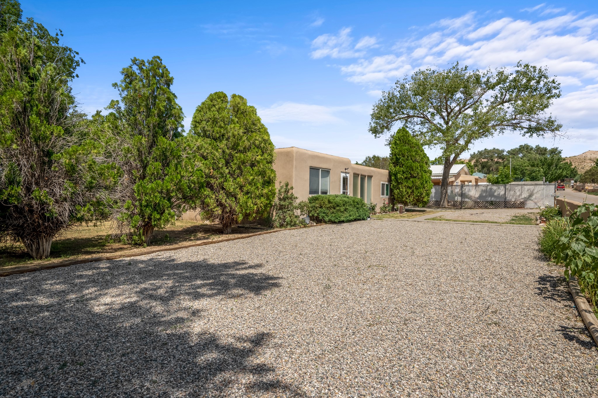 Pueblo style home located in lovely La Mesilla. Beautiful and heavily treed .5 acre lot with a carport and two car garage. Inside is a remodoled kitchen a separate utility room that is large enough for a home office, crafts , playroom, or gym. There are also three nice size bedrooms and one full bathroom. This home has lots of natural light and newer flooring.