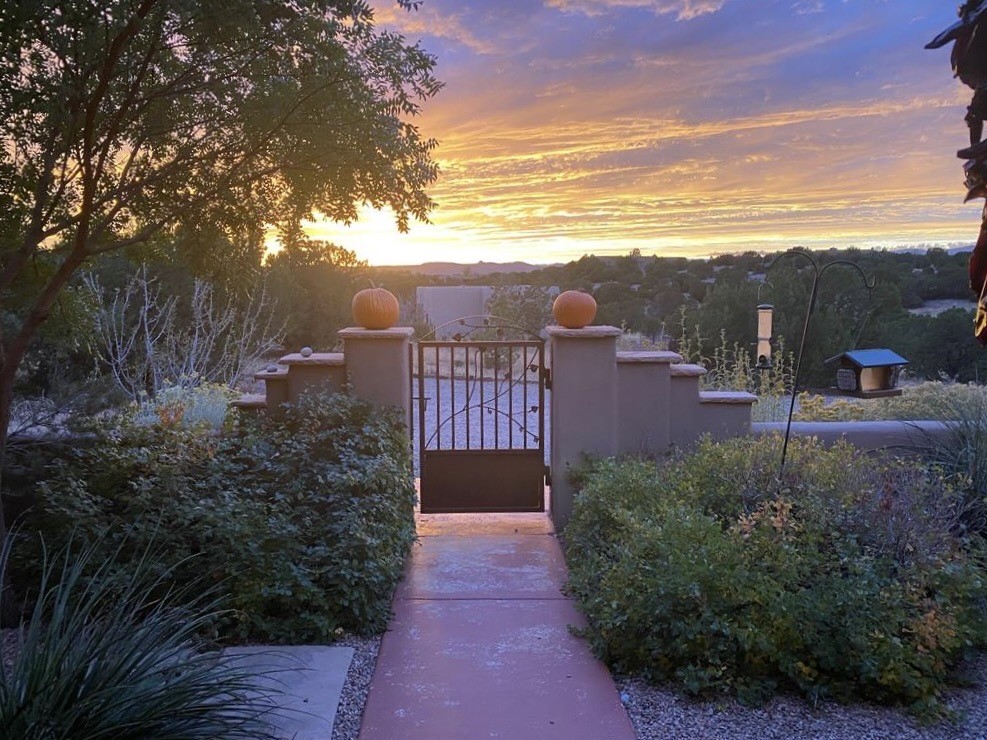 Welcome to this solar property with a desirable floor plan on 2.5 acres, just 16 minutes to The Plaza. This one-owner home offers 3/4 bedrooms. The 4th bedroom is ideal for a den or home office. An ideal home for entertaining. The kitchen opens easily to the living and dining areas. The primary suite has a kiva fireplace and ensuite bath with circular shower and soaking tub. Beautiful pine flooring in all the bedrooms. In-floor radiant heat throughout, including the 3-car garage. Enjoy the mature landscaping on the large portal, complete with a kiva fireplace. This home is pre-inspected and ready for new owners!