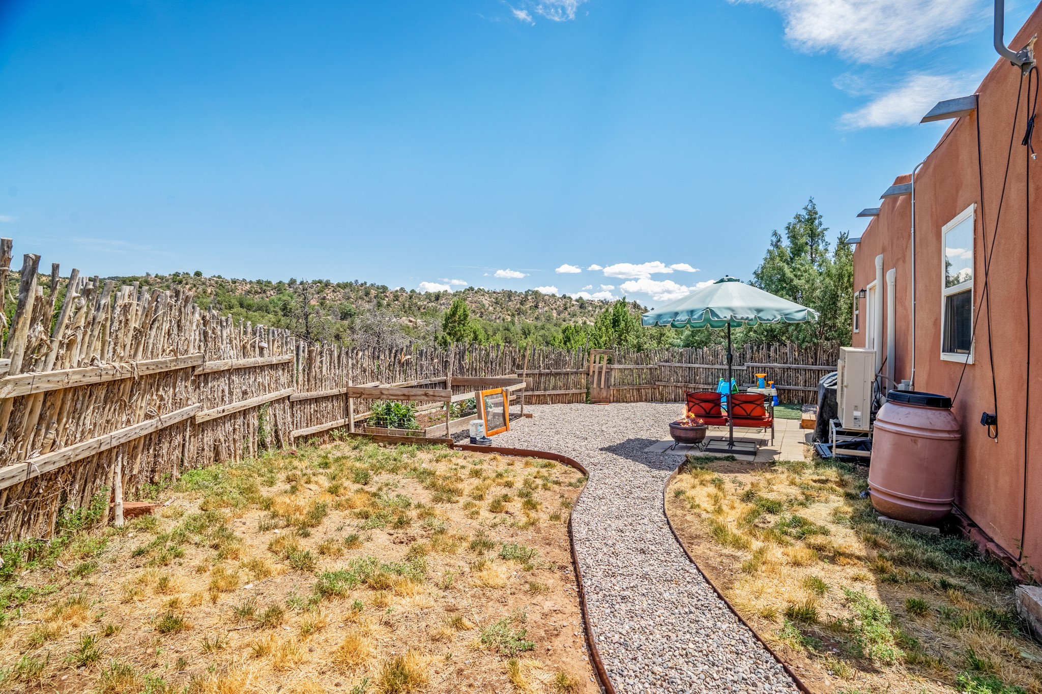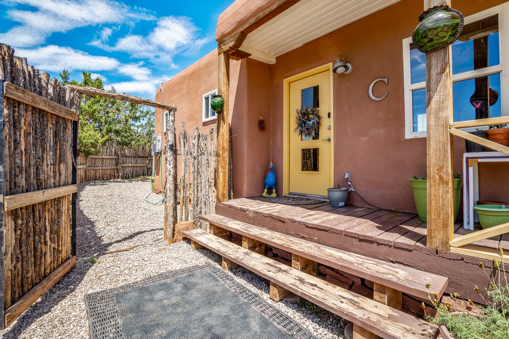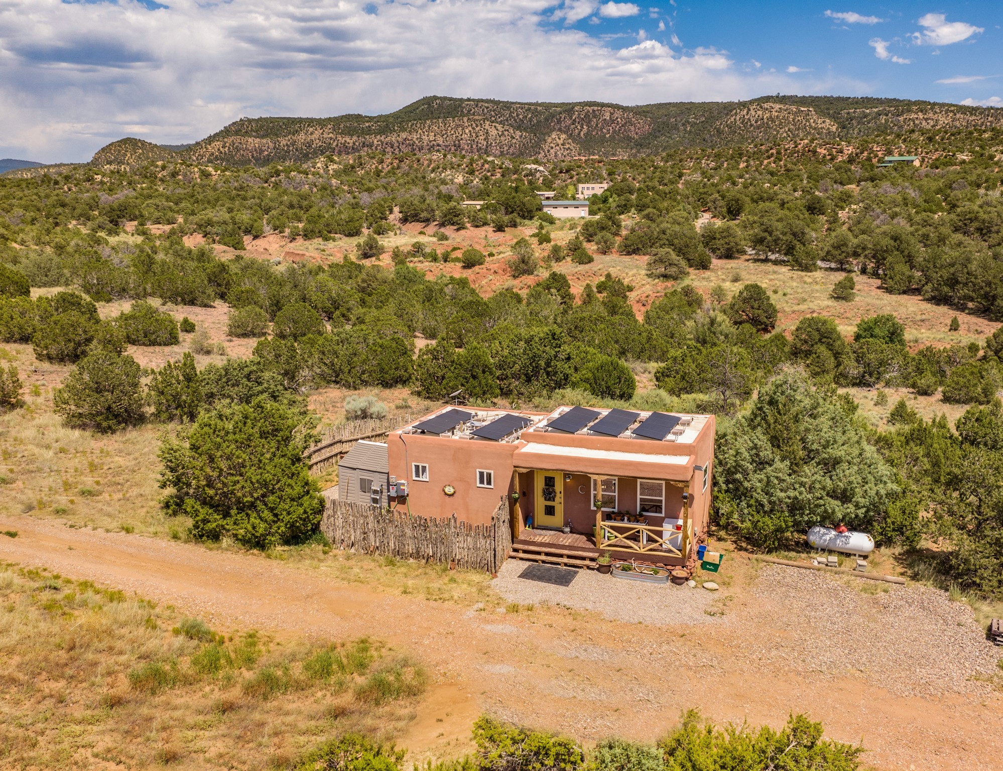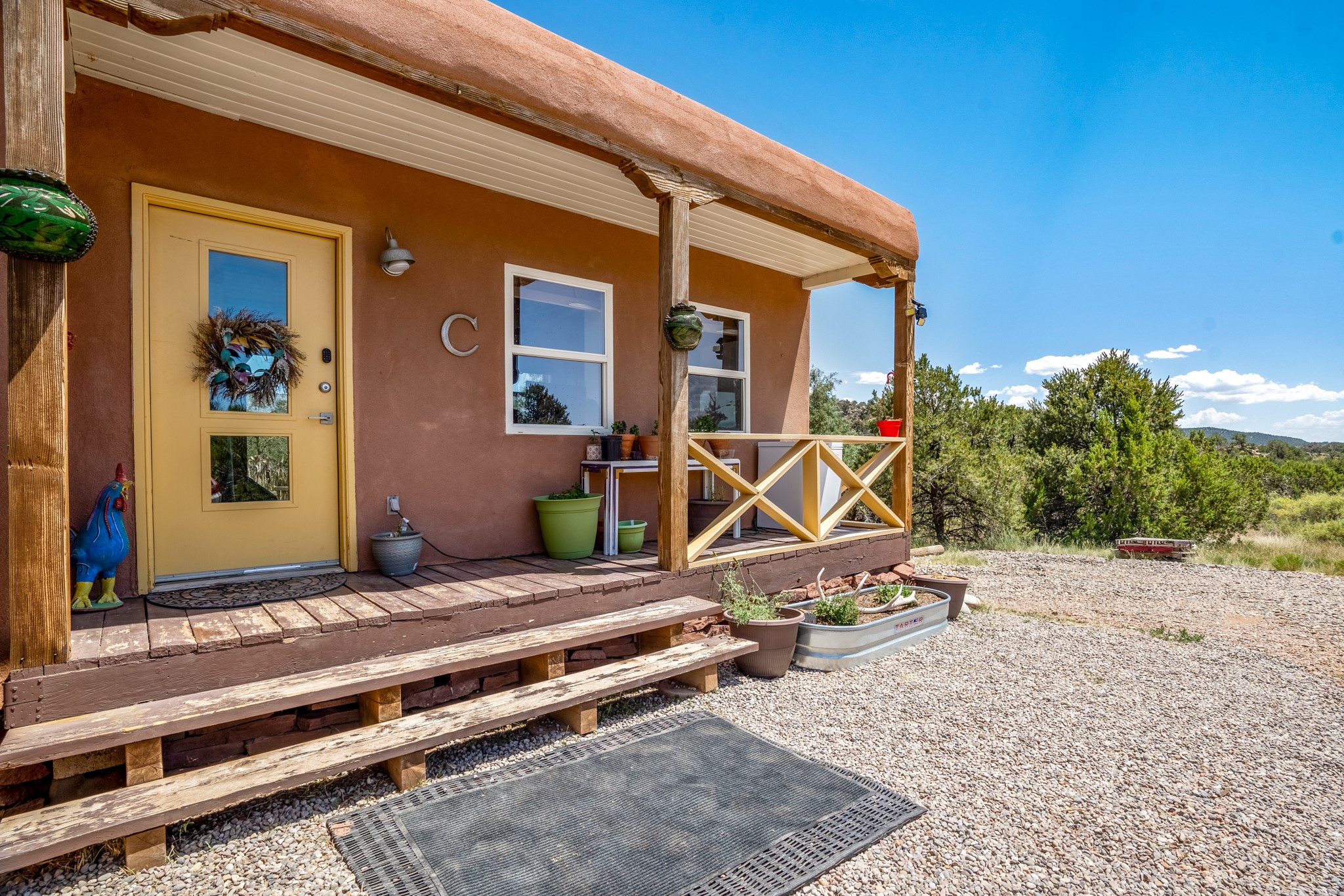 A Charming Casita on 5 acres in beautiful Canoncito adjacent Pecos National Historical Park open space with views that are here to stay! One bedroom, one bathroom with tile floors and vigas, covered front porch. New solar system and mini-split units. Newly landscaped latilla fenced backyard with garden and 3 storage sheds. Artesian well with new pump is shared with 2 neighboring properties on Ranchos Canoncito. Live in this eventual investment property while building your dream home. Horses are allowed. Miles of hiking trails on El Dorado Community Prese. rve. A 10 minute drive to Santa Fe restaurants and amenities, come enjoy the peaceful surroundings of this home and land.