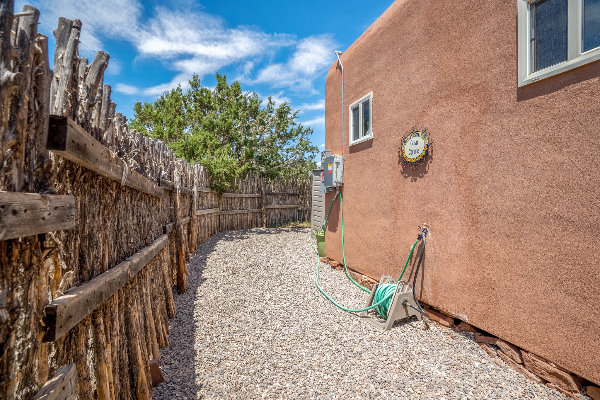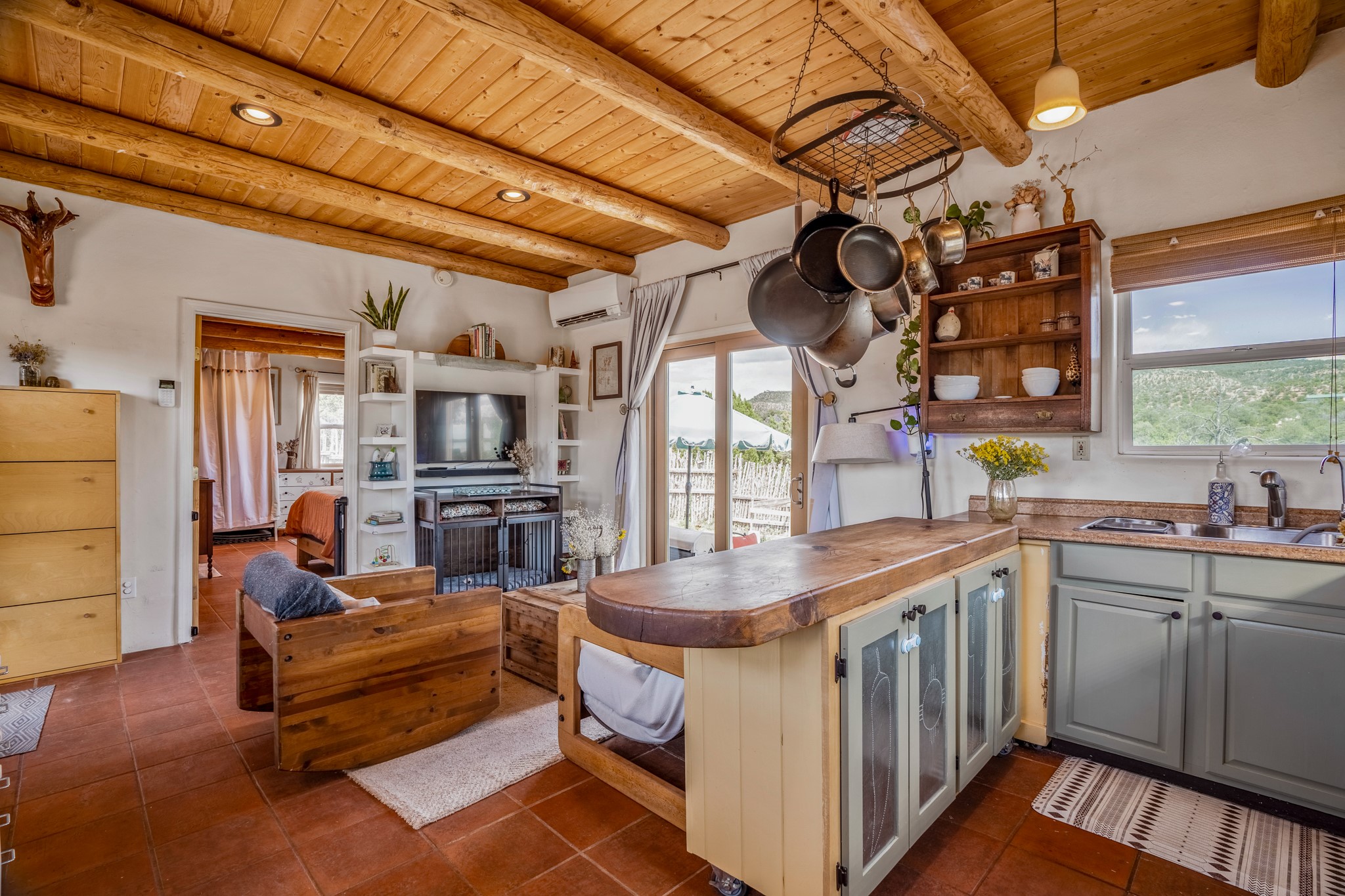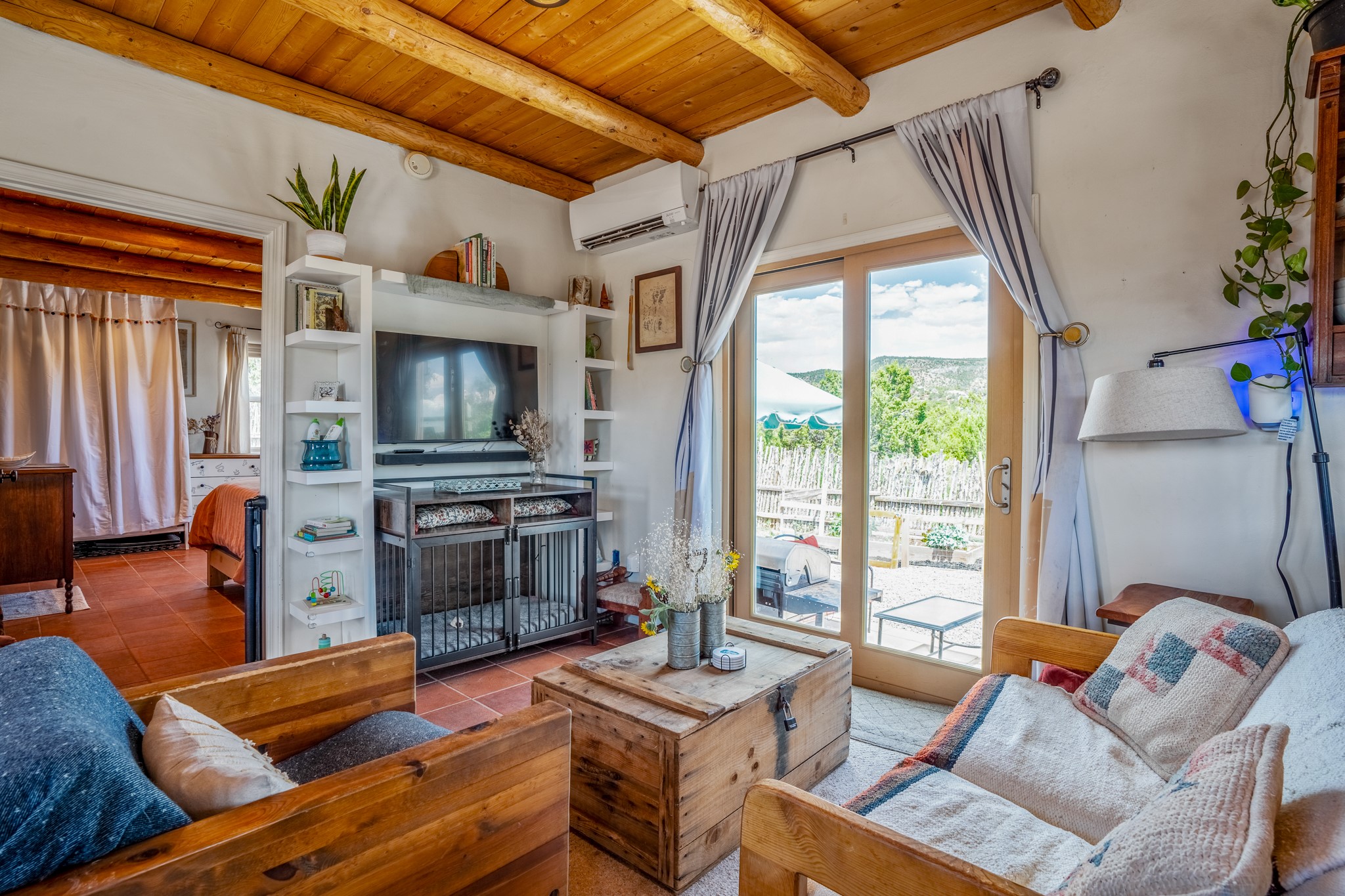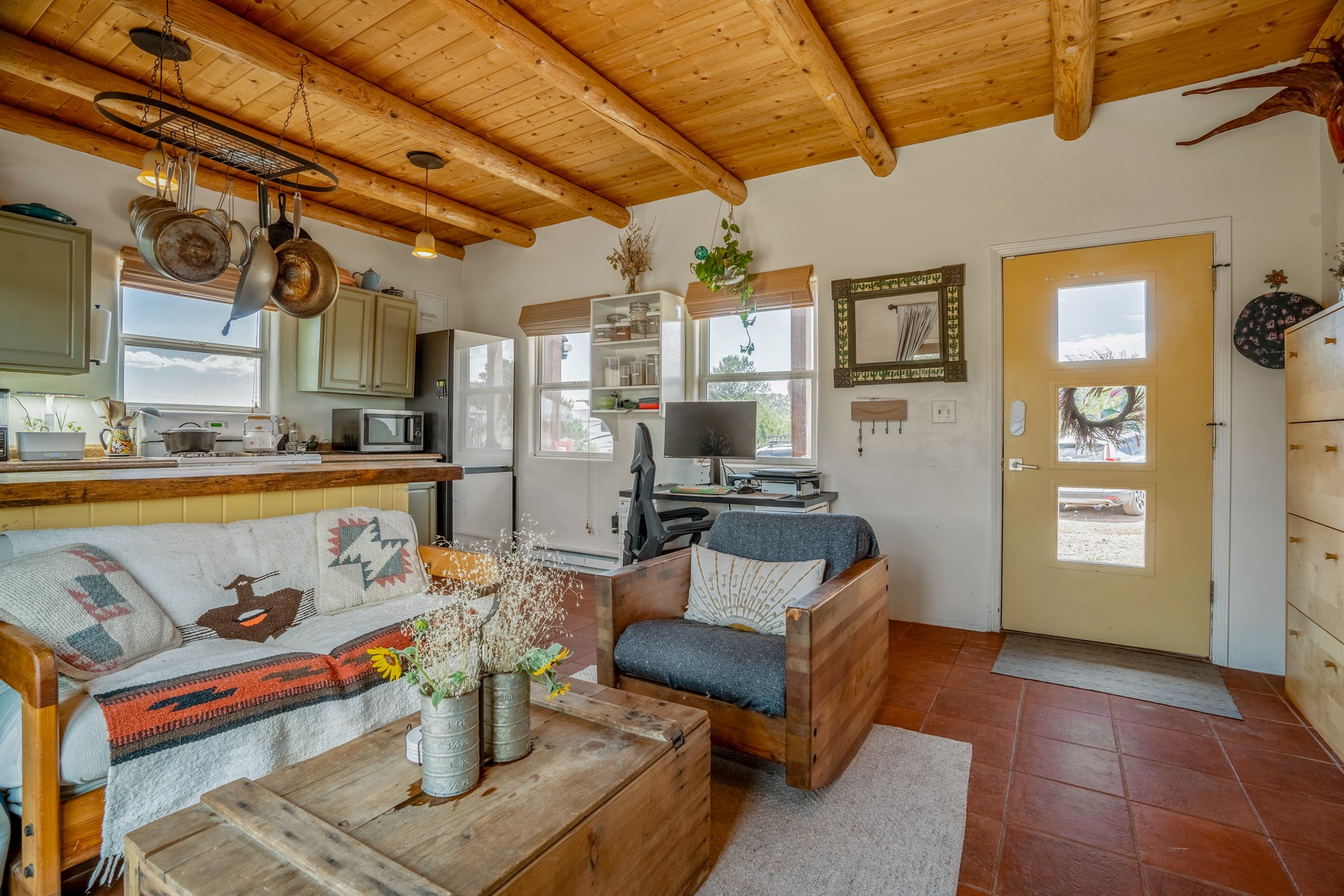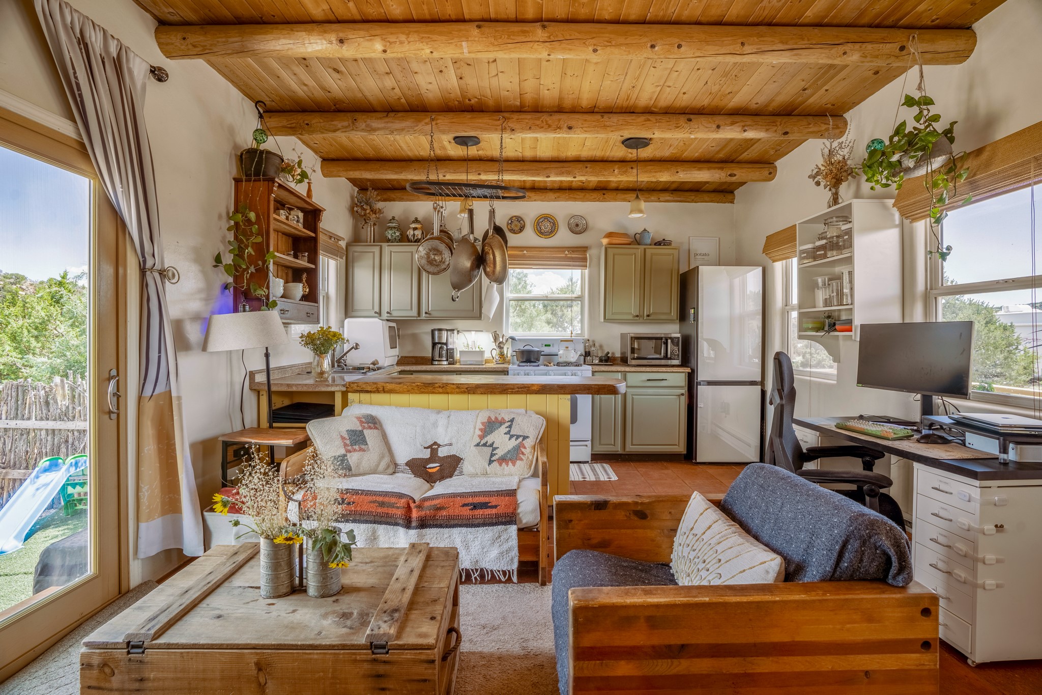A Charming Casita on 5 acres in beautiful Canoncito adjacent Pecos National Historical Park open space with views that are here to stay! One bedroom, one bathroom with tile floors and vigas, covered front porch. New solar system and mini-split units. Newly landscaped latilla fenced backyard with garden and 3 storage sheds. Artesian well with new pump is shared with 2 neighboring properties on Ranchos Canoncito. Live in this eventual investment property while building your dream home. Horses are allowed. Miles of hiking trails on El Dorado Community Prese. rve. A 10 minute drive to Santa Fe restaurants and amenities, come enjoy the peaceful surroundings of this home and land.