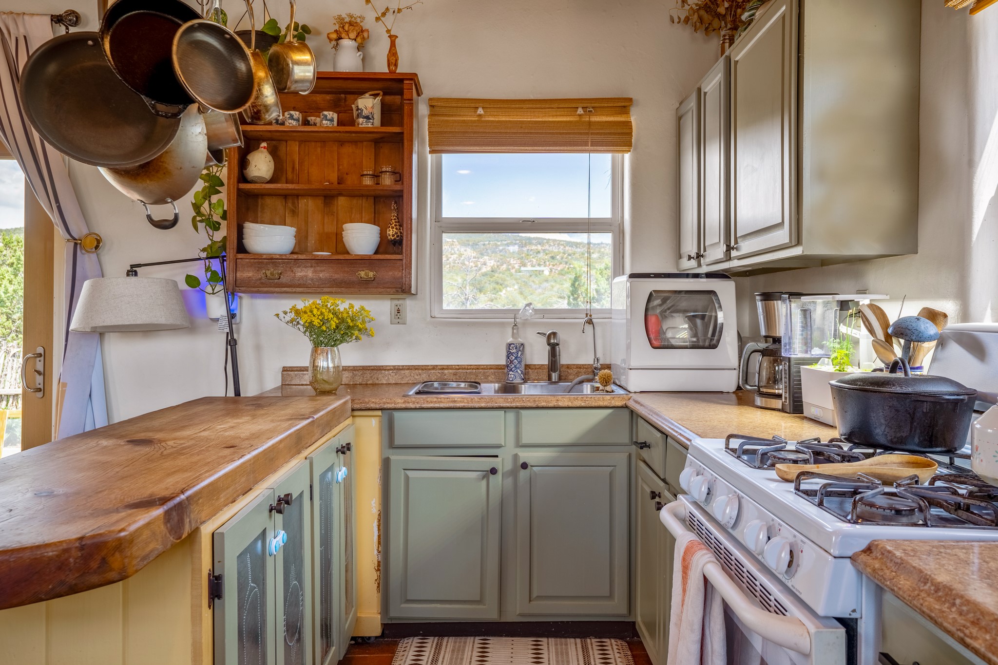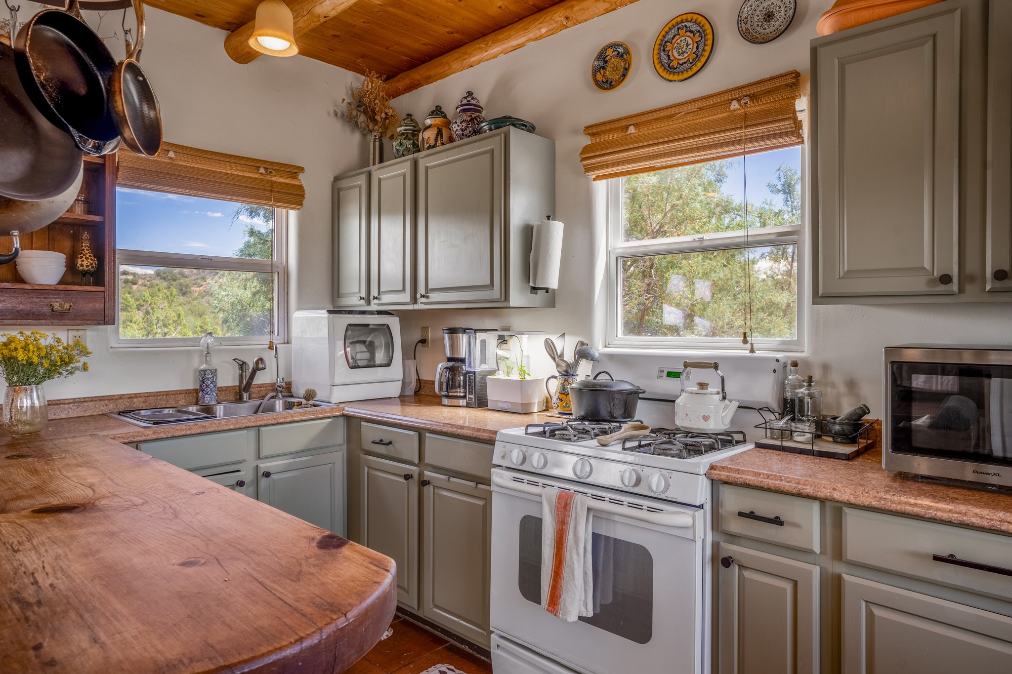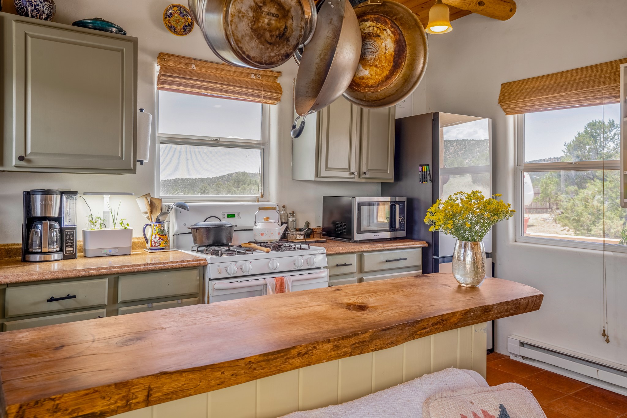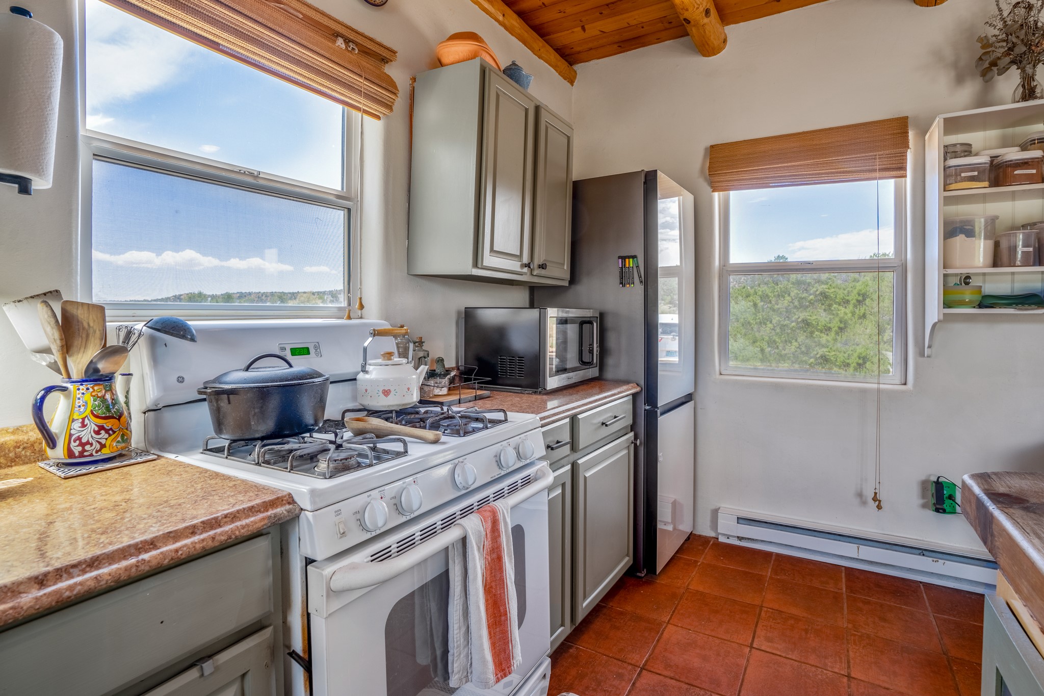 A Charming Casita on 5 acres in beautiful Canoncito adjacent Pecos National Historical Park open space with views that are here to stay! One bedroom, one bathroom with tile floors and vigas, covered front porch. New solar system and mini-split units. Newly landscaped latilla fenced backyard with garden and 3 storage sheds. Artesian well with new pump is shared with 2 neighboring properties on Ranchos Canoncito. Live in this eventual investment property while building your dream home. Horses are allowed. Miles of hiking trails on El Dorado Community Prese. rve. A 10 minute drive to Santa Fe restaurants and amenities, come enjoy the peaceful surroundings of this home and land.