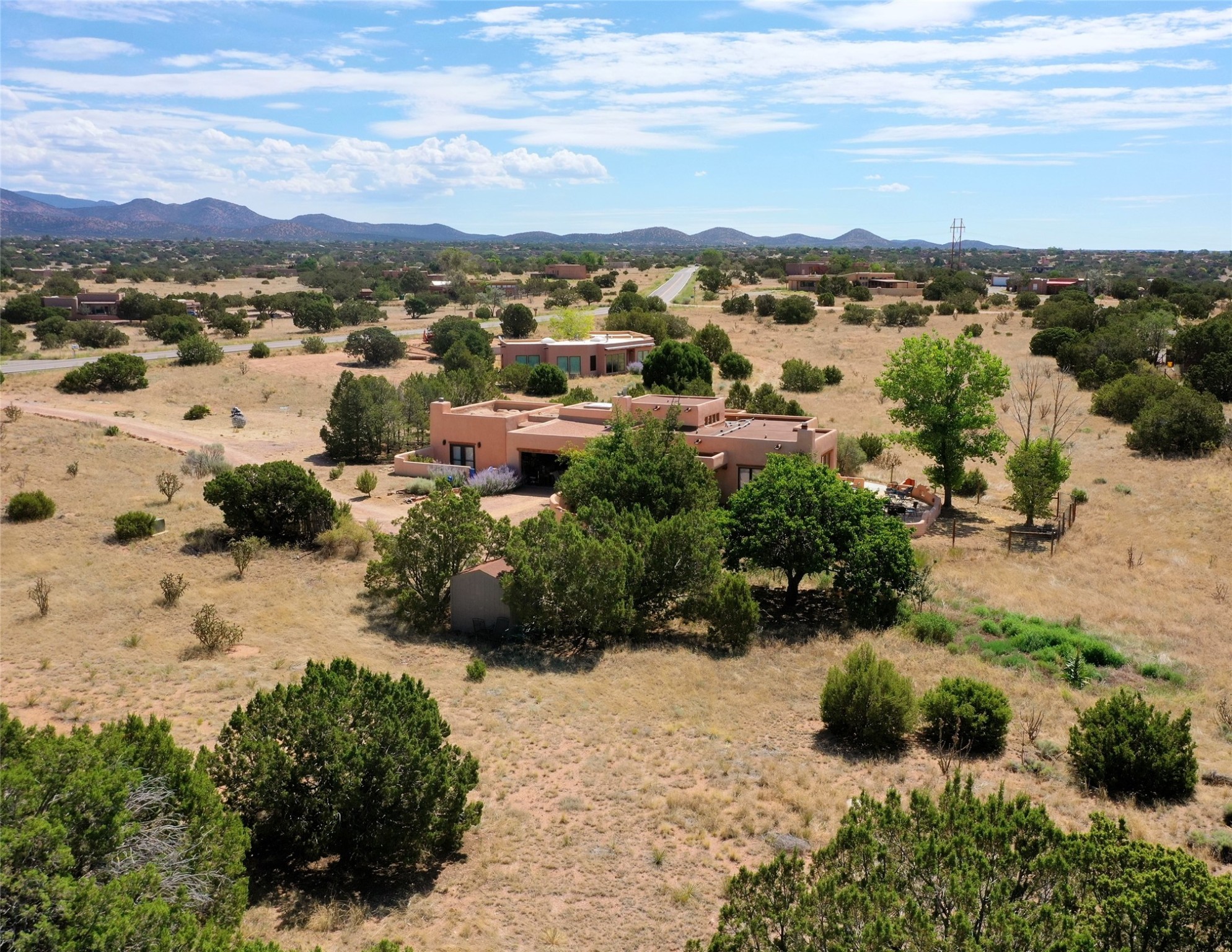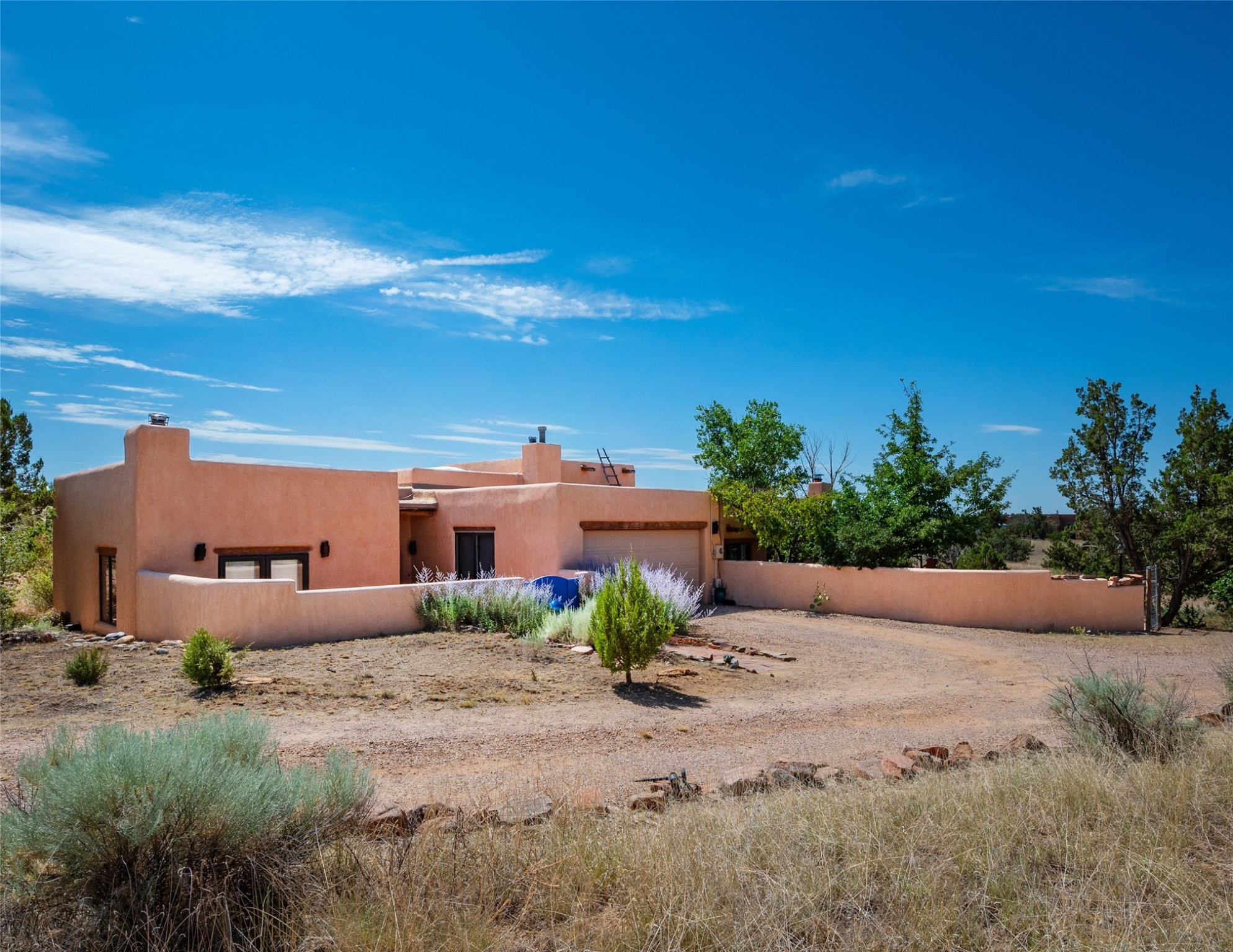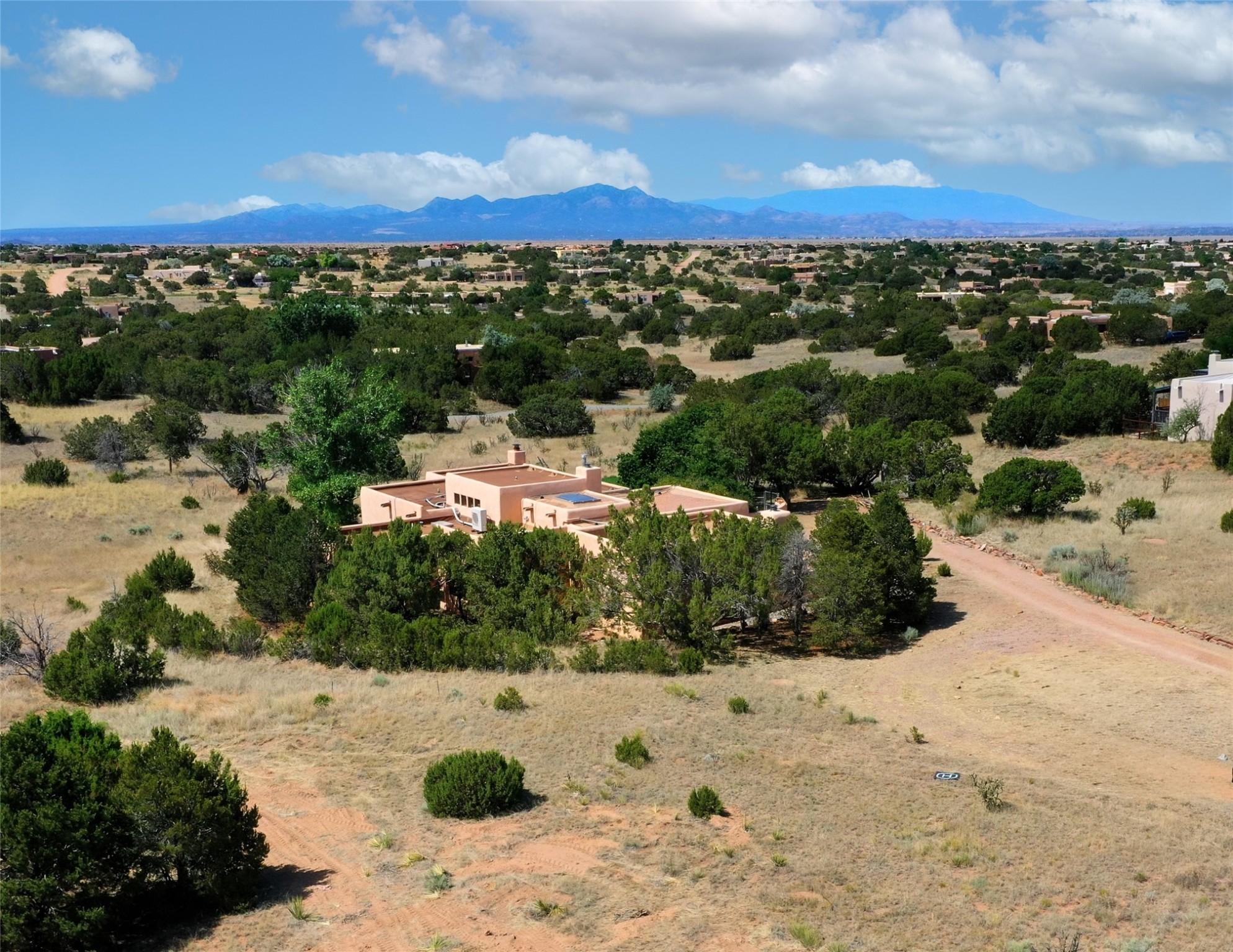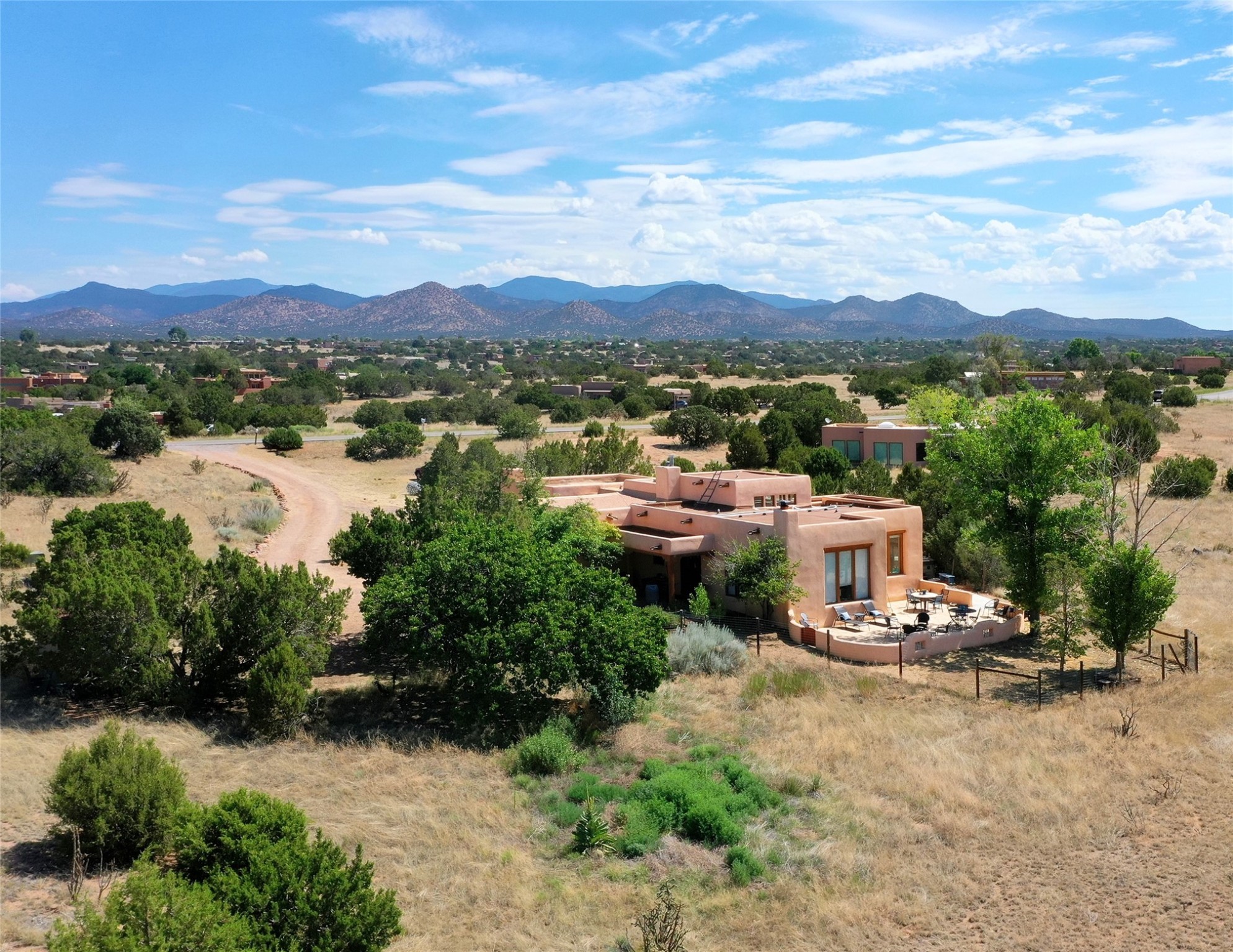 Enter the peaceful front courtyard, continue through the vintage Mexican carved doors into the dramatic entry with soaring ceilings This beautiful Eldorado home was built around 1991 . The previous owners added an addition to create a master bedroom with kiva fireplace. The home has brick floors throughout, large windows to take in the views and 2 additional courtyard spaces for outside enjoyment. The kitchen has been remodeled. There is great separation between the 4 bedrooms and 3 baths, with a choice of which bedroom you want to be the master, both lead to a courtyard. Don't miss this beautiful home.