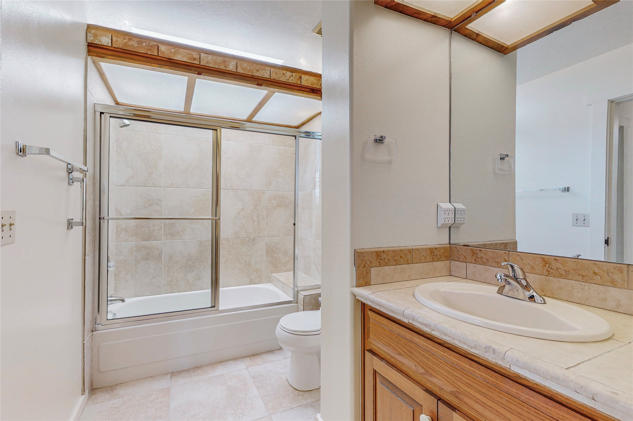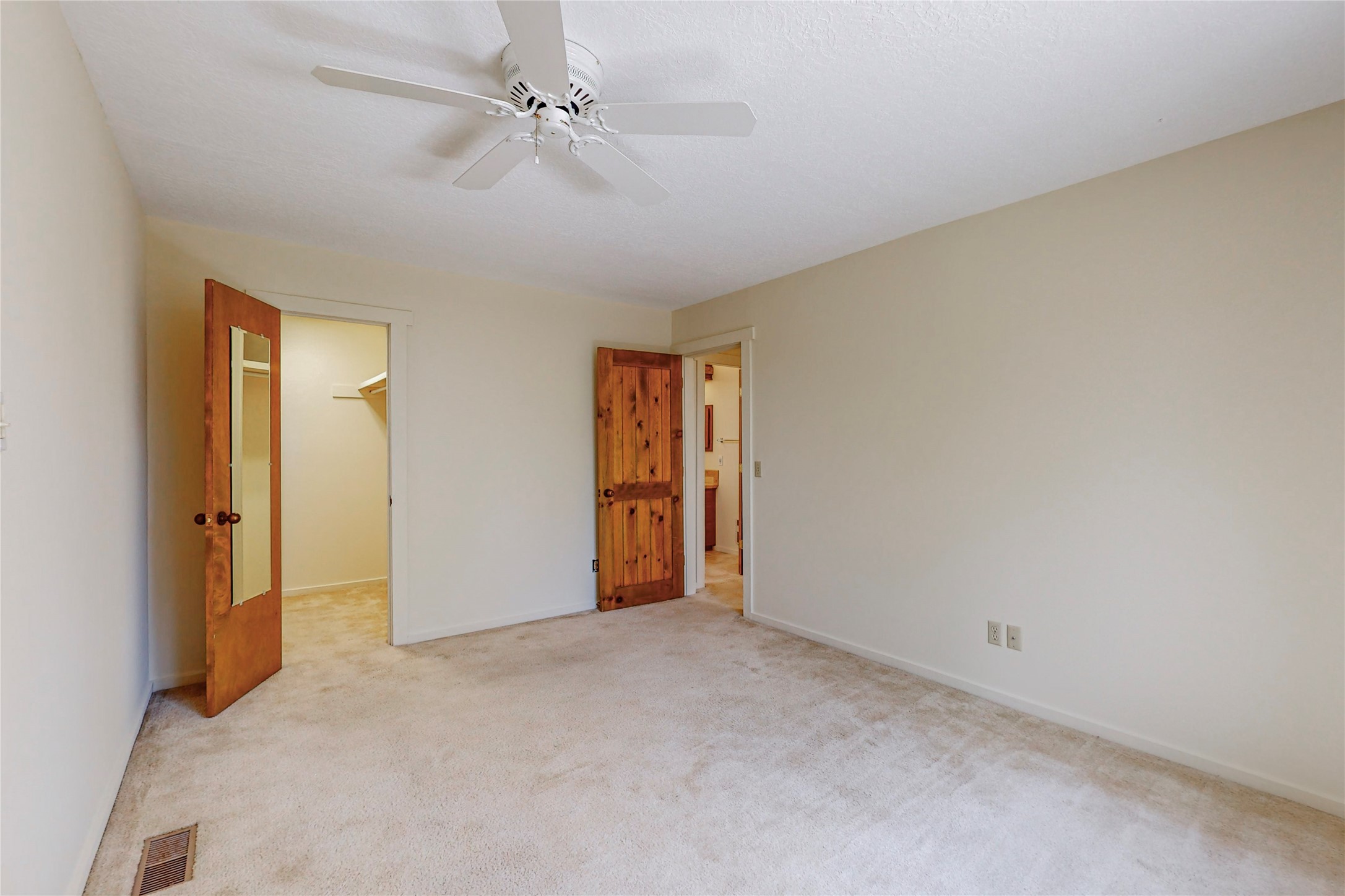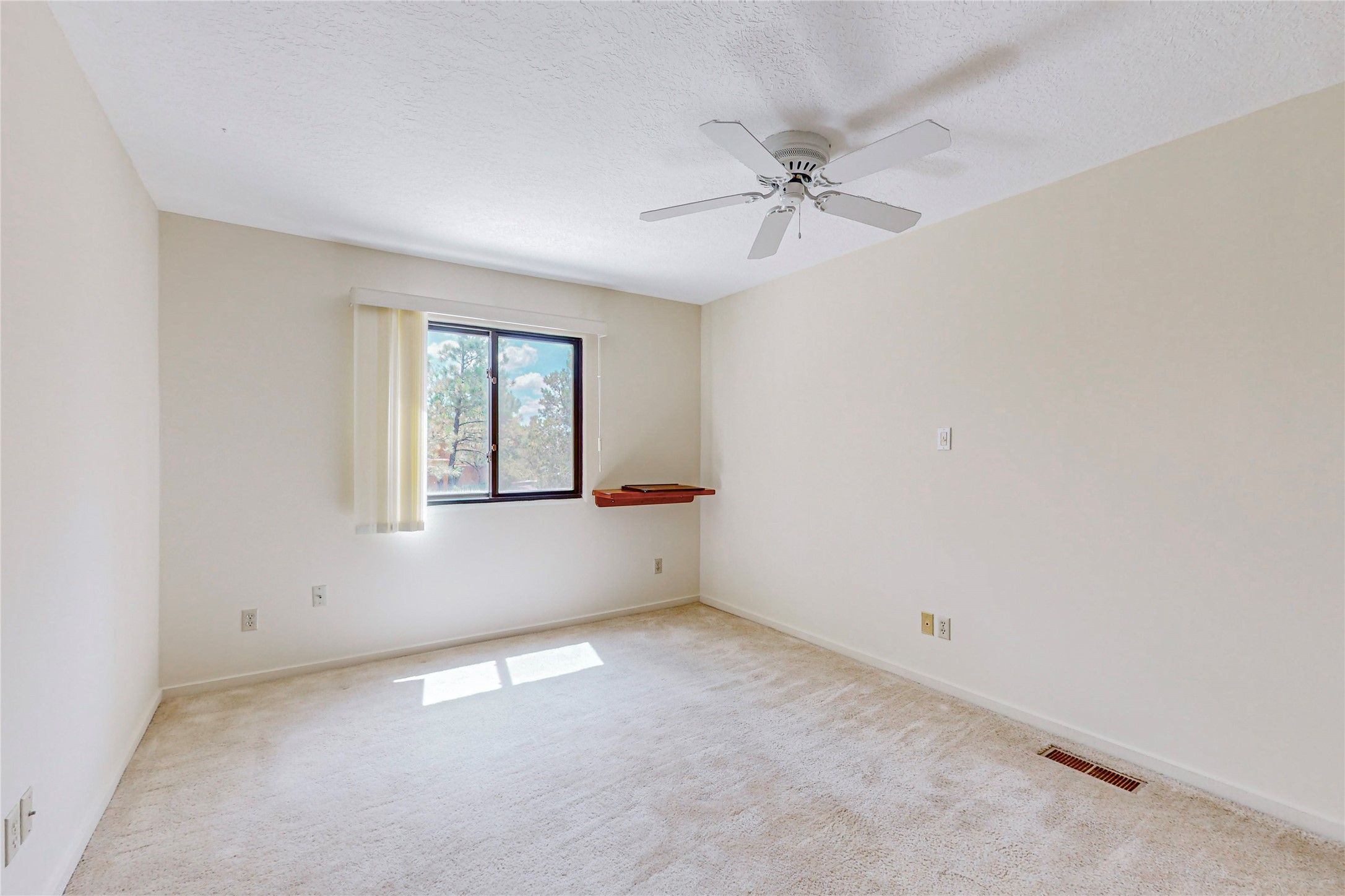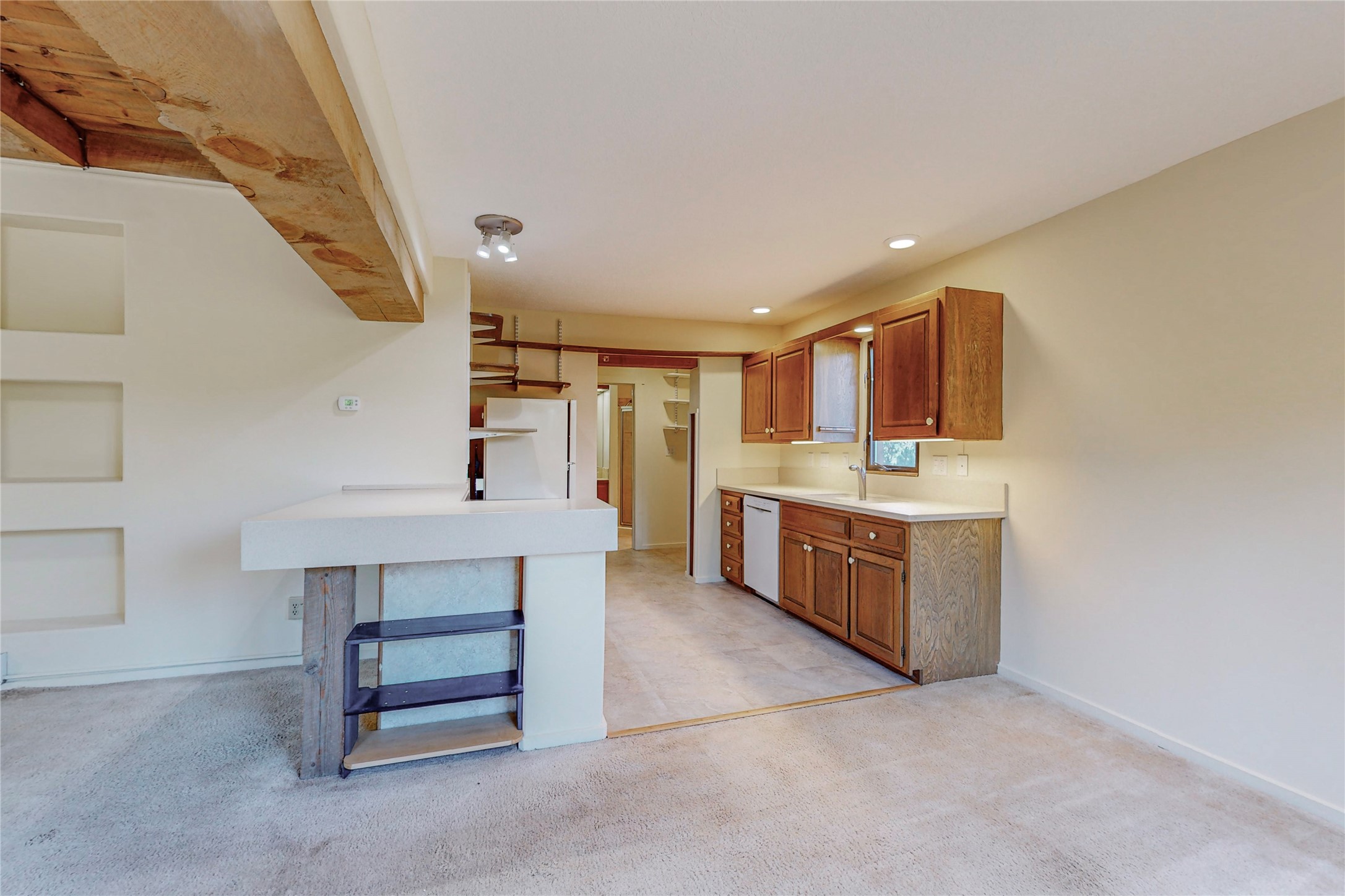 Sunny and secluded - an ideal location for your new Santa Fe home! This condo unit will surprise you, it's private and tucked away at the end of a cul-de-sac. A peaceful courtyard greets you, and this area of greenery and sunshine is also seen from inside the unit. The entire first floor is open space planning focused on a large light-filled living room, complete with a gas-fired corner kiva fireplace. The open space flows to a dining area and from these windows you'll see mountain views of the Sangres - and possibly snow-covered peaks. The open kitchen is euro style with a Wolf induction cook top. Currently there is no oven, but there is a cabinet space (under counter) in the kitchen that formerly had an oven and this is where a new oven could be installed. The extra-deep attached garage, laundry area, and bath with walk-in shower complete the first floor. Up the staircase you'll find two generous bedrooms with a large full bath between. Both bedrooms offer big windows, good closets and lots of natural light. With professional HOA coverage on many exterior items plus the new roof completed in September of 2021, this unit will provide the new owner with easy living. The location offers you close proximity to all of downtown Santa Fe, for restaurants, museums, shopping. Nearby are numerous grocery store options and the farmers' market. Within 5 minutes you can be ordering breakfast at a downtown location. Also, just at the base of the hill is Ft Marcy park, which offers multiple choices: pickle ball courts, indoor swimming pool, basketball court, exercise rooms, and good dog walking options. OR, you can walk downhill to the Plaza in about 20 minutes. This is a very comfortable place as a full time home or your Santa Fe escape. Welcome to Santa Fe!