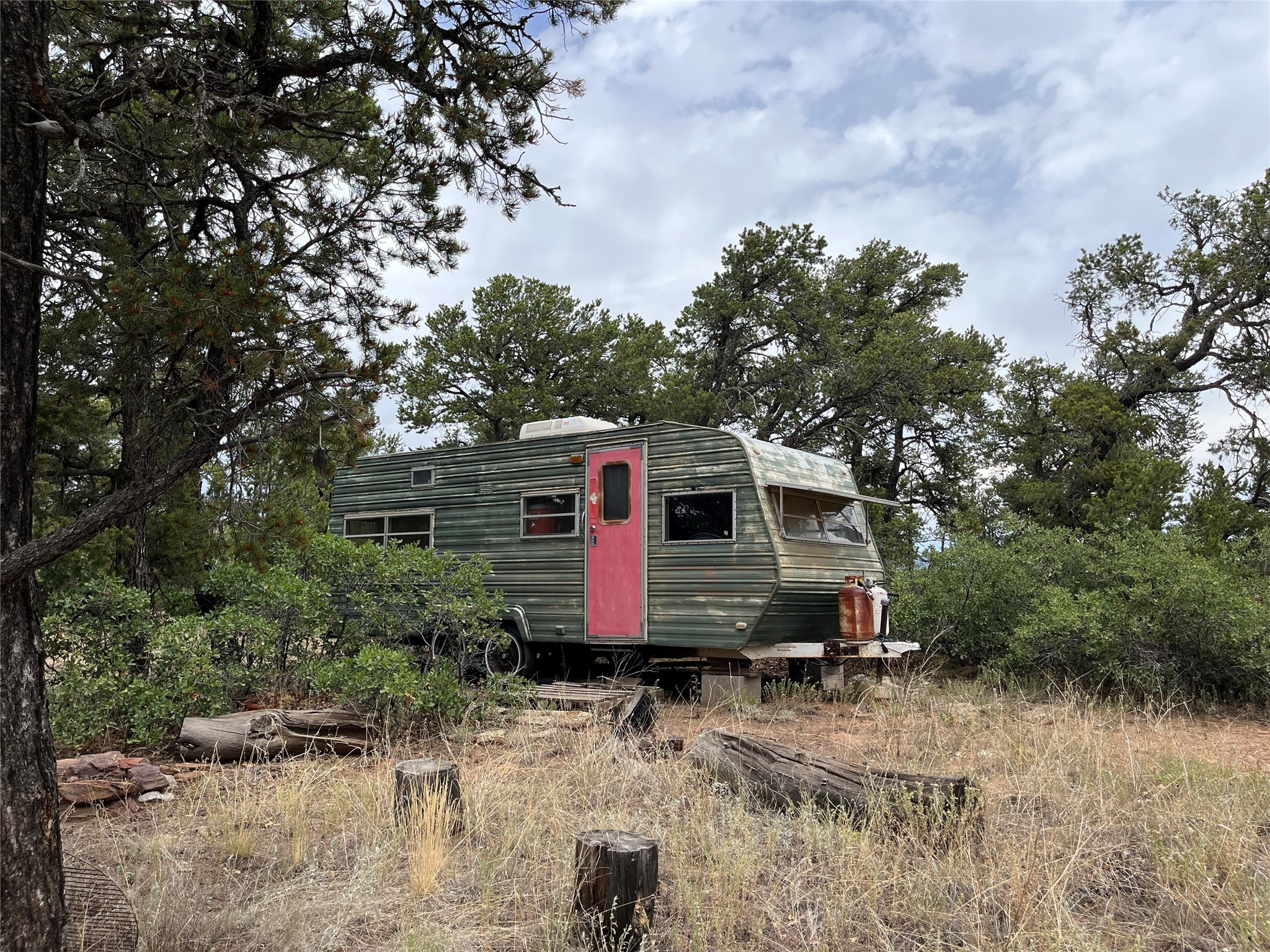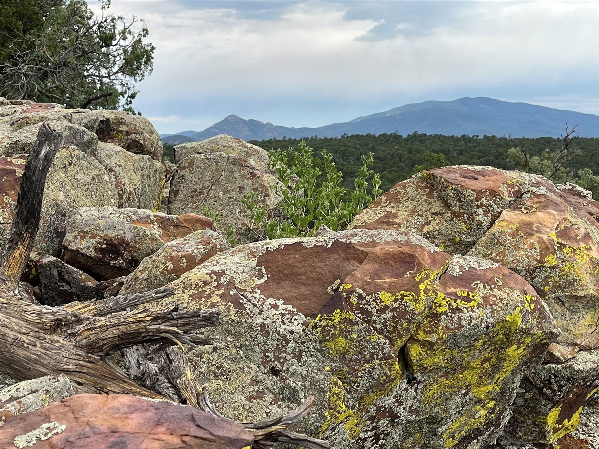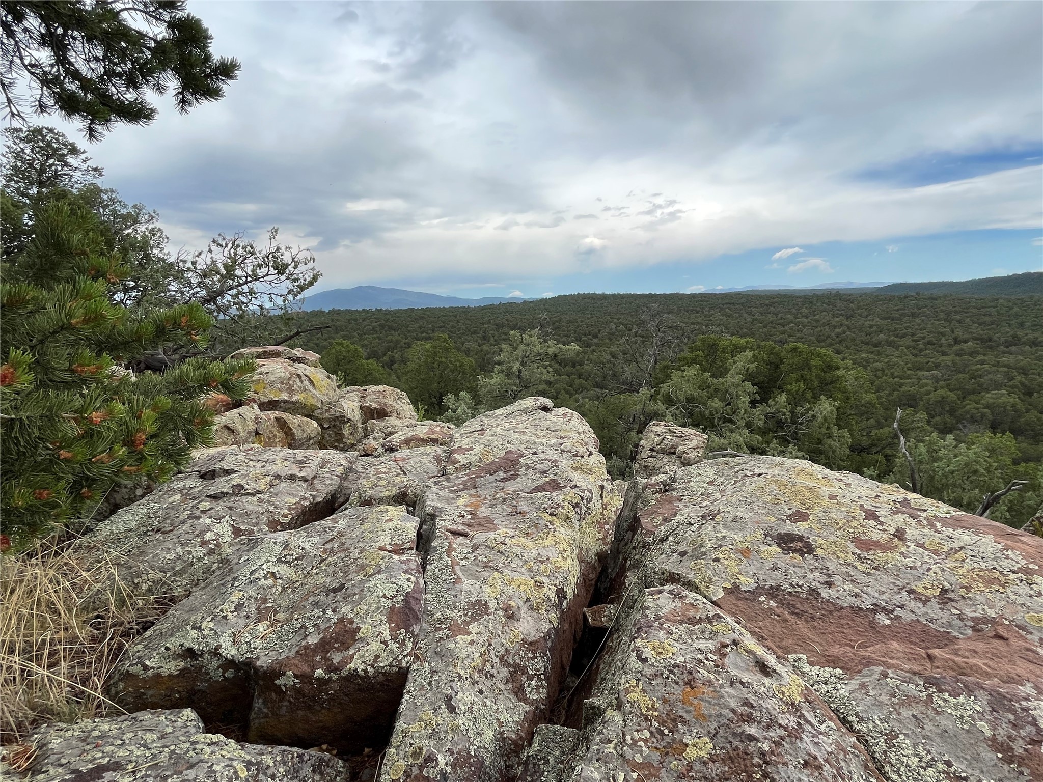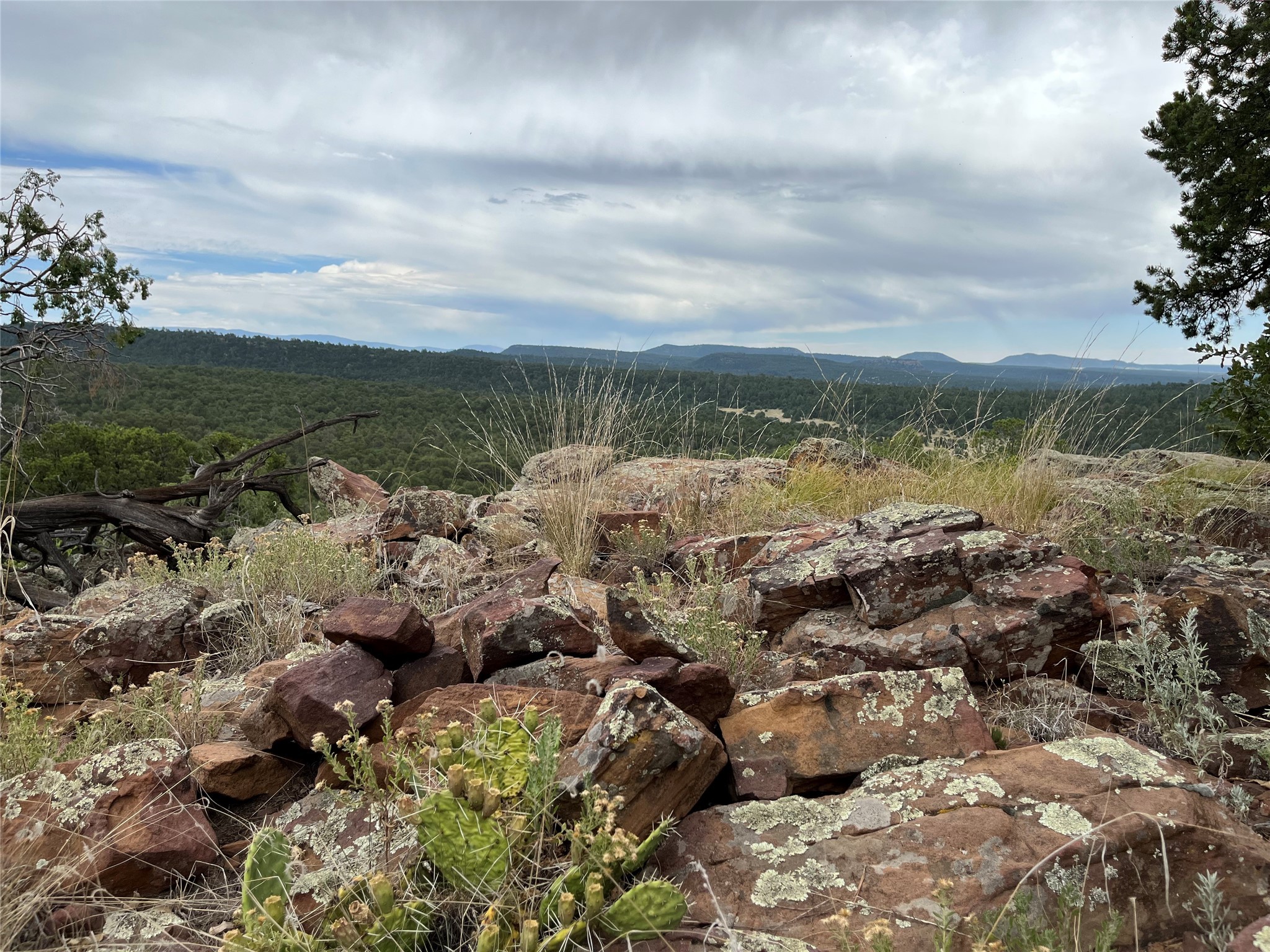 La Tierra Del Alba (Land of the Sunrise). Come and become one with nature where wildlife, nature, and stunning night skies collide creating a private refuge on this stunning 40 acre mountain top property with mature tree cover and wonderful rock-outcroppings. This property has some stunning panoramic views of the mountains and vistas in a park-like setting. Approximately 18 miles to Santa Fe or a 25 minute drive! Borders National Forest! Seller will convey property with a $3,000 water well siting study showing two possible sites for wells in addition to a modest trailer and composting toilet to begin your next adventure.