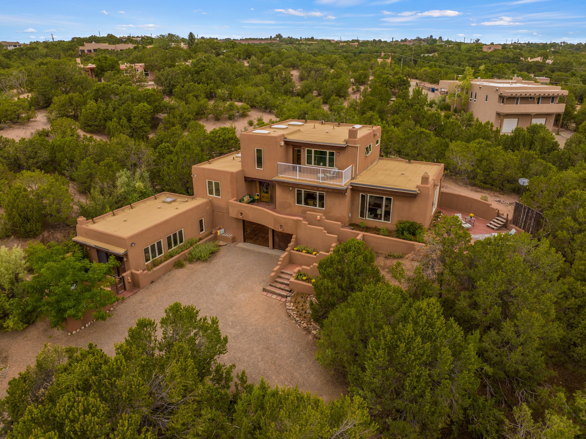 Tucked away in Santa Fe's tranquil North East hills, this property encapsulates Southwest living. The home features 3 beds and 2 baths, theupstairs primary suite offers a private balcony with excellent foothill and mountain views, complemented by beamed ceilings and a cozy kiva fireplace. Saltillo tile floors, beamed ceilings, and a spacious living area with a large Kiva fireplace.The kitchen is practical with excellent features such as the large Viking range, a wood bar counter withseating and latilla accents. The adjacent dining room is an excellent entertaining space with great views.The attached casita is complete with its own private entry courtyard, a 3/4 bathroom, kitchenette/bar area, and a kiva fireplace. Other features include a 2-car garage, mud/utility room, newer boiler and a recently painted interior.Spanning 1+ acres amid the pion and juniper trees. This property offers an authentic Santa Fe experience, combining comfort with the allure of the Southwest landscape. Seize the chance to shape this haven into your Santa Fe dream.