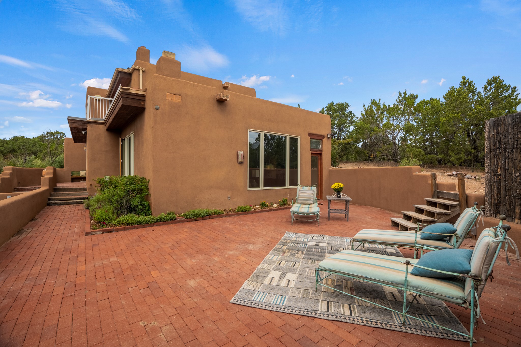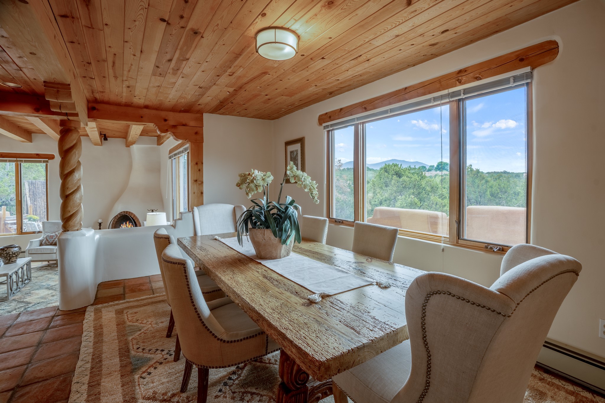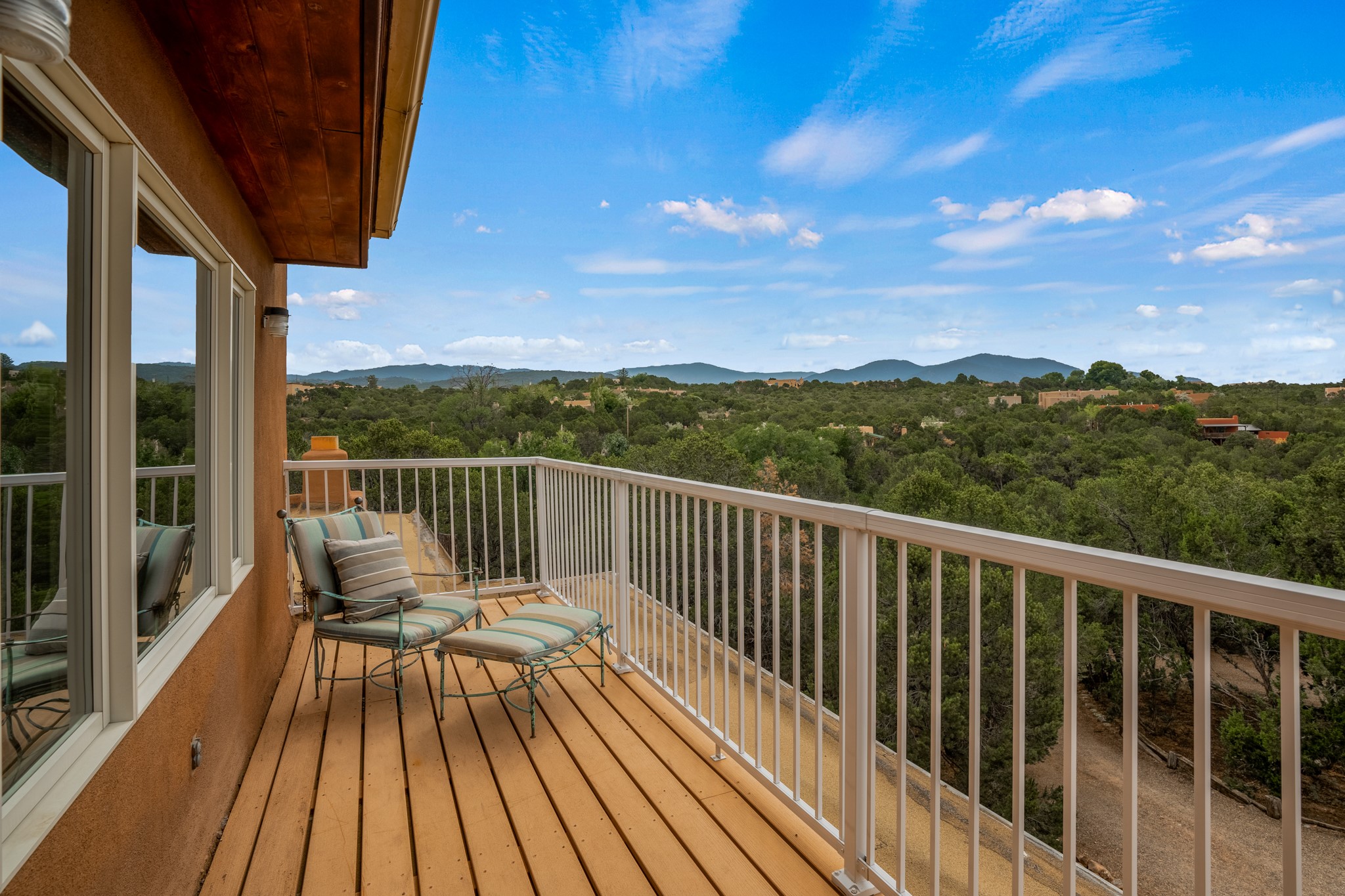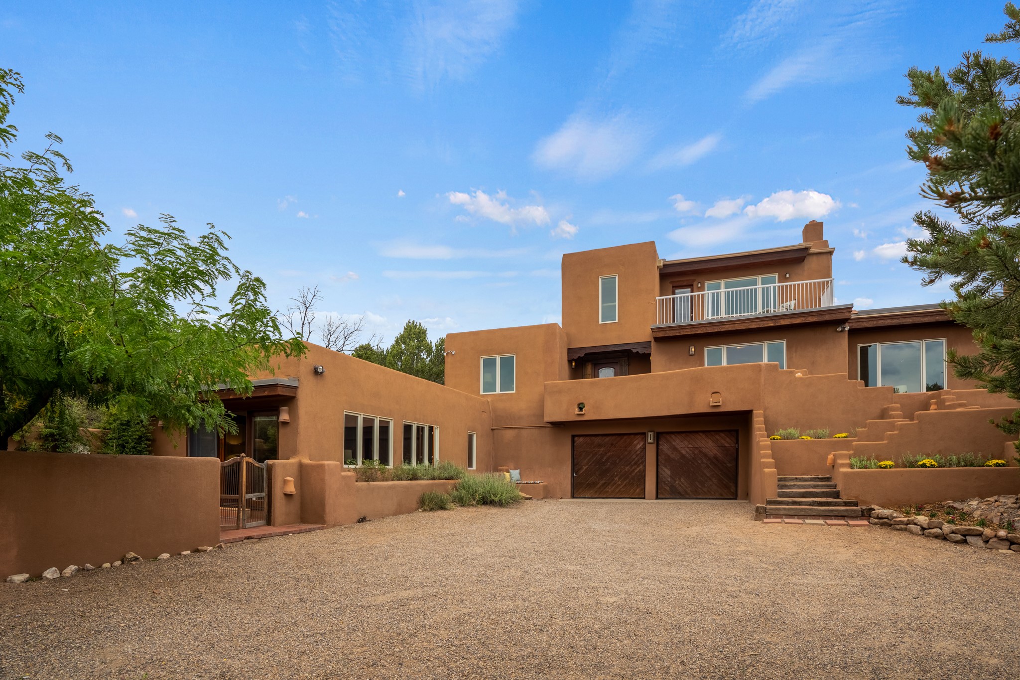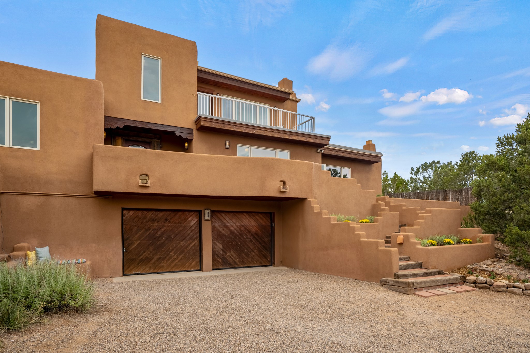 Tucked away in Santa Fe's tranquil North East hills, this property encapsulates Southwest living. The home features 3 beds and 2 baths, theupstairs primary suite offers a private balcony with excellent foothill and mountain views, complemented by beamed ceilings and a cozy kiva fireplace. Saltillo tile floors, beamed ceilings, and a spacious living area with a large Kiva fireplace.The kitchen is practical with excellent features such as the large Viking range, a wood bar counter withseating and latilla accents. The adjacent dining room is an excellent entertaining space with great views.The attached casita is complete with its own private entry courtyard, a 3/4 bathroom, kitchenette/bar area, and a kiva fireplace. Other features include a 2-car garage, mud/utility room, newer boiler and a recently painted interior.Spanning 1+ acres amid the pion and juniper trees. This property offers an authentic Santa Fe experience, combining comfort with the allure of the Southwest landscape. Seize the chance to shape this haven into your Santa Fe dream.