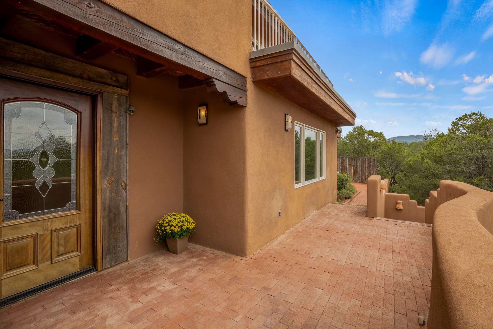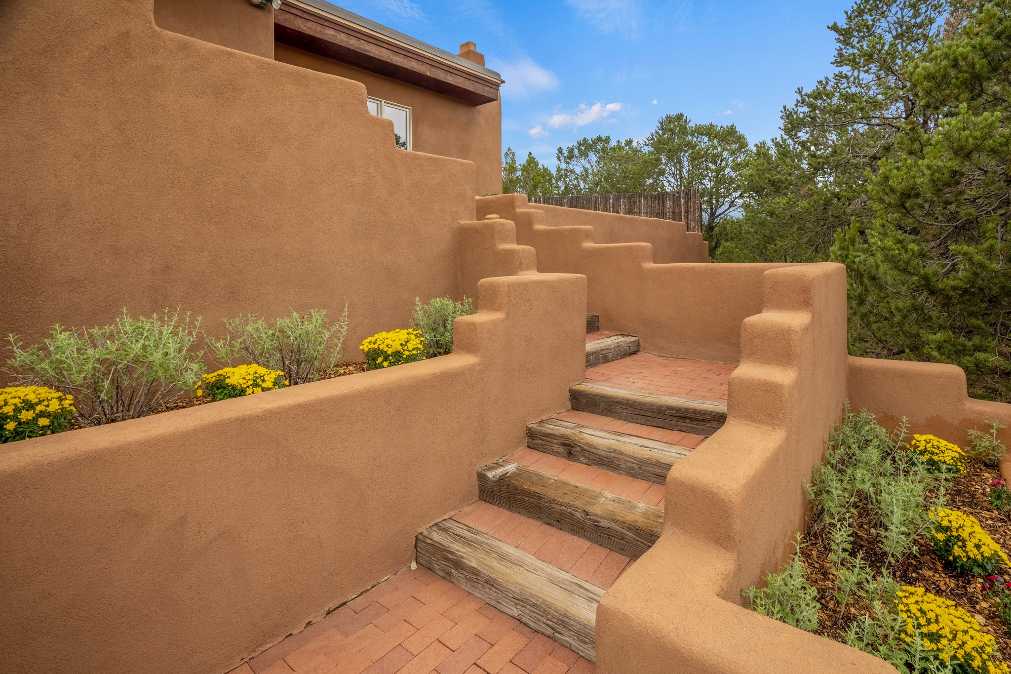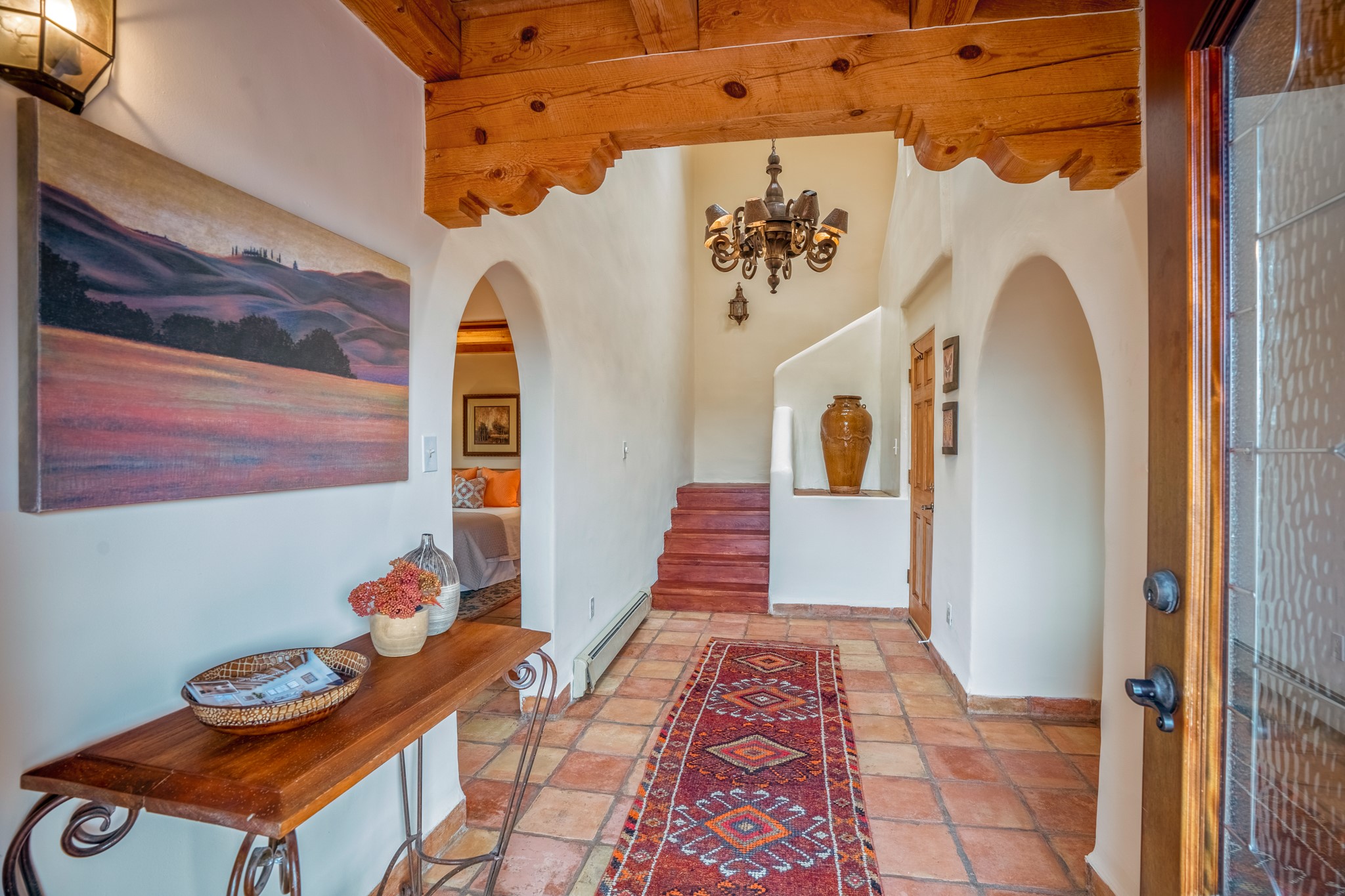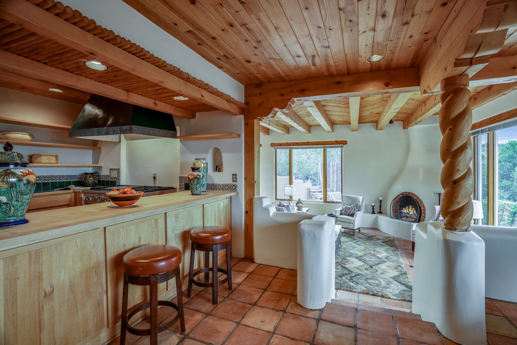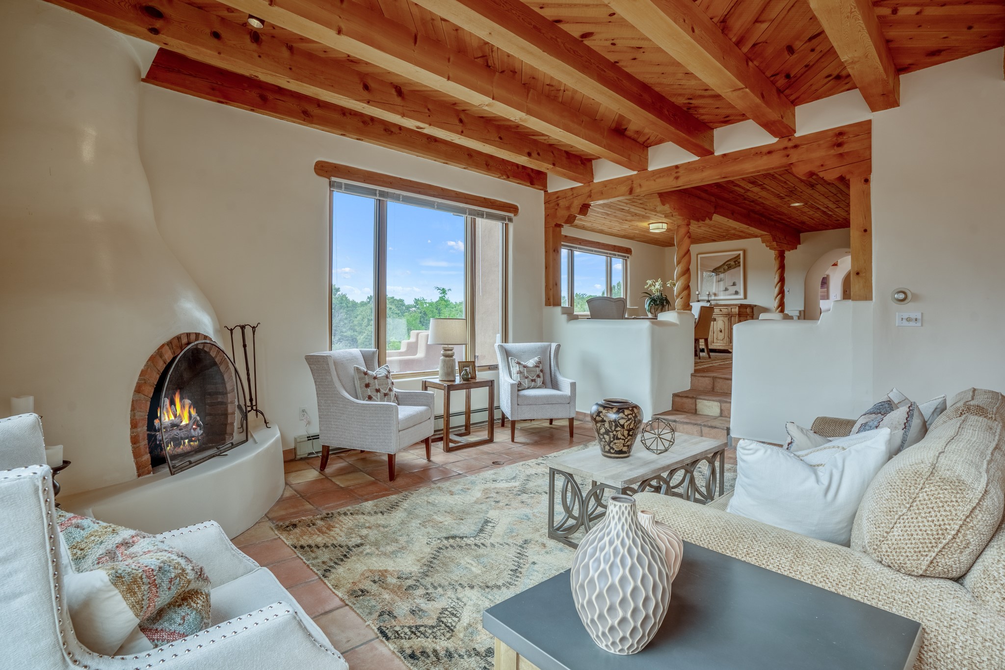 Tucked away in Santa Fe's tranquil North East hills, this property encapsulates Southwest living. The home features 3 beds and 2 baths, theupstairs primary suite offers a private balcony with excellent foothill and mountain views, complemented by beamed ceilings and a cozy kiva fireplace. Saltillo tile floors, beamed ceilings, and a spacious living area with a large Kiva fireplace.The kitchen is practical with excellent features such as the large Viking range, a wood bar counter withseating and latilla accents. The adjacent dining room is an excellent entertaining space with great views.The attached casita is complete with its own private entry courtyard, a 3/4 bathroom, kitchenette/bar area, and a kiva fireplace. Other features include a 2-car garage, mud/utility room, newer boiler and a recently painted interior.Spanning 1+ acres amid the pion and juniper trees. This property offers an authentic Santa Fe experience, combining comfort with the allure of the Southwest landscape. Seize the chance to shape this haven into your Santa Fe dream.