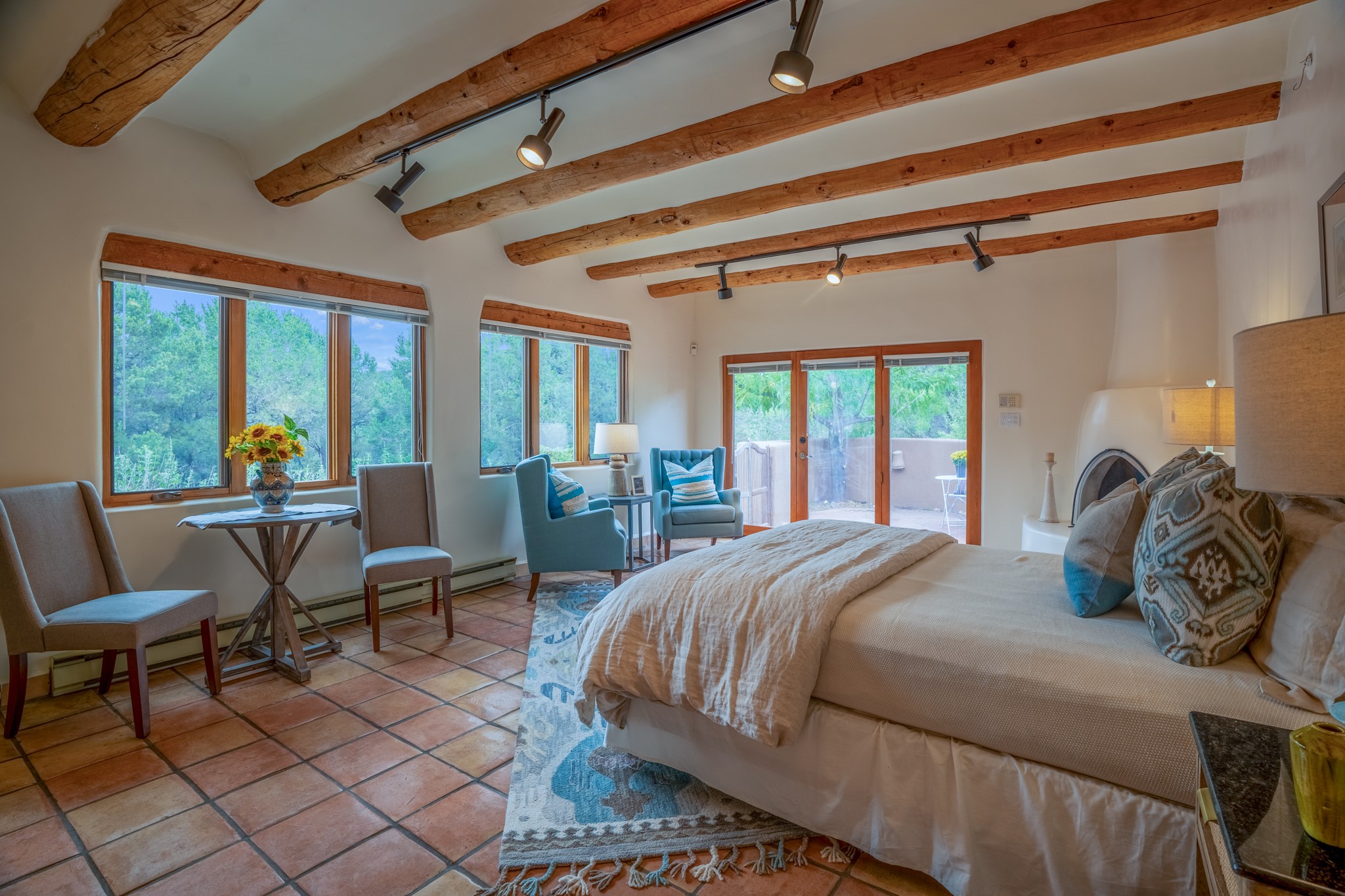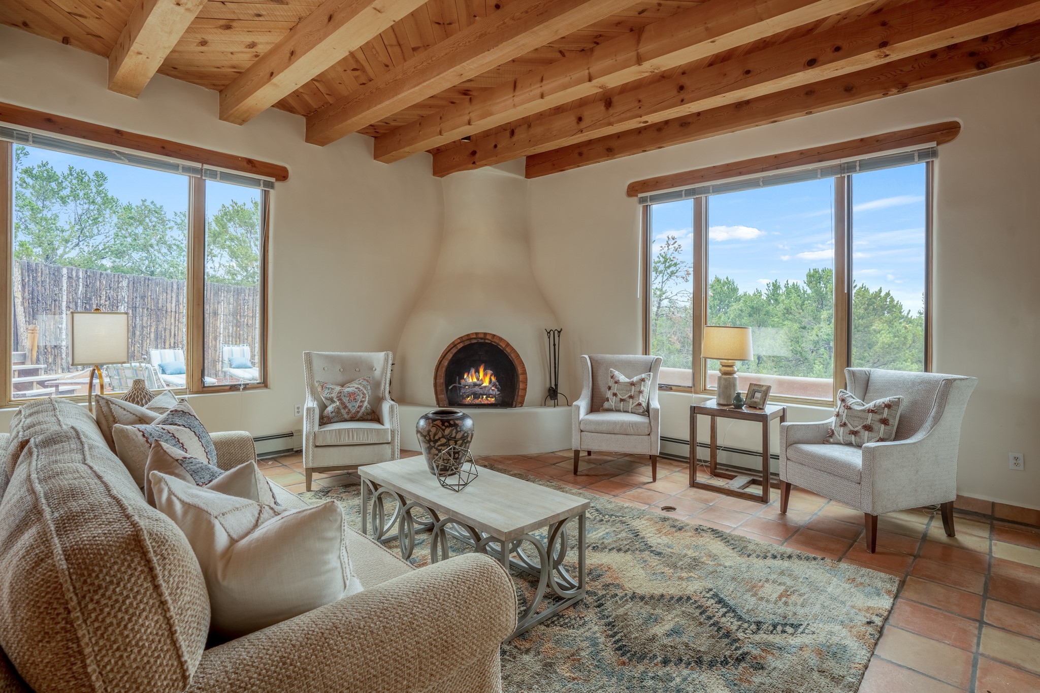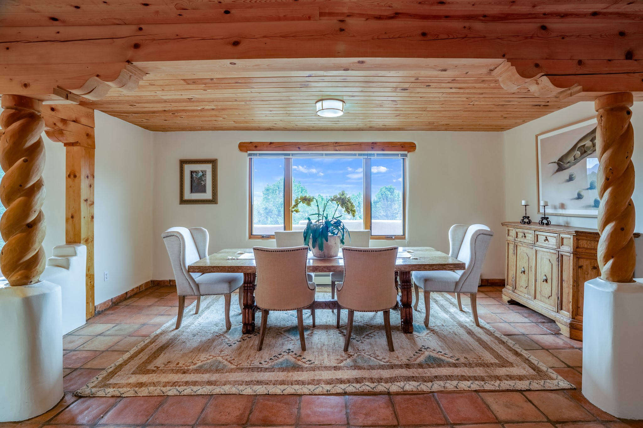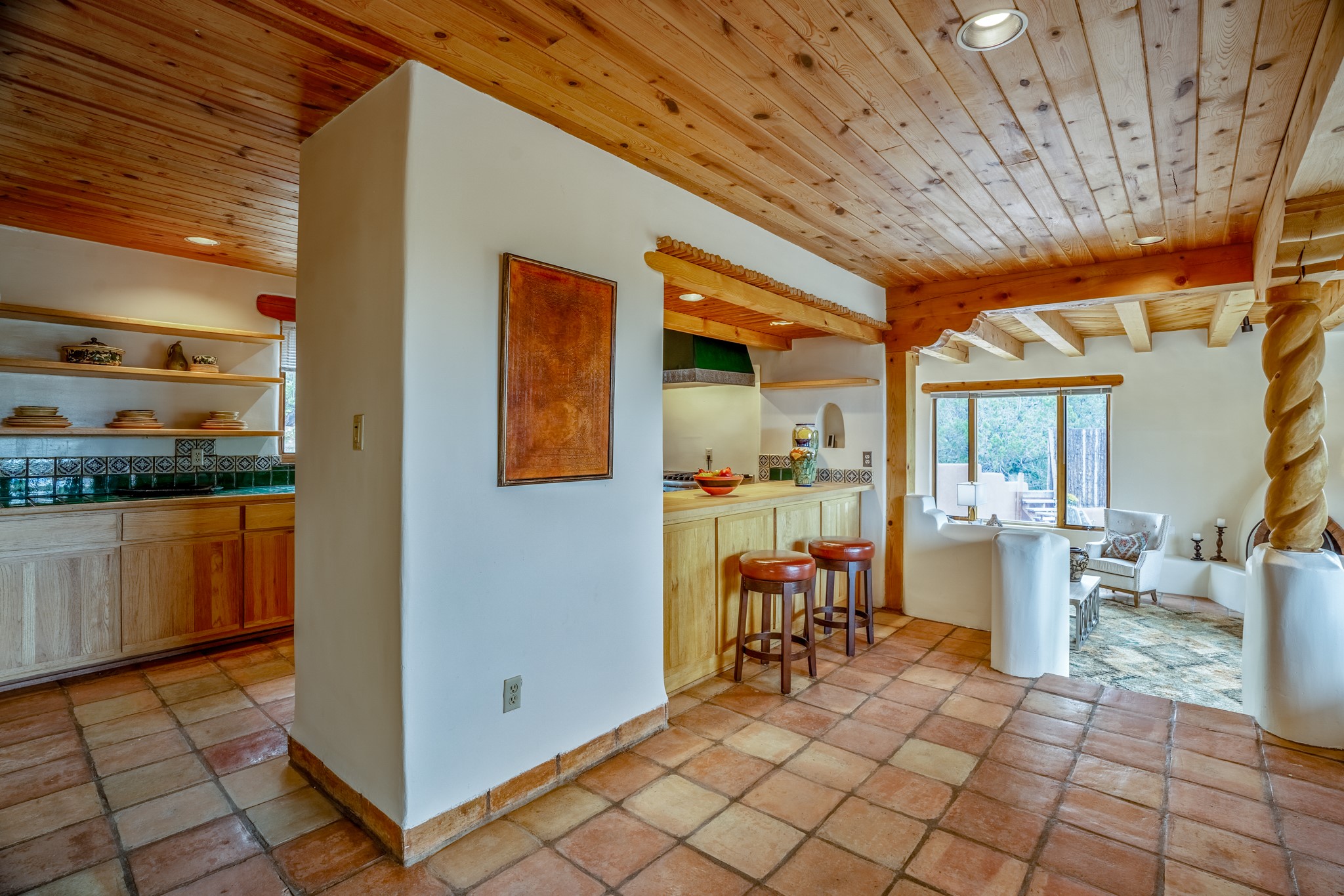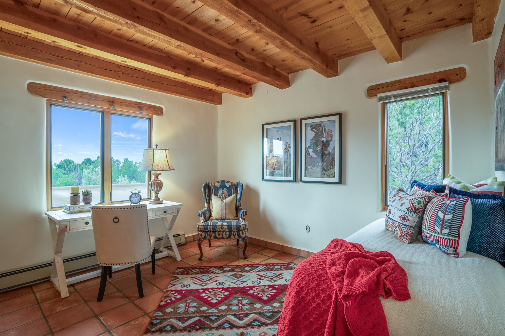 Tucked away in Santa Fe's tranquil North East hills, this property encapsulates Southwest living. The home features 3 beds and 2 baths, theupstairs primary suite offers a private balcony with excellent foothill and mountain views, complemented by beamed ceilings and a cozy kiva fireplace. Saltillo tile floors, beamed ceilings, and a spacious living area with a large Kiva fireplace.The kitchen is practical with excellent features such as the large Viking range, a wood bar counter withseating and latilla accents. The adjacent dining room is an excellent entertaining space with great views.The attached casita is complete with its own private entry courtyard, a 3/4 bathroom, kitchenette/bar area, and a kiva fireplace. Other features include a 2-car garage, mud/utility room, newer boiler and a recently painted interior.Spanning 1+ acres amid the pion and juniper trees. This property offers an authentic Santa Fe experience, combining comfort with the allure of the Southwest landscape. Seize the chance to shape this haven into your Santa Fe dream.