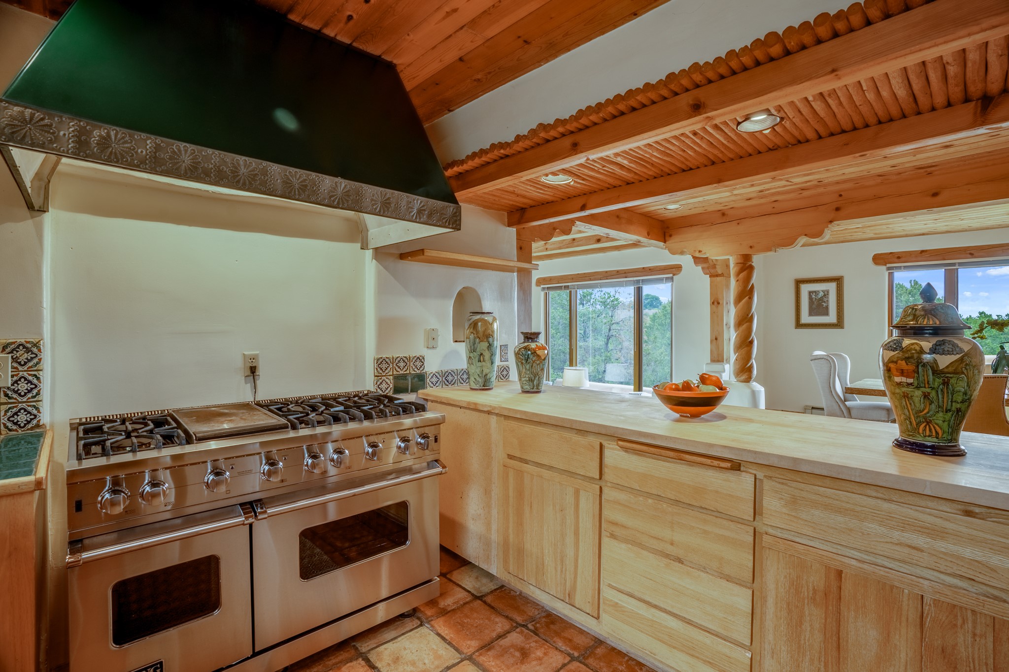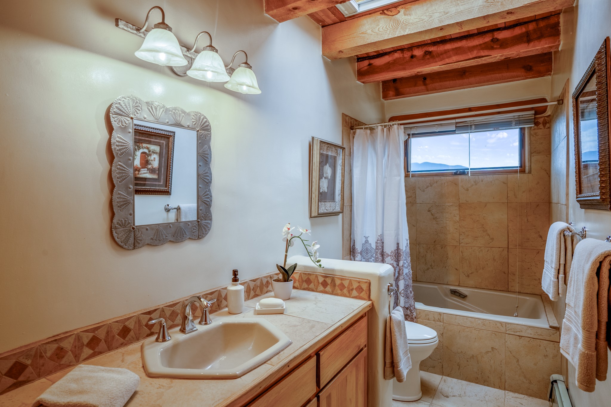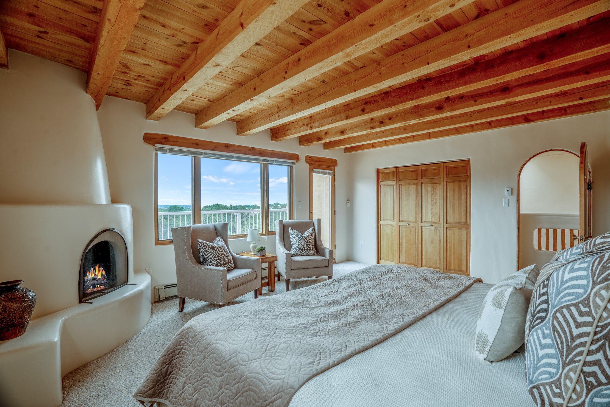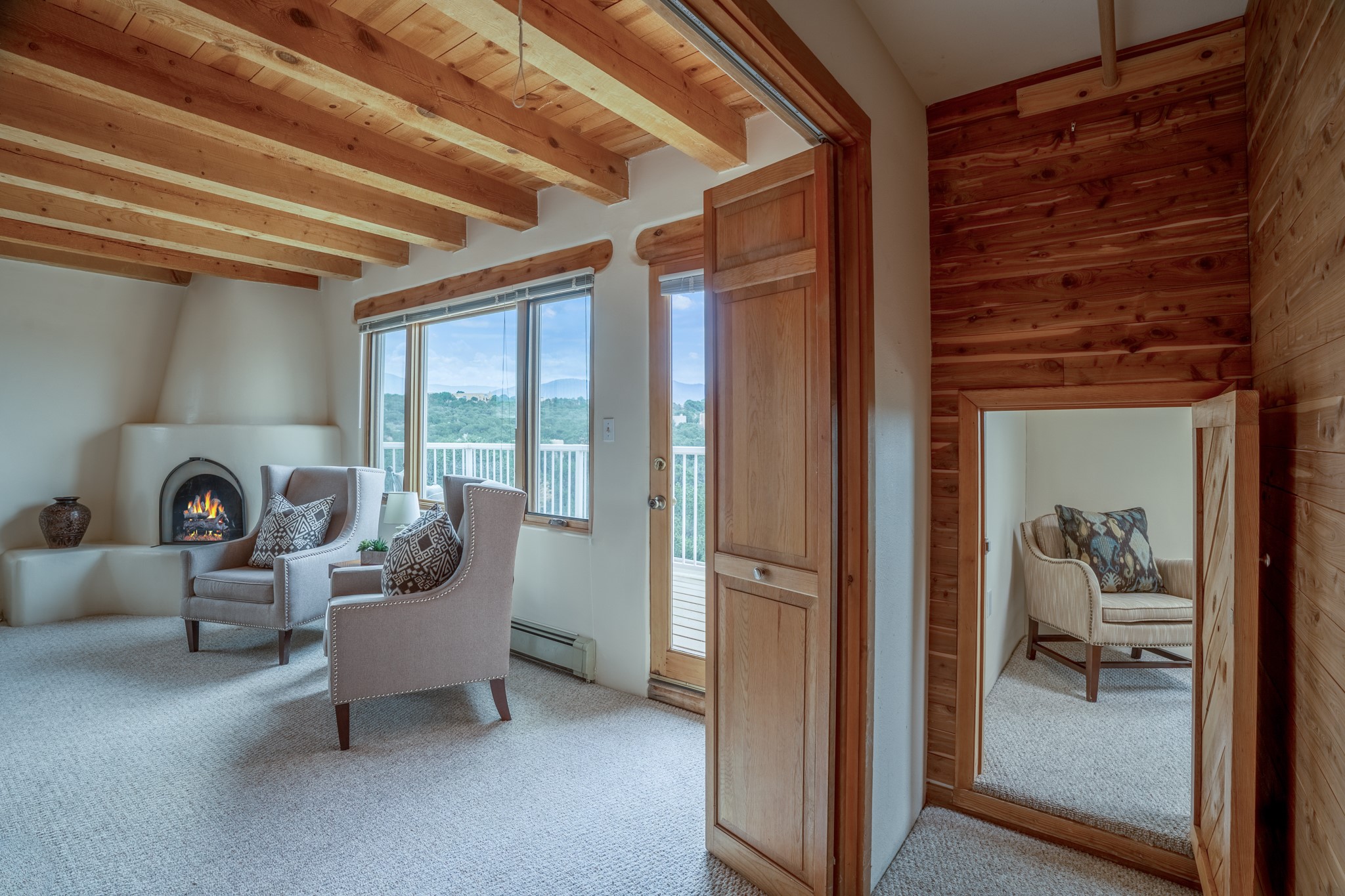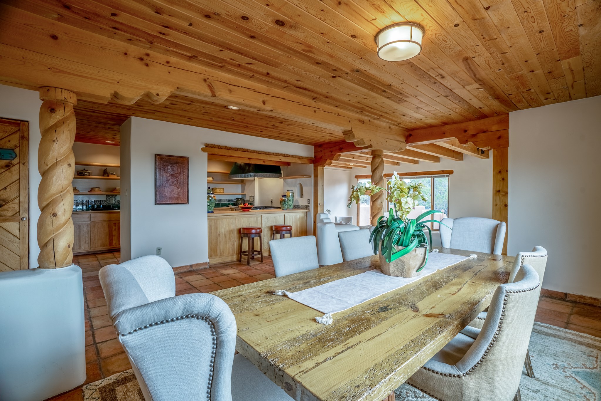 Tucked away in Santa Fe's tranquil North East hills, this property encapsulates Southwest living. The home features 3 beds and 2 baths, theupstairs primary suite offers a private balcony with excellent foothill and mountain views, complemented by beamed ceilings and a cozy kiva fireplace. Saltillo tile floors, beamed ceilings, and a spacious living area with a large Kiva fireplace.The kitchen is practical with excellent features such as the large Viking range, a wood bar counter withseating and latilla accents. The adjacent dining room is an excellent entertaining space with great views.The attached casita is complete with its own private entry courtyard, a 3/4 bathroom, kitchenette/bar area, and a kiva fireplace. Other features include a 2-car garage, mud/utility room, newer boiler and a recently painted interior.Spanning 1+ acres amid the pion and juniper trees. This property offers an authentic Santa Fe experience, combining comfort with the allure of the Southwest landscape. Seize the chance to shape this haven into your Santa Fe dream.