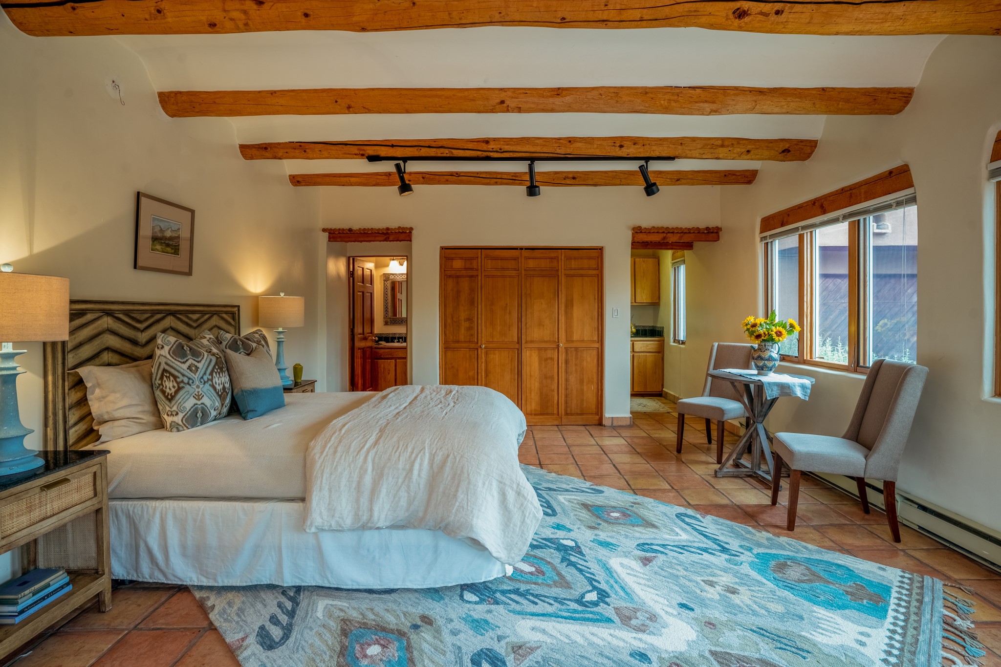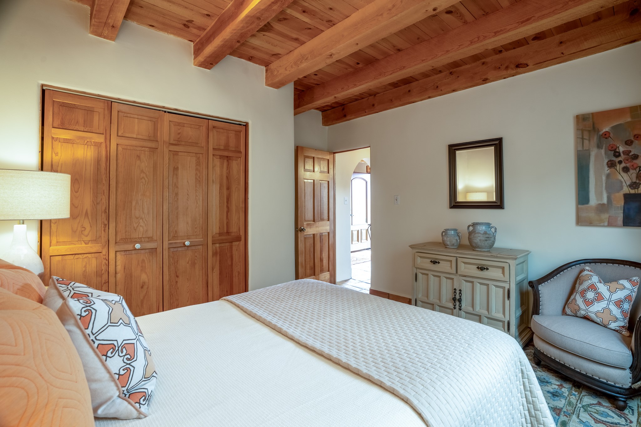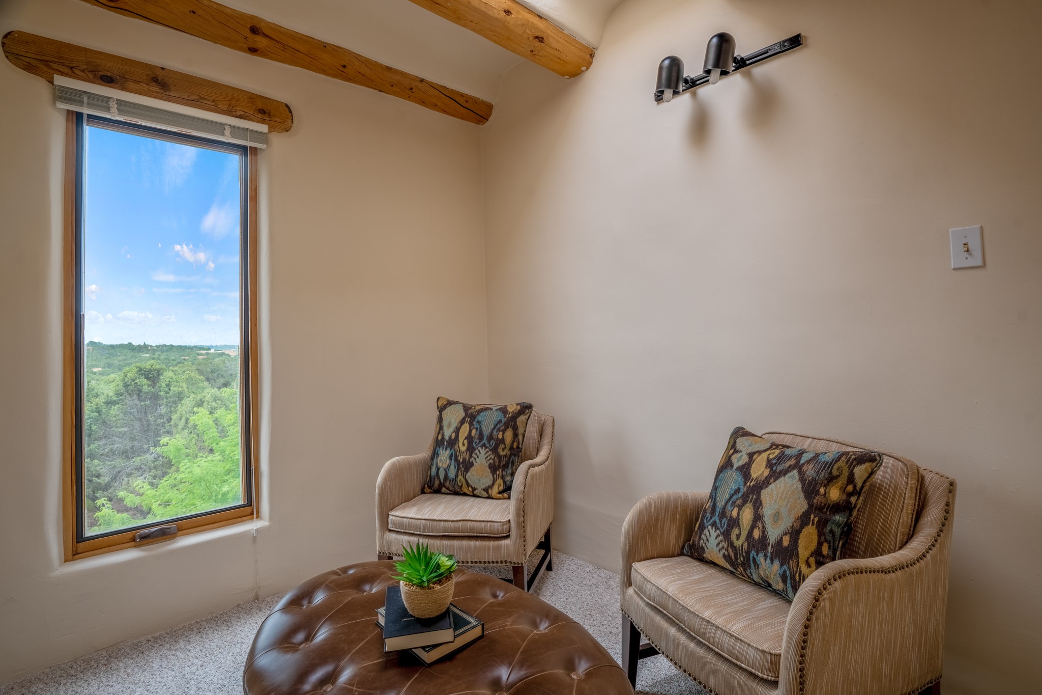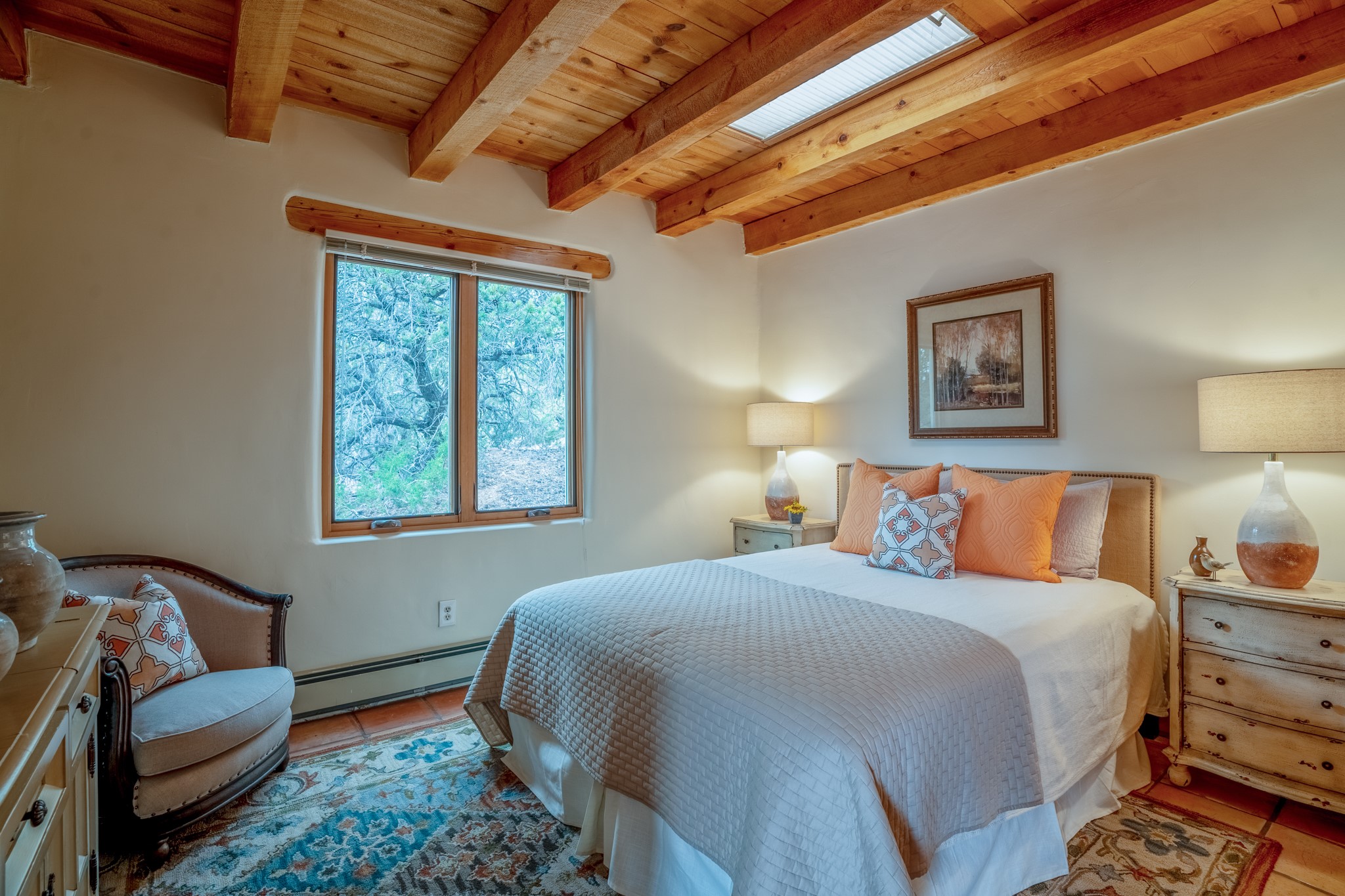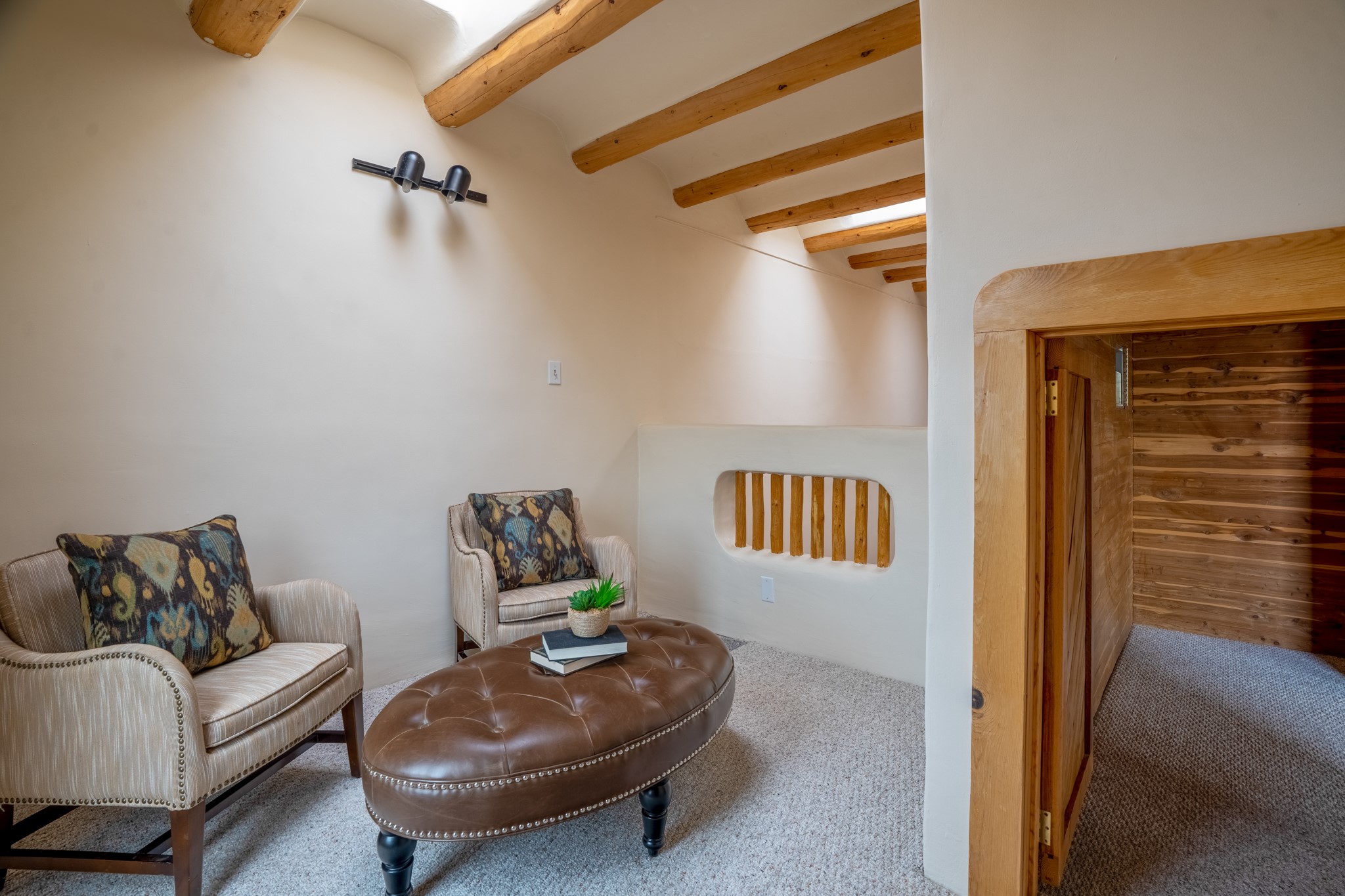 Tucked away in Santa Fe's tranquil North East hills, this property encapsulates Southwest living. The home features 3 beds and 2 baths, theupstairs primary suite offers a private balcony with excellent foothill and mountain views, complemented by beamed ceilings and a cozy kiva fireplace. Saltillo tile floors, beamed ceilings, and a spacious living area with a large Kiva fireplace.The kitchen is practical with excellent features such as the large Viking range, a wood bar counter withseating and latilla accents. The adjacent dining room is an excellent entertaining space with great views.The attached casita is complete with its own private entry courtyard, a 3/4 bathroom, kitchenette/bar area, and a kiva fireplace. Other features include a 2-car garage, mud/utility room, newer boiler and a recently painted interior.Spanning 1+ acres amid the pion and juniper trees. This property offers an authentic Santa Fe experience, combining comfort with the allure of the Southwest landscape. Seize the chance to shape this haven into your Santa Fe dream.