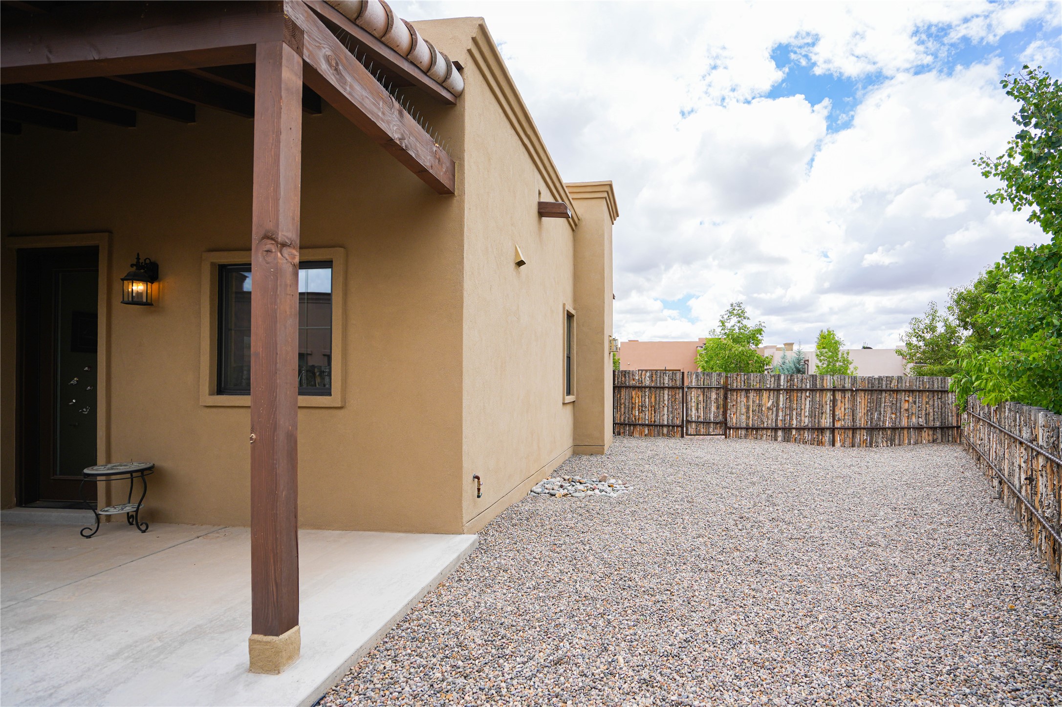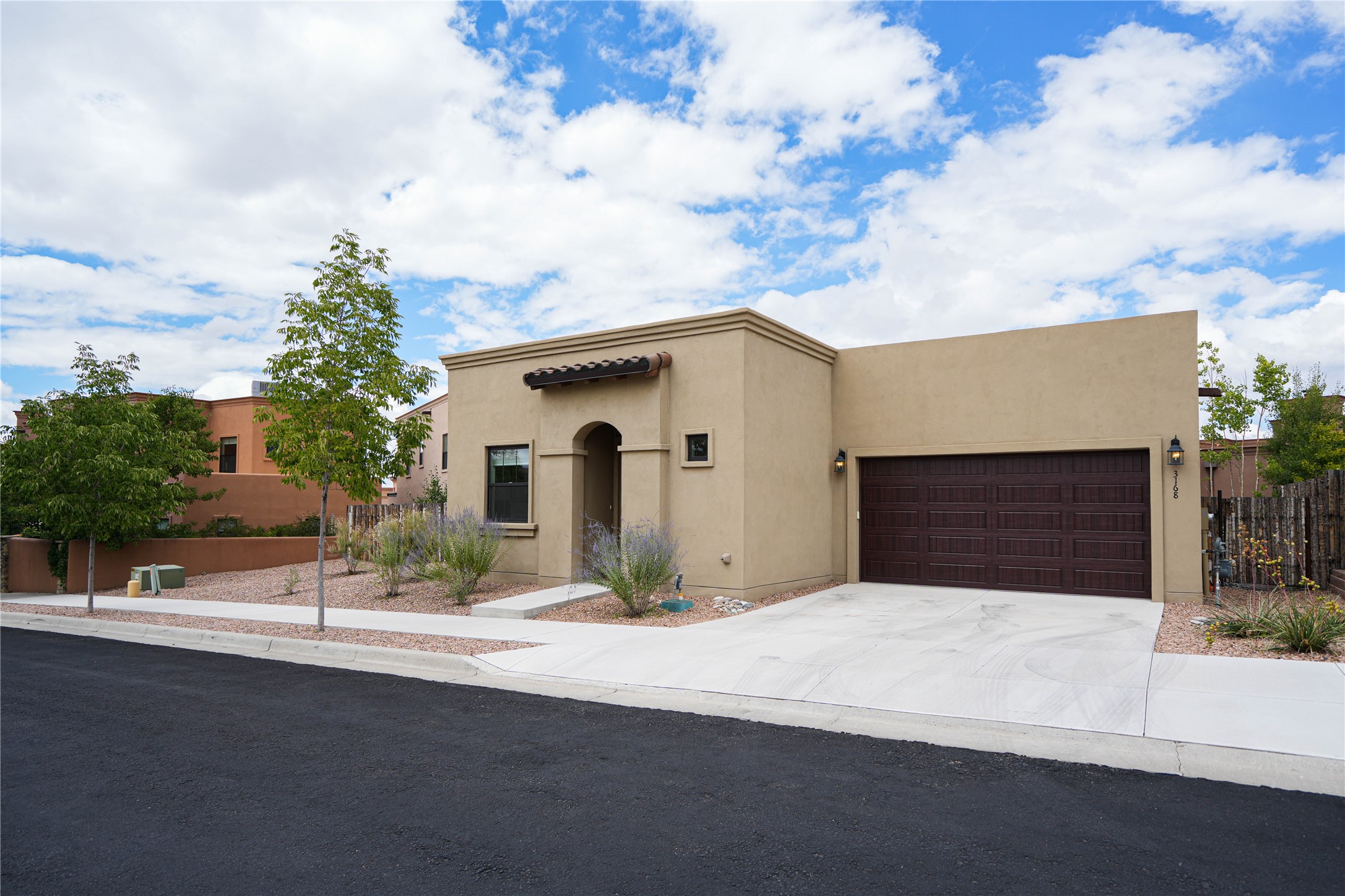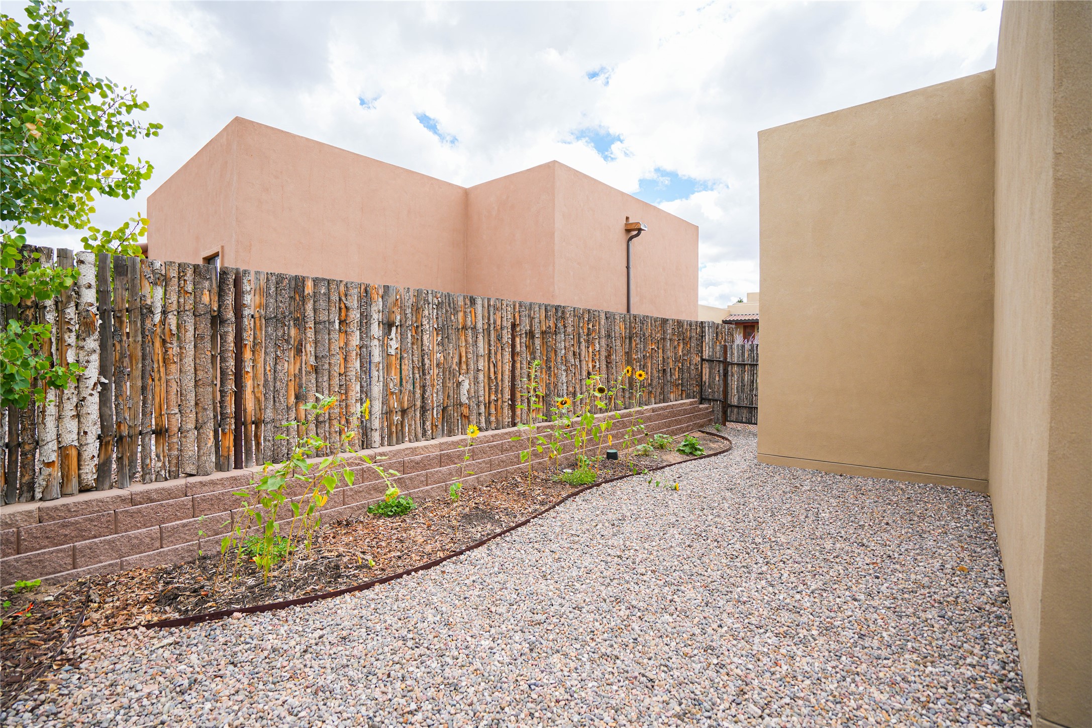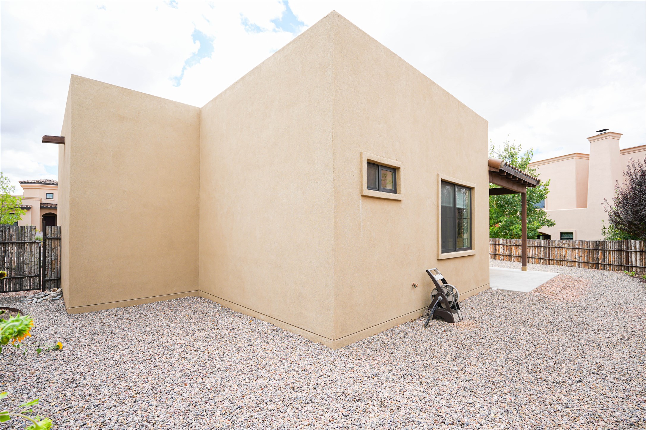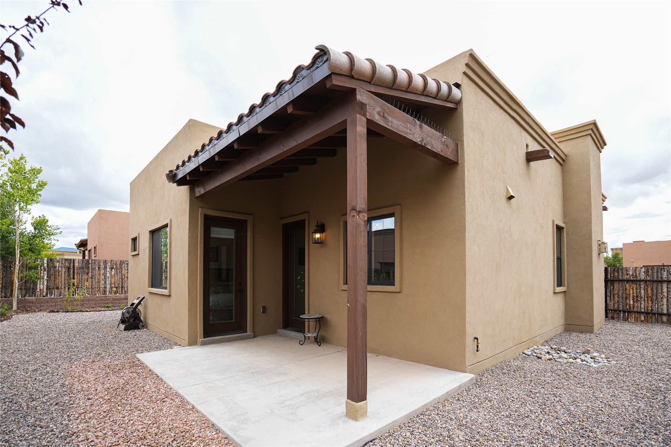 This gated community features timeless, Tuscan Old-world architectural exterior details and beautiful, mature landscaping. Small lots offer easy landscaping and comfortable outdoor living spaces. With plenty of walking trails, sidewalks, and pocket parks, residents have safe and beautiful way to enjoy the outdoors. Villas di Toscana is located at Governor Miles Road and Camino Carlos Rey, giving residents easy access to shopping, recreation, and the downtown Plaza. Homeowner Association Management and covenant controlled, with private, quiet streets, this is one of the most sought-after neighborhoods in Santa Fe real estate. Arete Homes of Santa Fe was the awarded Best Design, Best Kitchen and Best Water Efficiency by Hacienda's 2017 Parade of Homes in 2017. This is one of the homes in the Villas de Toscana community. This 2 bed 2 bath 4-year old home includes many upgrades at time of construction. Wonderful high end finishes throughout. The 2nd Bedroom could be used as a Bonus office/den/hobby room adjacent to living room. Tile flooring throughout the entire house. Covered portal off of the Kitchen and primary bedroom for outdoor living enjoyment. Beautiful easy-care landscaping with drip irrigation and a custom entry gate and full fenced yard. Gas forced air and central cooling make this home comfortable and very energy efficient.
