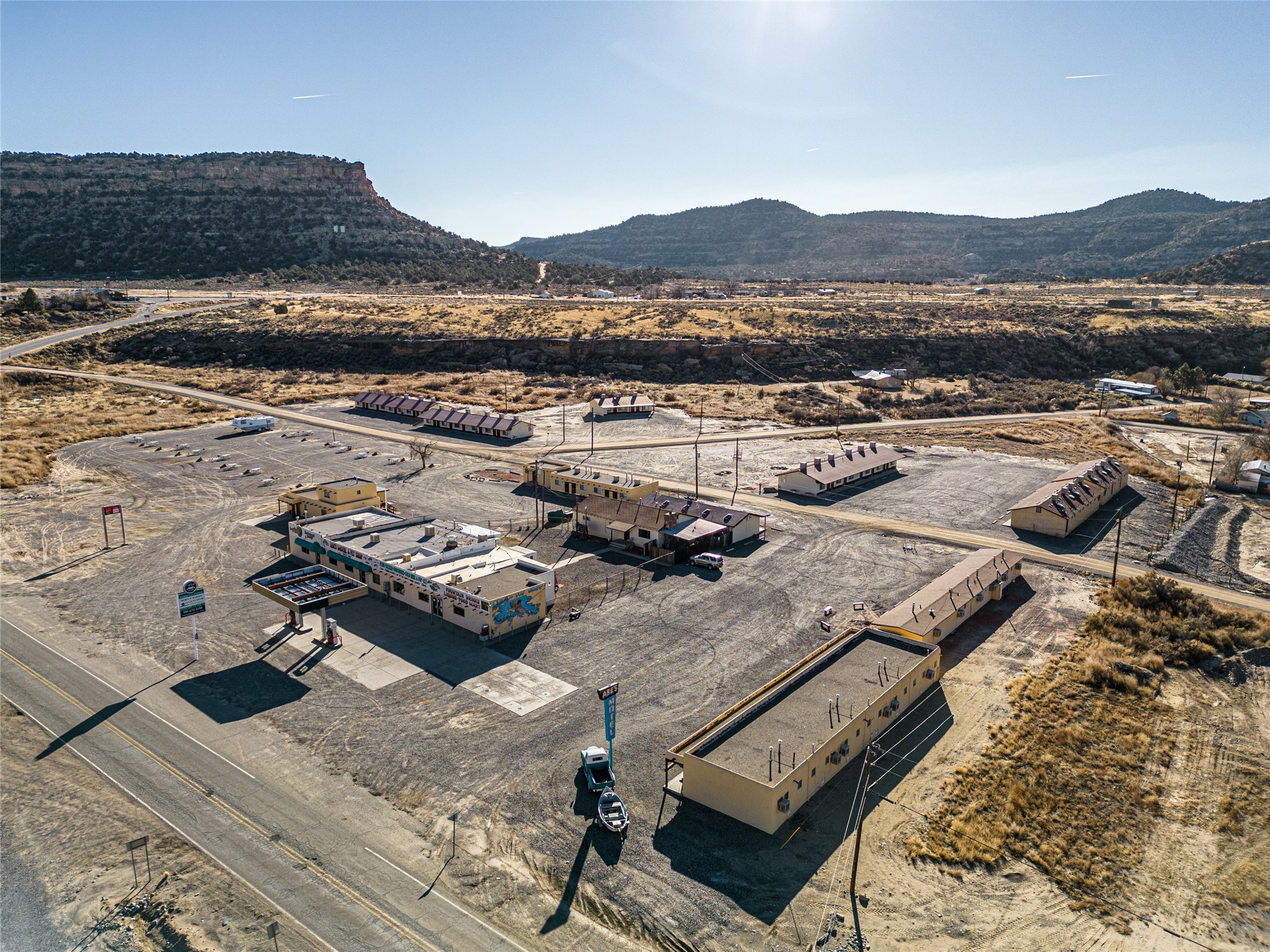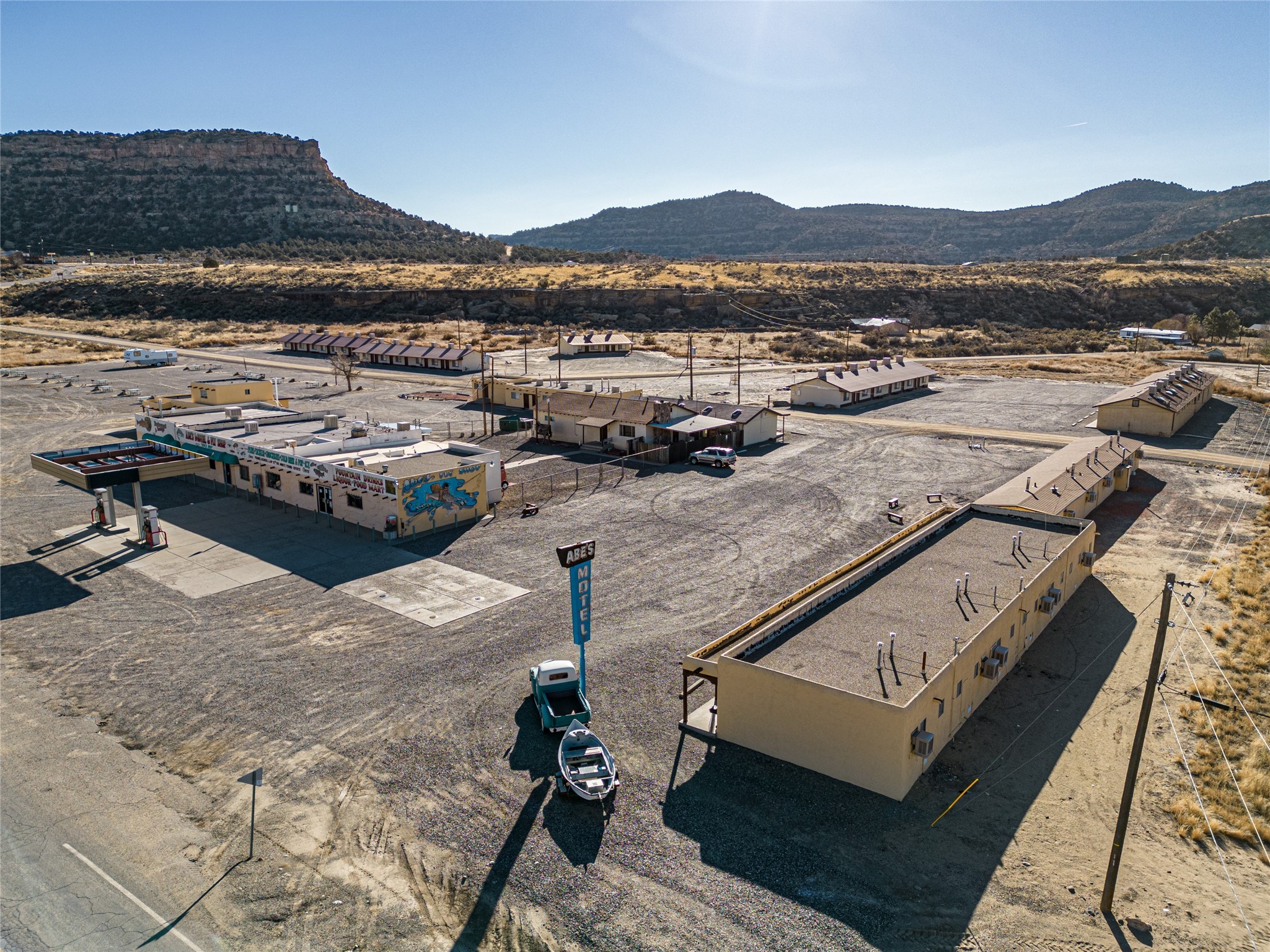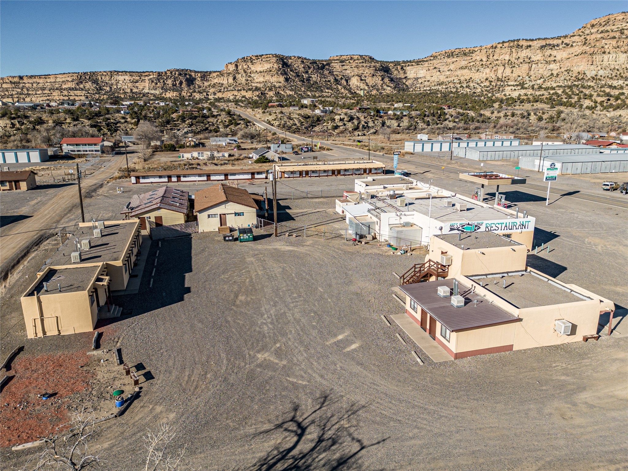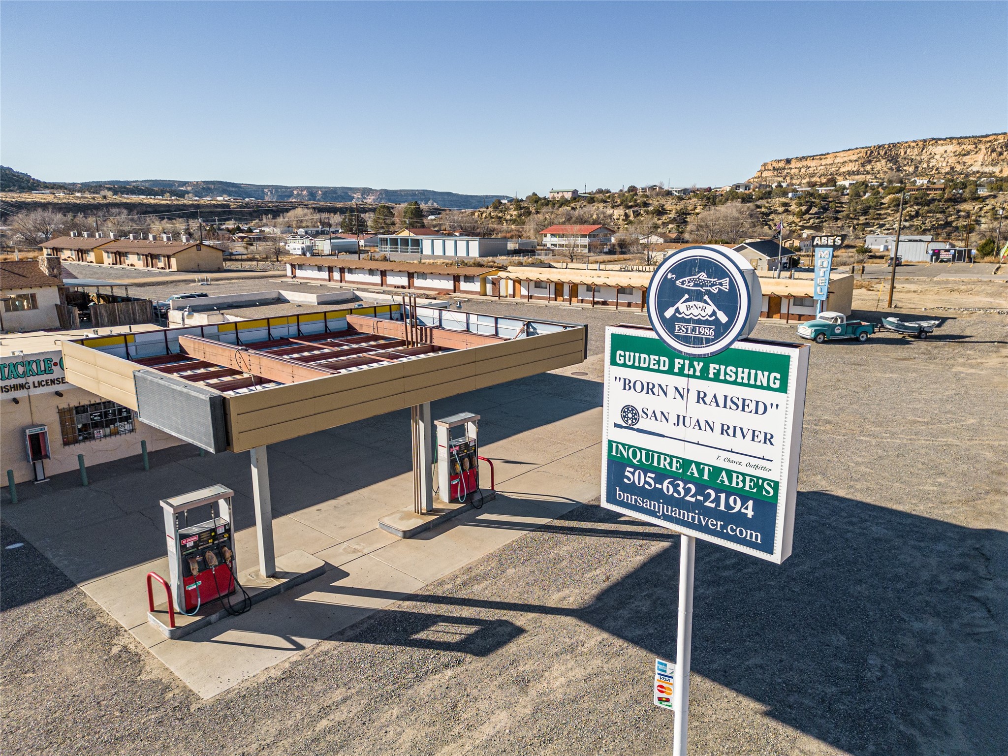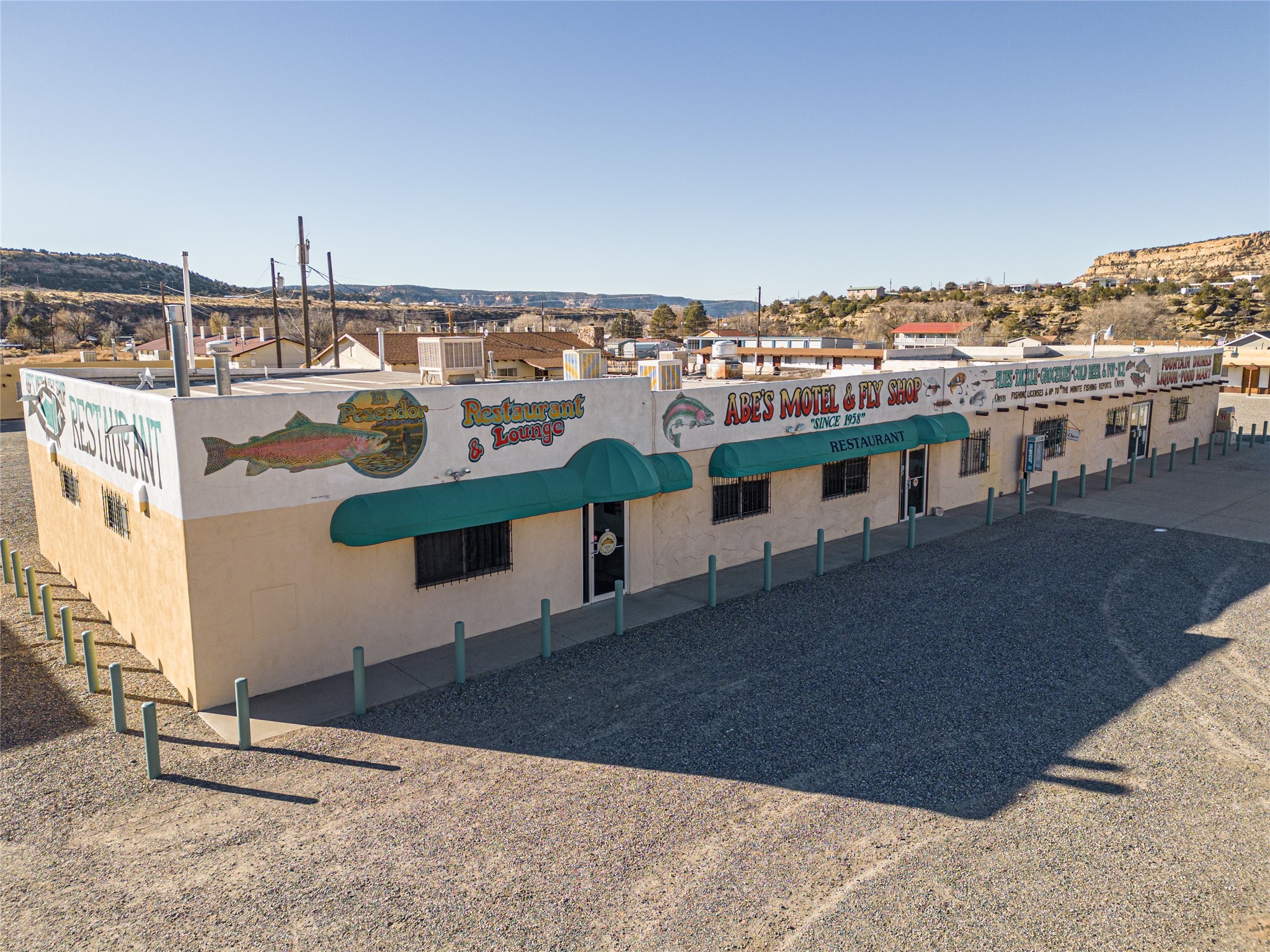 Abe's Motel and Fly Shop has been a staple of the NM fly fishing scene on the trout mecca that is the Quality Waters of the San Juan river since 1958. This successful and iconic family-owned business includes a fully stocked fly shop, 56- room motel, RV park, grocery store, gas station, restaurant and lounge conveniently located just below the Navajo Dam in northern NM. Abe's is located on 8.11 acres in the high desert beauty of San Juan County, NM. Surrounded by pinion-covered high mesas and valleys, the sunrises and sunsets are breathtaking with colors that have to be seen to be believed. Included in the sale is a 3/2 on-site cottage with approximately 1500sqft of living space. Abe's is ready for a new owner to make this place their own dream come true. It is set up and ready for an easy transition into re-opening. This property would be ideal for Airbnb and or VRBO. The location is ideal for all the fishermen who come to this world-renowned area, which is why the business has been successful for more than six decades. The rooms will come as shown including all furnishings, linens, and towels. The restaurant was one of the few in the area, and a popular spot for those traveling through, staying onsite or spending the day fishing. The restaurant was well known for their box lunches, which were a favorite of fishermen who needed something on the go. The lounge is a wonderful gathering spot for after a long day of fishing. It's a place to come together with your friends or meet new ones, and share the stories the day has brought. It is a cozy and comfortable place decorated with pictures and heirlooms of Abe's history. The fly shop has everything an angler would need and want for a trip to the San Juan or the reservoir. It's the place to come with for fishing advice and to make sure you've got the right fly for the season. The shop being one of the only shops around it was a one stop shop for any angler. Abe's is ready for its new owners to carry on the legacy.