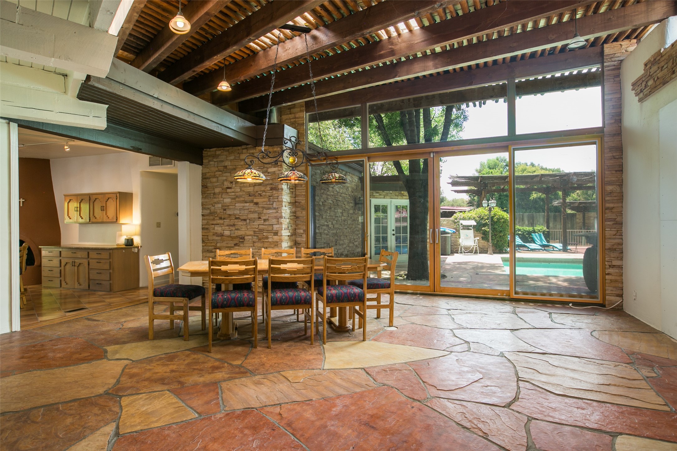 - Interior FeaturesBeamed Ceilings, Wet Bar, No Interior Steps