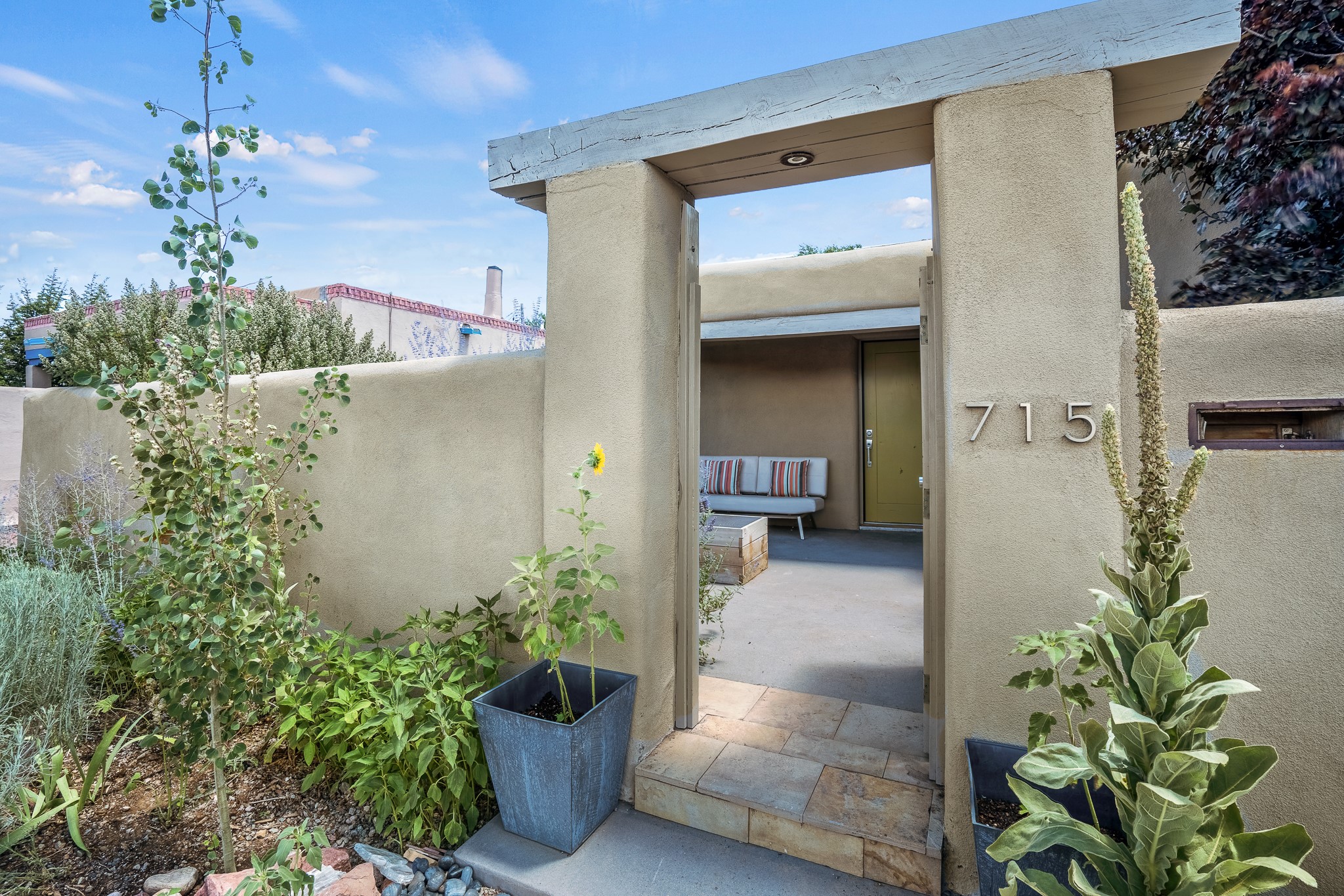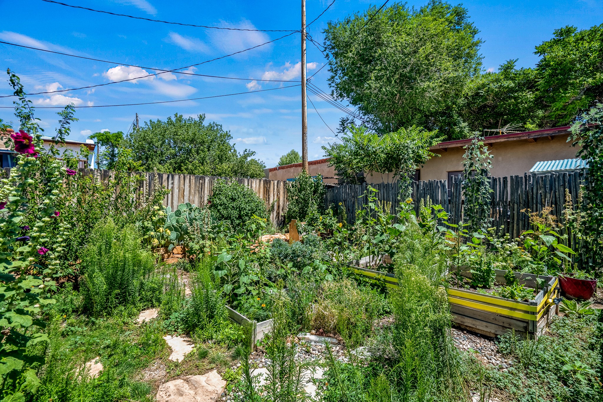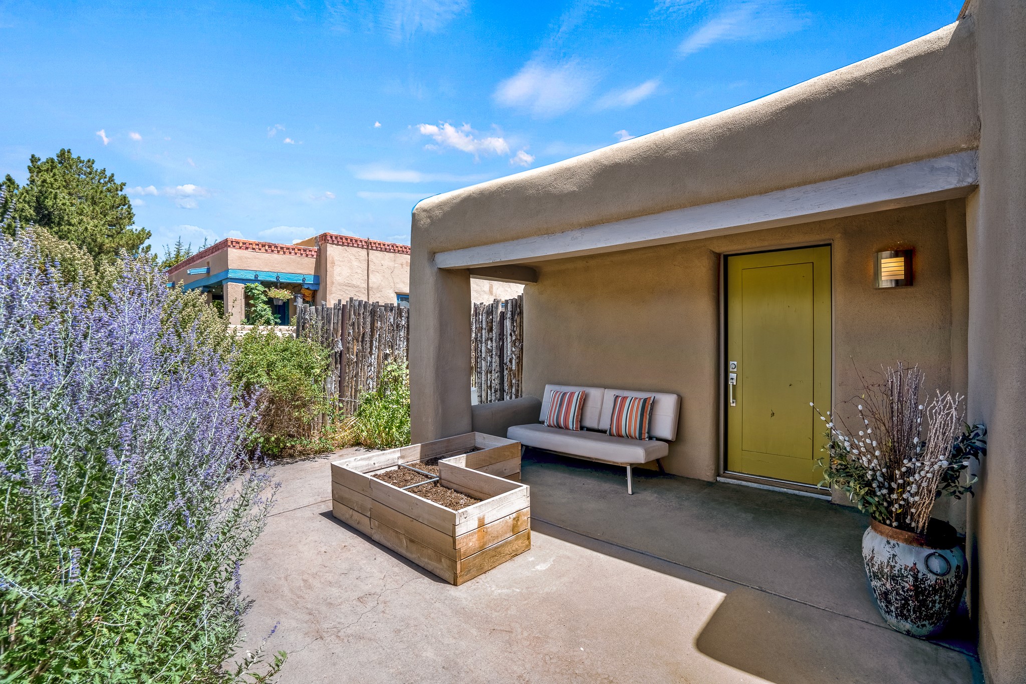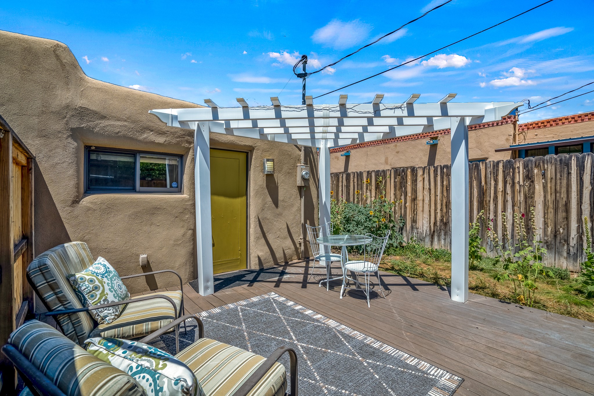 Step into the enchanting private walled courtyard, and the magic unfolds! This adobe casita offers a blend of uniqueness, trendiness, and turnkey convenience, with versatile spaces for living, working, or a live/work setup. The backyard is a gardener's paradise,complemented by a beautiful private outdoor deck, creating even more living area. Situated in the fabulous Railyard location, you'll enjoy a walkable/bikeable lifestyle with easy access to the Farmer's Market, shopping, restaurants, theaters, train, and walking trails. Recent upgrades include the roof and mini-splits for heating and cooling, enhancing the overall comfort of this wonderful home.