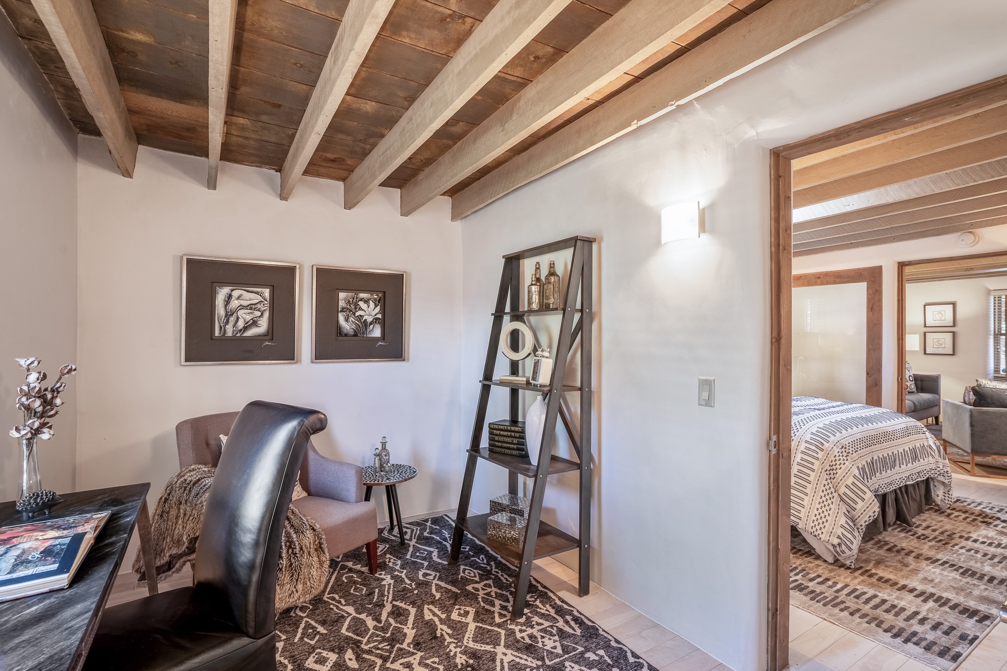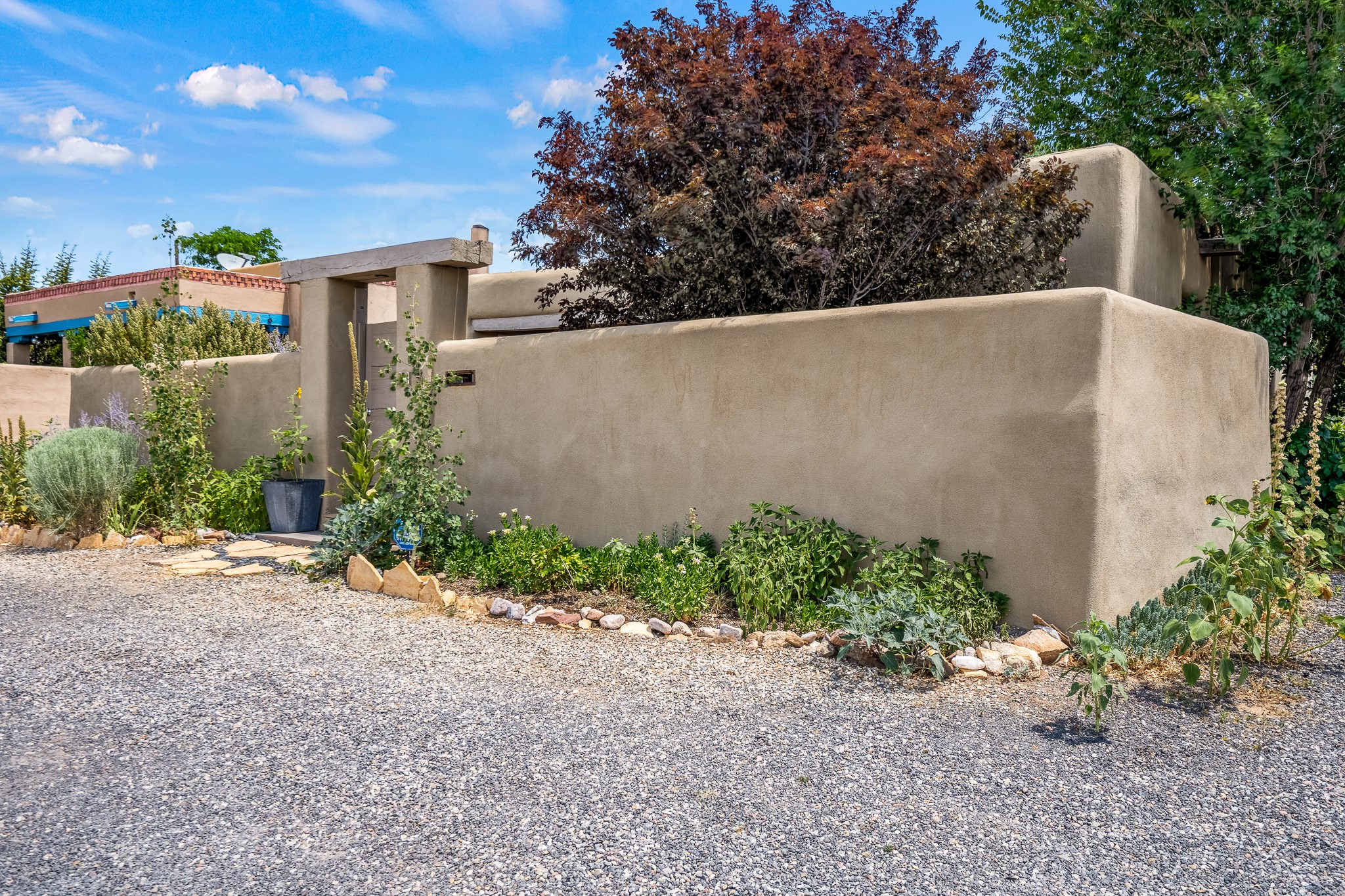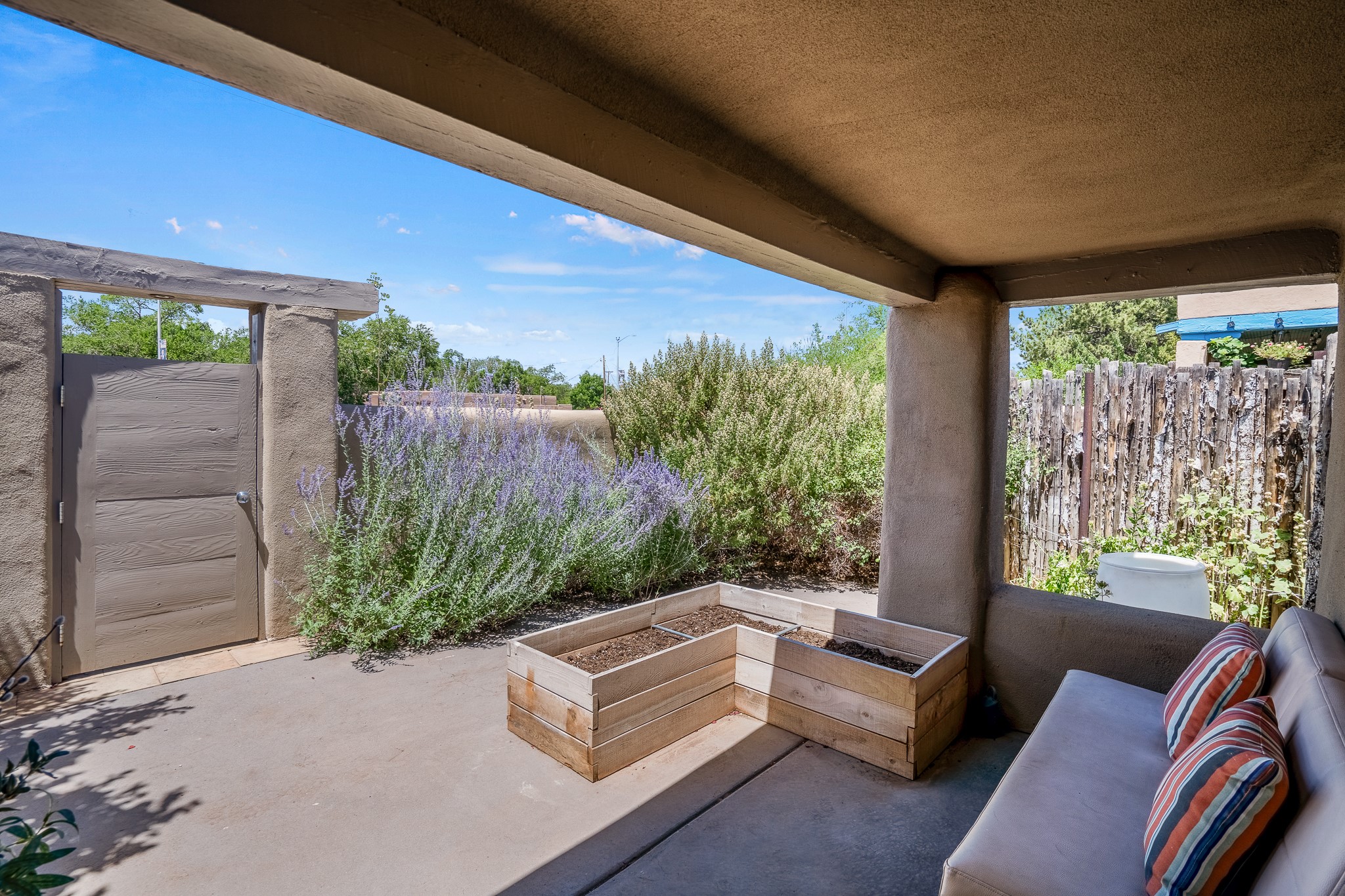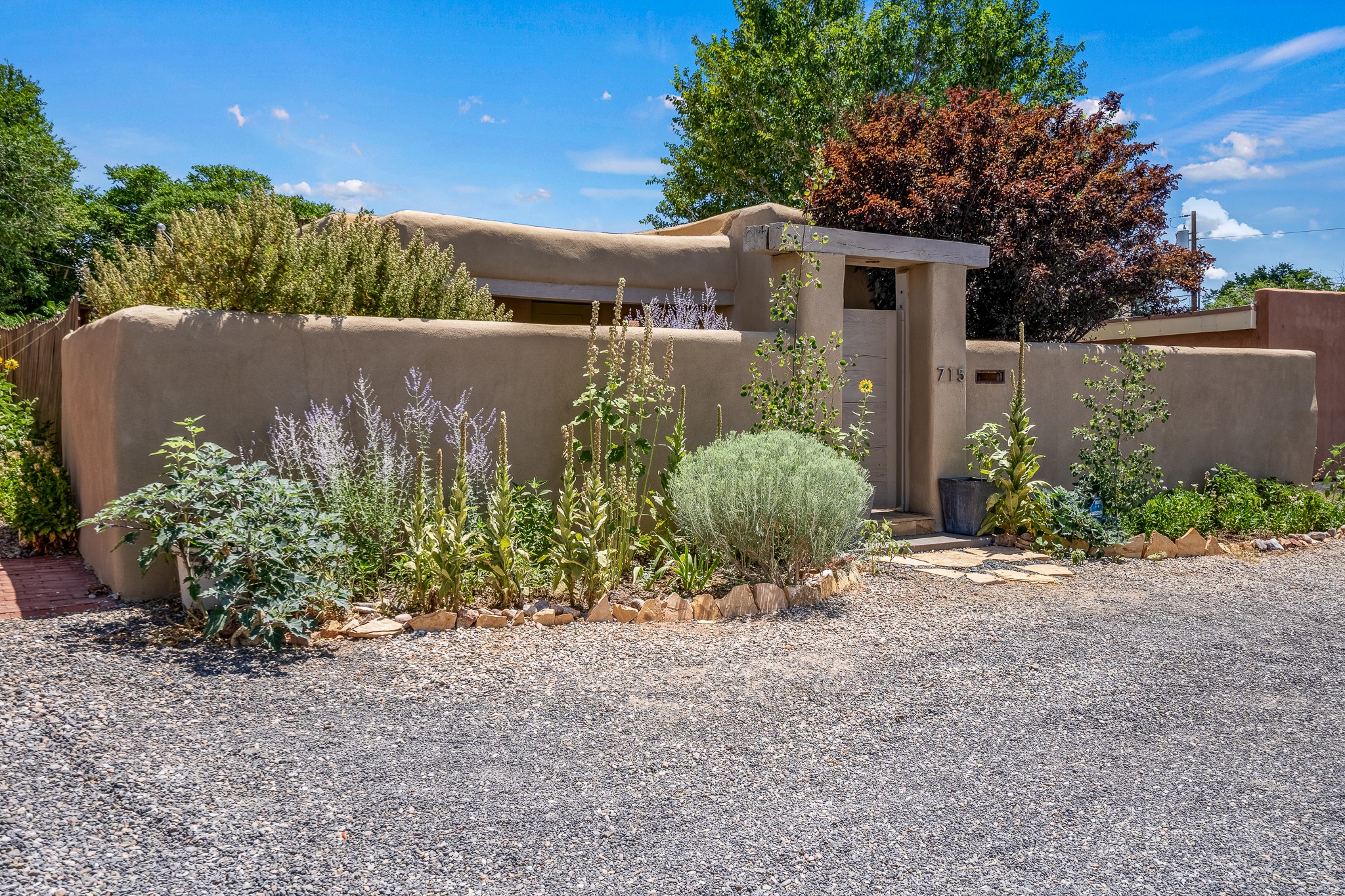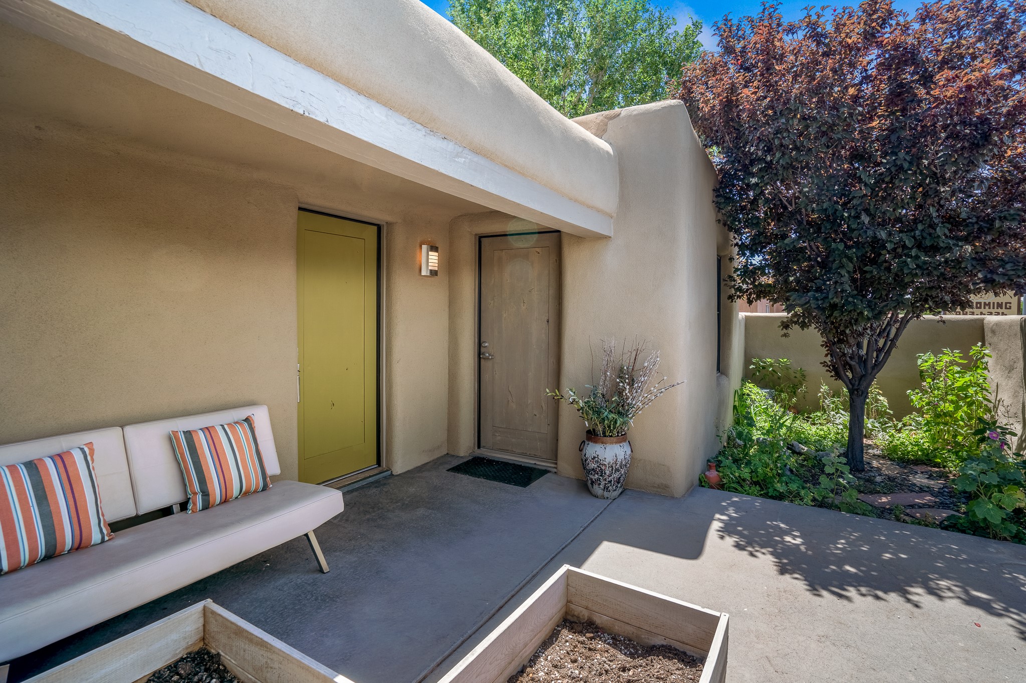 Step into the enchanting private walled courtyard, and the magic unfolds! This adobe casita offers a blend of uniqueness, trendiness, and turnkey convenience, with versatile spaces for living, working, or a live/work setup. The backyard is a gardener's paradise,complemented by a beautiful private outdoor deck, creating even more living area. Situated in the fabulous Railyard location, you'll enjoy a walkable/bikeable lifestyle with easy access to the Farmer's Market, shopping, restaurants, theaters, train, and walking trails. Recent upgrades include the roof and mini-splits for heating and cooling, enhancing the overall comfort of this wonderful home.