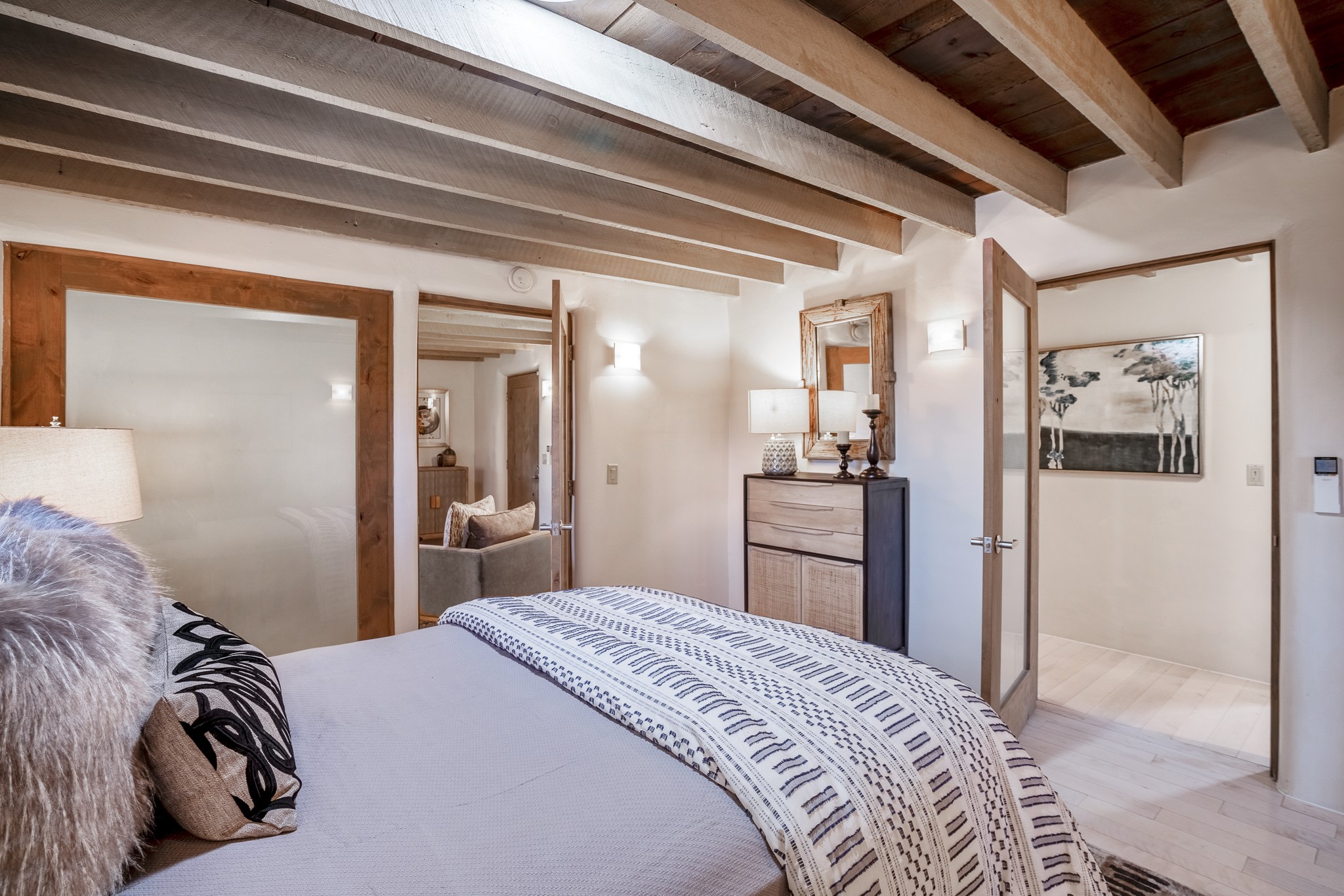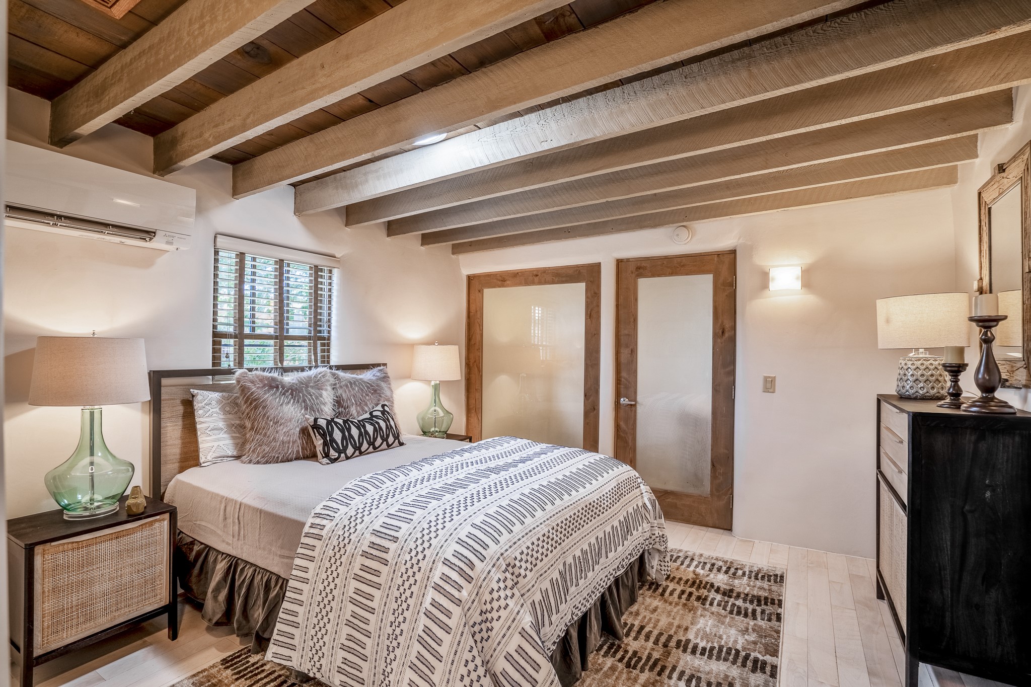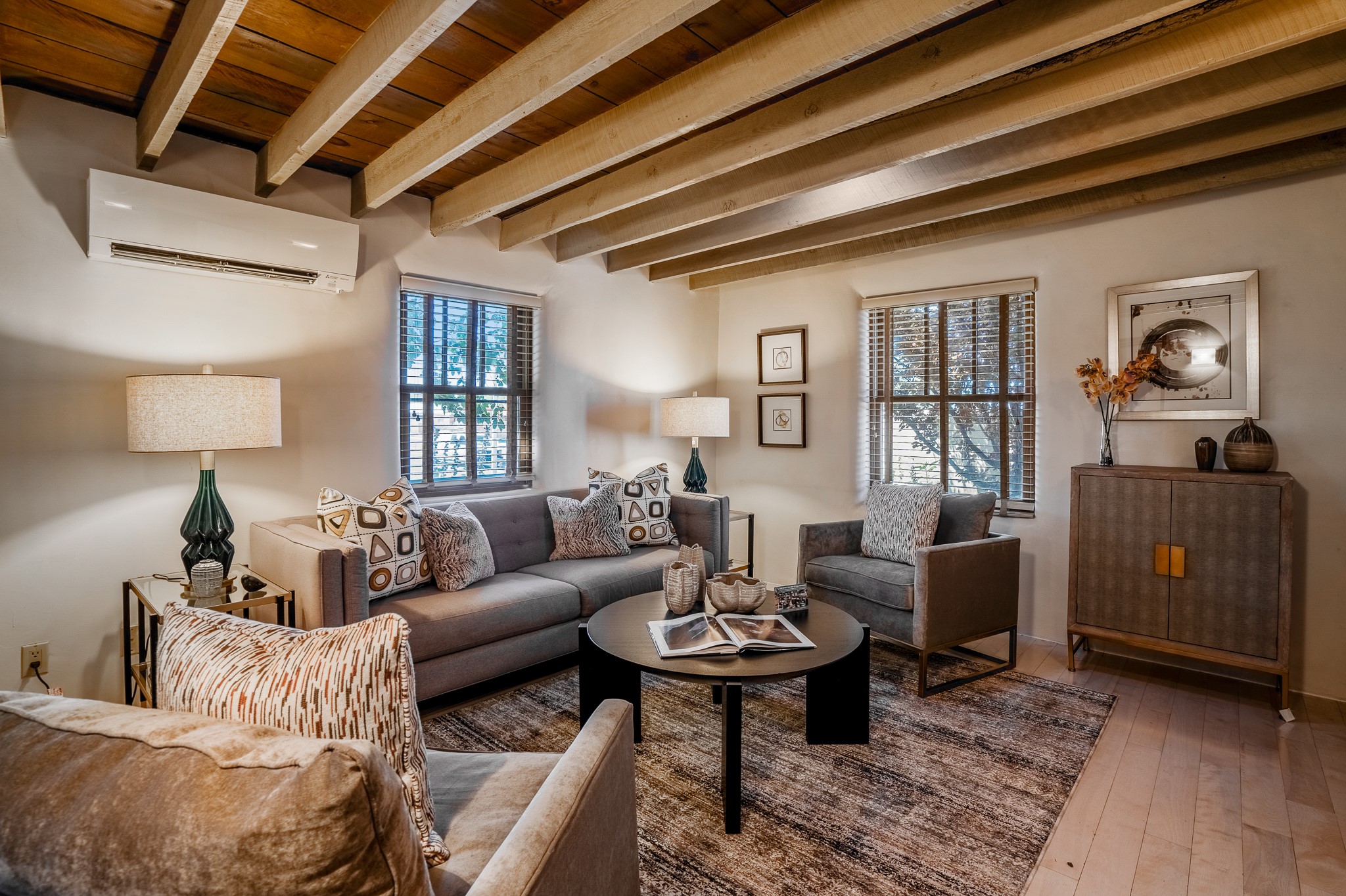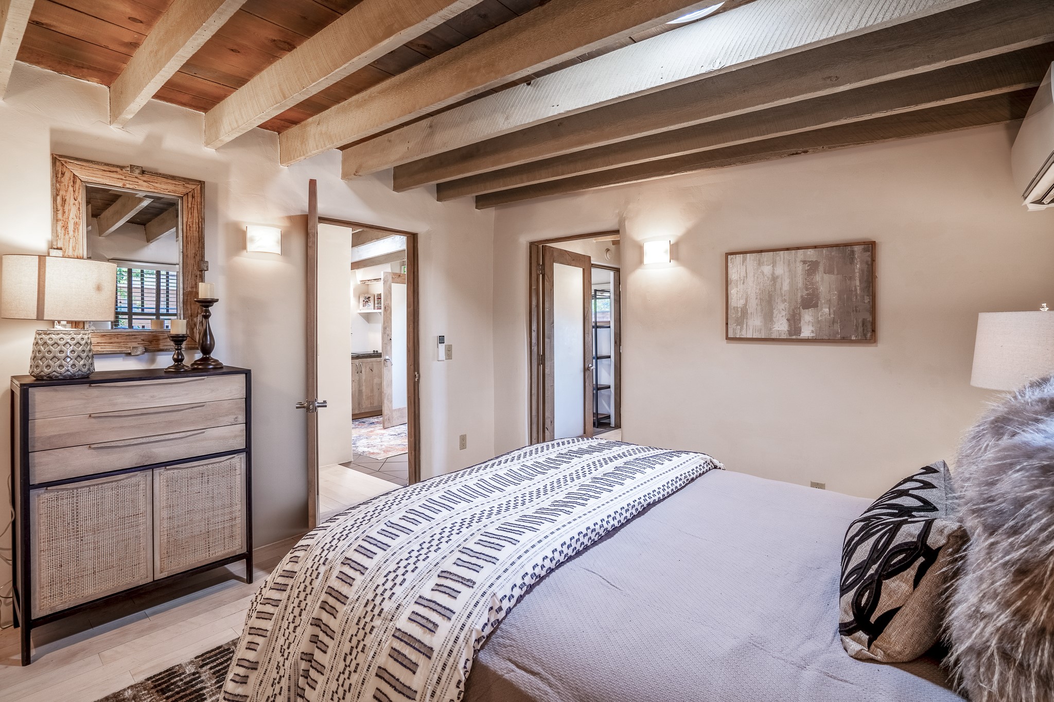 Step into the enchanting private walled courtyard, and the magic unfolds! This adobe casita offers a blend of uniqueness, trendiness, and turnkey convenience, with versatile spaces for living, working, or a live/work setup. The backyard is a gardener's paradise,complemented by a beautiful private outdoor deck, creating even more living area. Situated in the fabulous Railyard location, you'll enjoy a walkable/bikeable lifestyle with easy access to the Farmer's Market, shopping, restaurants, theaters, train, and walking trails. Recent upgrades include the roof and mini-splits for heating and cooling, enhancing the overall comfort of this wonderful home.