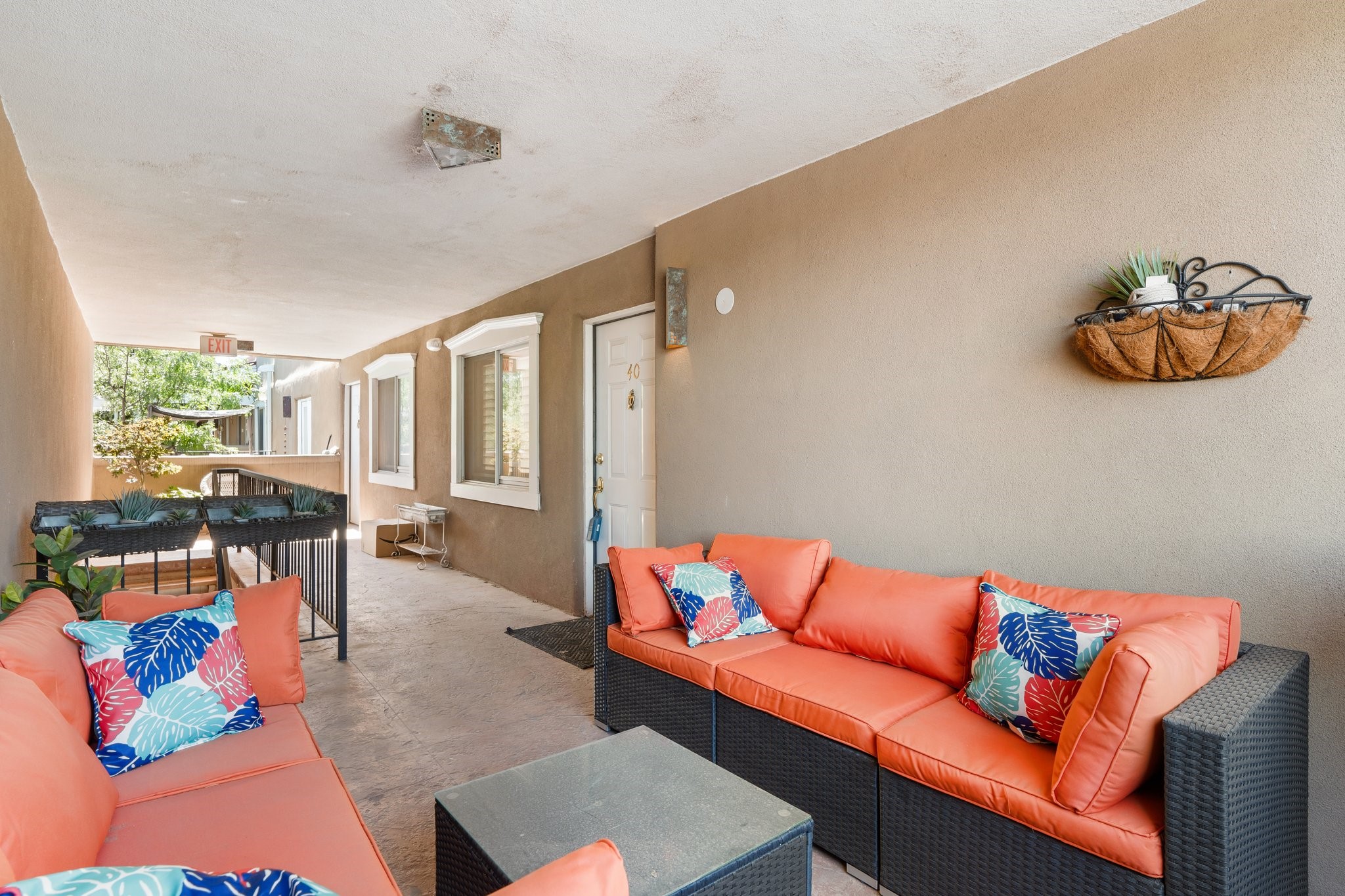 The El Matador Condos is one of the coveted locations in Santa Fe Plaza and Fort Marcy Park. This tastefully furnished condo offers a luxurious, comfortable living space in the heart of the city. The condo provides a sophisticated environment for those seeking a stylish urban lifestyle. The floor plan allows for easy flow between the kitchen, dining area, and spacious living room, making it perfect for entertaining or relaxing after a long day. Offering a peaceful retreat, with a modern ambiance (conveniently located near popular restaurants, shops, cultural attraction and Ski Santa Fe) and a pet friendly condo association. This home can be purchased furnished or unfurnished; ask your broker for more details. Come view this downtown condo today!
