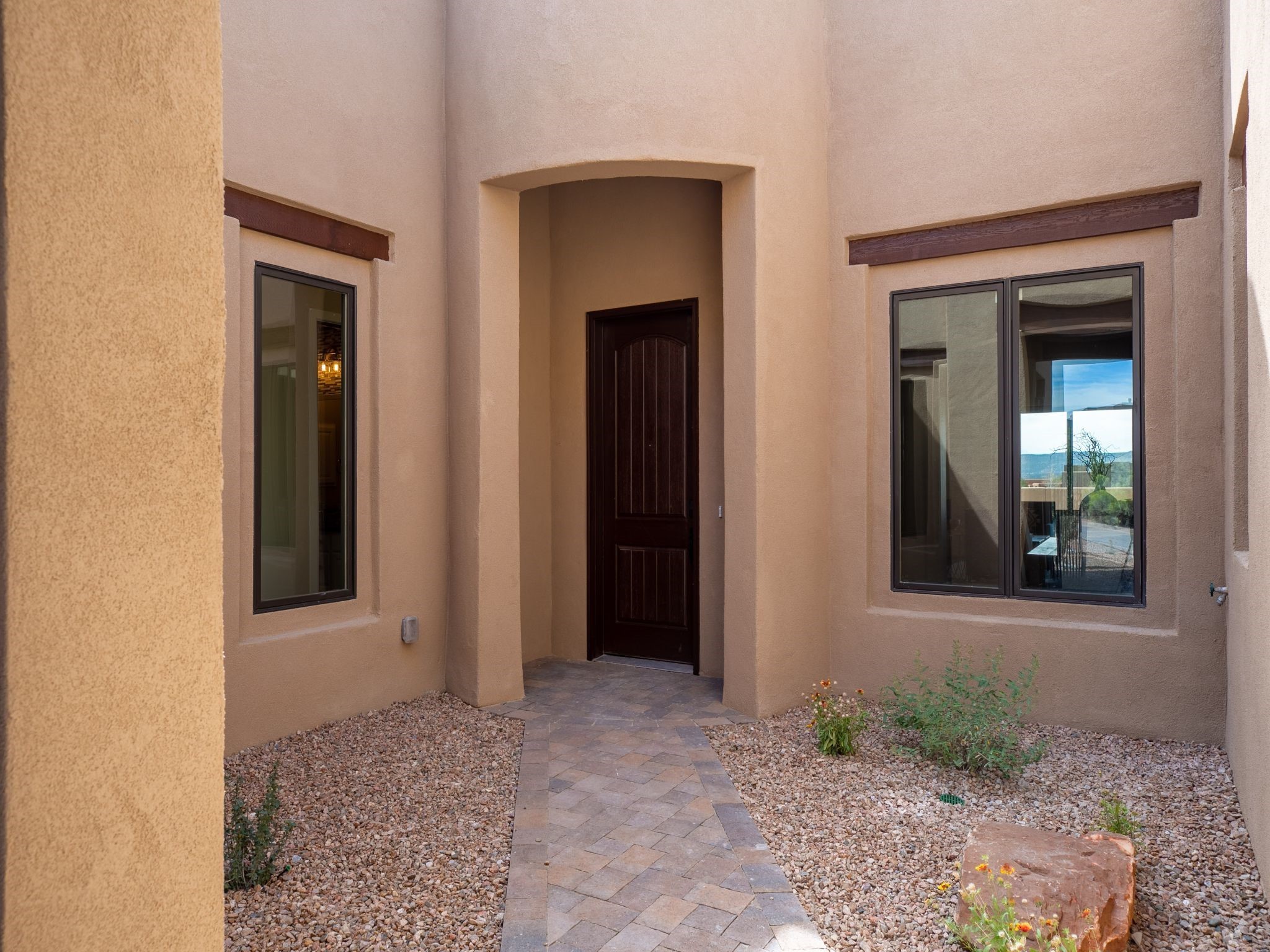 Completed August 2023; Ready for Move-In. the Patagonia pueblo floorplan is 3,265 sq. ft. in the main residence with a 218 sq. ft. guest suite with top-of-the line finishes. The main residence offers an open floor plan ideal for entertaining with light-filled, dining & kitchen areas; three bedrooms; media room; office & a 3-car garage. Retracting sliding glass doors frame the view & connect the living room with the covered portal area with gas fireplace & further to the generous walled-in. A spacious Wolf kitchen is anchored by a large center island with caf seating & is adjacent to the dining area which opens to the covered portal. The luxurious owner's suite features a walk-in shower with retreat area. Near the walking path, the Las Campanas Hacienda is minutes away. HOA fees cover maintenance, gated entries, paved roads, common areas, 24-hr roaming security & 24-hour EMT's. Membership to the Club at Las Campanas is optional.