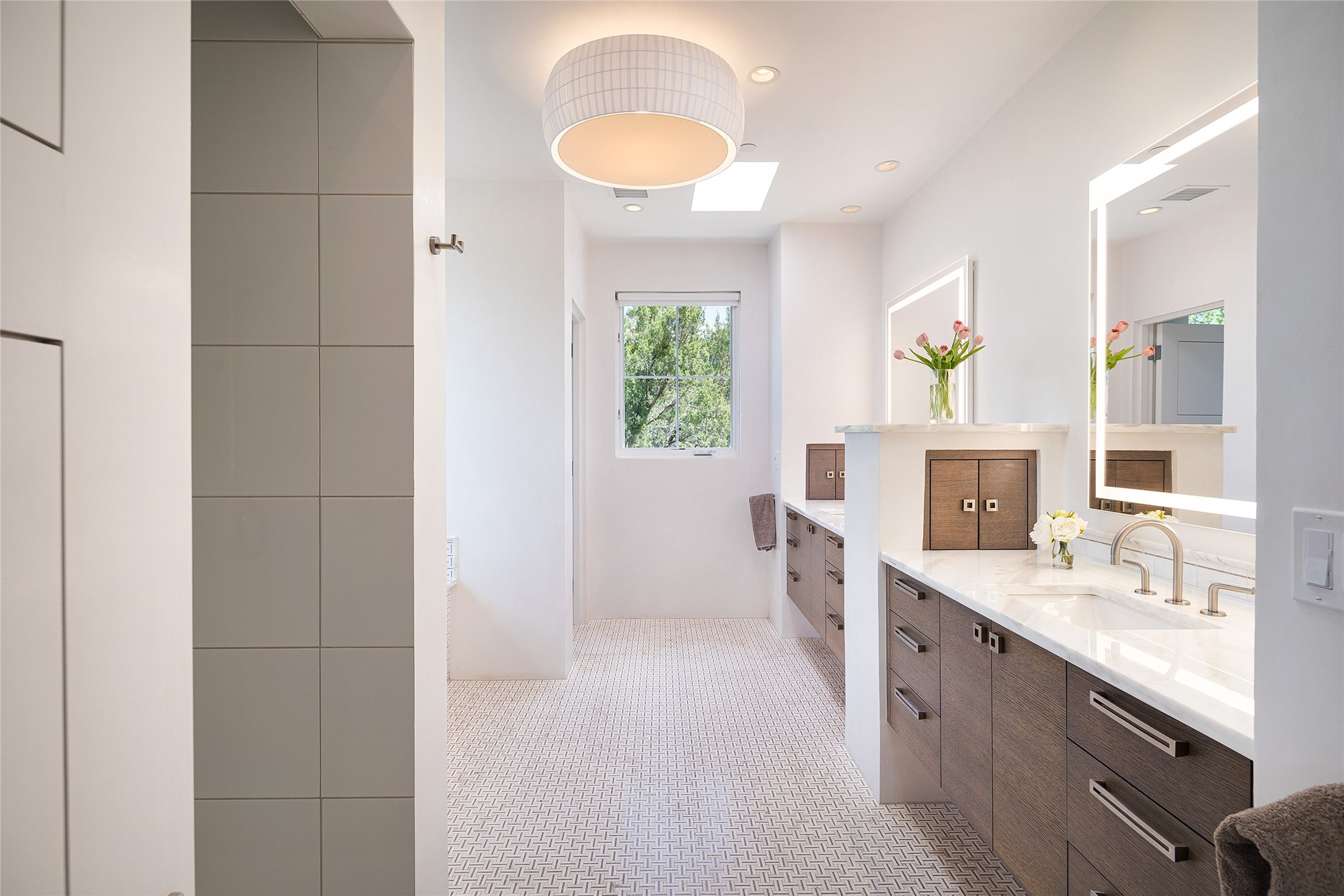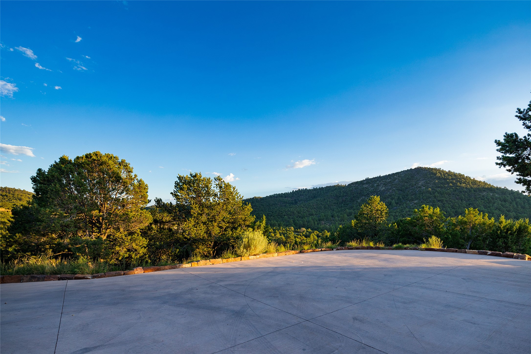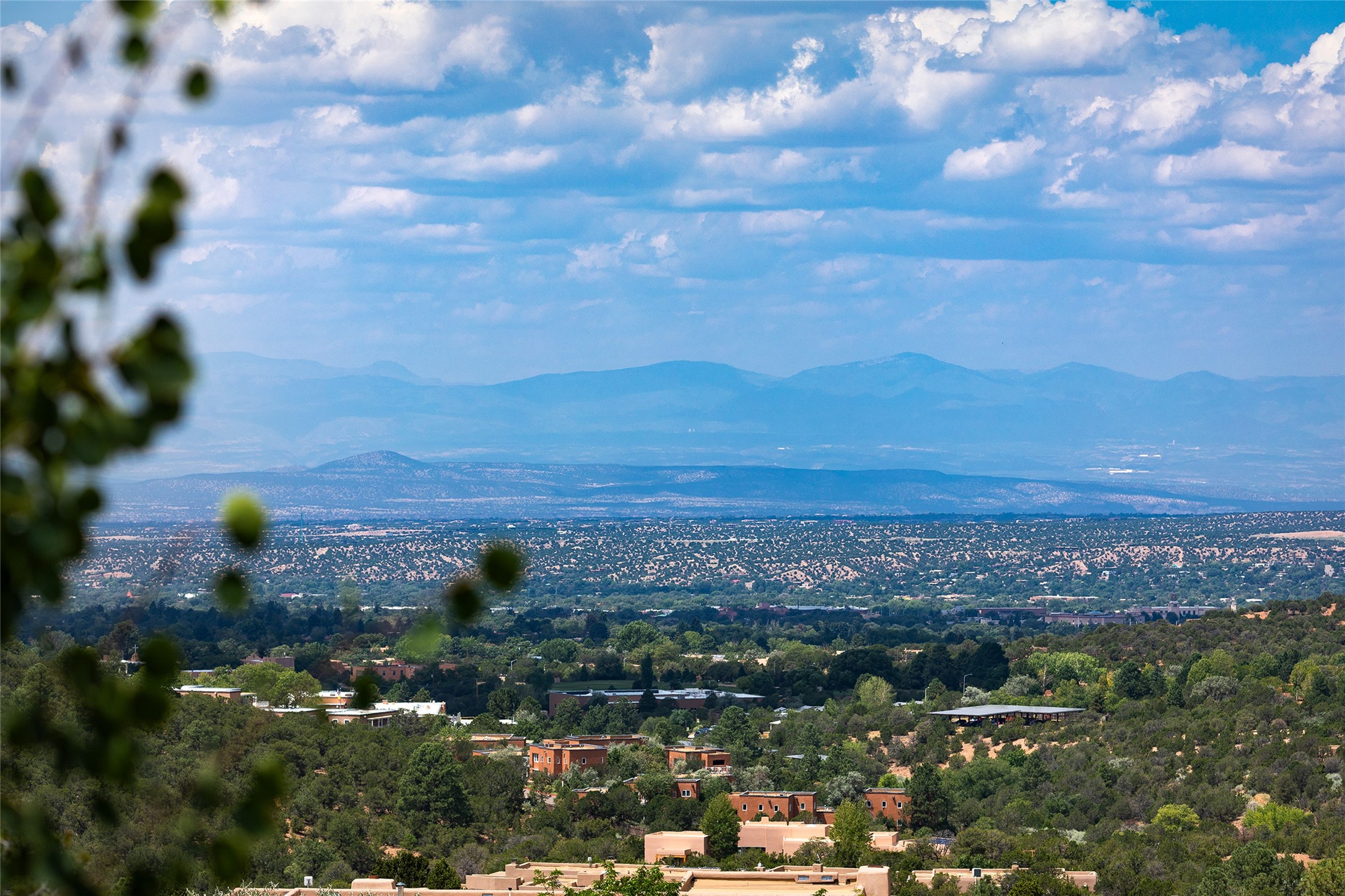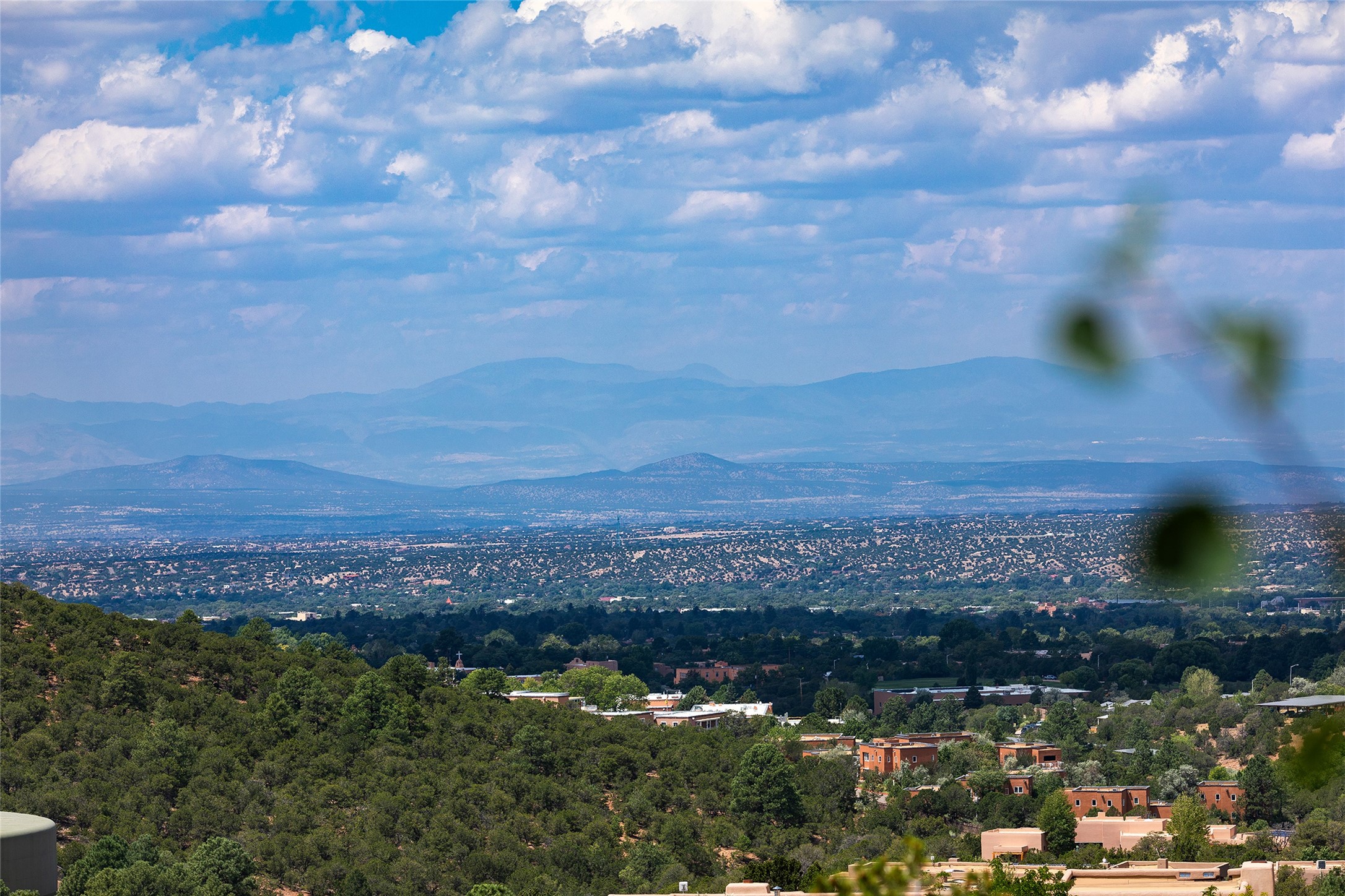 One of the most extraordinary estates in all of Santa Fe, this exceptional 2018-built residence by the awarding winning, Woods Design Builders excites and captivates with powerful architecture, stunning, expansive views mountain, city and sunset views, and a rare resort-style diving pool, spa, and cabana. Located within Wilderness Gate, and sited on a superior, elevated 5 acre view lot, this exquisite gated residence, exemplifies the unique blend of sophisticated contemporary design with inherent Santa Fe warmth. Designed with a grand open concept living experience, with seamless surround view windows, this fabulous home stuns upon entering through the glass and metal pivot front entrance door into the living room and dining room, complete with a custom metal accent wall, fireplace, wet bar, wine cooler, and sliding glass doors which open to the epic mountain and city views and the the outdoor covered portal with a BBQ and fireplace. The ultimate entertainer's kitchen delights with an expansive island with waterfall Taj Mahal counters, pantry, dual sinks, and luxury appliances, which opens to a casual dining and living room with a fireplace. The luxurious owner's suite delights with majestic views, private portal, an attached office area, sitting room or an ideal media room, and a state-of-the art bath complete with a jetted tub, steam shower, and generous walk-in closet. Separate from the owner's suite are two well-appointed guest bedroom ensuites, plus an additional living room with an office niche. The newly installed heated pool and spa with a fully equipped cabana defines excellence, with resistance swim jets, an outdoor kitchen, fireplace and media center. Additional luxury features include white oak flooring, lush vibrant surround gardens with multiple outdoor entertainment areas, plaster walls, and rich beams with steel accents throughout, and all within minutes from the Plaza, steps away from Atalaya Mnt, St. Johns College, and the Dale Ball trail system.