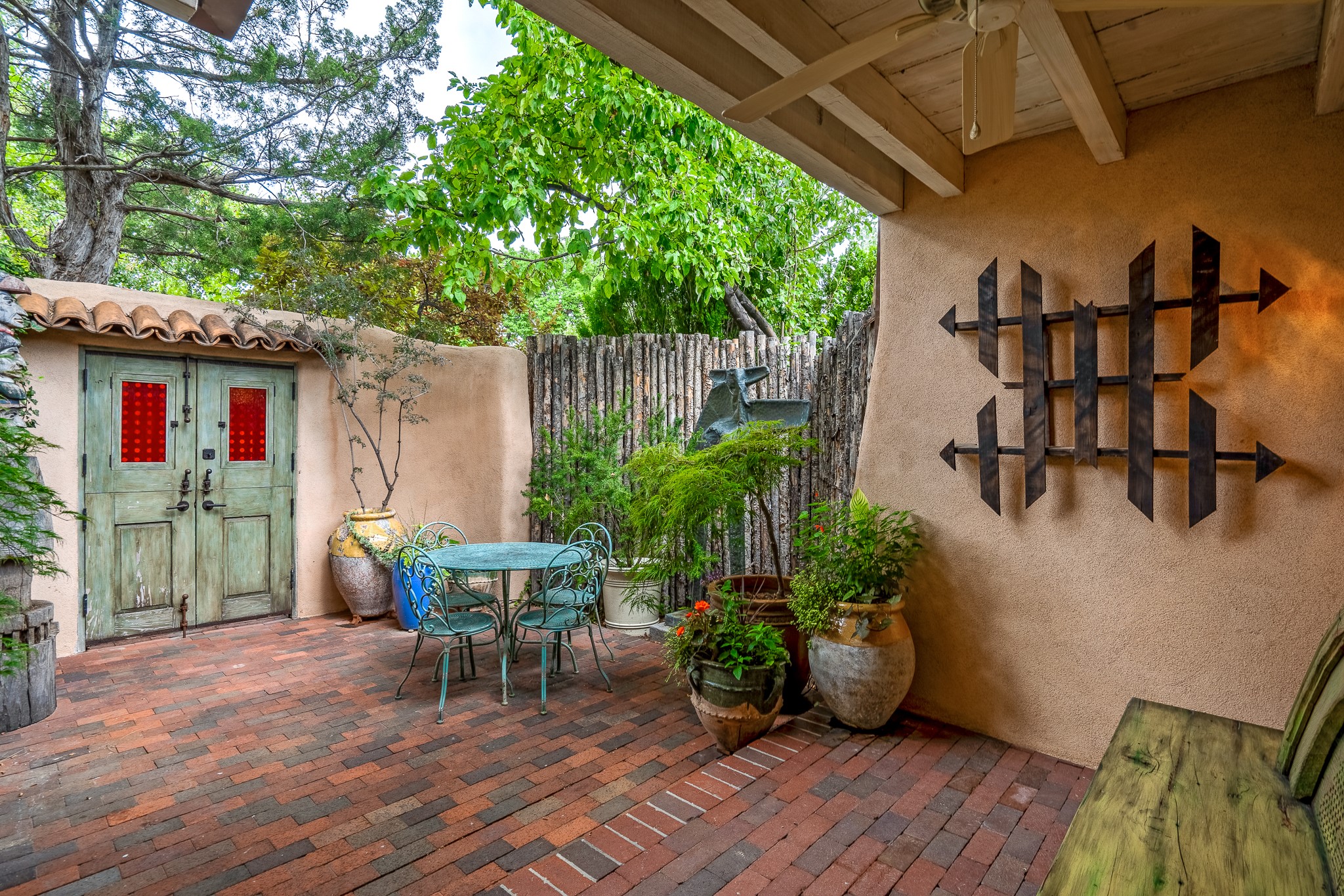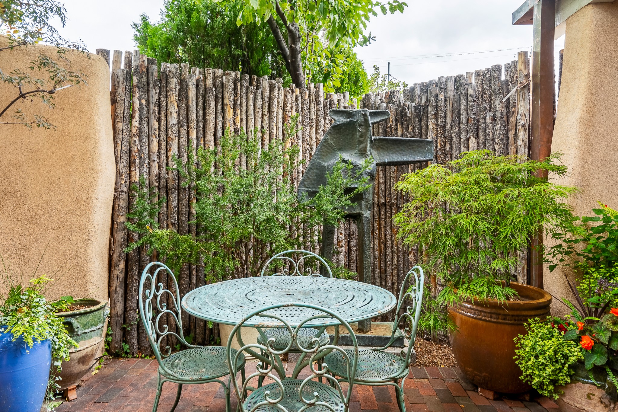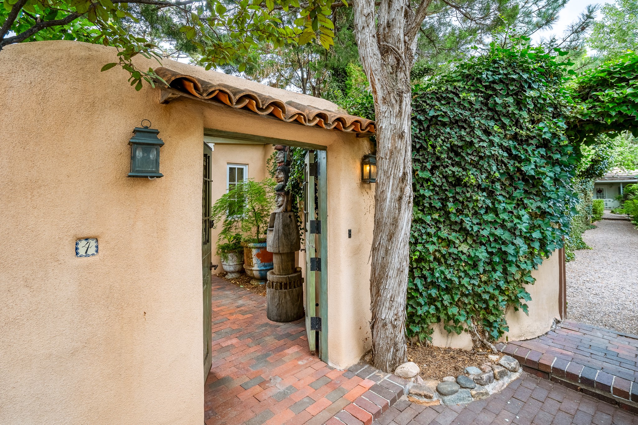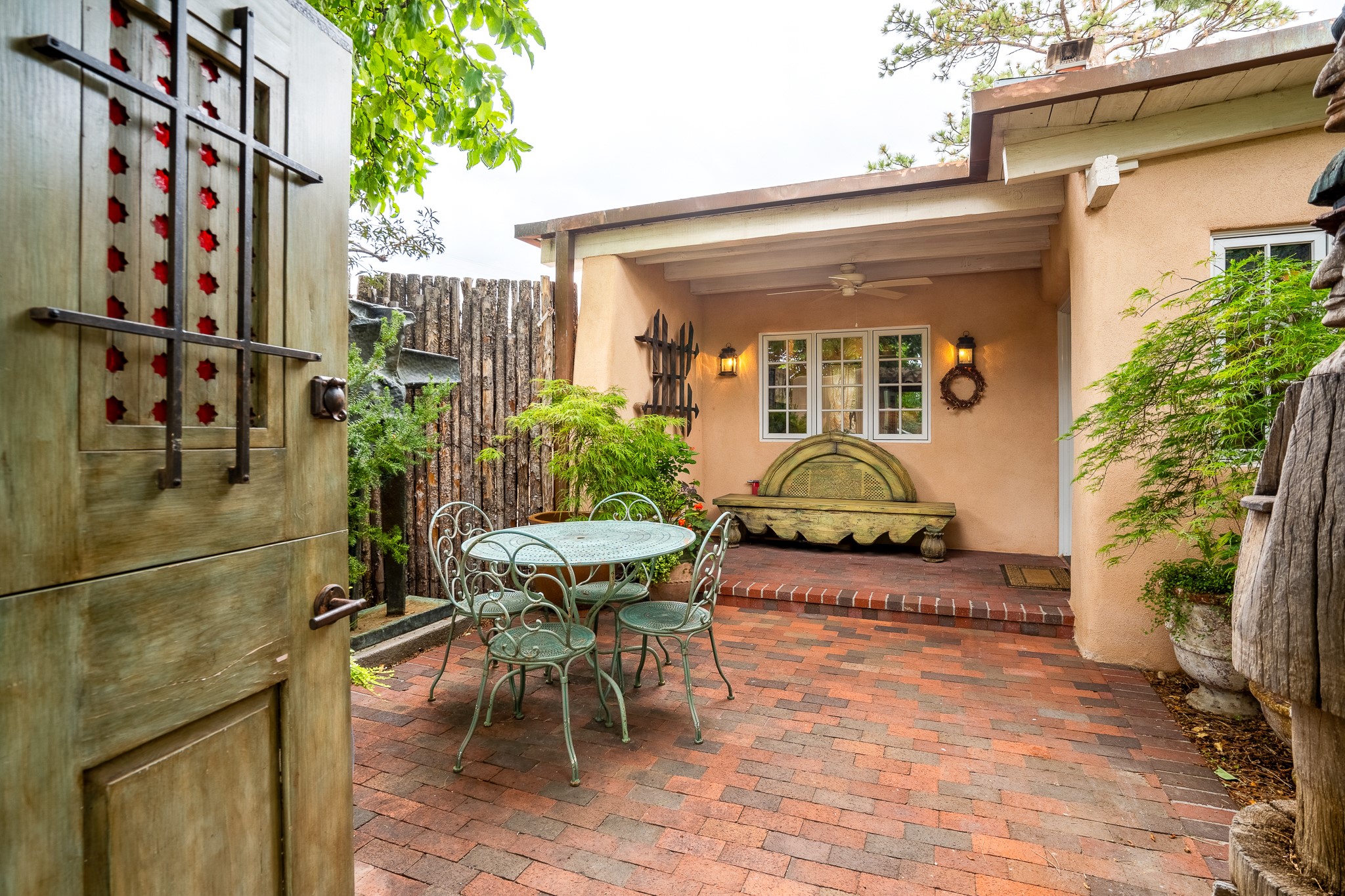Welcome to Atwill Compound, an exquisite residence nestled in the heart of the Historic Eastside. Tucked away behind adobe walls, this compound offers tranquility and a prime location near art galleries and the vibrant ambiance of Canyon Road. Discover a stunning Spanish colonial gem, thoughtfully designed with traditional Southwest elements. The interior boasts thick white plastered adobe walls, complemented by deep-set divided light windows that provide delightful garden views. Immerse yourself in the beauty of polished brick floors in the living, dining room and kitchen, which ensures a stylish yet functional space for contemporary chefs. Step into the captivating primary bedroom and bathroom, featuring inviting wood floors and large walk-in closets. Outside, an enchanting private patio adorned with large potted plants invites you to savor the Santa Fe outdoors a little longer. Atwell Compound is an oasis of elegance and serenity, perfectly situated to embrace the best of Eastside living.