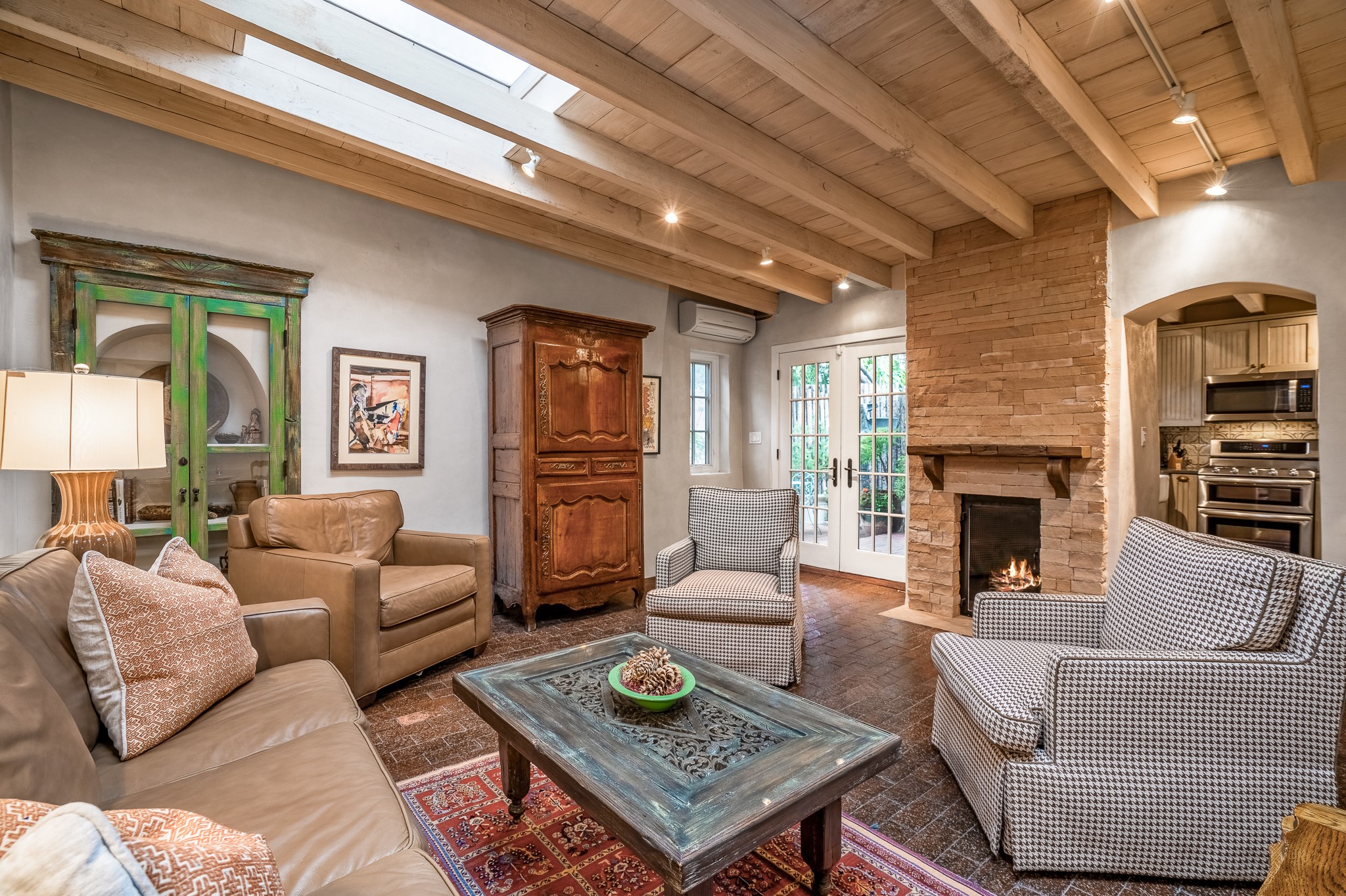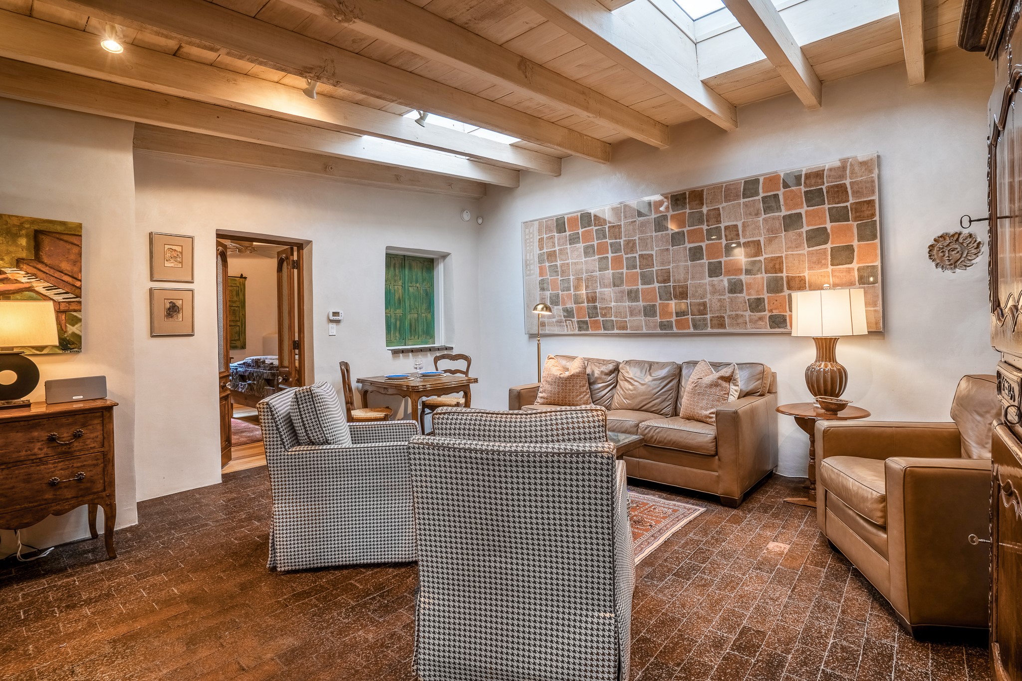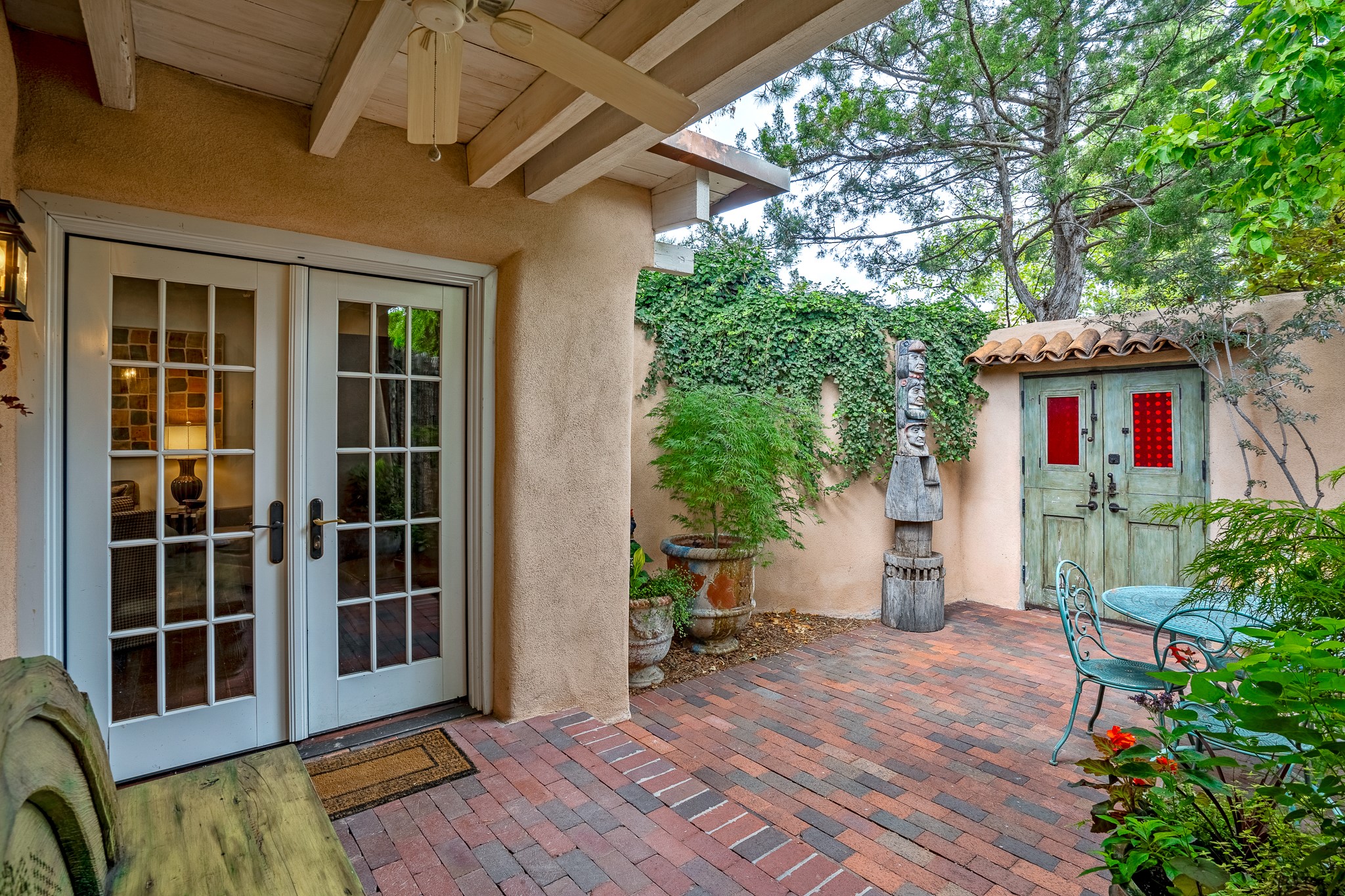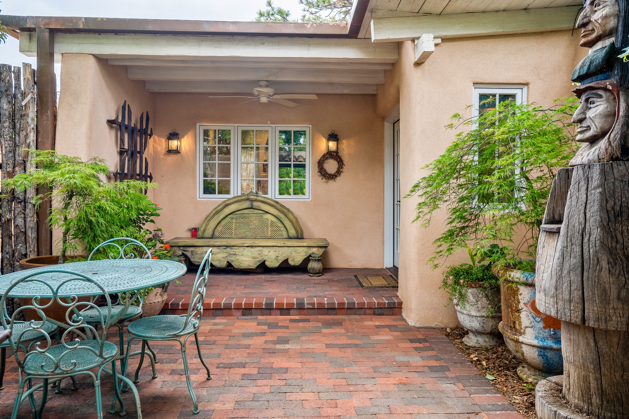Welcome to Atwill Compound, an exquisite residence nestled in the heart of the Historic Eastside. Tucked away behind adobe walls, this compound offers tranquility and a prime location near art galleries and the vibrant ambiance of Canyon Road. Discover a stunning Spanish colonial gem, thoughtfully designed with traditional Southwest elements. The interior boasts thick white plastered adobe walls, complemented by deep-set divided light windows that provide delightful garden views. Immerse yourself in the beauty of polished brick floors in the living, dining room and kitchen, which ensures a stylish yet functional space for contemporary chefs. Step into the captivating primary bedroom and bathroom, featuring inviting wood floors and large walk-in closets. Outside, an enchanting private patio adorned with large potted plants invites you to savor the Santa Fe outdoors a little longer. Atwell Compound is an oasis of elegance and serenity, perfectly situated to embrace the best of Eastside living.