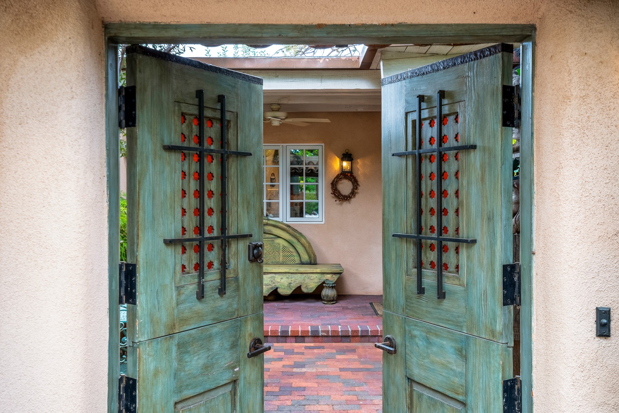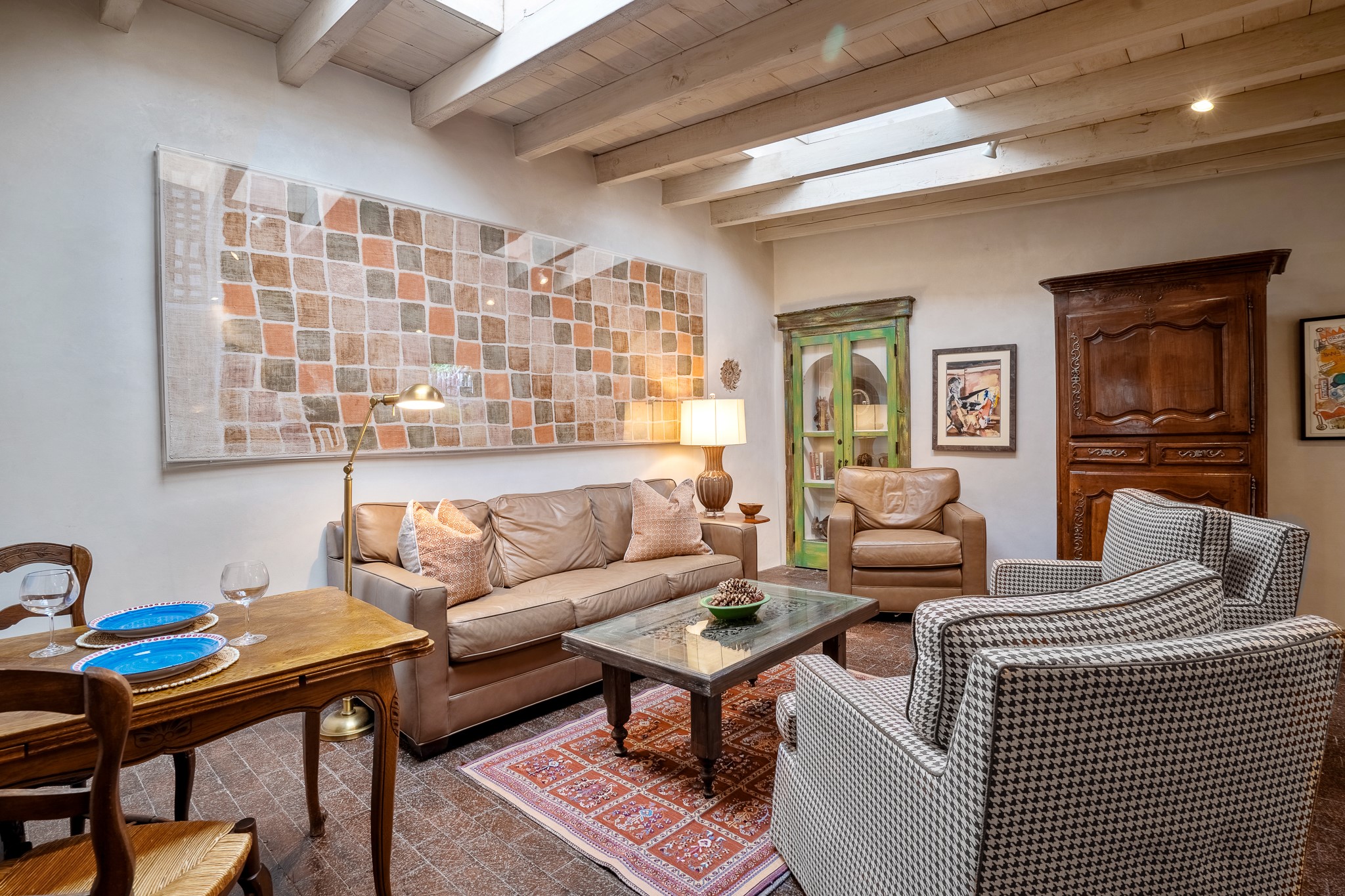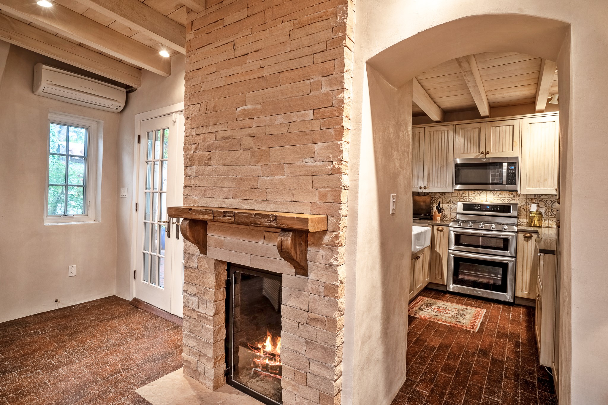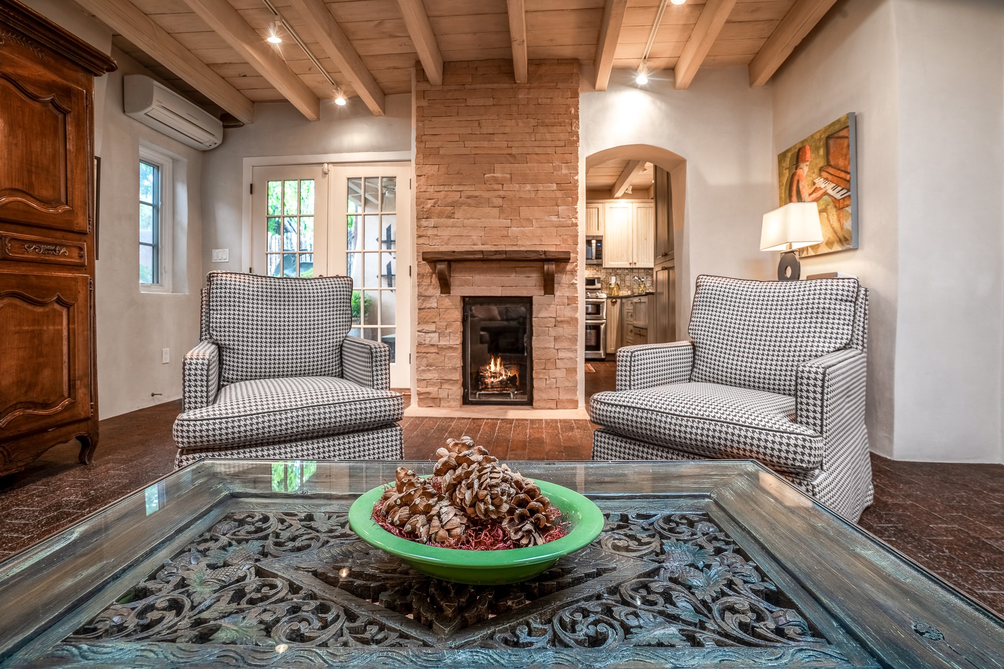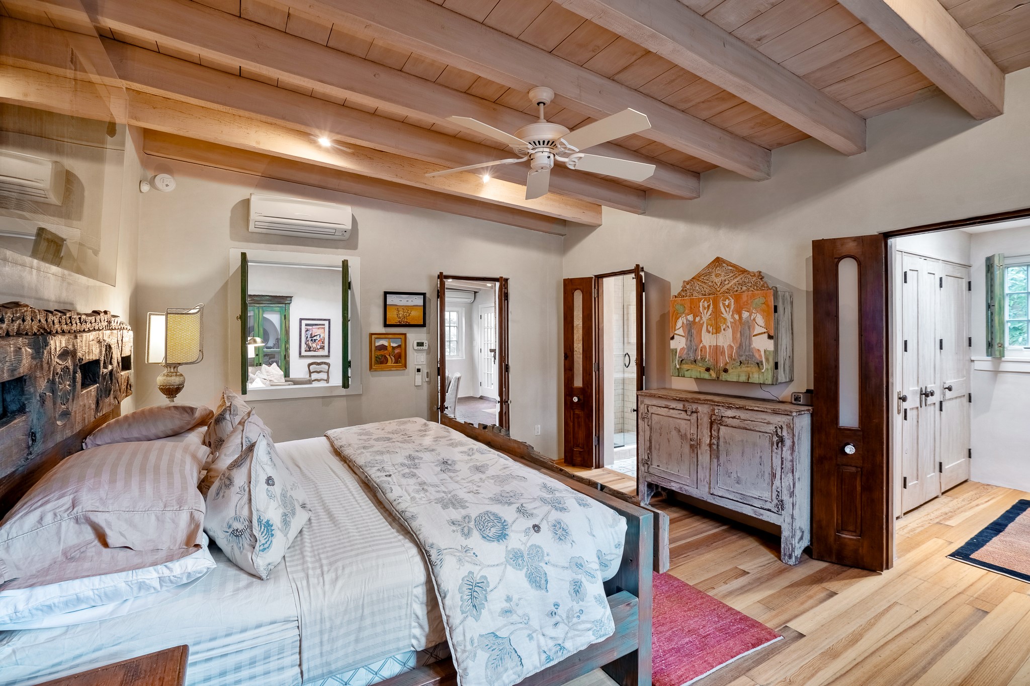 Welcome to Atwill Compound, an exquisite residence nestled in the heart of the Historic Eastside. Tucked away behind adobe walls, this compound offers tranquility and a prime location near art galleries and the vibrant ambiance of Canyon Road. Discover a stunning Spanish colonial gem, thoughtfully designed with traditional Southwest elements. The interior boasts thick white plastered adobe walls, complemented by deep-set divided light windows that provide delightful garden views. Immerse yourself in the beauty of polished brick floors in the living, dining room and kitchen, which ensures a stylish yet functional space for contemporary chefs. Step into the captivating primary bedroom and bathroom, featuring inviting wood floors and large walk-in closets. Outside, an enchanting private patio adorned with large potted plants invites you to savor the Santa Fe outdoors a little longer. Atwell Compound is an oasis of elegance and serenity, perfectly situated to embrace the best of Eastside living.