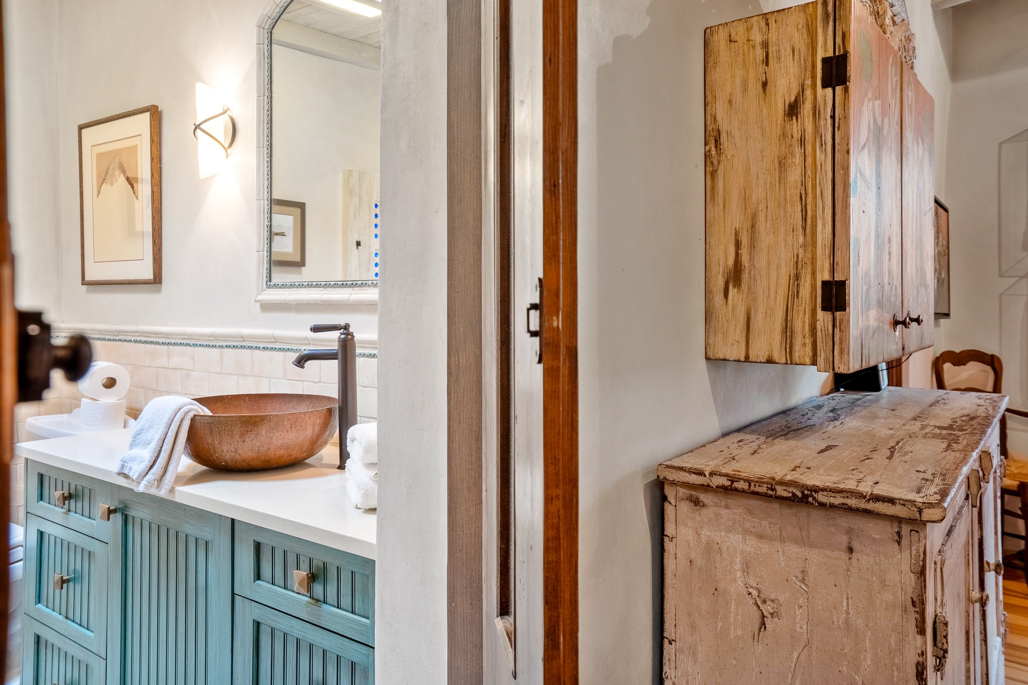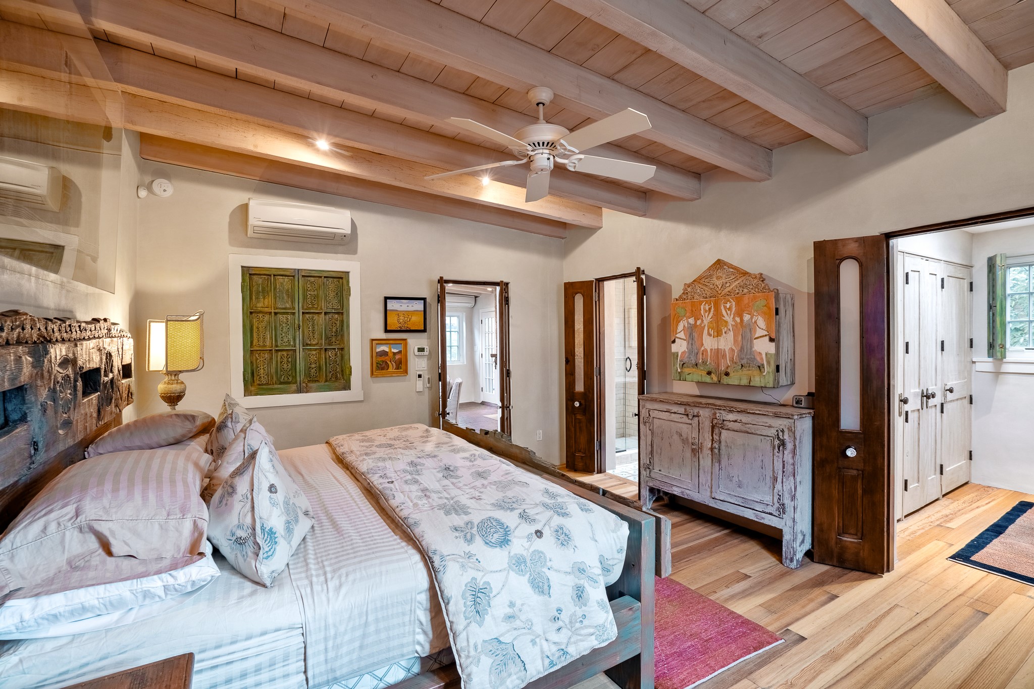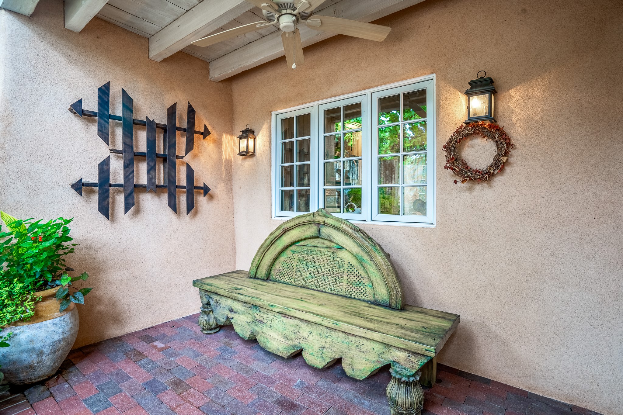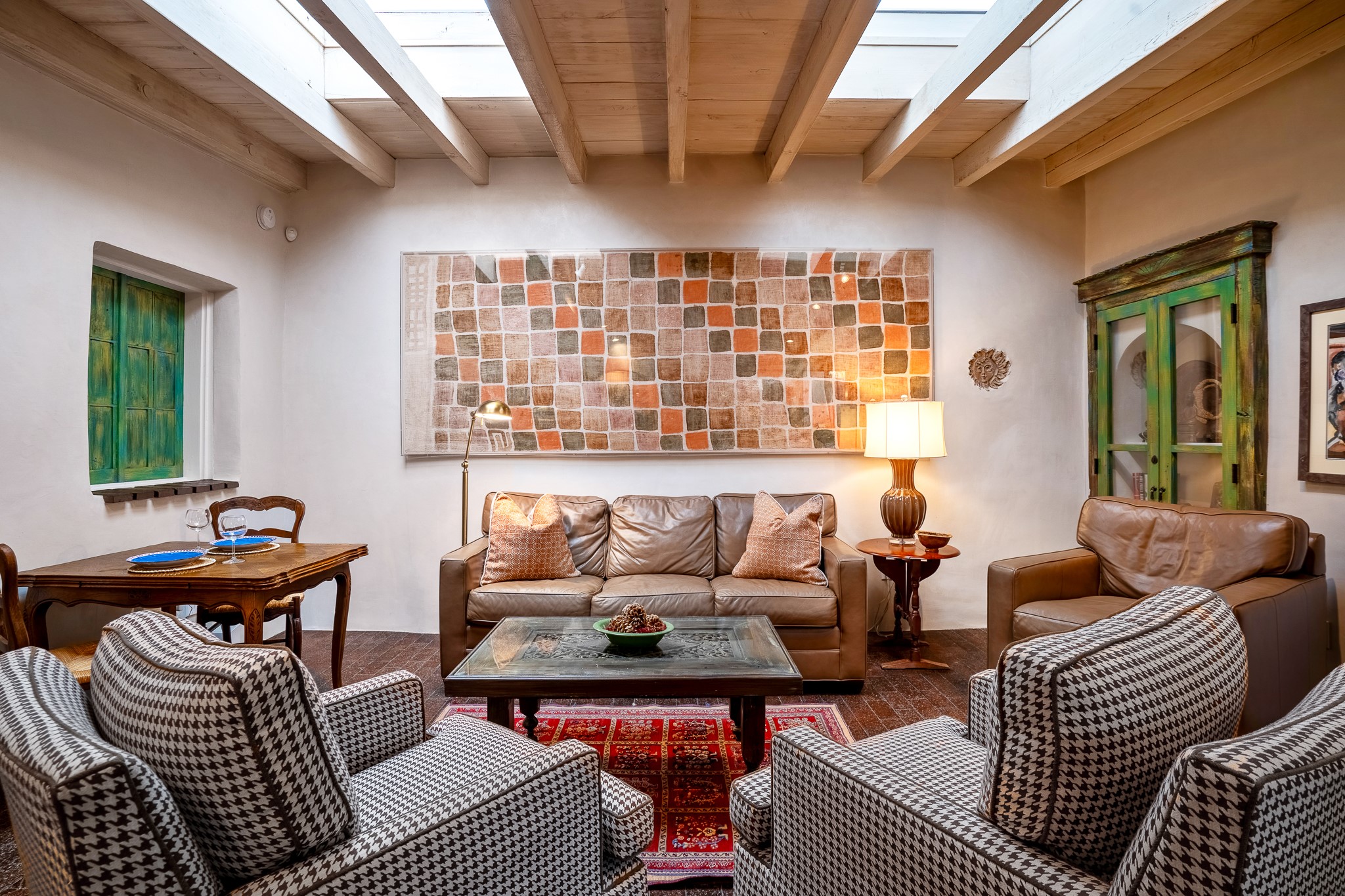 Welcome to Atwill Compound, an exquisite residence nestled in the heart of the Historic Eastside. Tucked away behind adobe walls, this compound offers tranquility and a prime location near art galleries and the vibrant ambiance of Canyon Road. Discover a stunning Spanish colonial gem, thoughtfully designed with traditional Southwest elements. The interior boasts thick white plastered adobe walls, complemented by deep-set divided light windows that provide delightful garden views. Immerse yourself in the beauty of polished brick floors in the living, dining room and kitchen, which ensures a stylish yet functional space for contemporary chefs. Step into the captivating primary bedroom and bathroom, featuring inviting wood floors and large walk-in closets. Outside, an enchanting private patio adorned with large potted plants invites you to savor the Santa Fe outdoors a little longer. Atwell Compound is an oasis of elegance and serenity, perfectly situated to embrace the best of Eastside living.