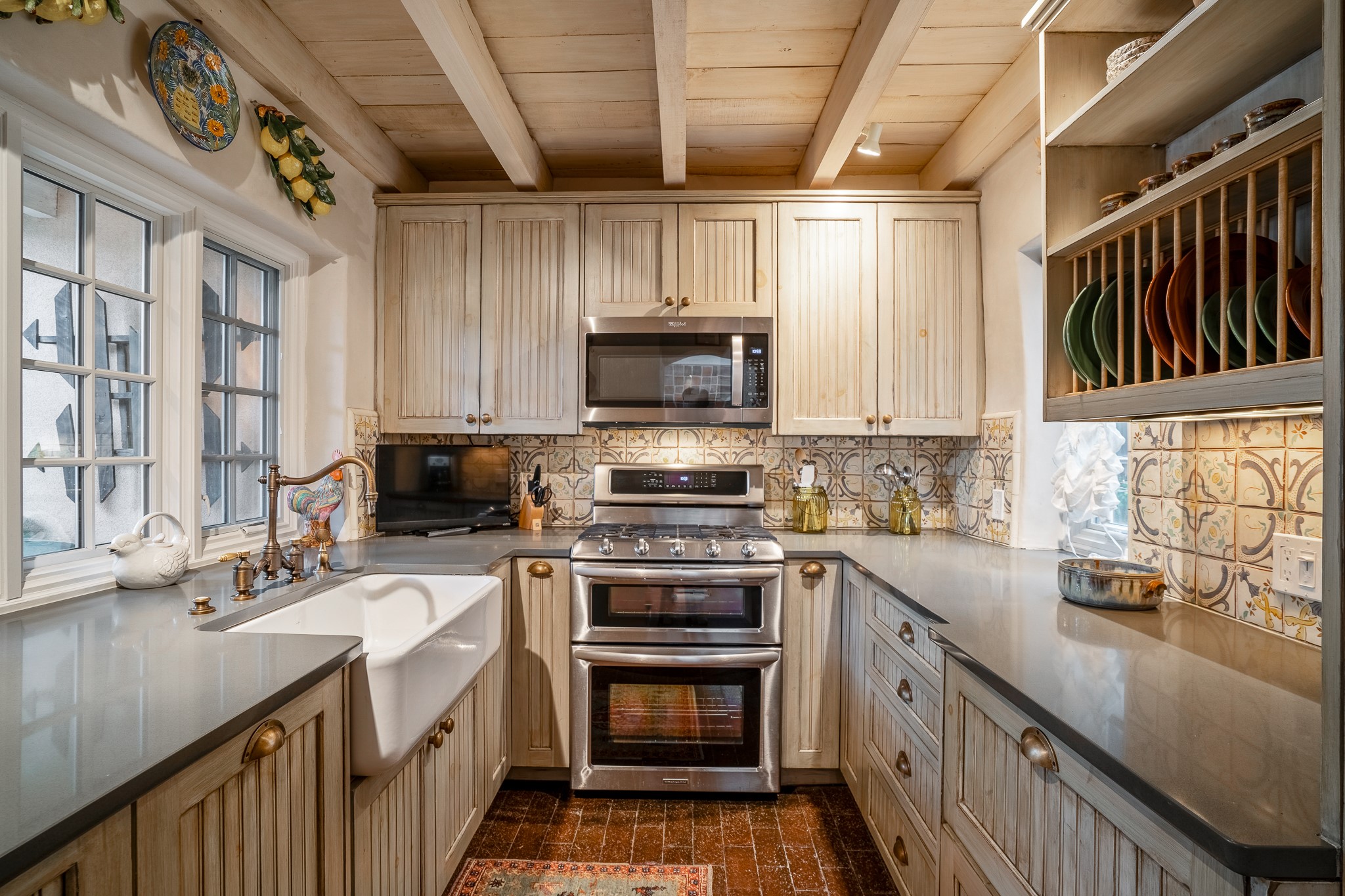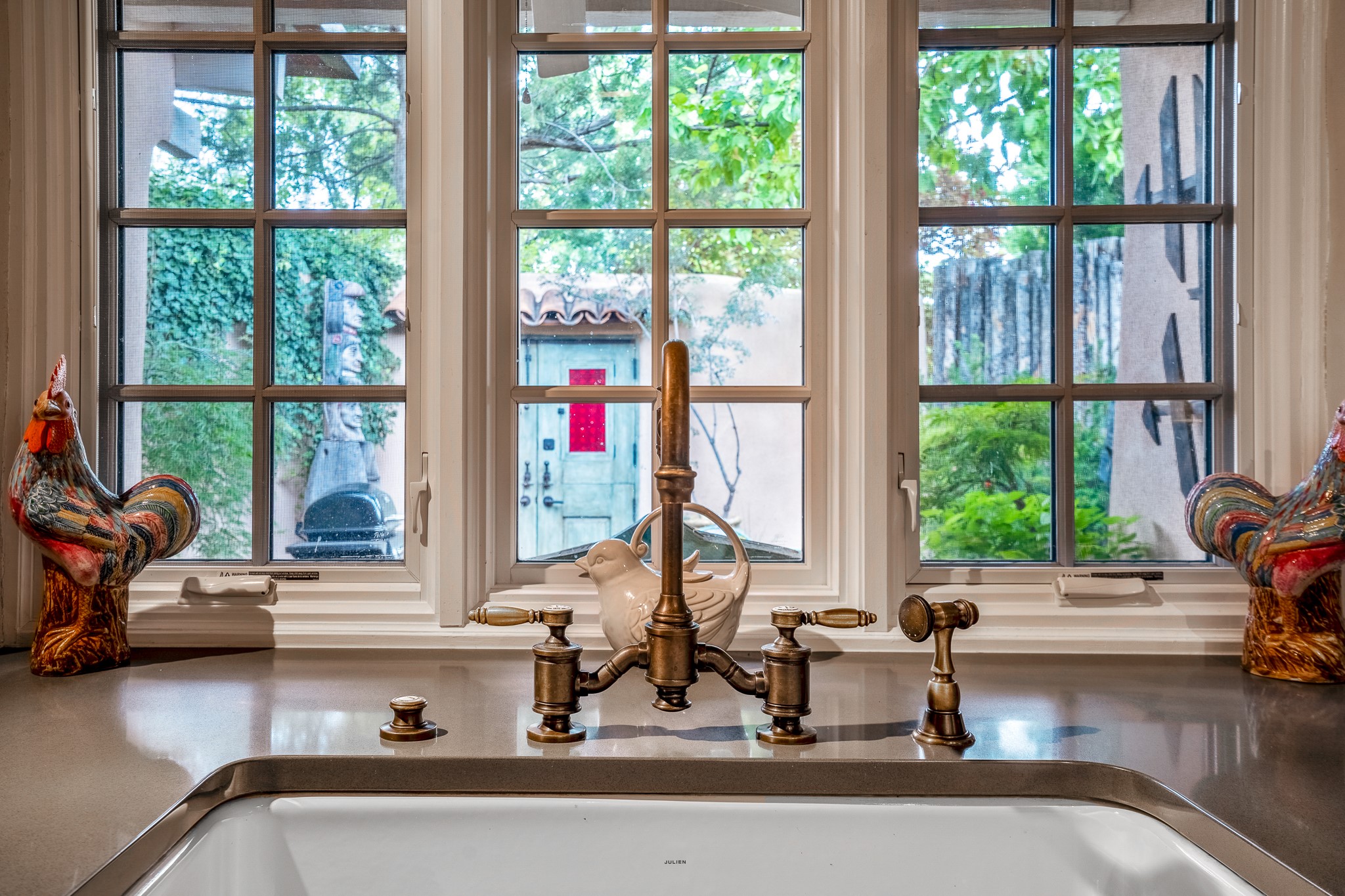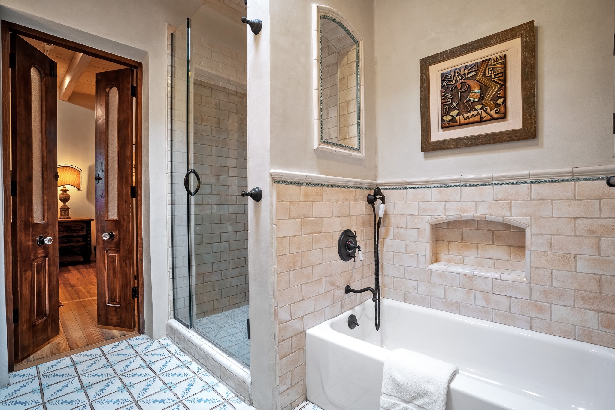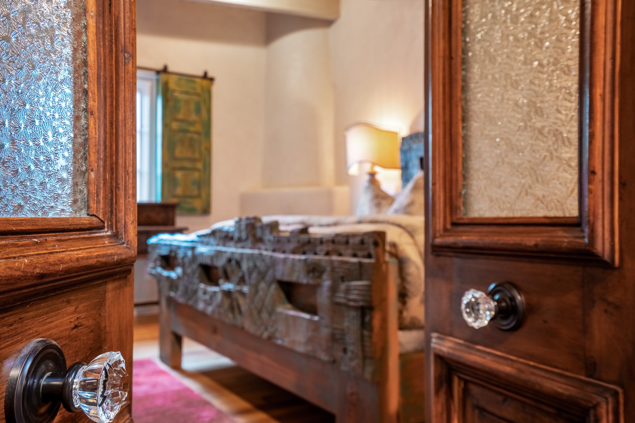 Welcome to Atwill Compound, an exquisite residence nestled in the heart of the Historic Eastside. Tucked away behind adobe walls, this compound offers tranquility and a prime location near art galleries and the vibrant ambiance of Canyon Road. Discover a stunning Spanish colonial gem, thoughtfully designed with traditional Southwest elements. The interior boasts thick white plastered adobe walls, complemented by deep-set divided light windows that provide delightful garden views. Immerse yourself in the beauty of polished brick floors in the living, dining room and kitchen, which ensures a stylish yet functional space for contemporary chefs. Step into the captivating primary bedroom and bathroom, featuring inviting wood floors and large walk-in closets. Outside, an enchanting private patio adorned with large potted plants invites you to savor the Santa Fe outdoors a little longer. Atwell Compound is an oasis of elegance and serenity, perfectly situated to embrace the best of Eastside living.